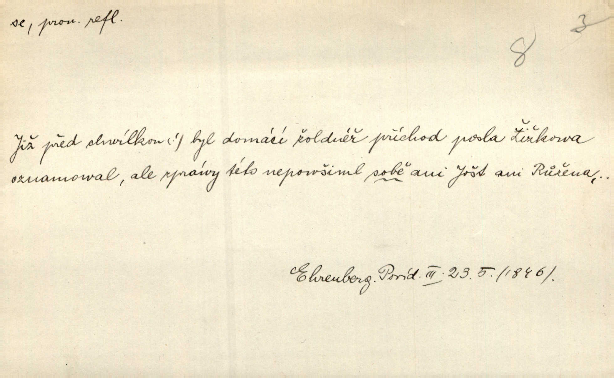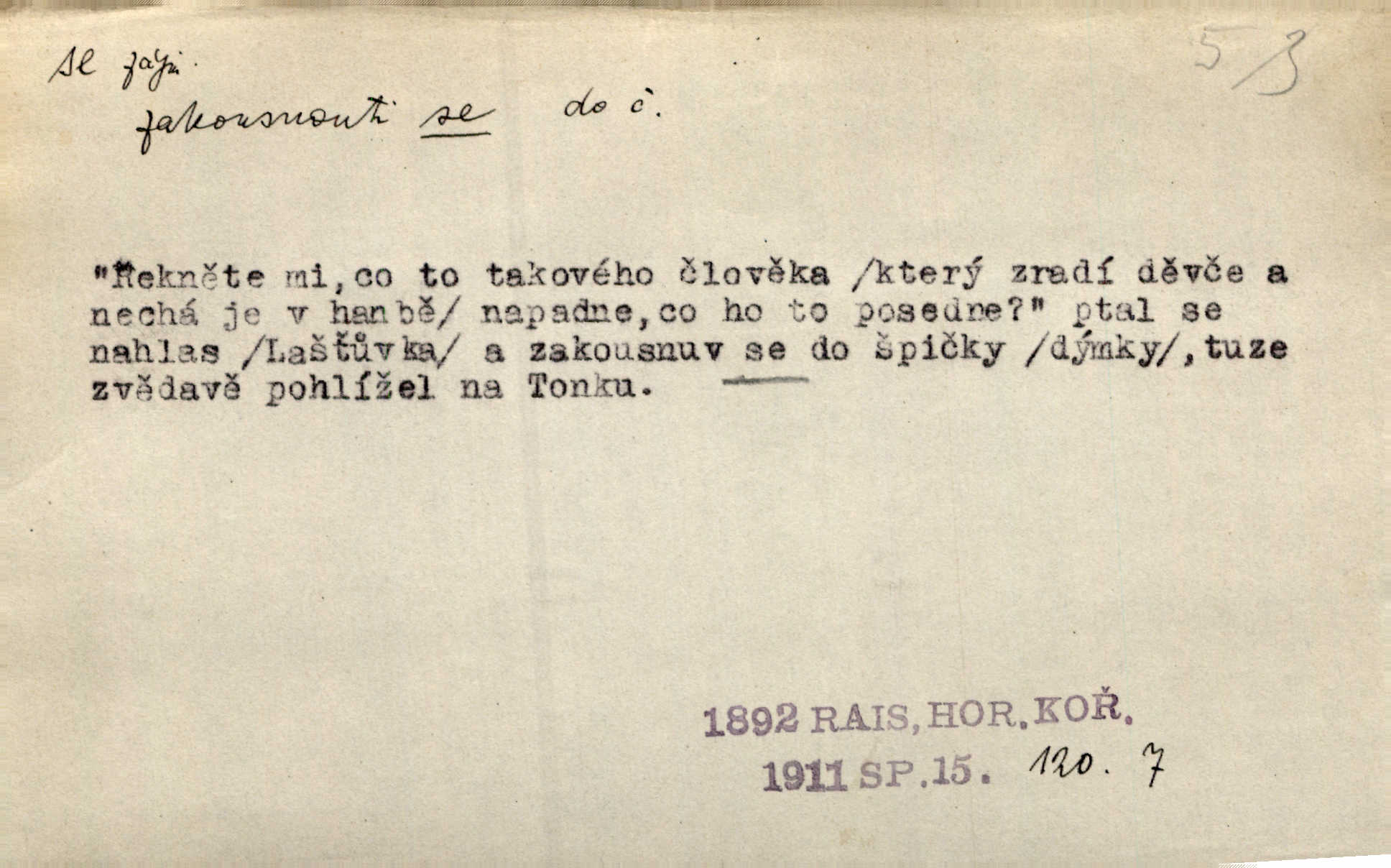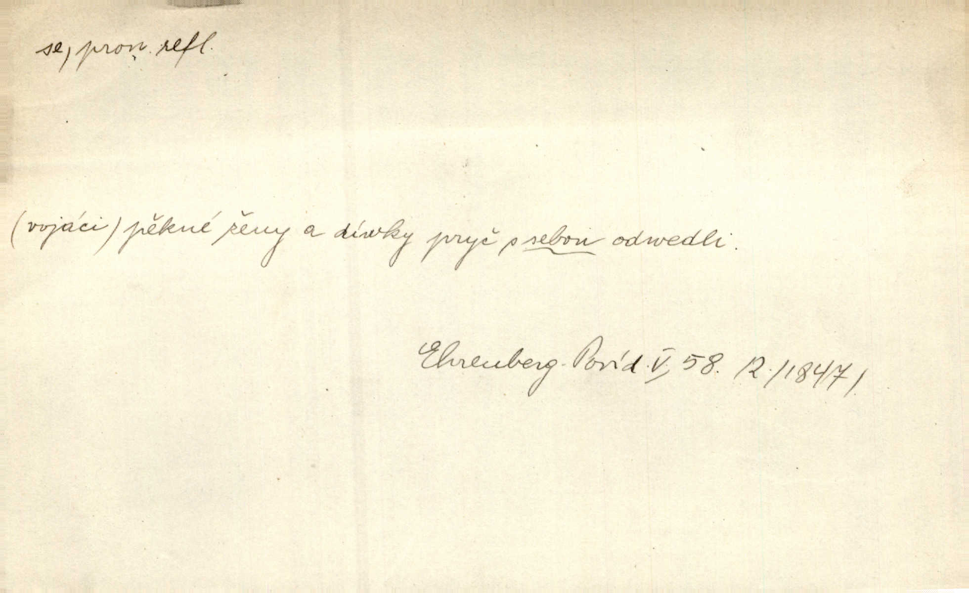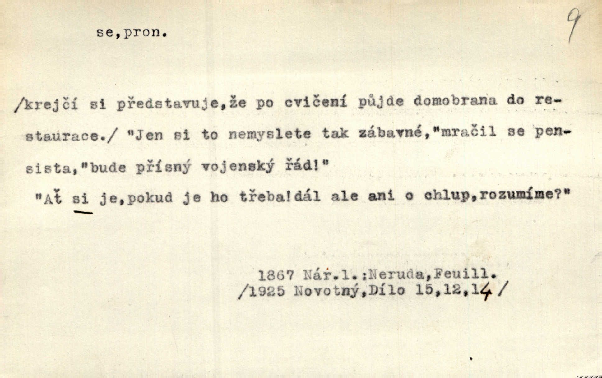 - se citosl. vyjadřující posměch. [Mlynář o odbytých důstojnících:] Vy kujoni jste sotva přišli k vůli střelnici! Se e se, na mne si musíte holenkové přivstat. Tůma.
