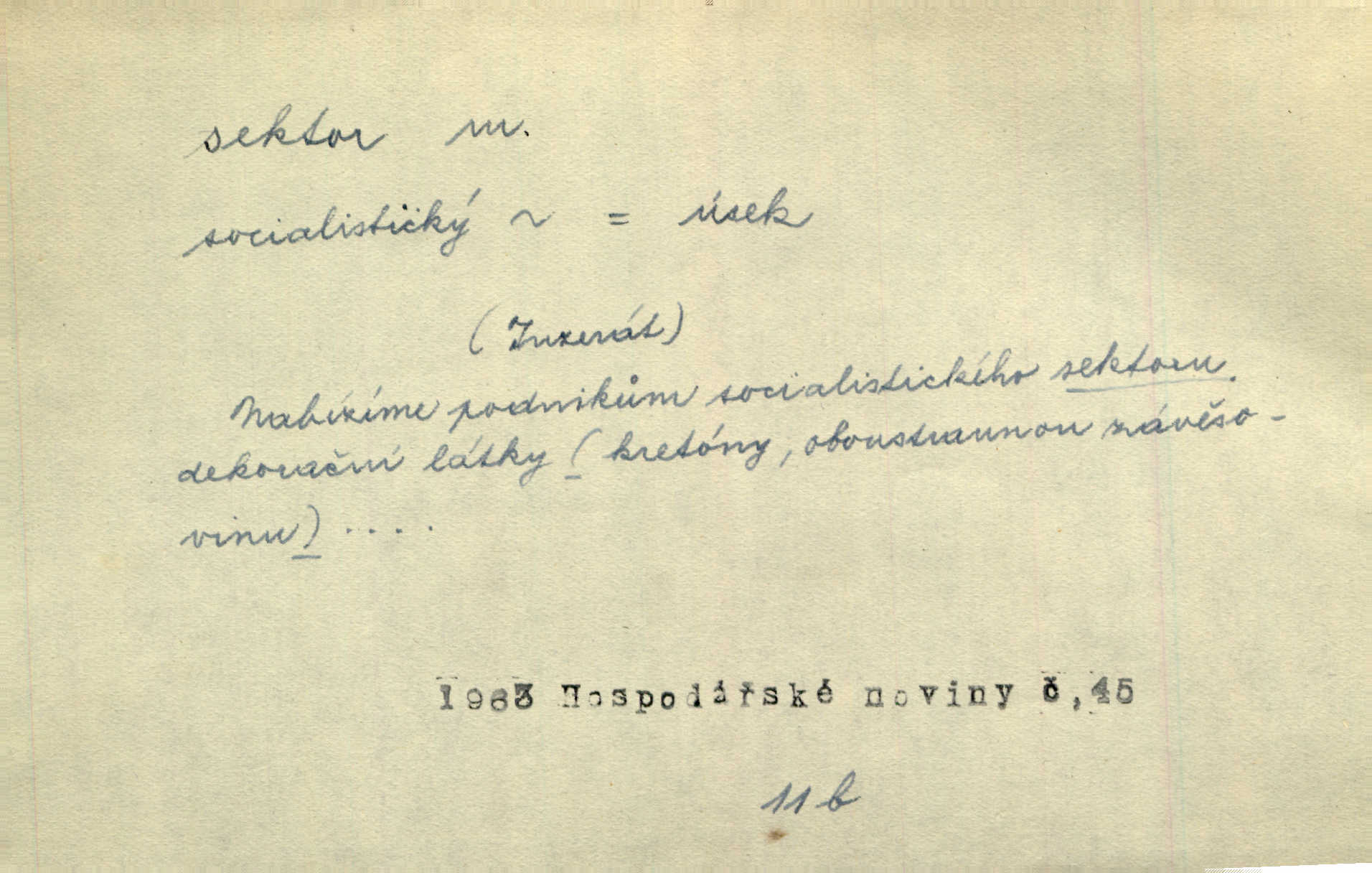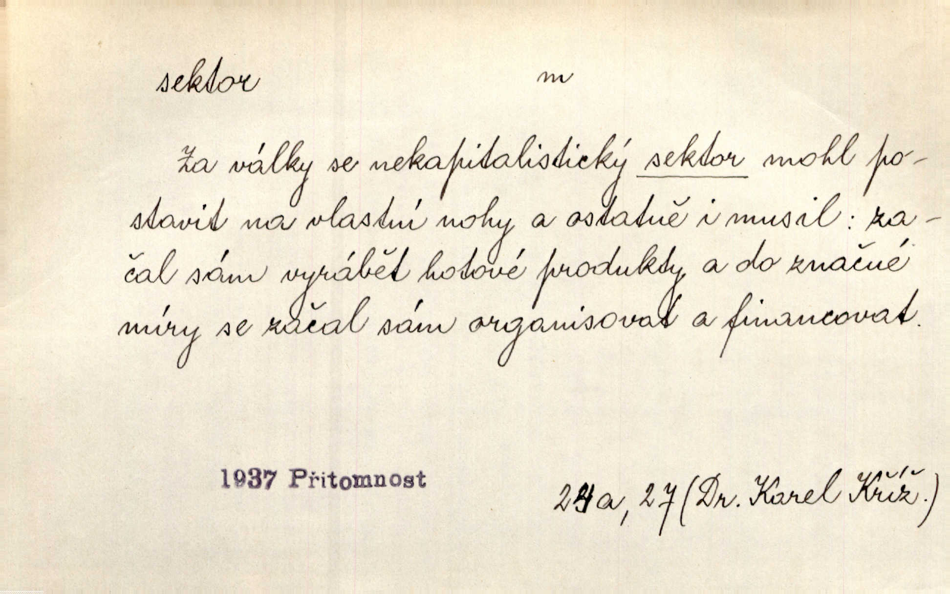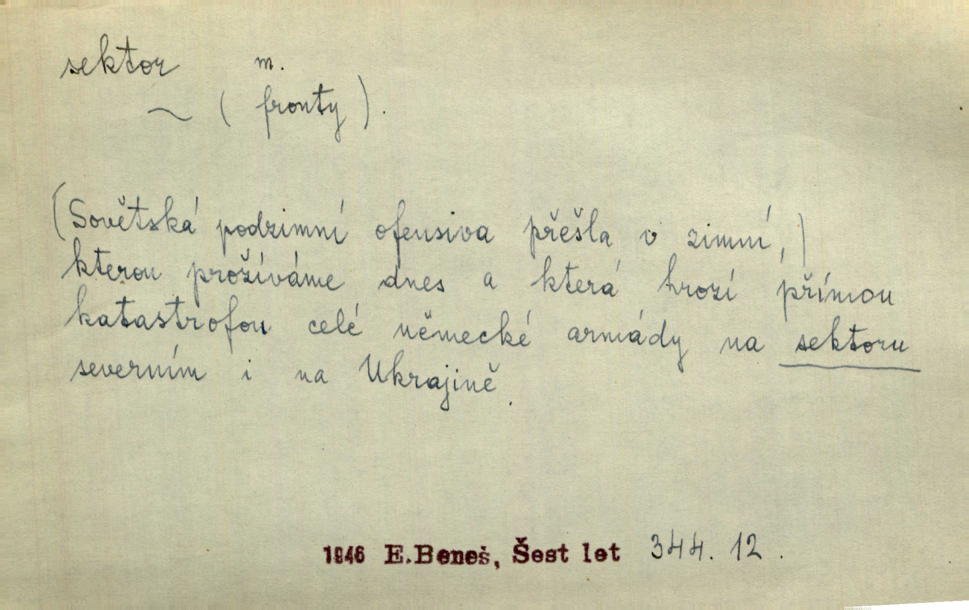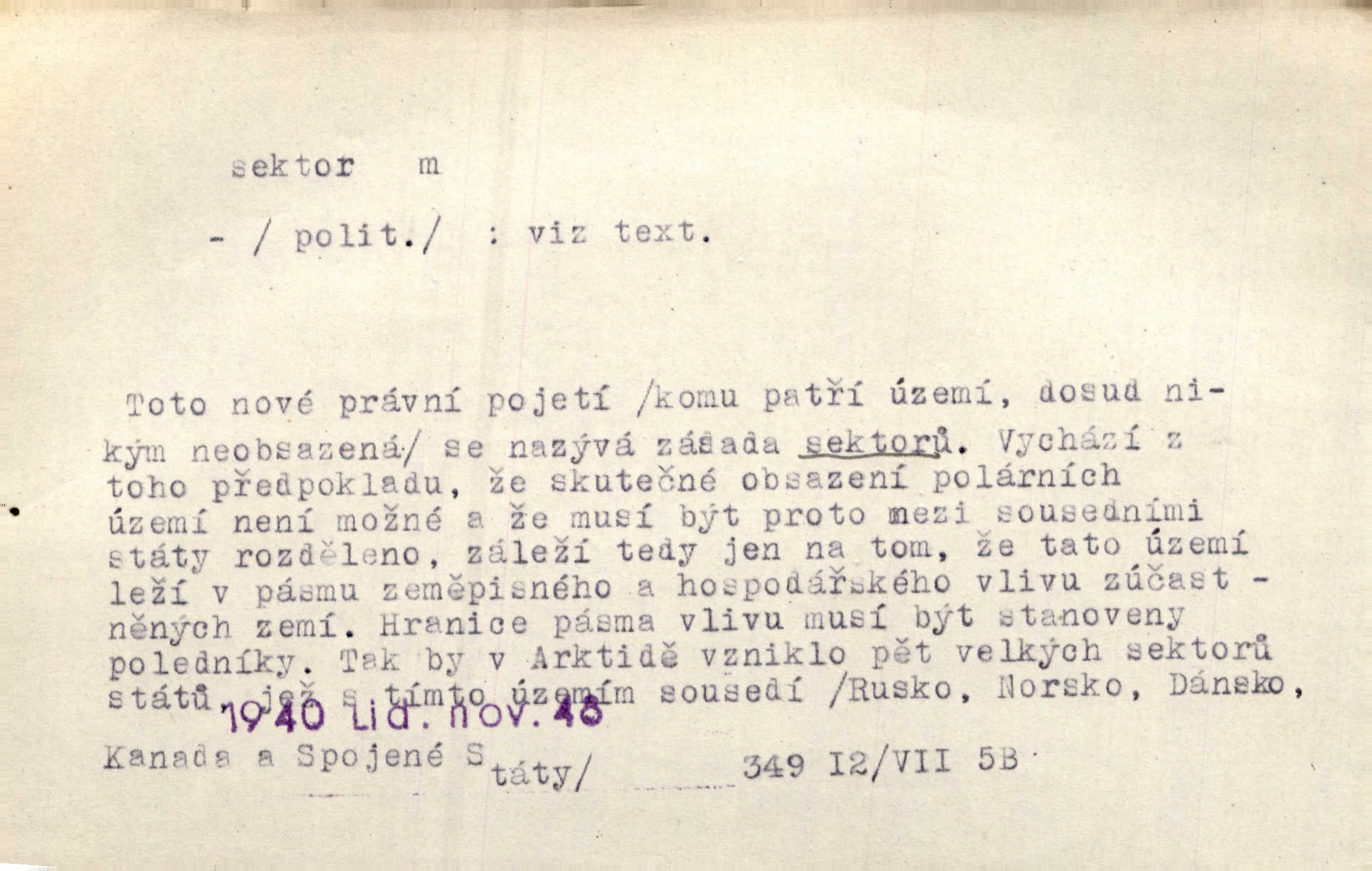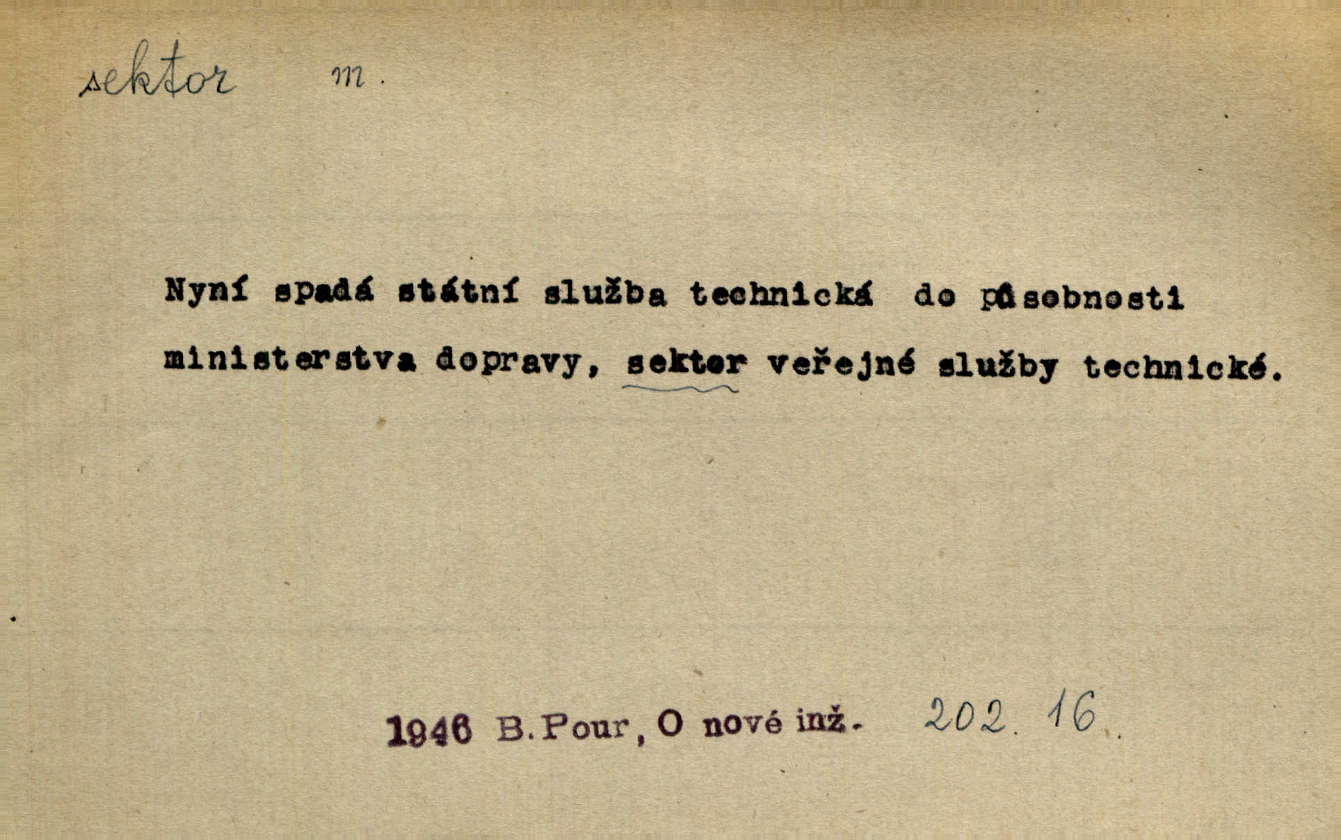 - sektor, -u m. úsek, část nějakého velkého celku (územního, národohospodářské skupiny a pod.). Regulační komise vypsala veřejné soutěže na čtyři pražské sektory a na regulaci pobřežní části Malé Strany. Vlastiv. V arktidě vzniklo pět velkých sektorů států, jež s tímto územím sousedí. Lid. nov. Ti, kdož jsou umístěni v sektoru zbrojařského průmyslu, nemohou si stěžovati na zkrácený provoz. Přít. Sektor pro slavistiku v historickém ústavu Akademie věd v SSSR. Lid. nov. Vnitřní svou organisací chce Exportní ústav sloužit oběma hospodářským sektorům, průmyslu i zemědělství. Čes. sl. D Geom. výseč. Meteor. teplý sektor vlny.