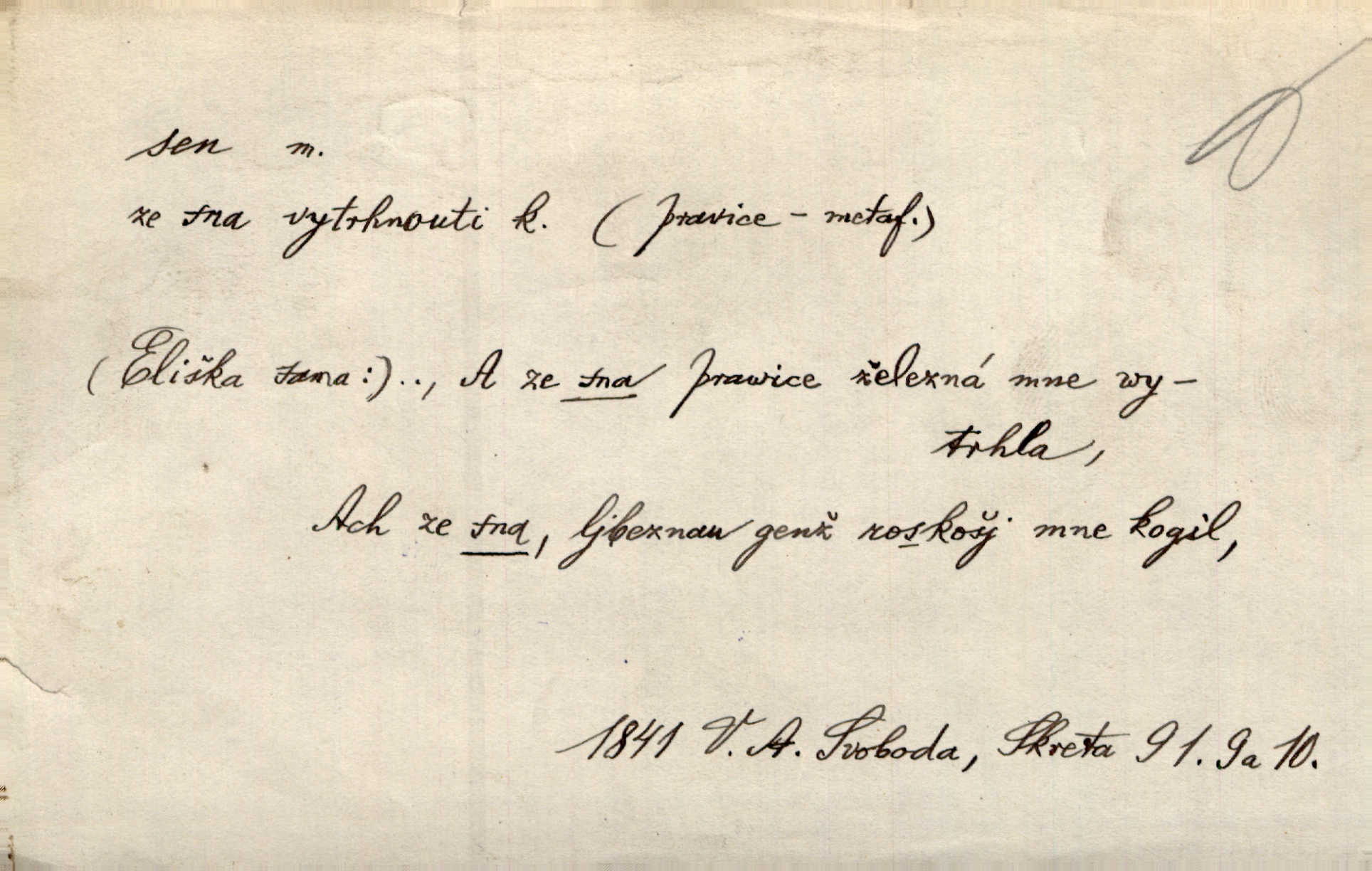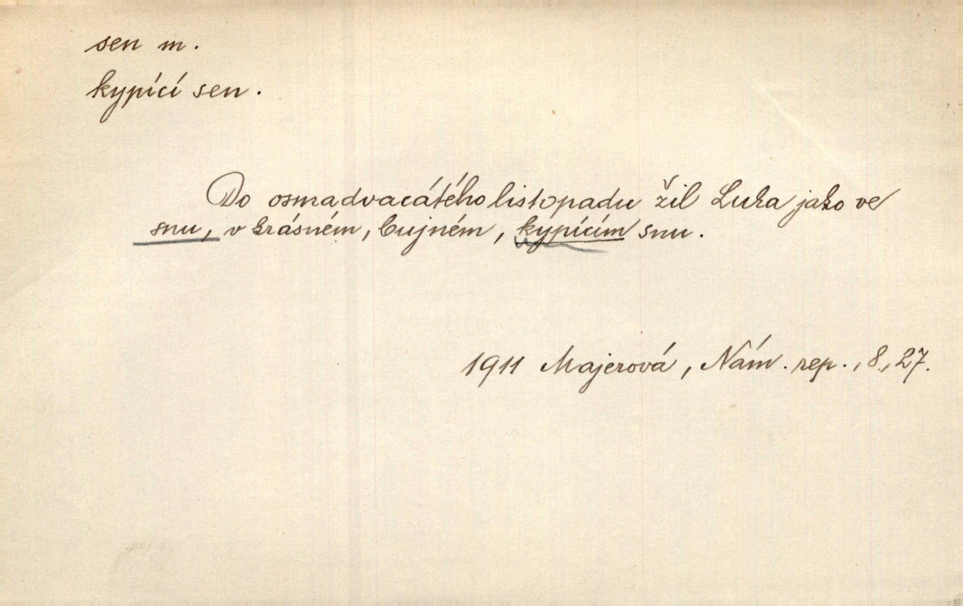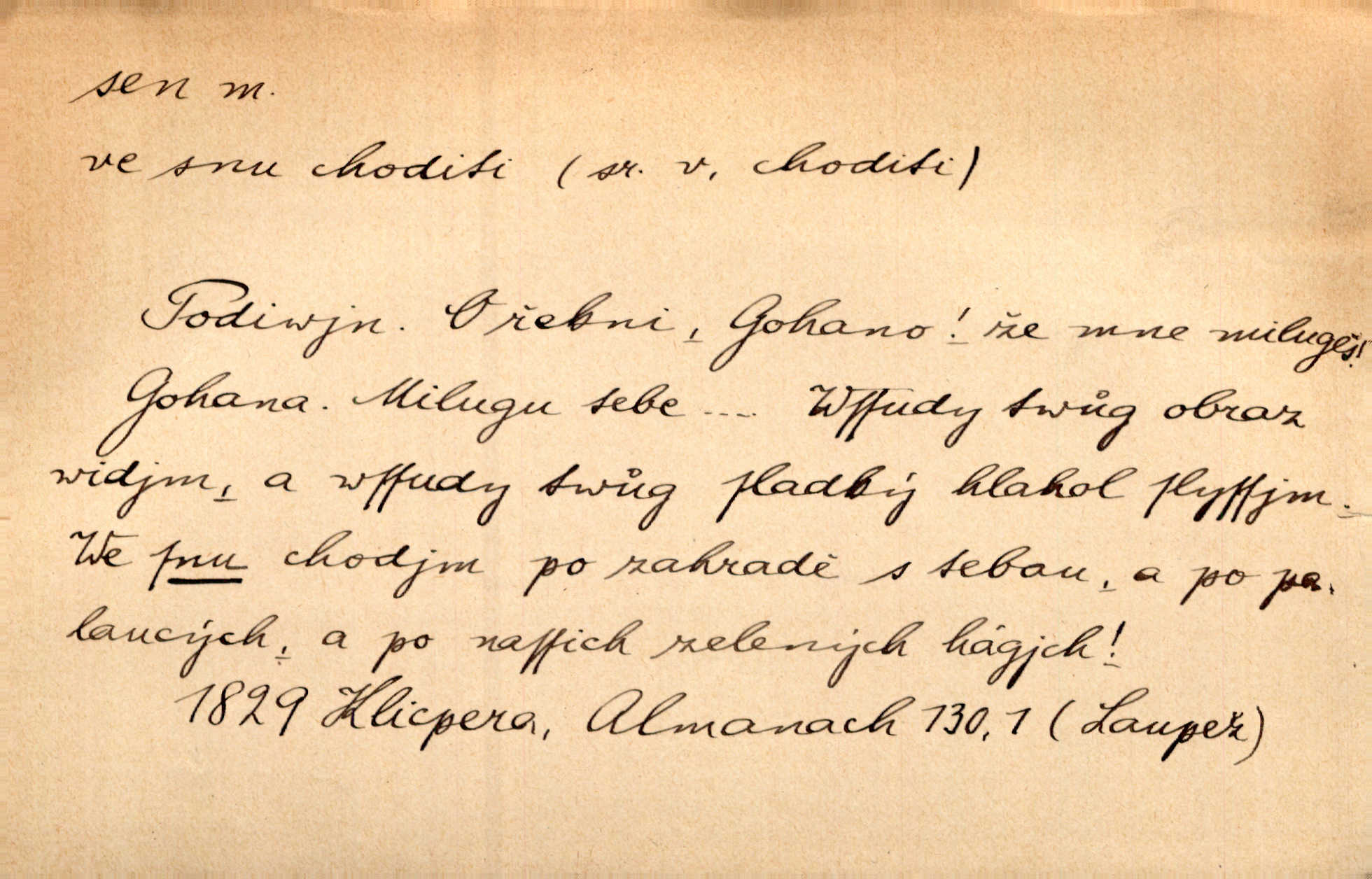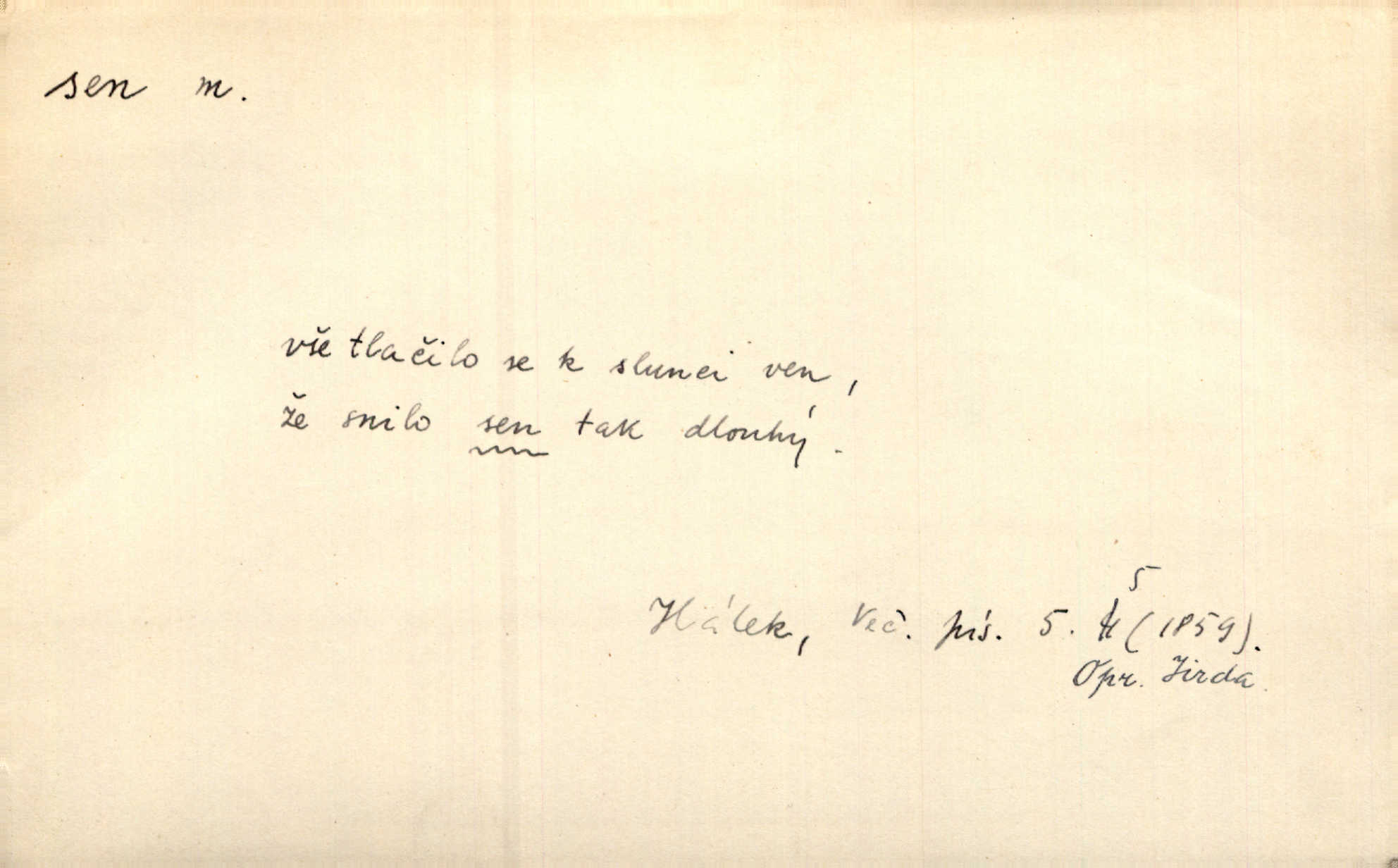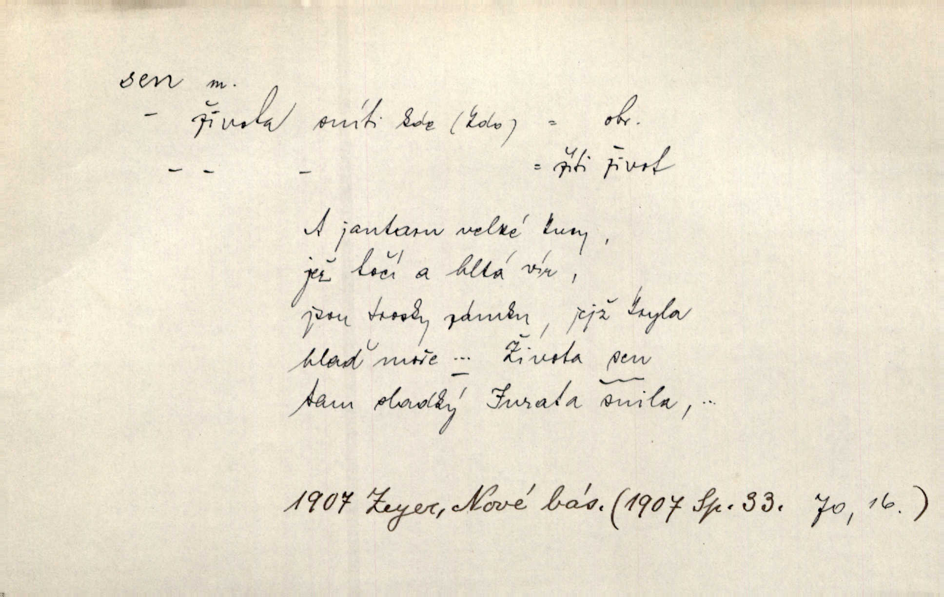 - sen, snu m. (2. sg. ve spoj. ze sna, 6. pl. též ve snách) poněk. kniž. spánek (op. bdění). Nežli by napočítal deset, spal jsem už snem spravedlivých. Kos. Nic už netísnilo tichý, zdravý jeho sen. V. Mrš. Zde odpočinu v pevném snu po dnešní pouti. Mácha. Bavívali se mezi sebou a zapuzovali tak sen. Šmil. Babička a vnuk spali, ale Irenu míjel sen. Jir. Zavřel oči a chtěl spát, ale po snu nebylo památky. Rais. Drůbež v hustých jejich [štěpů] korunách ze sna se pohnula. Rais. Ta bolest Stříhavku svírala, že nebude věčný sen dřímat vedle své nebožky že nebude pochován. Rais. Přen. V krajinu tichou kráčí sen. Mácha. Kolem ve snu dřímá luh i sad. Jan. Zasvitlo ráno, ze sna probudil se sad. Štulc. Vše dřímalo železným snem v náručí tuhého mrazu. Zey. Když byl již Přemysl vysoko v letech, usnul snem smrti zemřel. Jir. D bezděčné vybavování představ a prožívání dějů ve spánku; obrazy n. děje ve spánku viděné. Noc co noc spím krásně a beze sna. K. Čap. Ve snech se vyskytují nejčastěji dojmy zrakové. OSN Dod. Já měla zlý té noci sen: Nechoď dceruško k vodě ven. Erb. Jen zavřela oči, už se jí pletly sny, o bratru, o faráři. Jir. Voral i ve snu vídal ten dlouhý pás svých polí. Rais. Celou noc mluvil ze sna. Svět. K tvému otci přišel ve snách sv. Petr? Hol. Jdi, bláhová! Což na sny věříš? Špind. Vše tlačilo se k slunci ven, že snilo sen tak dlouhý. Hál. Jako po živém snu prochvívaly mu myslí ještě včerejší dojmy. Jir. Bylo mu, jakoby se probíral z ošklivého sna nepříjemně. Herb. Žil jako ve snu, v krásném, kypícím snu krásně, idylicky. Maj. Chodí jako ve snách a kale nemluví jako mátoha. Rais. Jako ve snách pamatoval se na popis krajiny neurčitě. Pfleg. Jako ve snu viděla jsem, že mne bral někdo do náručí ne v plném vědomí. Něm. Krásné to zjevení zmizelo jako sen rychle. Zey. Jemu ani ve snu nenapadlo, že by se vůbec kdy mohl mýlit vůbec ne. Klost. Něco takového matce Kulichové ani ve snách nepřipadlo. Herrm. D představa, kterou si někdo o něčem n. o někom vytvořil bez ohledu na skutečnost, výtvor obrazotvornosti, iluse, vidina; snění, blouznění, dumání. Nechoď vůbec do Athén, je-li ti milý sen! Ner. Nechme je doufati, neberme jim ten krásný sen! Rub. Snem se blažila, nebo skutečnost byla tak smutná. Jir. On viděl, za snem že byl putoval hned od počátku svého života. Zey. [Člověk] utíká se k blouznivým snům a vzpomínkám na doby lepší. V. Mrš. [Zeyer] uchyloval se do nádherných svých snů. V. Mrš. A ta Praha jeho snů a tužeb prchala před ním jako fantóm. Zey. Nikdy jí nebyla obrazotvornost její sny živé předváděla. Ner. On zase má své náboženské sny. J. z Hv. [Aleš] sen své duše podává, tedy vnitřní pravdu kreslí. V. Mrš. D vroucí, toužebné přání, těžko splnitelná n. dostupná tužba, naděje, plán. [Básník] mohl realisovati svůj dávný sen. Kar. Teď čte najednou, že se má splnit jeho krásný sen — rolnická škola. Baar. Národní divadlo náleželo k jeho (Chmelenského) zlatým snům. Tyl. A slýchala jsem o něm povídat, o smělých snech, jež uskutečnit chtěl. Zey. Rozhovořil se o svých snech a plánech. Hlad. Musil se rozloučiti se sny o výnosném místě. Jir. Kochala se v blahých snech, o jichž uskutečnění nepochybovala. Něm. D něco neskutečně krásného, prchavého, pomíjivého. Ten lásky sen, jak krásný byl. Sab. Žiltě [Hálek] v růžovém snu své první lásky. Jir. V života sen byl jsem já snad jen vyváben. Mácha. Jeho řeč, ať byla podstatná, ať pouhý sen, se šířila po celém kraji. Zey.