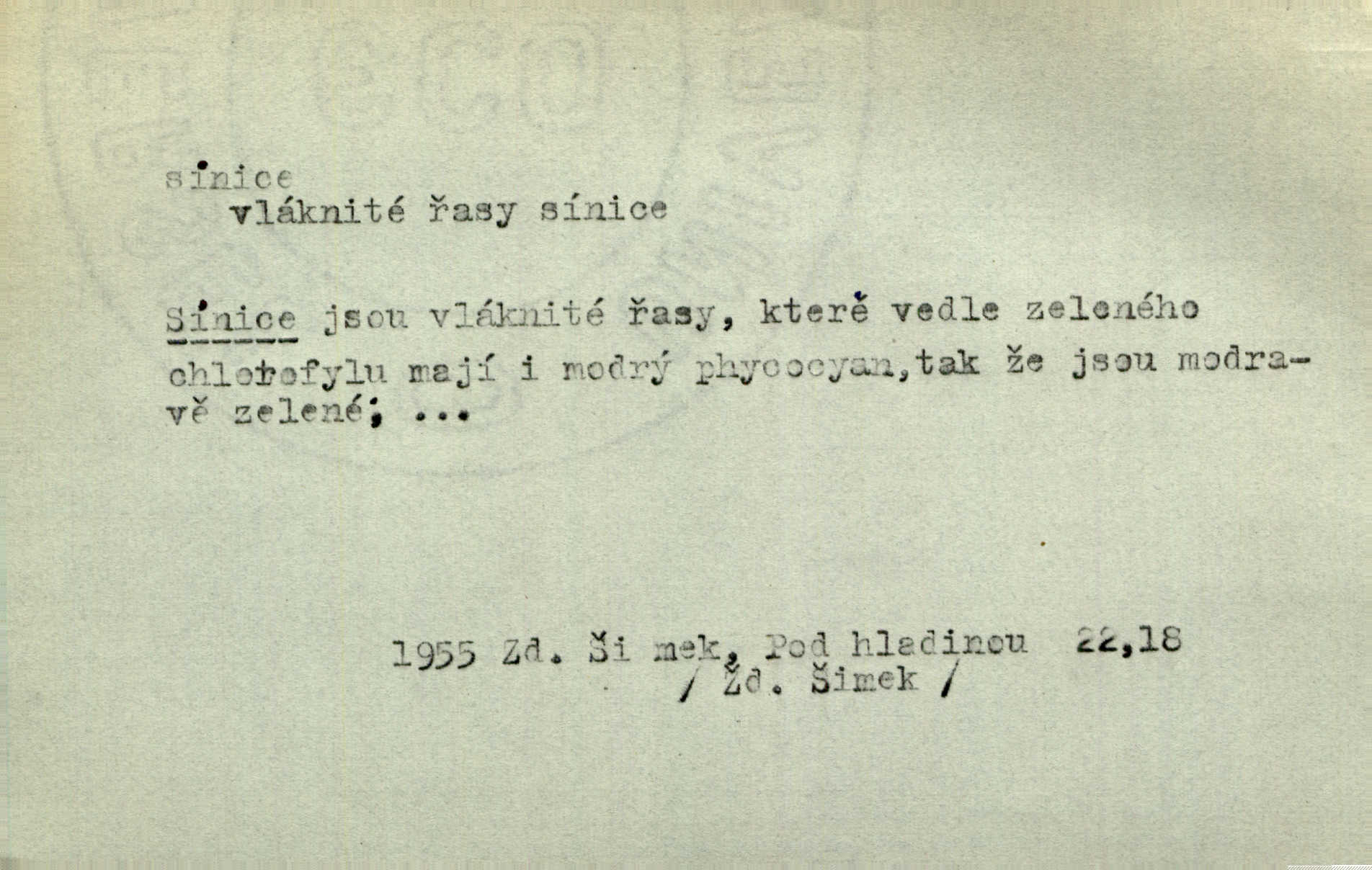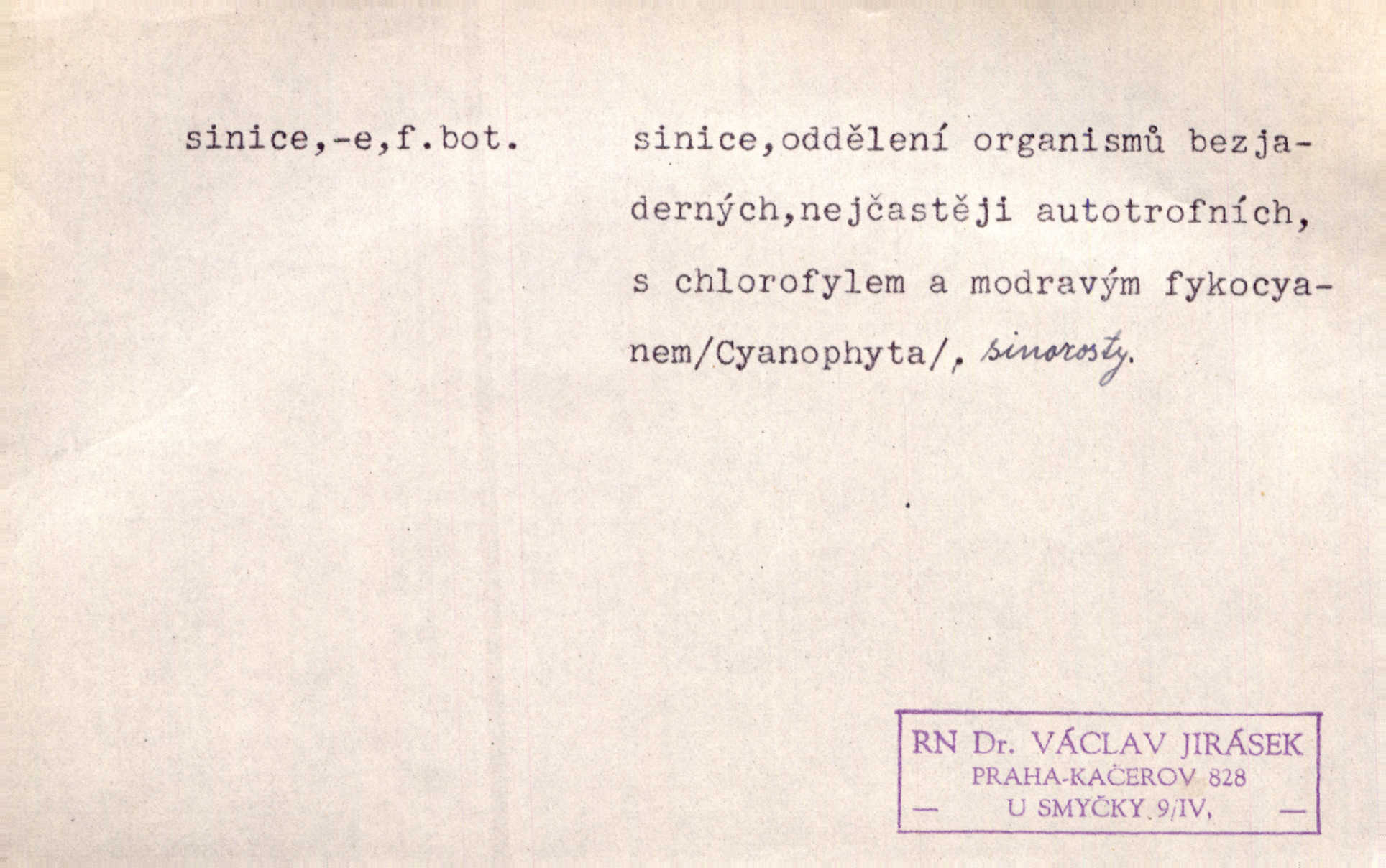 oddělení organismů bezjaderných, sinorosty, Cyanophyta.