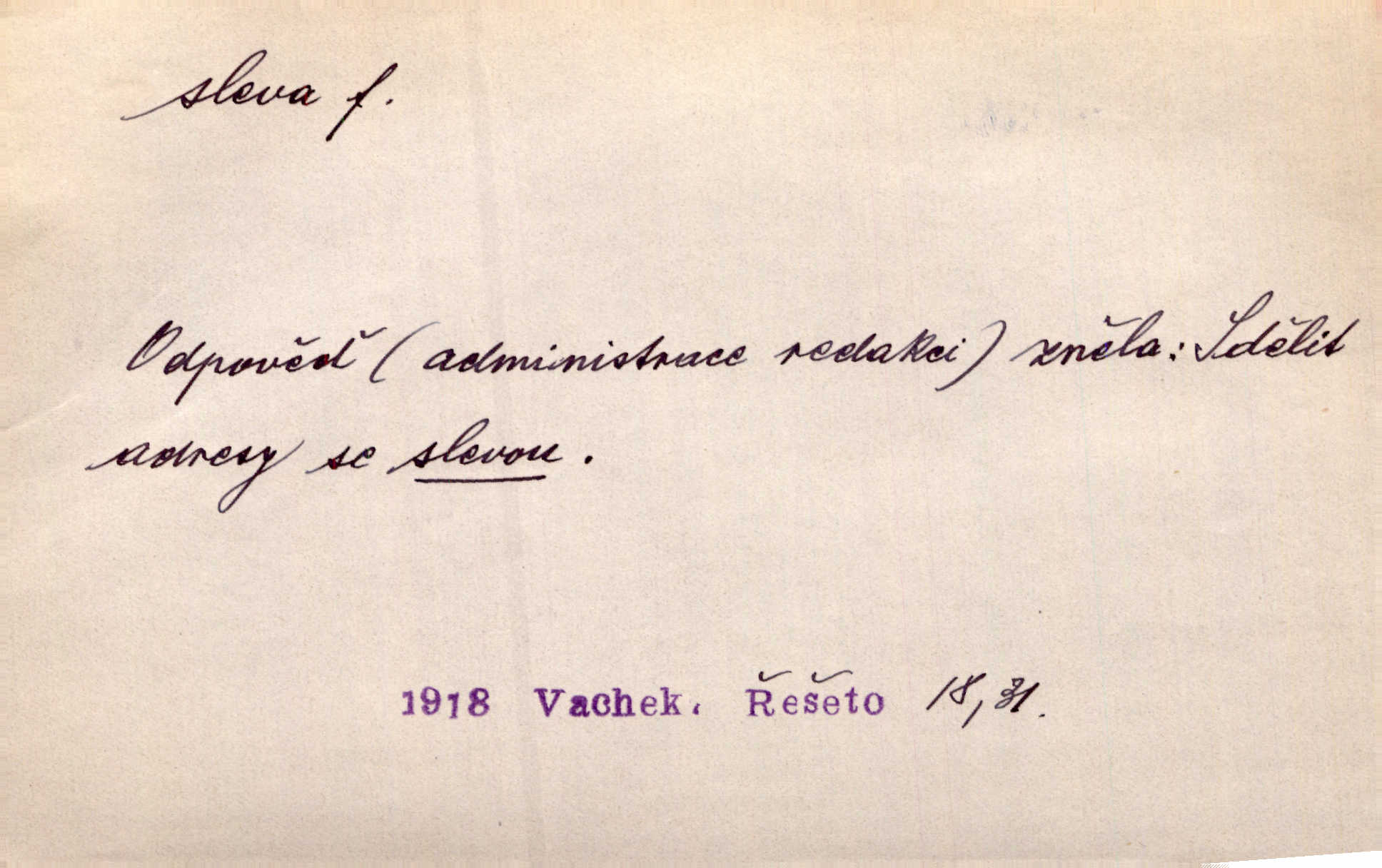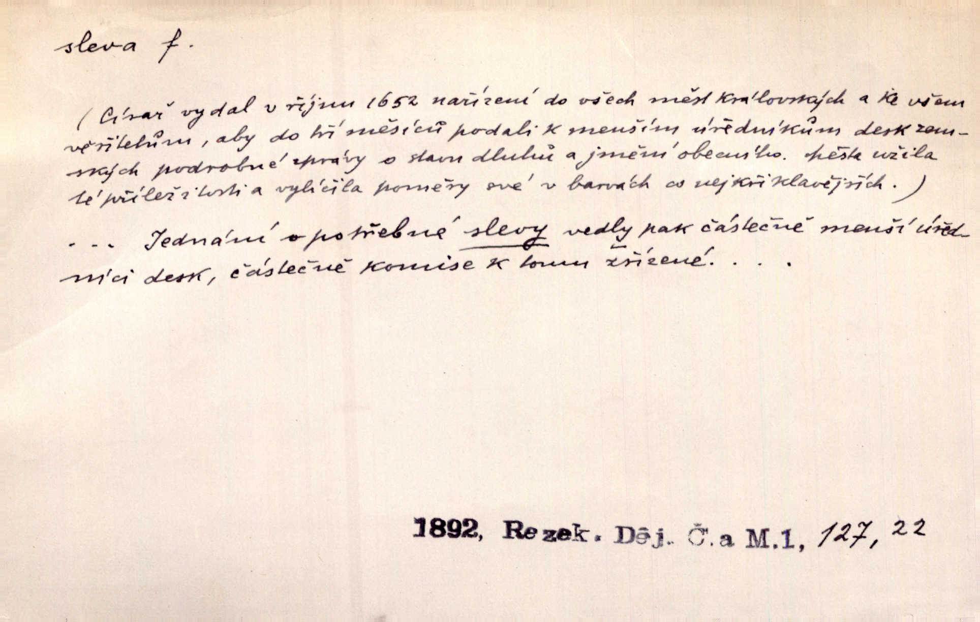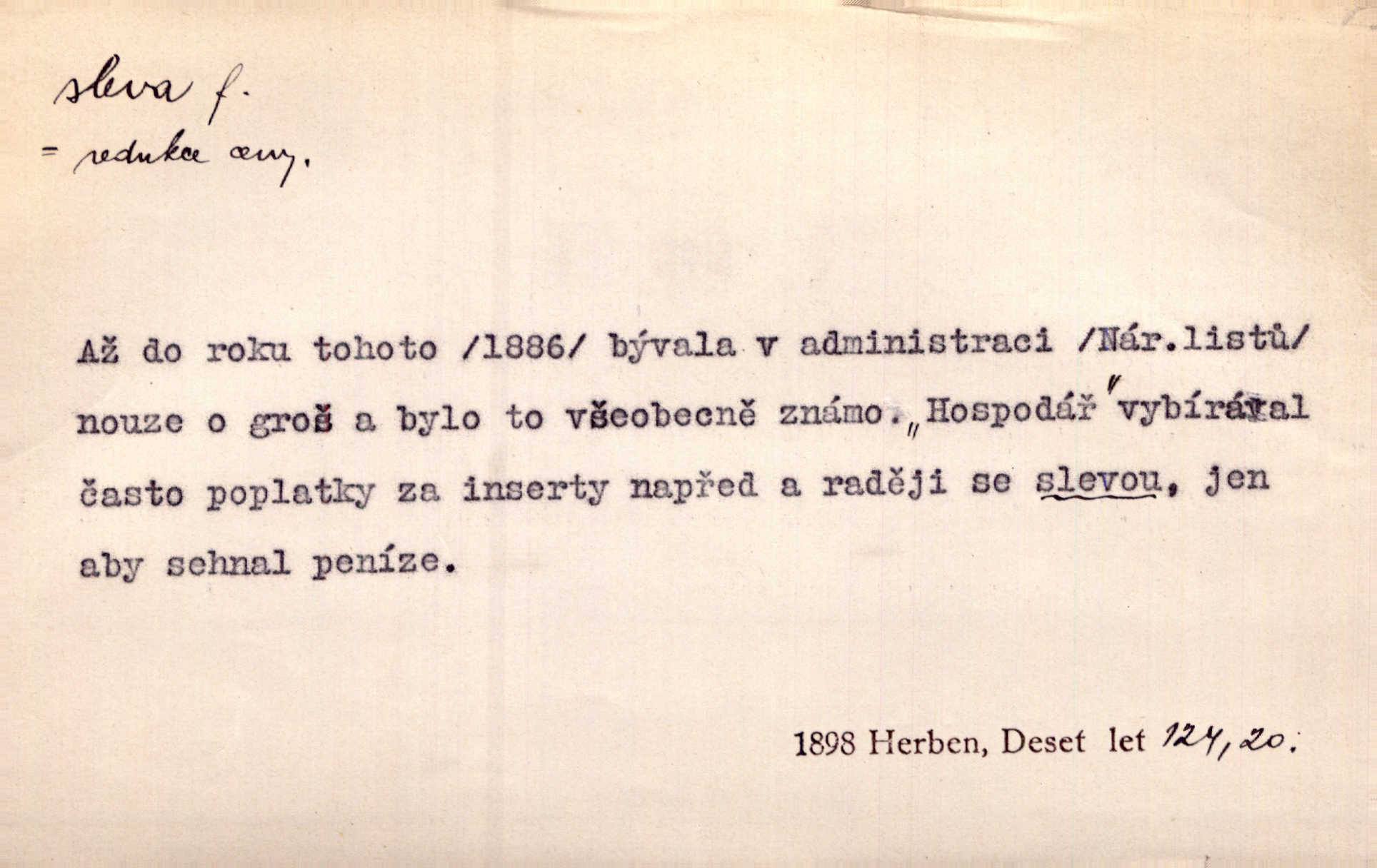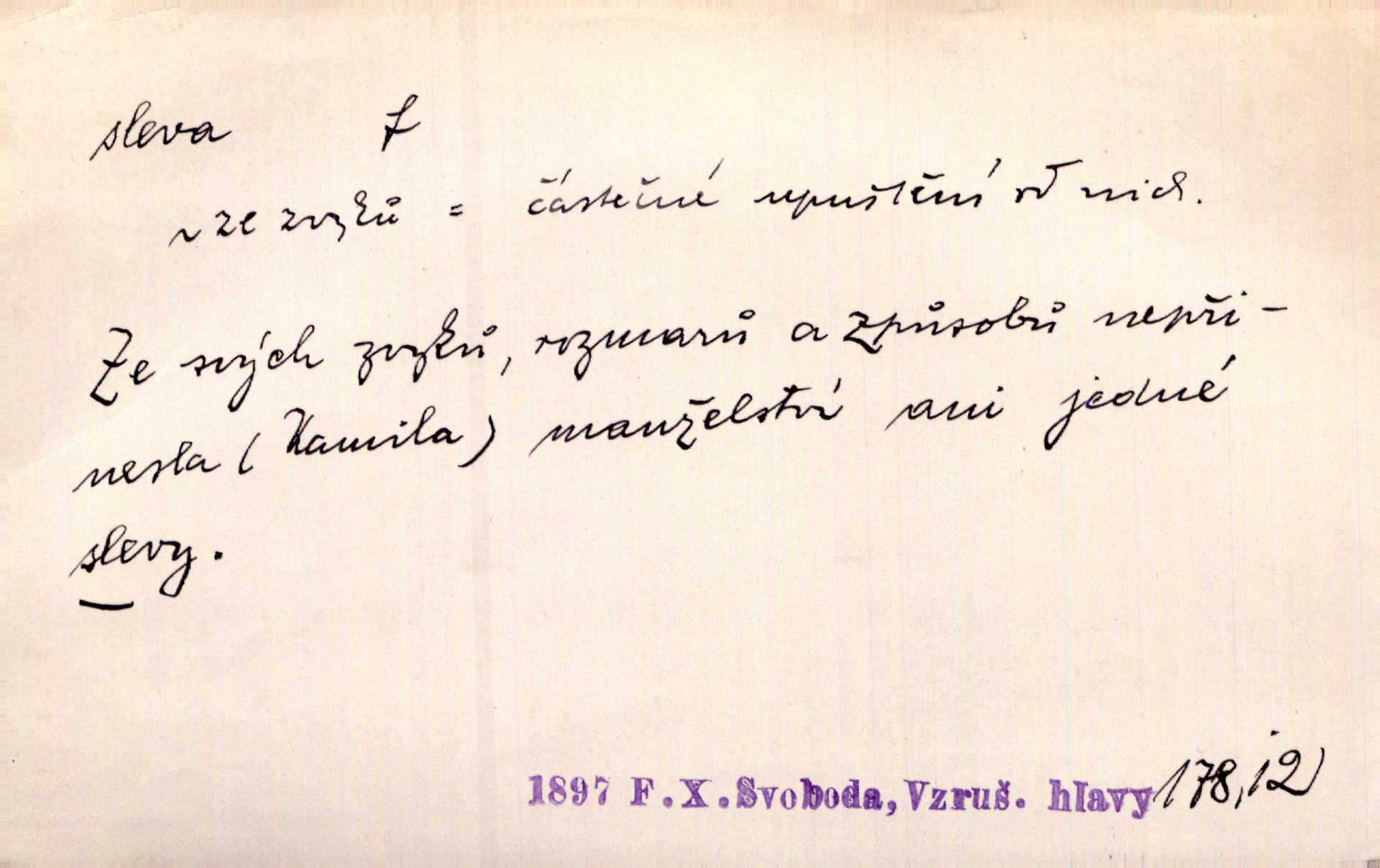 - sleva, -y f. (dobrovolné) snížení platné ceny při prodeji zboží. Majitel pekárny neposkytoval slevy. Dur. „Hospodář“ vybírával často poplatky za inserty napřed a raději se slevou, jen aby sehnal peníze. Herb. Žel. tarifní slevy. Přen. Člověk a život učiní spolu rozumný kompromis, vymezí si vzájemné slevy a ústupky. Šrám. Ze svých zvyků, rozmarů a způsobů nepřinesla manželství ani jedné slevy. Svob. Netrpěla nám [matka] škemrání o nějakou slevu svého rozhodnutí. Krás.