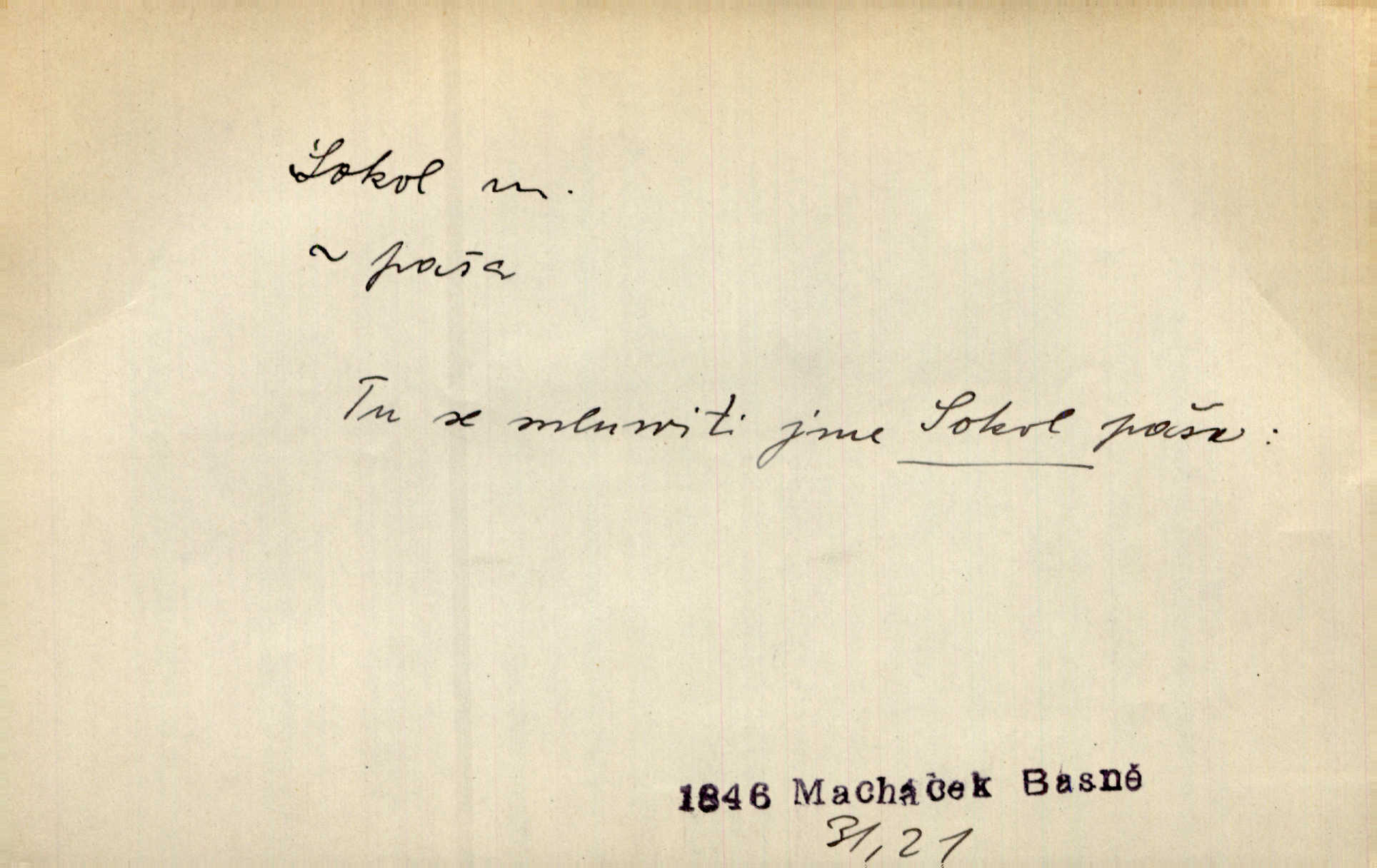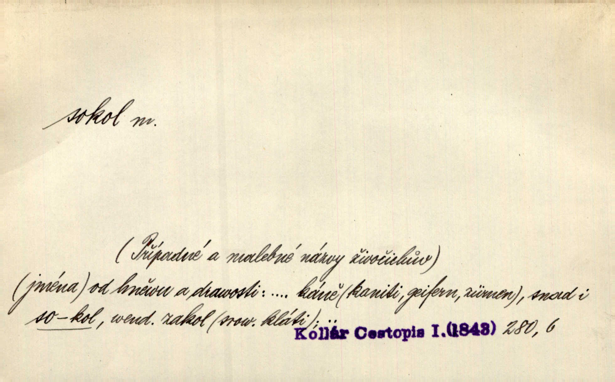 - sokol, -a m. menší dravý pták, schopný loveckého výcviku. Nad lesem krouží sokol. Hál. Cvičil je [syny] v lovectví, chovaje dobře cvičené psy, sokola a raroha. Jir. Nedivte se sokolovi, že slavíky dáví. Ner. Vypadám jako sokol, když je oškubán! ošklivě. Ner. S verandy hledí opřený voják do dálky jako sokol. Ner. Zool. rod dravců z čeledi Falconidae. Falco; sokol stěhovavý. Sokolové čeleď ptáků, Falconidae. D Expr. člověk, hoch statečný, bystrý, statný. Slavné vítězství aneb slavná smrt, to je heslem sokolů černohorských. Zl. Praha. „Na zdar, sokole,“ volal na něj vesele a podával mu ruku. Šim. D Těl. Sokol česká a vůbec slovanská tělocvičná organisace; člen této organisace.