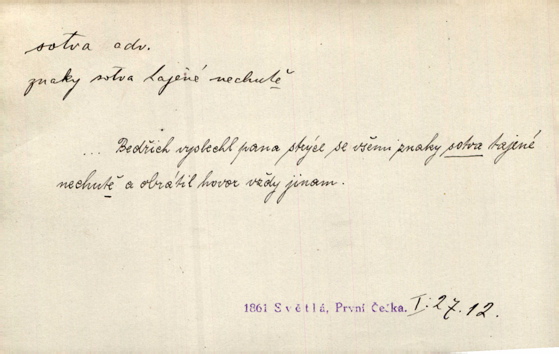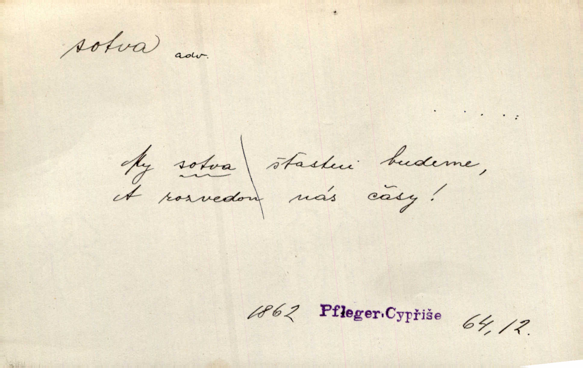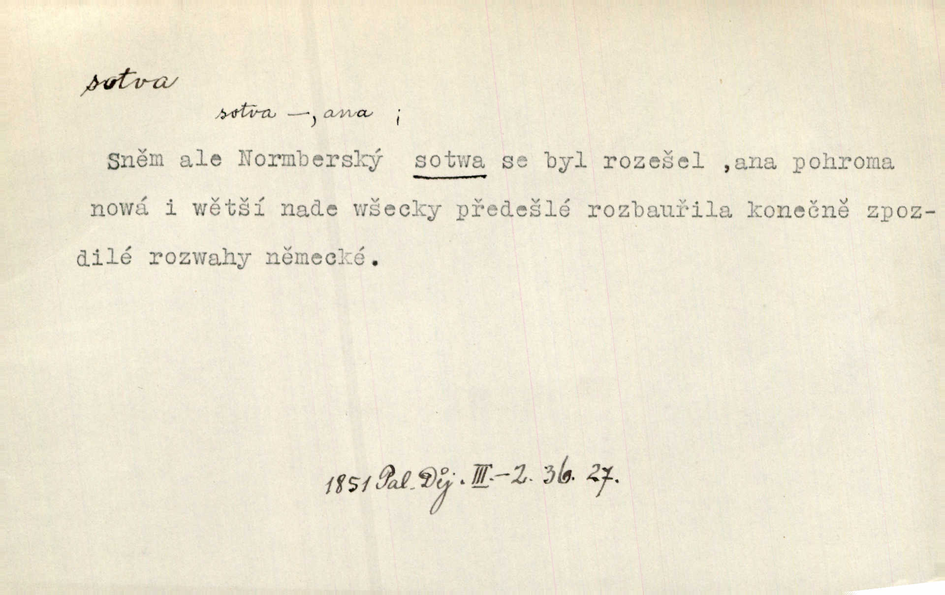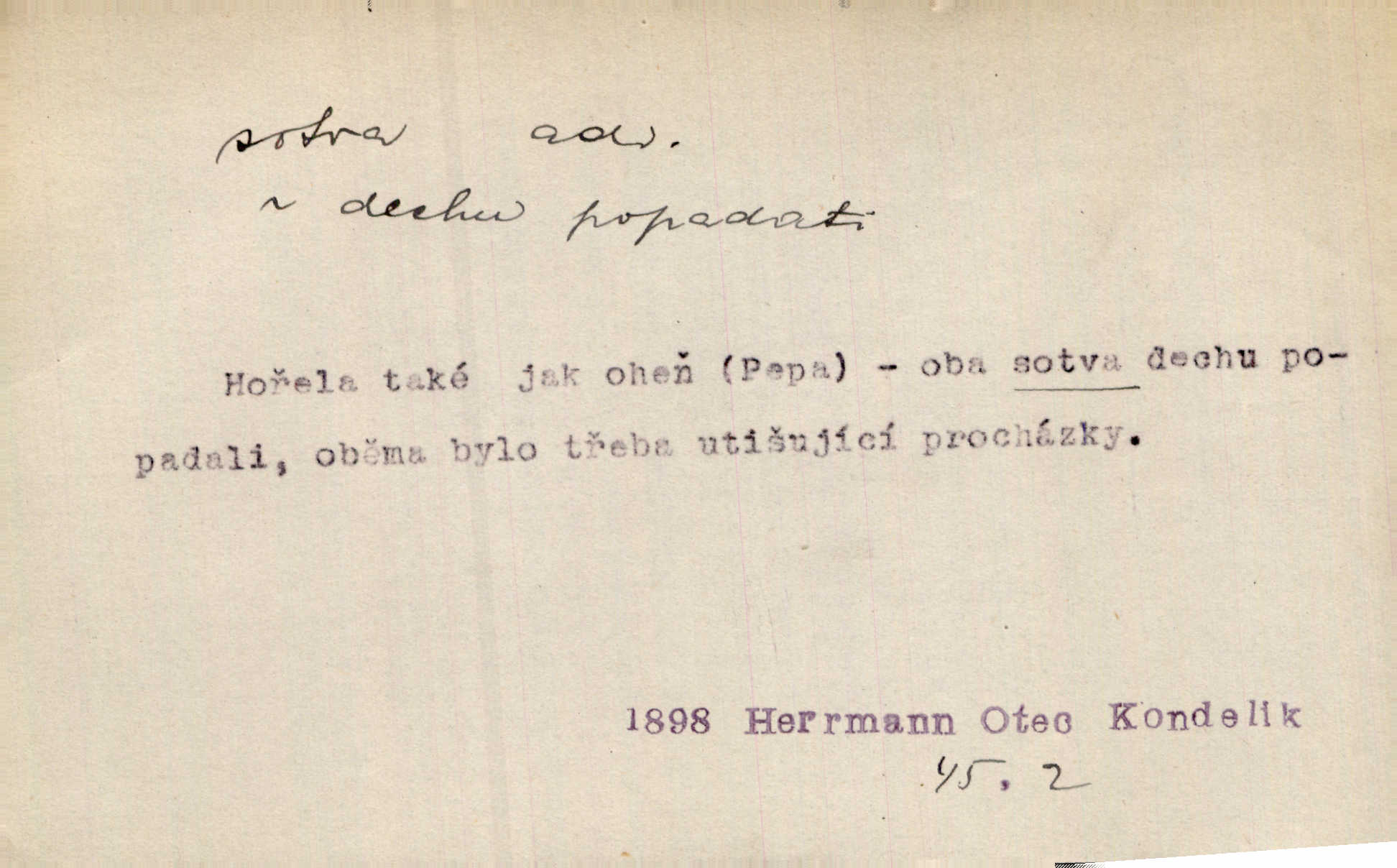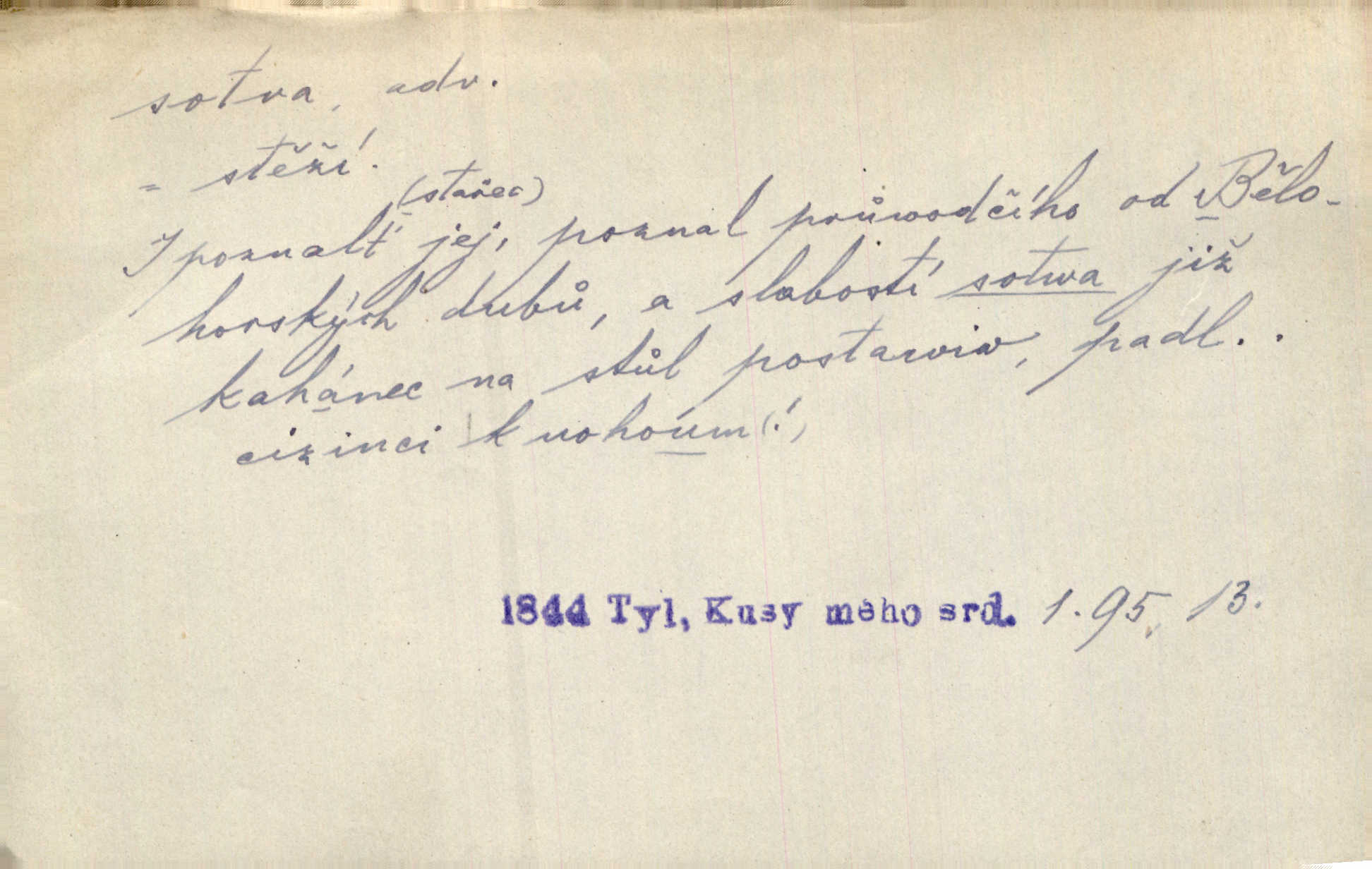 - sotva (poněk. zast. sotvy) adv. stěží, s námahou, těžce. Babička chudák stará sotva se vyškrábala. Něm. Já už taky kolikrát sotva lezu. Rais. Béře, béře ze hromady — klín již plný, sotva vstává. Erb. Oběma Karlíkům nasekal, že sotva šli. Jir. Vidí před sebou uzounký otvor, takže by se tam velký člověk sotva byl protáhnouti mohl. Něm. Vraziv [do světnice], dechu sotva popadaje jektal: „Maminko —.“ Rais. Mohla sotva ubránit se pláče. Vrch. Sotva ten jazyk že jsme si zachovali, a to ještě ne všichni a ne čistě. Havl. Žebrák sluchu sotvy věří. Staš. D vyjadřuje pochybnost, mírný odpor; asi ne, patrně ne, pravděpodobně nikoli. Kdybys věděla, kde to vlastně sedíš, sotva by se ti tu líbilo. Svět. To se sotva dá upříti, že se mnohá [dívka] snaží, aby zde našla obdivovatele. Hál. Komu není shůry dáno, v apatyce sotva koupí. Hajn. Jaký on je, on sotva uvěří. Jir. Máš na hradě co na práci? Sotva! Jan. [Rozárka:] Či není to zákonu jedno, kdo se dá za vinu potrestat? [Prokop:] To sotva. Tyl. „To on už, prosím, také sotva přijde,“ zněla odpověď. Šim. Od oné noci sotva kdo práh jizby té překročil. Jir. Myslíval, že by mu stará služka sotva čím mohla posloužiti. Jir. Dlouho se tu sotva kdy omeškal. Jir. D vyjadřuje velmi malou míru děje, činnosti, nemnoho, nepatrně, téměř ne. Přečetné obory technické leží ladem vůbec netknuty, nebo jen sotva. Čteme. V zadu naloženy byly dva kufry, které pro otepě sena sotva bylo viděti. Jir. Té noci jsem sotva oka zamhouřil. Jir. Cizinec bydlí na pusté skále, slunce mu sotva zasvítá! Mácha. Nebe stálo jako mramorové, suché listí sotva zašustělo. Herb. Na můj pozdrav sotva poděkovala. Šim. Olga sotva že se ohlédla a usmála. R. Svob. D vyjadřuje těsné dovršení něčeho, jen tak tak. To bylo děvčátko sotva tříleté. Rais. Dvacetiletý panovník oženil se s překrásnou Milenou Vukotićovou, tehdáž sotva čtrnáctiletou. Hol. Zdálo se mu, že leží sotva minutu. Herrm. Vždyť jsem pil sotva sklenici vína. K. Čap. Zpěváci přezpívali sotva dvě sloky. Třeb. Udělal sotva dvacet krokův. Šmil. Mně se nelíbila žádná, neboť mně sotva po kolena dosahovaly. Herb. D nedlouho, nedávno, krátce předtím. Jan Kolářík, mladý mužák sotva ženatý, vezl v zimě na saních dřevo s kopce. Herb. Vypadala jako z hnízda vyhozené, sotva vylíhlé ptáče. R. Svob. Slunce, které bylo sotva vyšlo, zdálo se jí šeré. Zey.