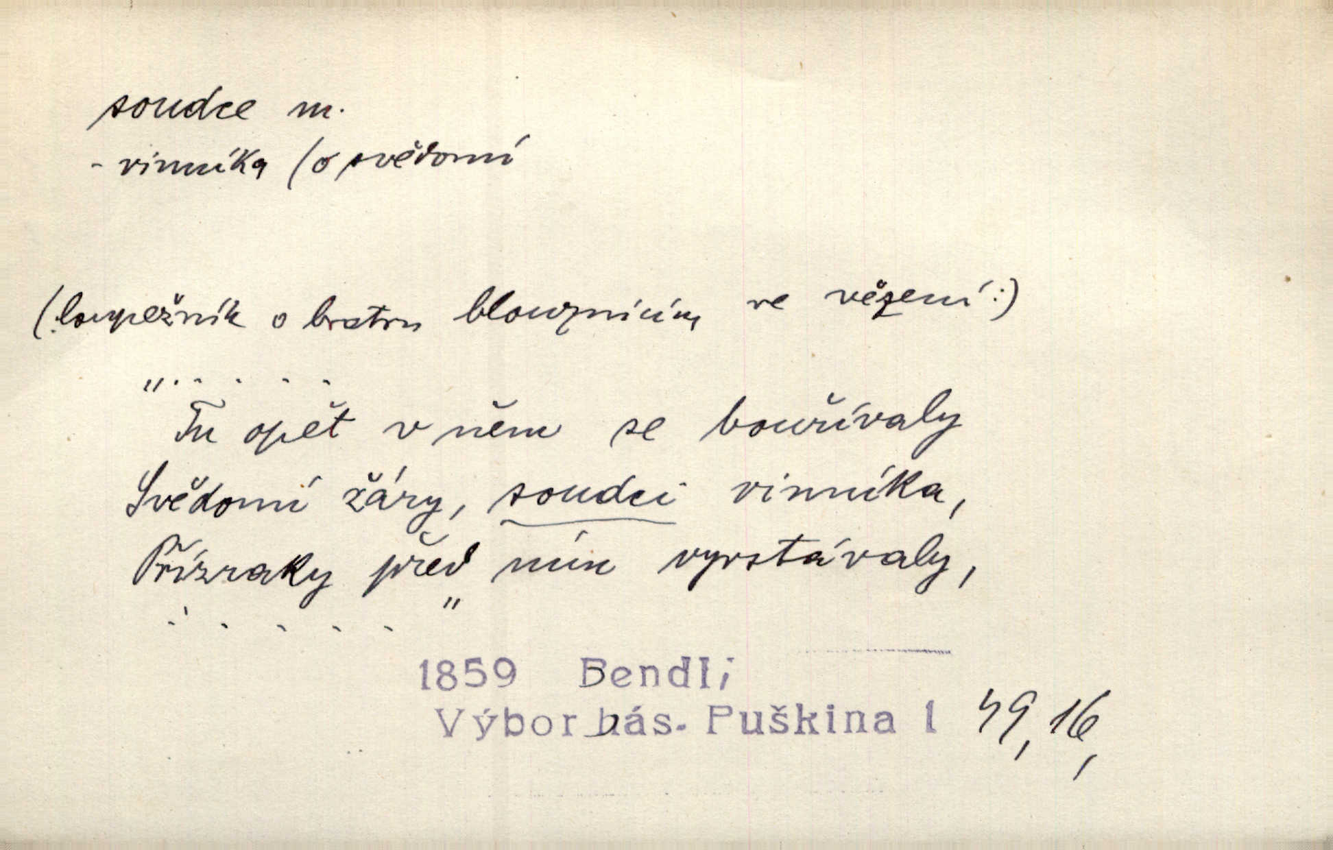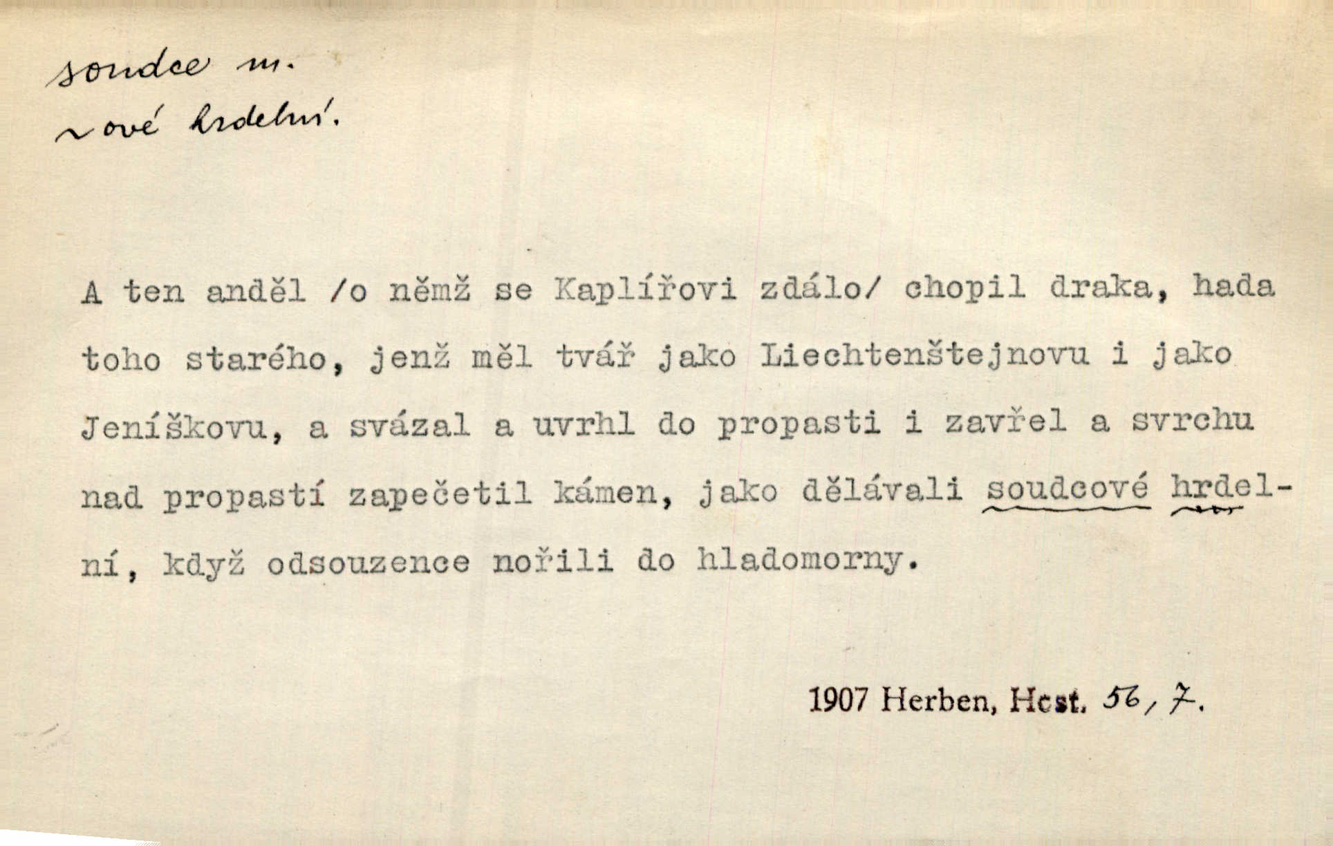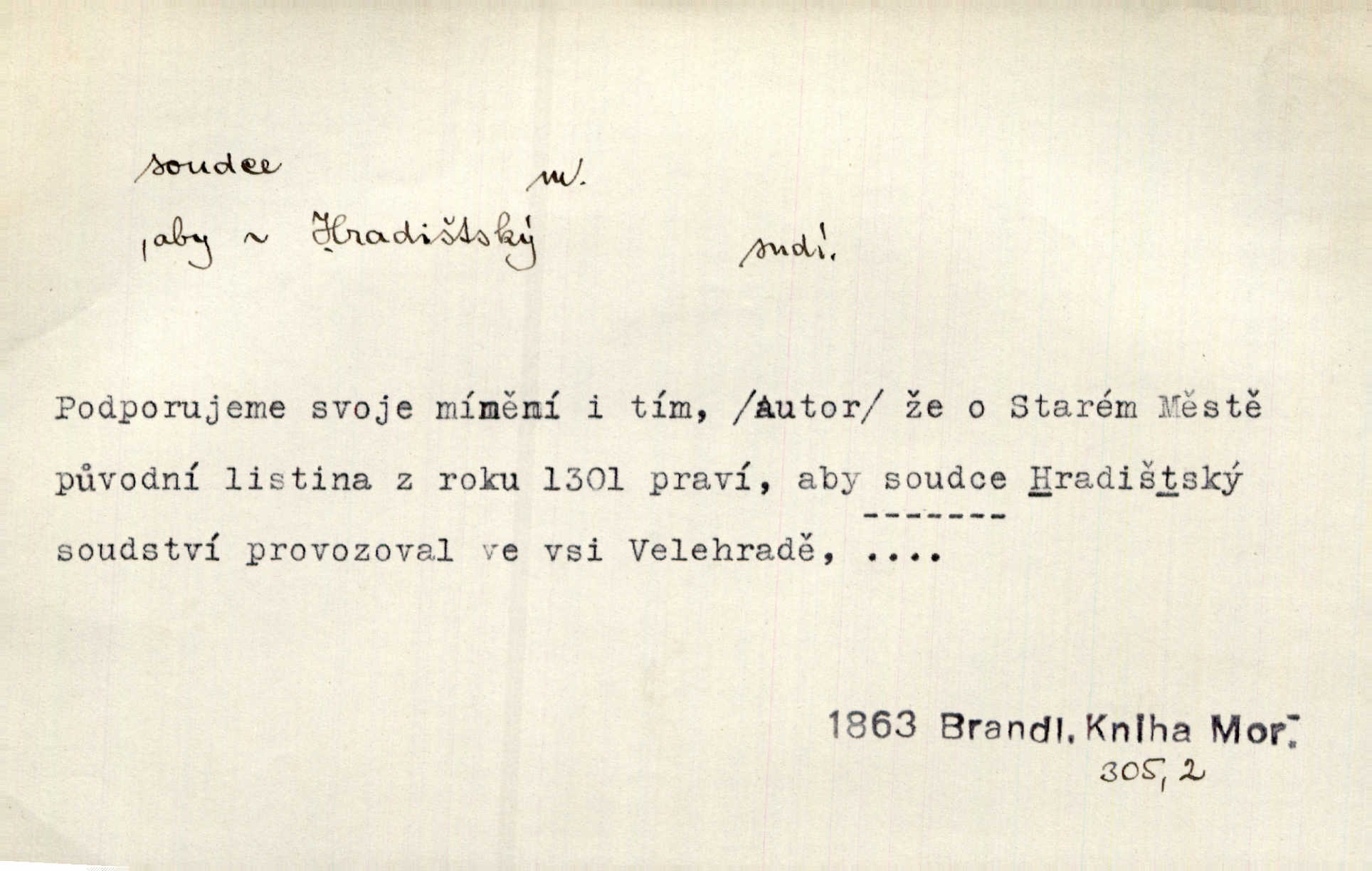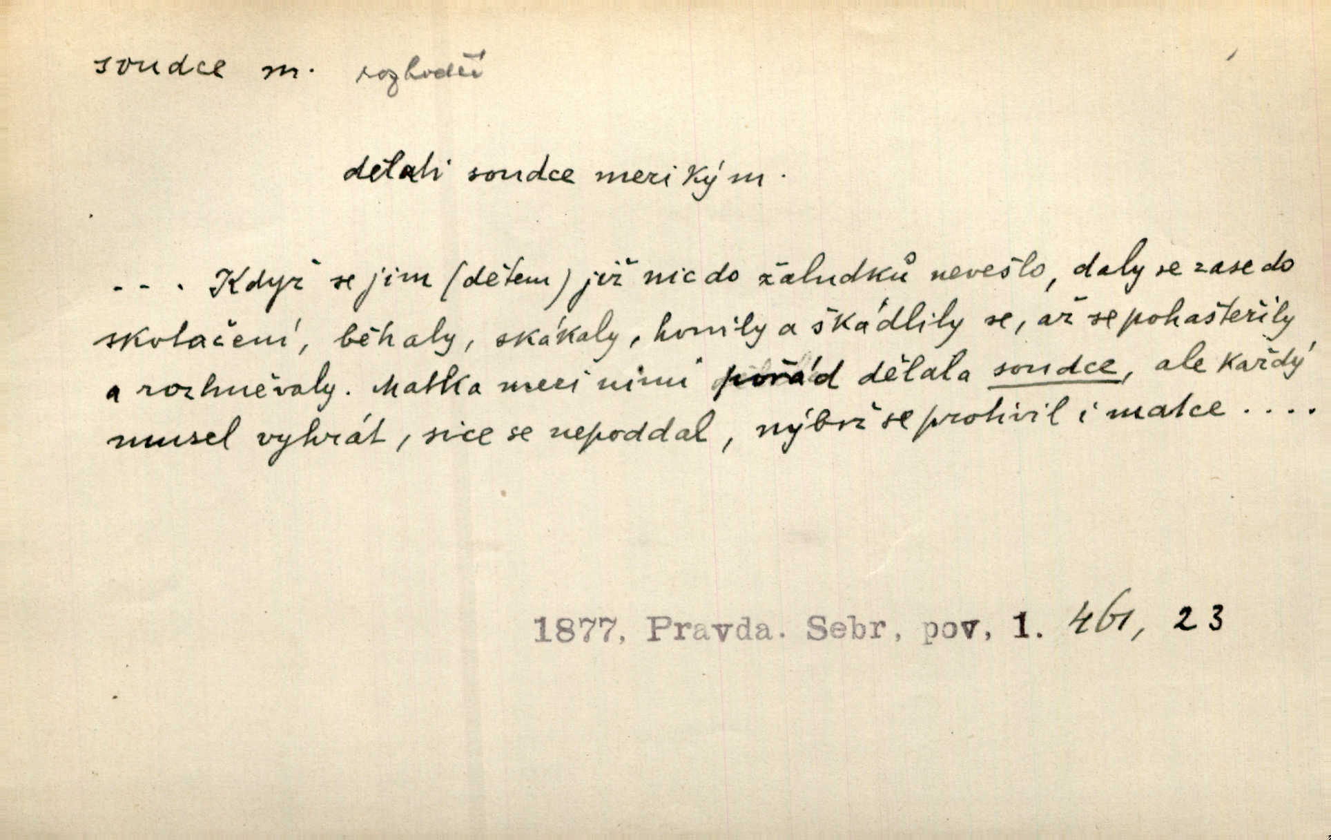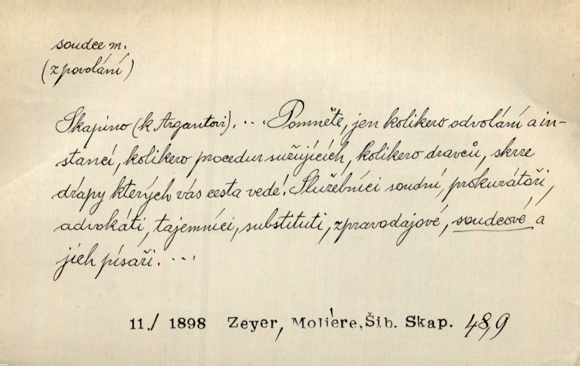 - soudce, -e (dial. soudcí, -ho) m. osoba pověřená řízením a rozhodováním pře. Soudce musel souditi. Šmil. Byl pyšný a nechtěl uposlechnouti nálezu soudcova. Helf. Vejdi, kam chceš, vejdi k hejtmanovi, soudcímu, a řekni jenom: Šolar! Nic víc. Mat. Dívajíc se mu do očí jako vyšetřující soudce, dala mu [kuchařka faráři] otázku. Baar. Nevíš-li a nekážeš-li ty, nevinná krev že volá do oblak o pomstu nejpronikavěji a že volání její před spravedlivého soudce proráží nejjistěji? Třeb. Jednou budeš umírati a před věčným soudcem za sebe účet skládati Bohem. Šmil. Dej, Soudce věčný, ať jak chci, tak mohu! Krás. Kdo tam v osamělé době s modlitbou se Soudci pokloní? Jabl. Práv. vyšetřující soudce člen krajského soudu, jemuž náleží konati přípravné řízení (vyhledávání i vyšetřování) o zločinech a přečinech. Soudce lidový osoba, jež nejsouc soudcem z povolání, jest povolána k soudcovskému spolupůsobení v trestním řízení. Vojenský soudce důstojník justiční služby, vykonávající vojenskou soudní pravomoc. Soudce laik vojenská osoba povolaná jako přísedící při soudním líčení. D rozhodčí při nějaké soutěži, při závodu, zápase a pod. Bylo umluveno, že bude místo souboje v Třebovli, soudcové boje pan Tista i rytíř Radimský. Ritt. V roce 1881 byl soudcem v polském konkursu básní o Calderonovi. Mach. Sport. rozhodčí. D kdo pronáší posudek, soud, posuzovatel, kritik. Z výkladu tohoto pozná každý nepodjatý soudce, že my oboru činnosti čili područí moci centralní anebo říšské nikoli nechceme klásti meze nedostatečné a ouzké. Pal. A Bassompierre byl všeobecně uznaným soudcem vnad ženských. Třeb. Shakespeare, básnický soudce minulosti, vystupuje tu [v Richardu III.] jako tvrdý, neúprosný posuzovatel. Týd. rozhl. Pochvalně se soudcové taktéž zmínili o kusu „Zdeněk ze Zásmuk“. Ner. Druhým soudcem ve věci vkusu je cit. Tille. Neznám jiného soudce než své svědomí. Zey. Nad mým svědomím neuznávám já nikoho na zemi za soudce. Pal. D Bibl. soudcové občasní osvoboditelé a vládci jednotlivých pokolení izraelských. Kniha Soudců část Starého Zákona.
