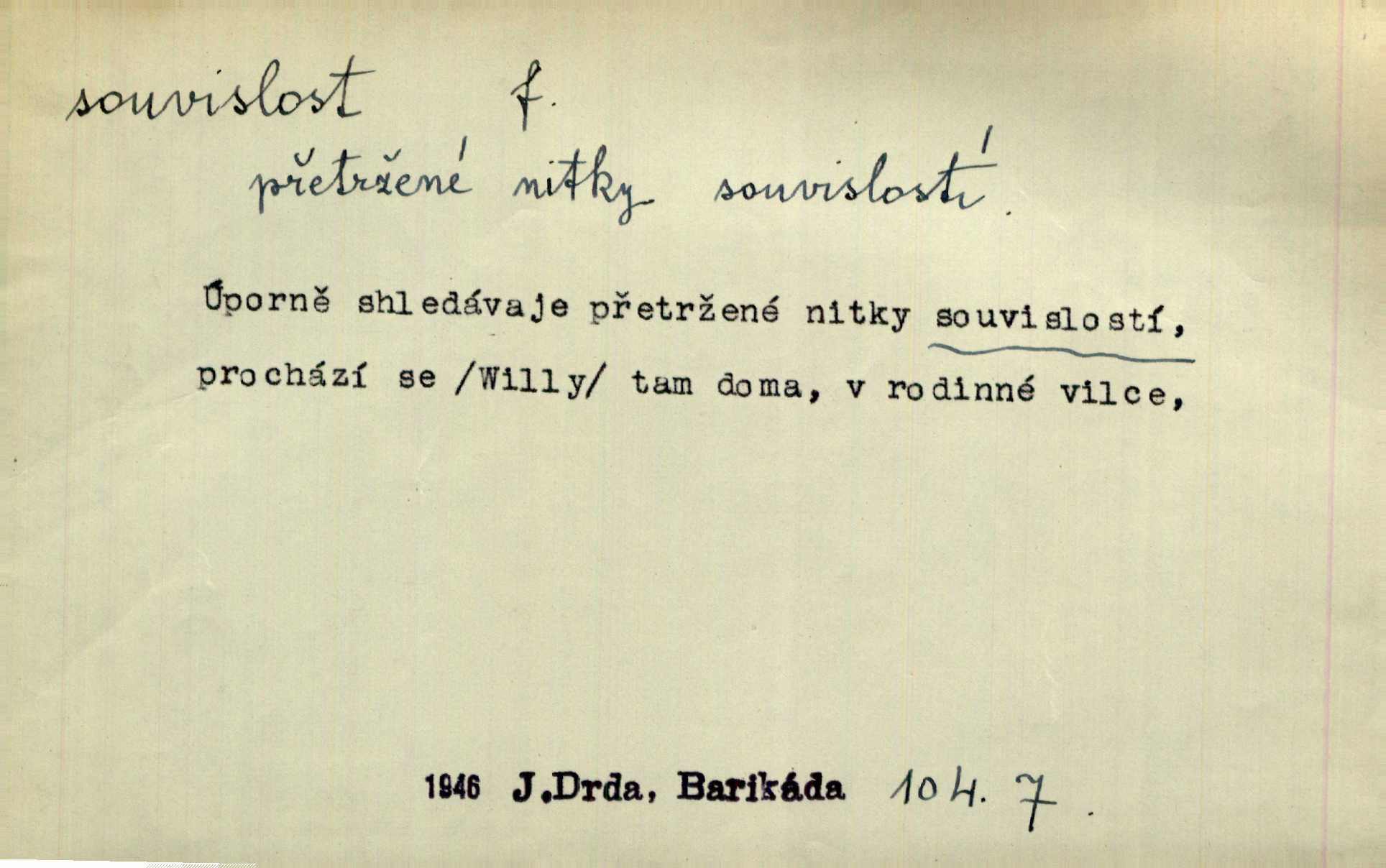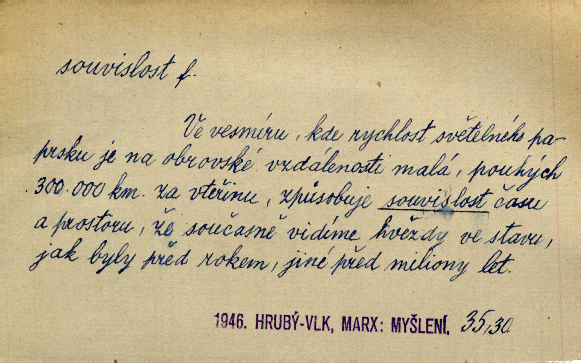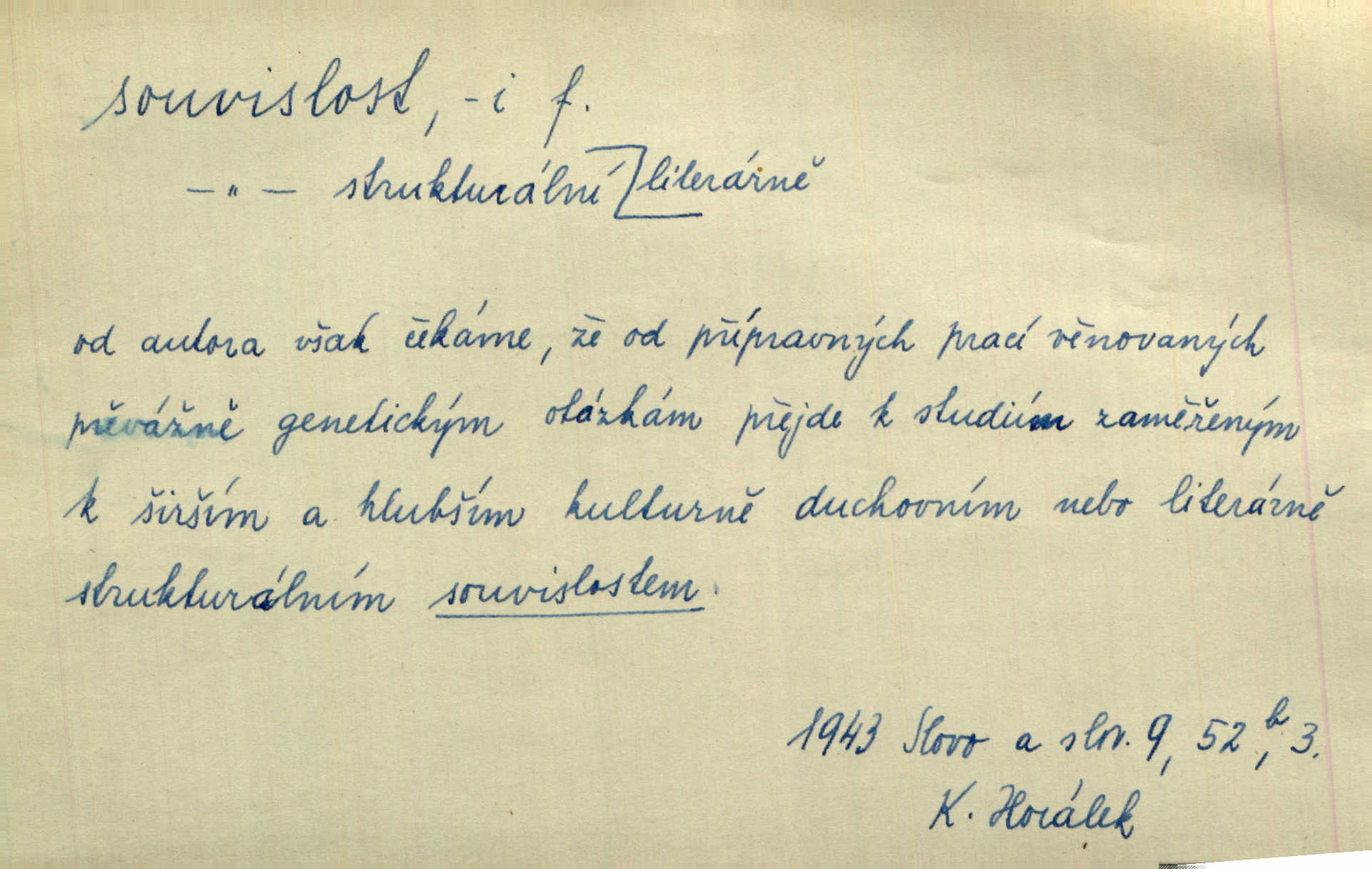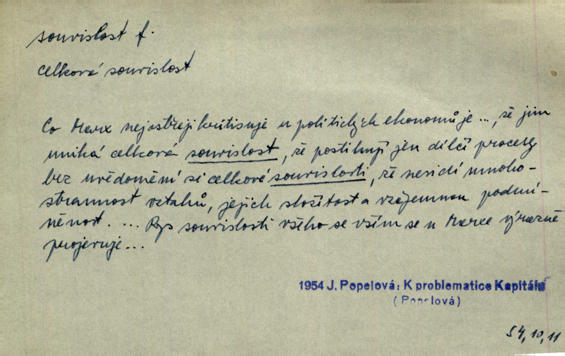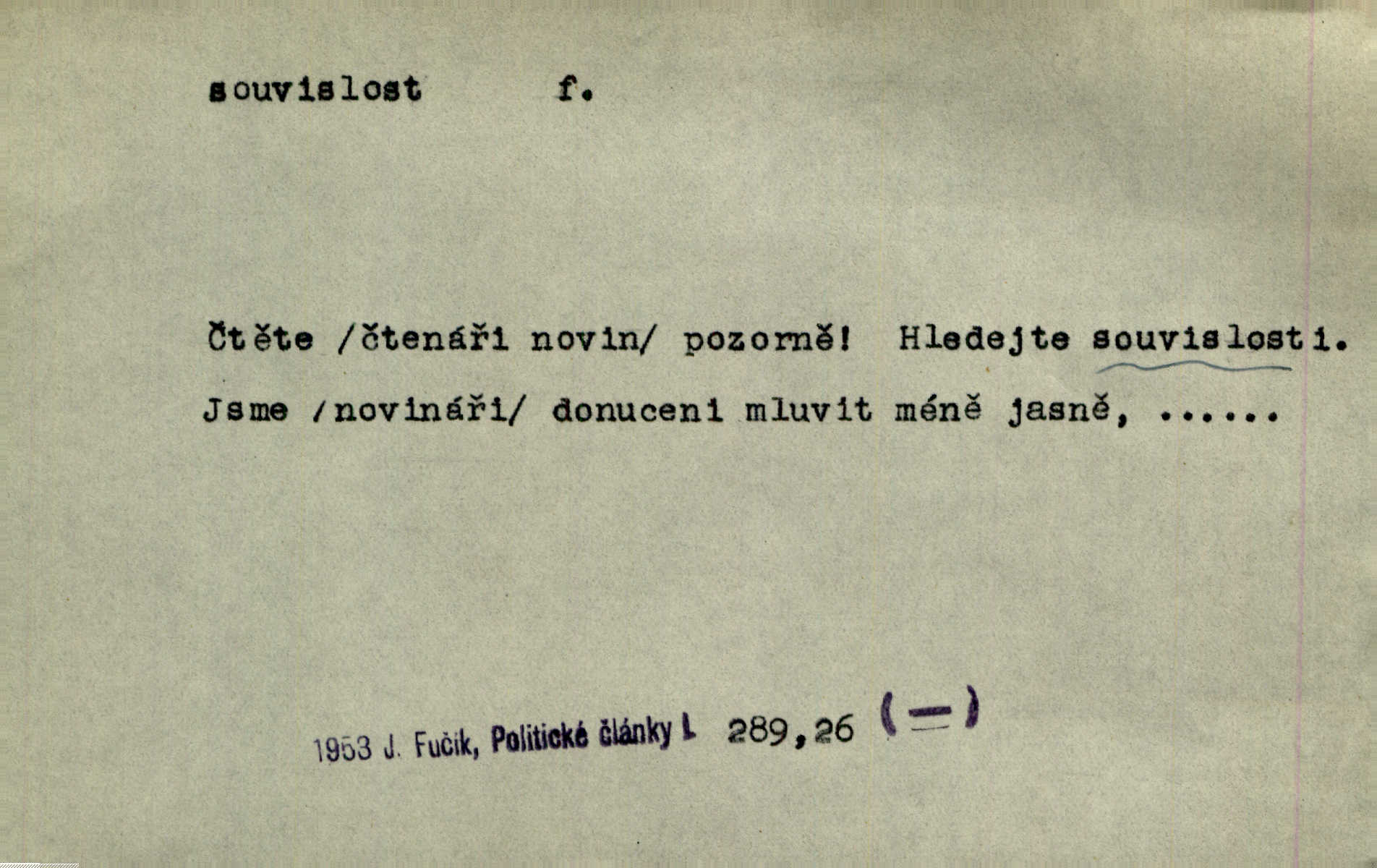 - souvislost, -i f. vzájemná spojitost, plynulost, nepřerušovanost. To byla první věta, jakou v souvislosti pronésti se mu dnes podařilo bez přerušování. Just. Velitel roty se stará o udržení souvislosti palby, aby nepřítel neměl před sebou nepostřelovanou mezeru. Voj. sl. kn. D vzájemný vztah, poměr k něčemu. Musím si uvést v souvislost to, co vidím. K. Čap. Těžko udati, jakou vnitřní souvislost tato slova měla. Hál. Při vší své fantastičnosti zůstává [Aleš] i tu v živé souvislosti s přírodou. V. Mrš. Novákova mohutná Jihočeská suita je důkazem nesmírné souvislosti skladatelovy s rodnou zemí. Rozhlas. Srovnáváme-li vespolek slova téhož významu v různé souvislosti větné, poznáváme, v jaké prvky lze slova rozčleňovati. Ertl. Práv. souvislost v řízení trestním.