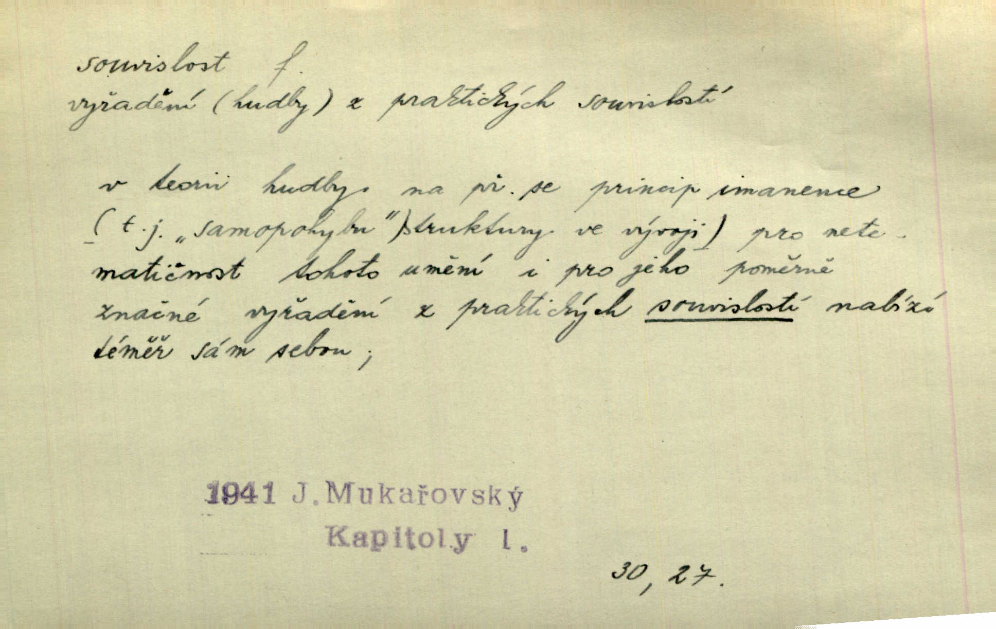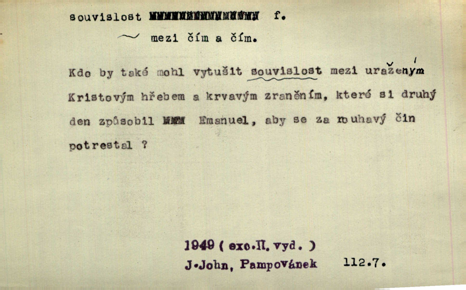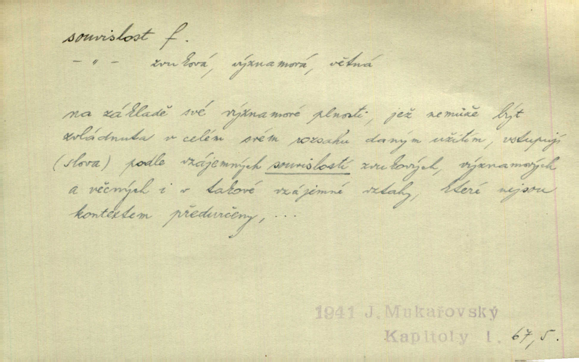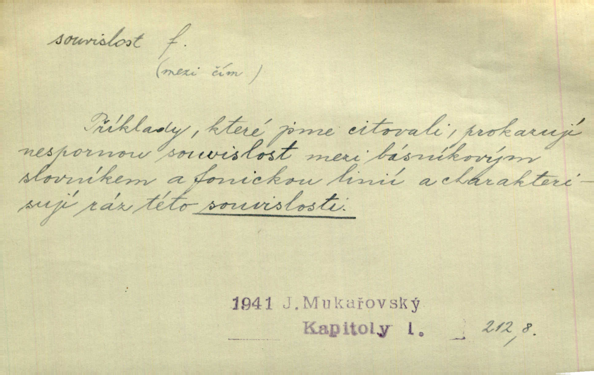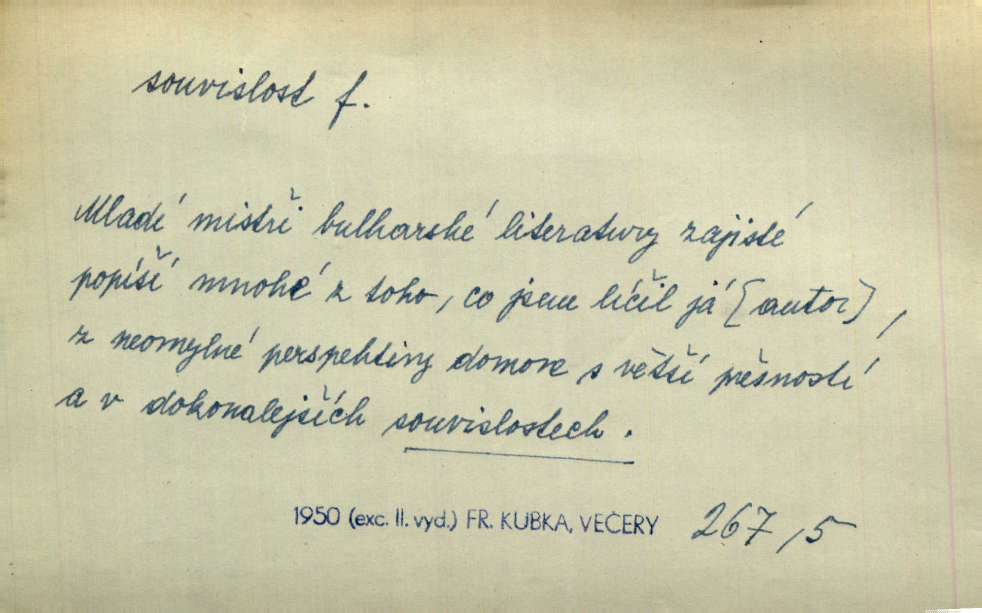 - souvislost, -i f. vzájemná spojitost, plynulost, nepřerušovanost. To byla první věta, jakou v souvislosti pronésti se mu dnes podařilo bez přerušování. Just. Velitel roty se stará o udržení souvislosti palby, aby nepřítel neměl před sebou nepostřelovanou mezeru. Voj. sl. kn. D vzájemný vztah, poměr k něčemu. Musím si uvést v souvislost to, co vidím. K. Čap. Těžko udati, jakou vnitřní souvislost tato slova měla. Hál. Při vší své fantastičnosti zůstává [Aleš] i tu v živé souvislosti s přírodou. V. Mrš. Novákova mohutná Jihočeská suita je důkazem nesmírné souvislosti skladatelovy s rodnou zemí. Rozhlas. Srovnáváme-li vespolek slova téhož významu v různé souvislosti větné, poznáváme, v jaké prvky lze slova rozčleňovati. Ertl. Práv. souvislost v řízení trestním.