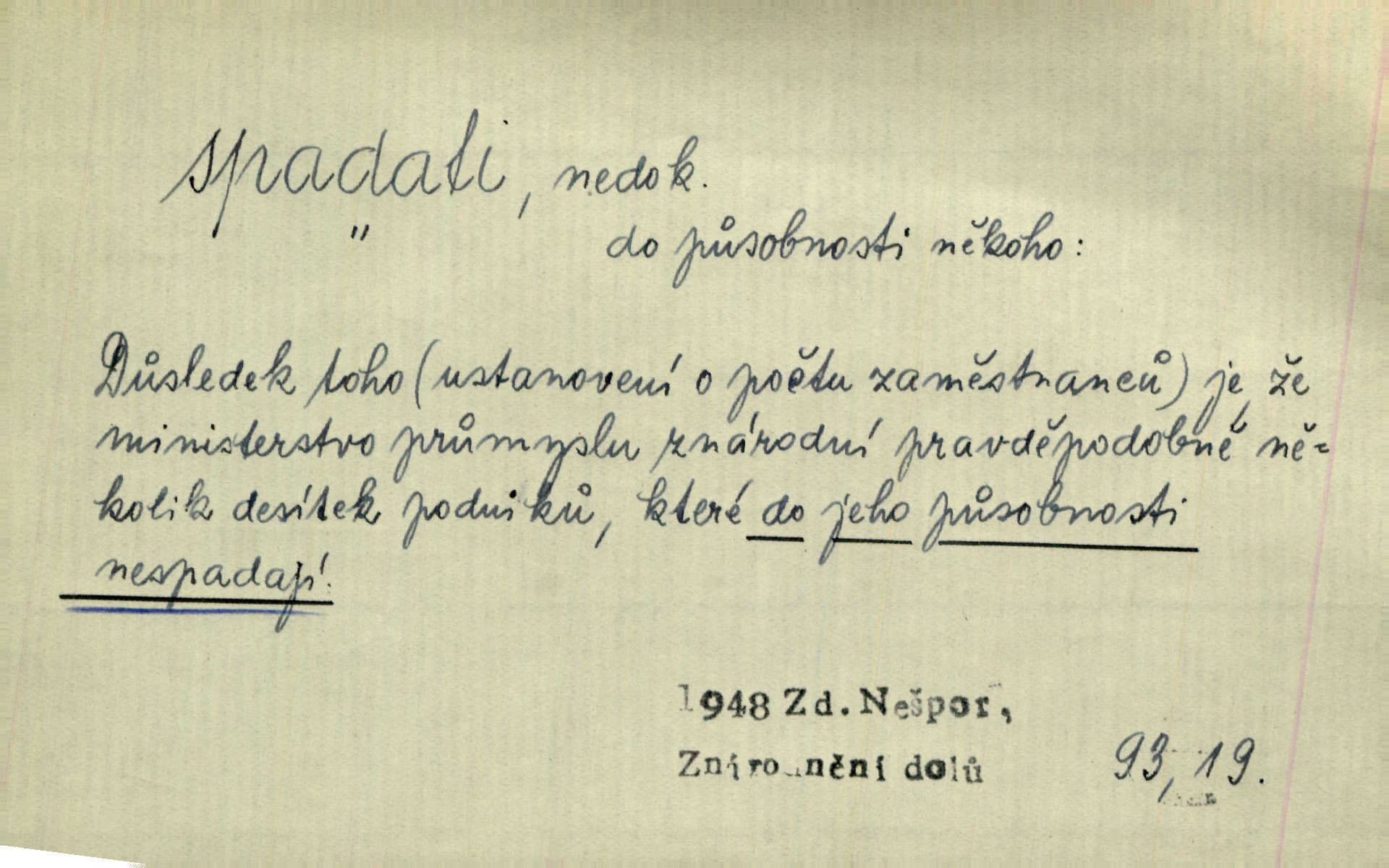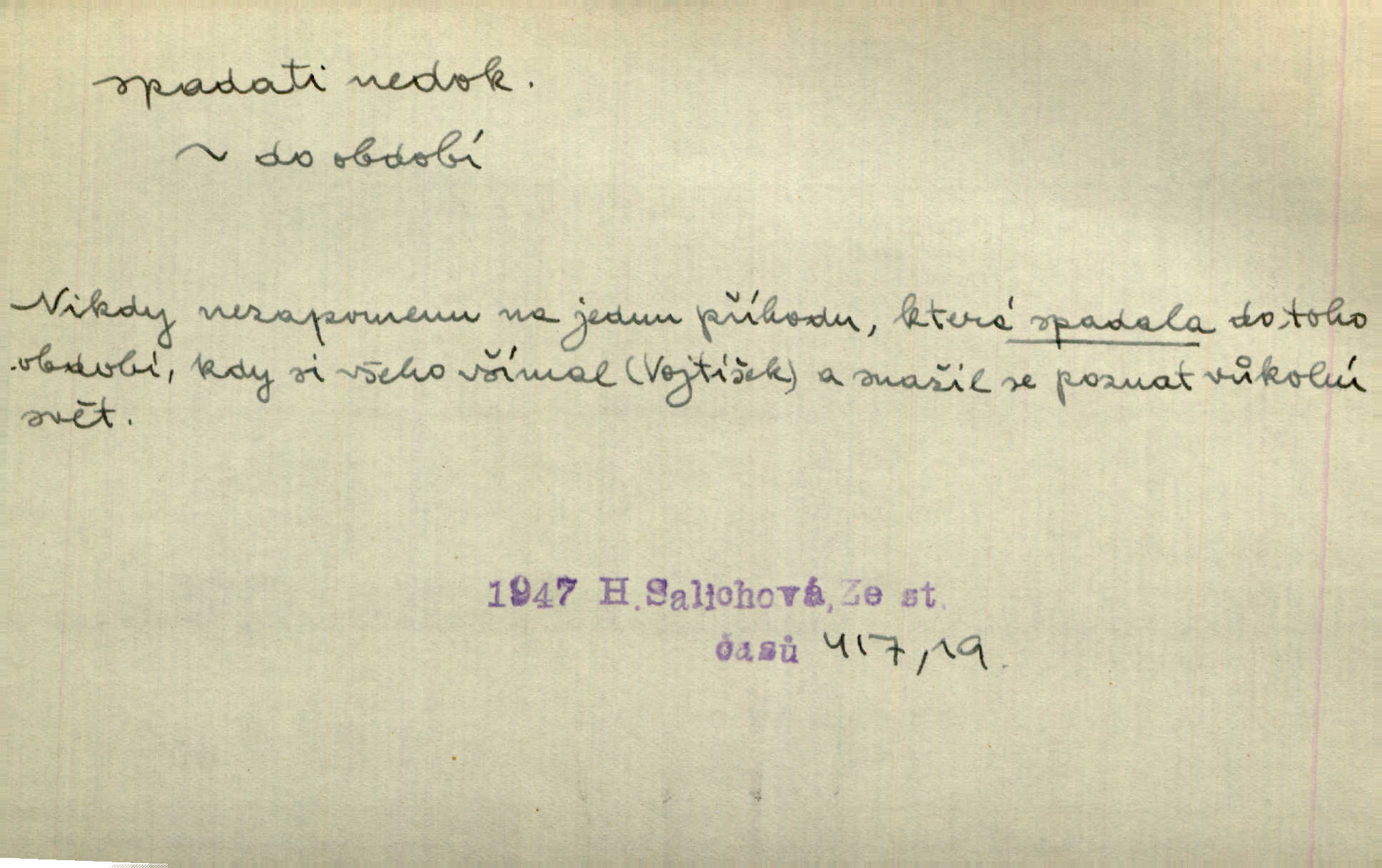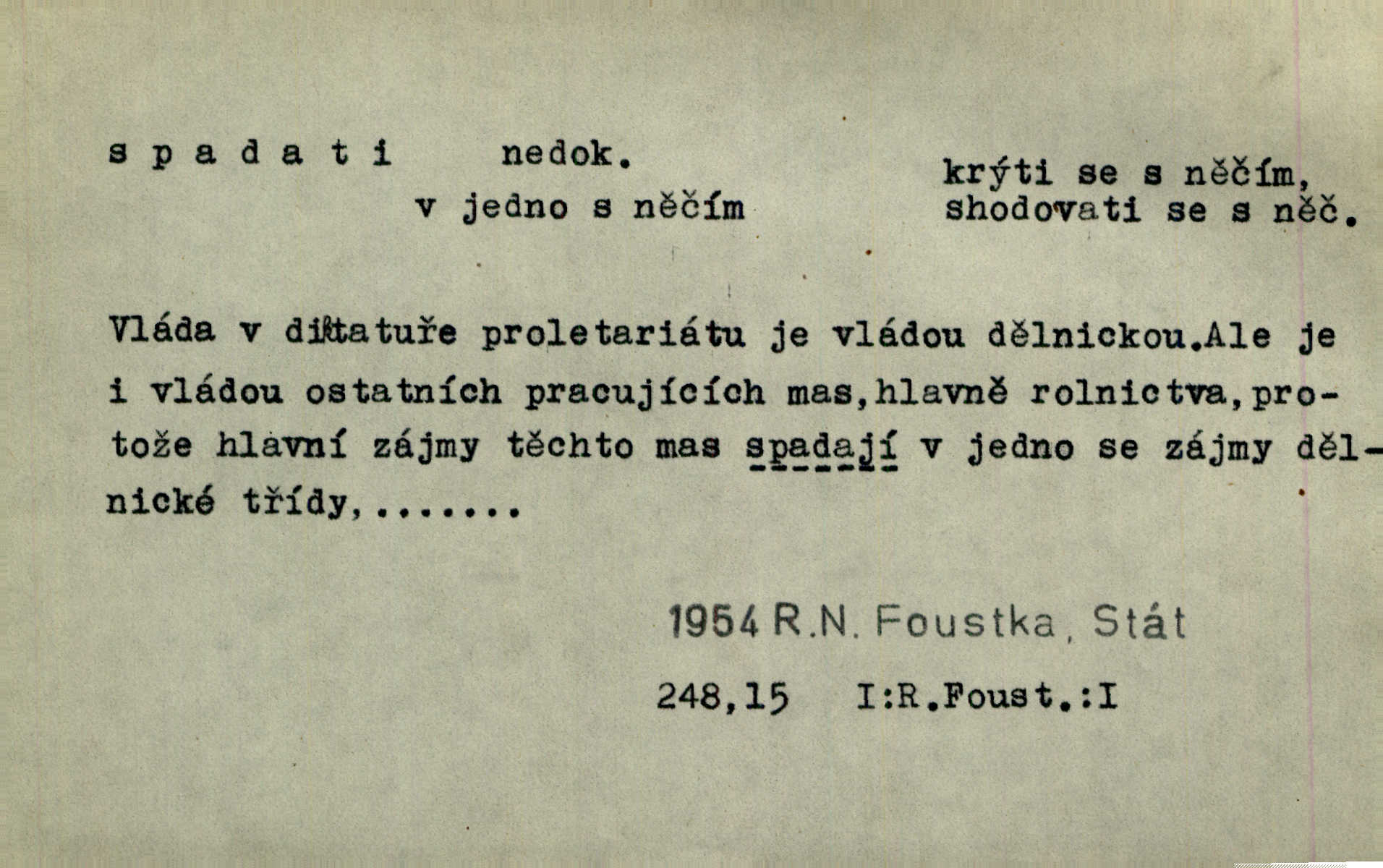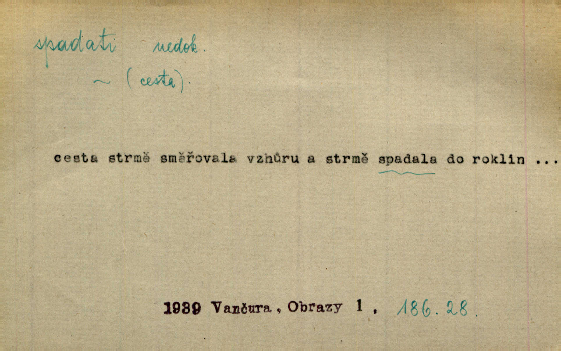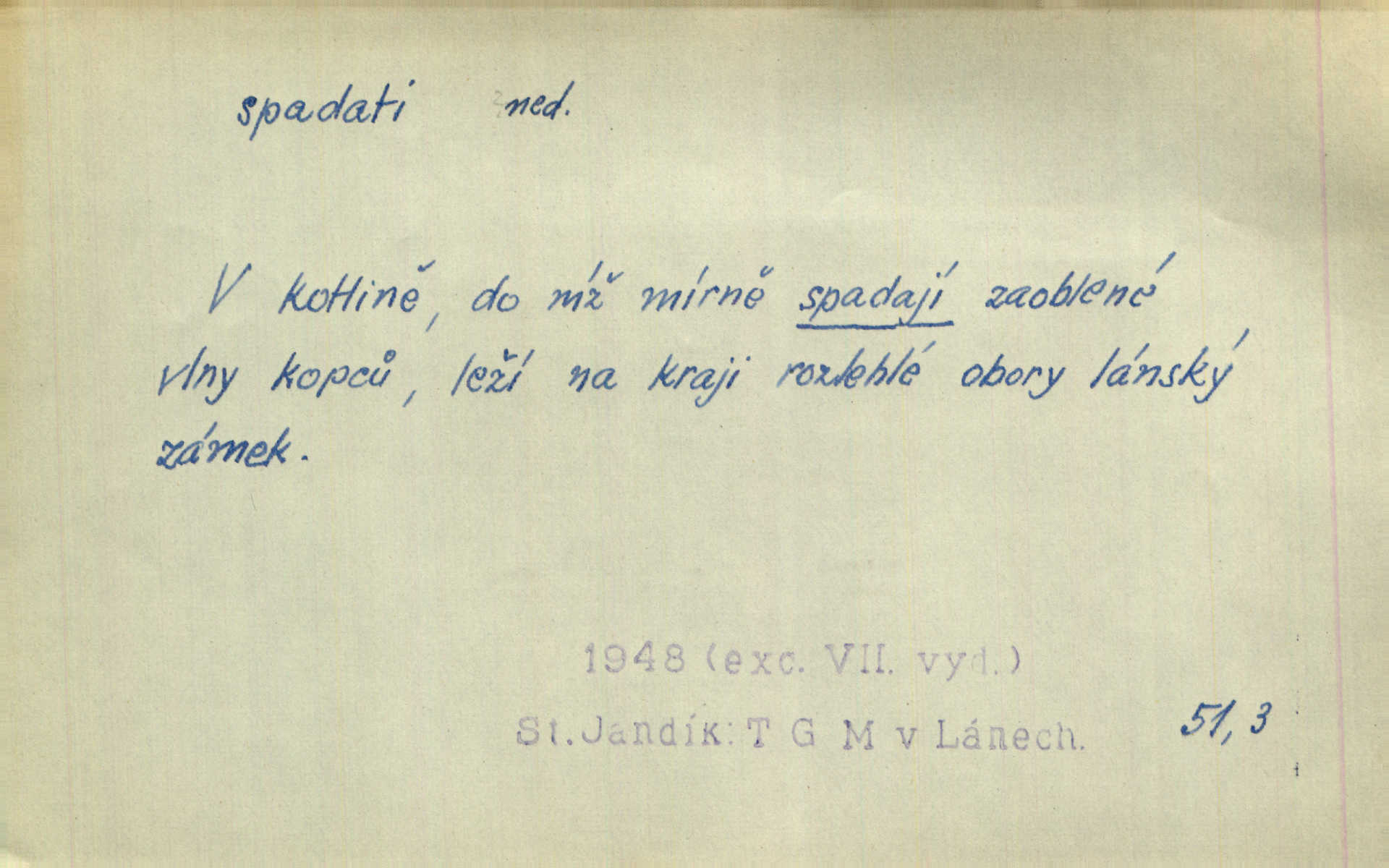 - spadati ned. klesati k zemi, padati. Úlevný dešť spadal v nepřetržitých proudech. E. Jel. Voda spadala tu [u splavu] a tříštila se bílá a pěnící po nevelikých kamenech k lukám. R. Svob. D pohybovati se dolů, poklesávati, pošinovati se doleji z obvyklého umístění. Sotva zazněly první tóny [flétny]‚ spadala s něho černá říza. Vrch. Stočovaly se [gamaše] a spadaly na paty. A. Mrš. Černé husté vlasy mu často spadaly do očí. Maj. Lesk očí hasnul pod spadajícíma řasama. Pfleg. Bezoblohé nebe tvořilo lazurový strop [jeviště]‚ na němž slunce ke sklonu již spadalo. Zey. Tenká figurka, která se zdá být menší než je, pro zapadlá prsa a silně spadající ramena pokleslá. Ner. D svažovati se, snižovati se, nížiti se. Na sever spadá vrch srázně dolů. Něm. Stál na skalce, která spadala téměř do řeky. Vach. Slunce bohatě polévalo kamenitou, rychle spadající cestu. Svob. Okny pokoje bylo vidět přes střechy prudce spadajícího předměstí do kraje. Šrám. Nevzlétají [Brdy] k nebesům, nespadají v divoké propasti. Týd. rozhl. Vlasy na dvě strany rozděleny byly bílou, až kamsi za krk spadající stezičkou. V. Mrš. D volně dolů viseti, přes něco přečnívati, přesahovati. Sukně červená nebo modrá pěknými řasami od boku spadala po kotníky. Kos. [Bílý šátek] jí spadal až po pás. R. Svob. [Plášť] téměř až k zemi široce spadaje, malé postavě tvar pravidelného trojúhelníku přidával. Čech. Prohrábl si prsty své černé vlasy, které mu vzadu spadaly až na límec. K. J. Ben. D (s koho, s čeho) (o něčem způsobujícím úzkost, tíseň) opouštěti, míjeti někoho, přestávati tísnit někoho n. něco. Teprve kdy vyjdou z kostela jako manželé, spadá s nich ona stísněnost. Herrm. Bylo mu mezi tichými stěnami domácími, jakoby s něho centy spadaly. Sab. Tu spadalo s Mata všecko rozechvění bezesné noci. Preis. D (na koho, nač) připadati na někoho n. něco; nepříznivě postihovati někoho n. něco, doléhati na někoho n. něco. Těchto 6% [manželství s více než dvěma dítkami] spadalo na účet přítomných představitelů lidového živlu. Vach. Veliká práce o otázkách čistě církevních spadala na bedra kardinála Harracha. Rez. Vina nespadá na českou delegaci. V. Mrš. Zodpovědnost za tento zpěv spadá jedině celá na můj vrub. Vrch. Práv. dědictví spadá na někoho. D řaditi se časově do nějaké doby. [Velebníček] byl svědkem slavné doby, do které spadala éra probuzení našeho národa. V. Mrš. Časově spadá básník ovšem do doby revoluční. Vrch. Dílo musí dýchat duchem právě té doby, do které spadá děj. V. Mrš. Její [veselohry] rozhlasová premiéra spadá do samých dob začátků vysílání činoher v našem rozhlase. Týd. rozhl. D (kam) kniž. náležeti, patřiti, řaditi se někam. Do rodu Kvapilova spadal podobou i nejstarší chlapec Koutných. Nov. Není divu, že moje i přítelova knihovna obsahovala z větší části spisy v obor ten spadající. Arb. Spadá právo mezinárodní a mnohé části práva veřejného pod pojem práva? Ath. Mezi nejpozoruhodnější skladby českého hudebního repertoiru tohoto týdne spadá jistě Ostrčilova Pohádková suita. Týd. rozhl. D spadati se stávati se hubenějším, hubnouti. Málo jedl a pil jen vodu, čímž se spadal den co den více. Just. Jaké pak spadání, co se ještě na něm může spadnout. Rais. Dobytek se spadal, nikde užitku. Deml.