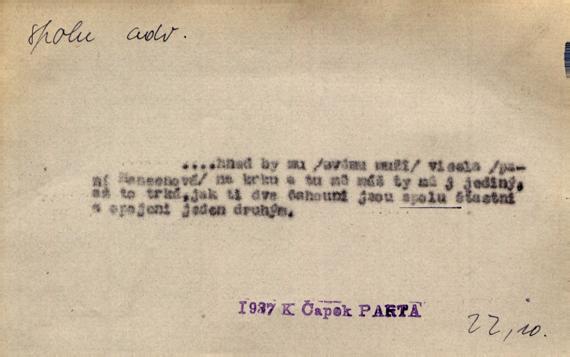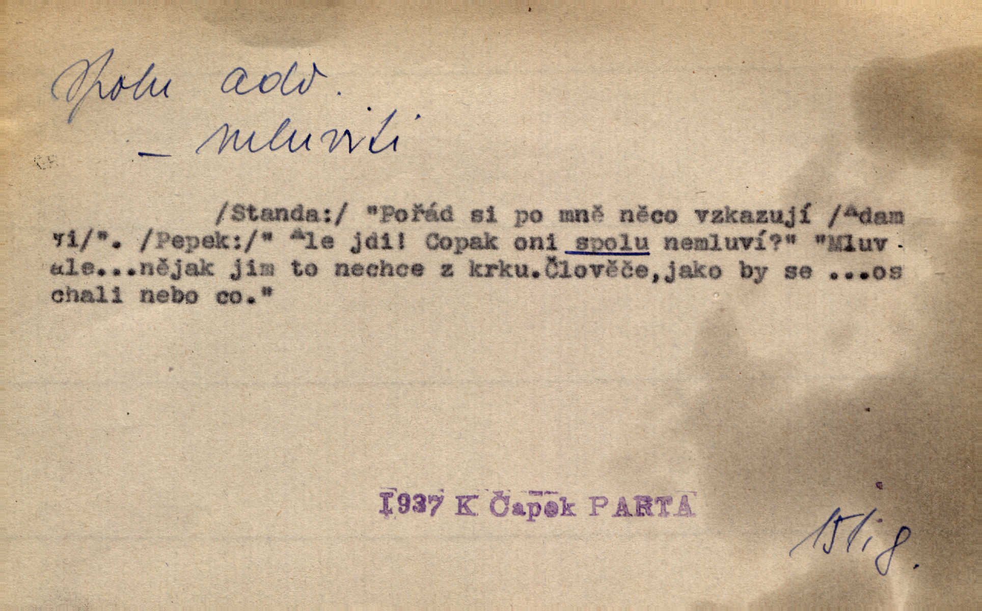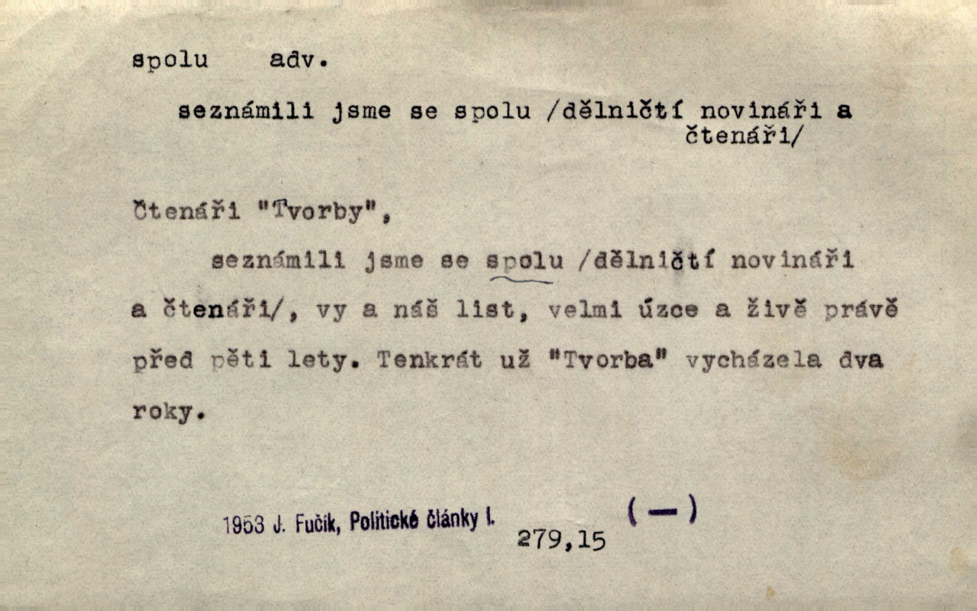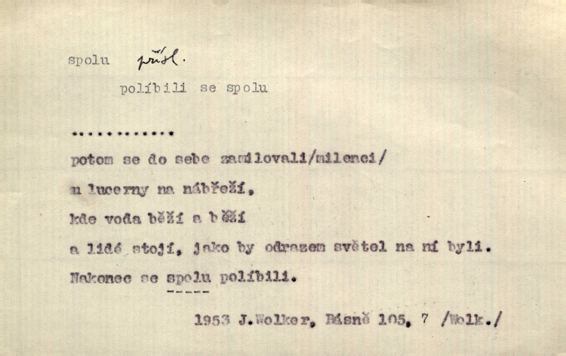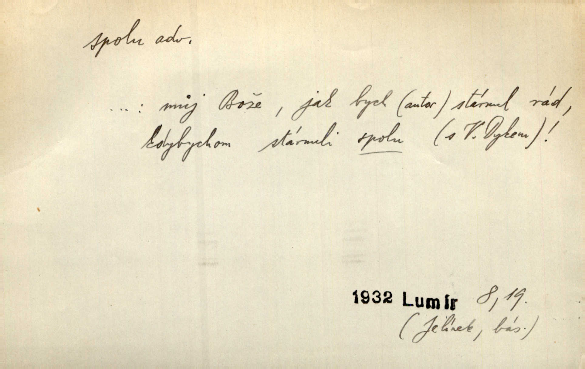 - spolu (bás. spol) adv. vyjadřuje blízkost, společnost při něčem, pohromadě, společně, zpr. o dvou. Ti dva už pili mnohou číši spolu. Ner. Tak půjdeme spolu — jestli mne vezmeš s sebou. Rais. Seděly spolu až na konci stolu. Baar. Básník i umělec vědomě pracovali spolu. Vrch. Jenom tělem budem rozloučeni, duše věčně spolu ostanou. Erb. Počkáme spolu, až starý přijde. V. Mrš. Můj Bože, jak bych stárnul rád, kdybychom stárnuli spolu [s V. Dykem]! H. Jel. Zvuk, oko, dech, jejž cítě viděl [Tomeš] spol — jaký to soulad, jaká duše jasná! Hál. D Lid. býti spolu žíti v manželství, býti manžely. To já mám tuze hodnou ženu. Patnáct let, a kdepak, víc, jsme spolu a ještě jsme se nezlobili. Jir. Půl roku jsou spolu a muž si je celý týden dvě hodiny od ní. Rais. Jsou již spolu několik neděl a ještě se takřka ani neviděli. Pfleg. D jeden s druhým, dohromady; navzájem, mezi sebou. Pojď, promluvíme spolu důvěrně! Vrch. Prostřed světnice se spolu setkali. Jir. Dvoje dvéře spojovaly bez pochyby dva oddíly hradu spolu. Choch. Podivná shoda v tvrzení těch dvou, žádného spojení spolu nemajících osob, vzbuzovala v něm přece žárlivost. Zey. Písničku „ešče jednó a jak se patří zrepetýrovali“ a dobře hlasy spolu srovnali. A. Mrš. Země šerem táhne, širým věkem plyne, měsíc hledí dolů, po staletí hledí, milují se spolu. Svob. Dvě strany se spolu o život a o smrt potýkají. Havl. Prodavač i kupec byli spolu spokojeni. Sab. Má tu rozlehlé revíry spolu souvisící, tvořící takměř jeden široširý hvozd. Jir. Jedli, pili, rozprávěli, dobrou vůli spolu měli. Čel. Mimo hudbu a šachy jsme nikdy víc spolu neměli nestýkali se. Čap. Ch. „Co pak jste zase spolu měly?“ obracela se k ní paní Žehurová oč jste se nepohodly, co jste si udělaly. Šim. D vyjadřuje přidání, připojení; zároveň s někým. Zůstal [na parníku] a jel spolu do Chuchle. Čap. Ch. Maminka se smála; zpívala pak také spolu. Šrám. Lid jásal, vítaje bojovníky, ale když se rozneslo, koho tu spolu nesou, umlkli zástupové a rozestupujíce se smekli uctivě, ana mrtvola [Marušky] kolem nesena. Jir. Vzlet [pták] do vzduchu, vzal spolu mé srdce zmámené. Vrch. D vyjadřuje souvislost, spojitost dalšího členu; rovněž, též, také, i. Zazvonil energicky na svého ceremonáře a spolu důvěrníka. Vach. Básník tento ryze národní patřil spolu veliké rodině umělců. Vrch. Ty [poeto] s tvůrčí rozkoší máš tvůrčí trýzeň spolu. Ner. Byl mladý muž a ohnivý a spolu básník. Win. Potom přistoupil k černé tabuli, vzal křídu a zpívaje kreslil spolu noty. Bouš. Mistr Hubáček a spolu starší počestného cechu krejčovského dal si i na chůzi záležeti. Třeb. Každý poctivý a spolu rozumný člověk jest liberální. Havl. Troubil na trubku a spolu také bubnoval na bubínek. Něm.