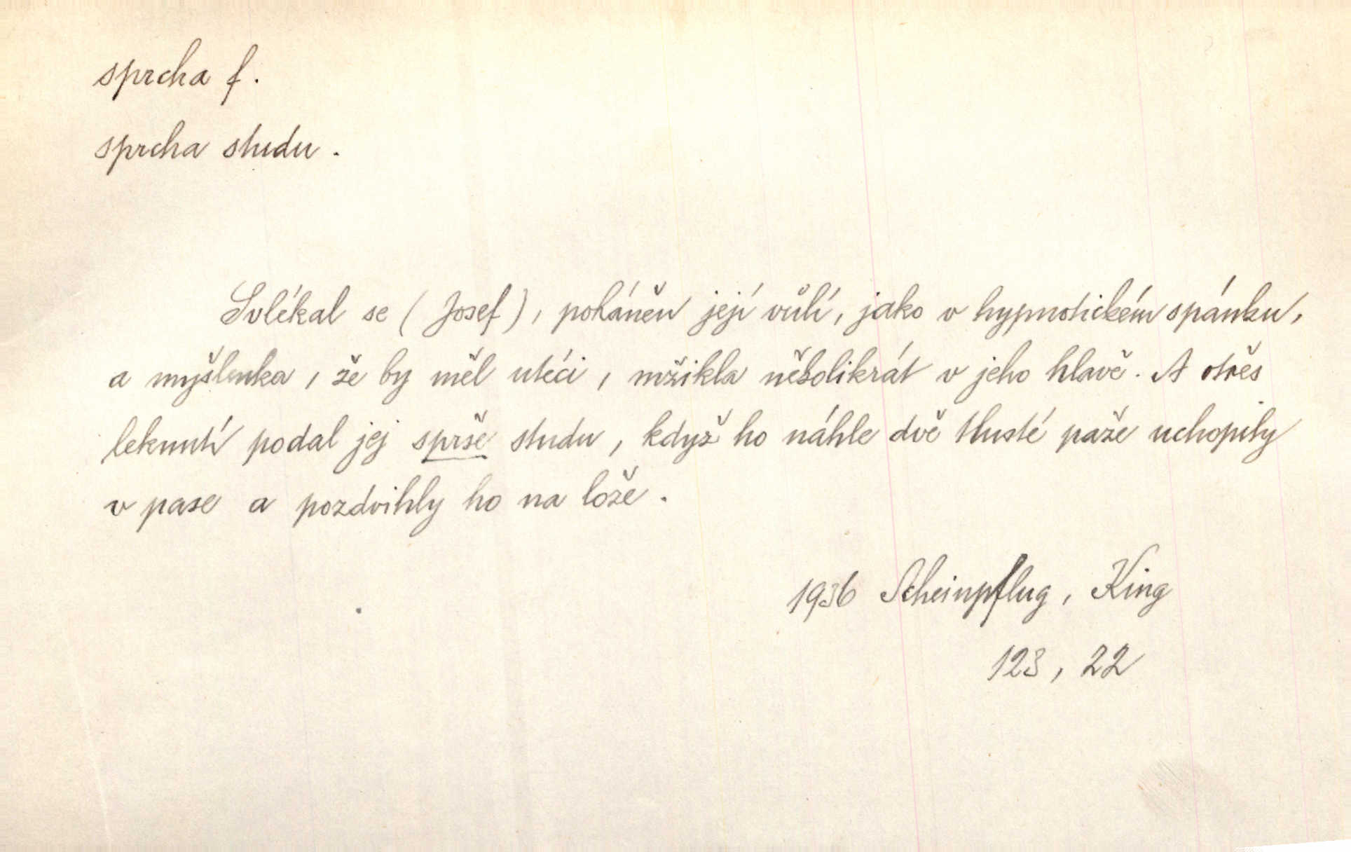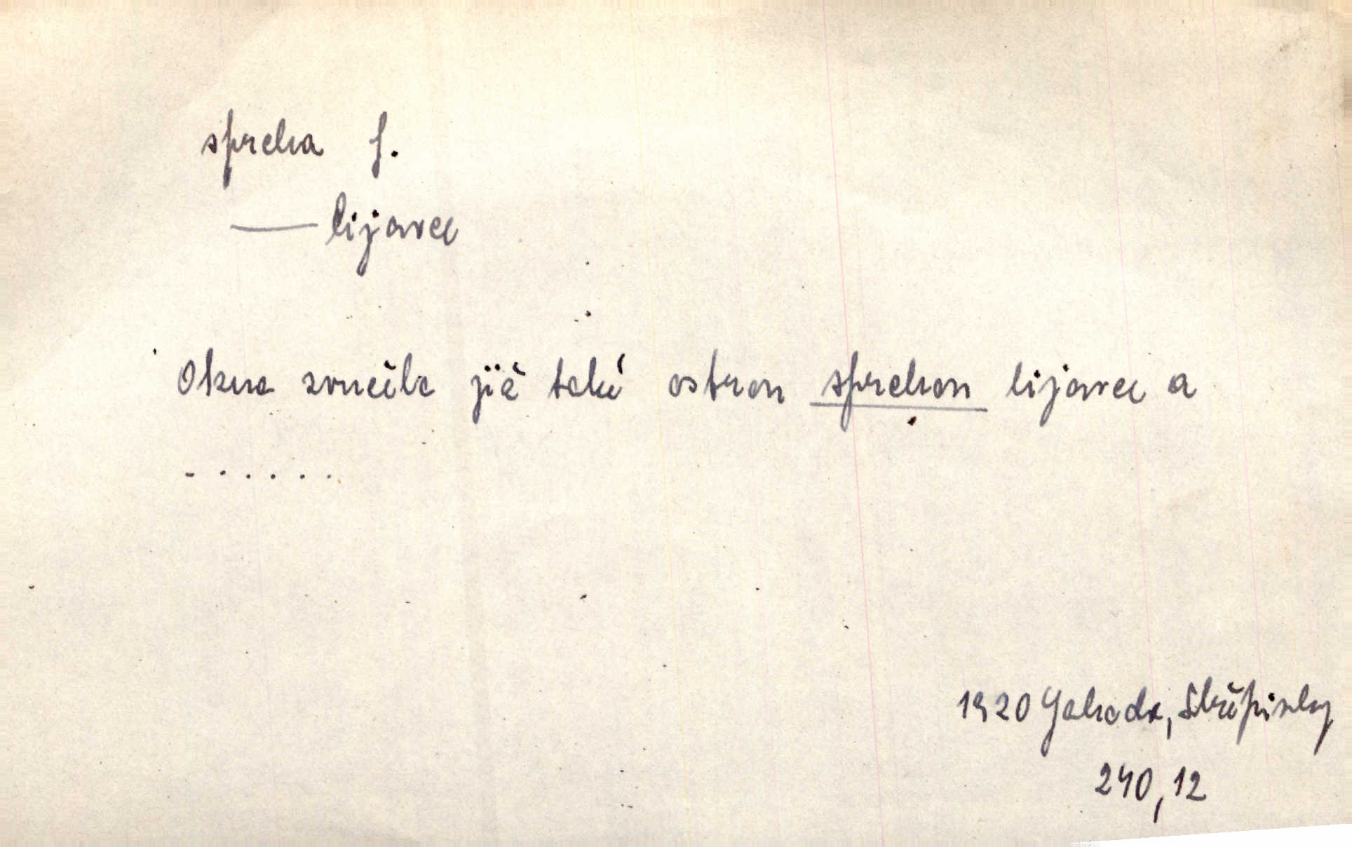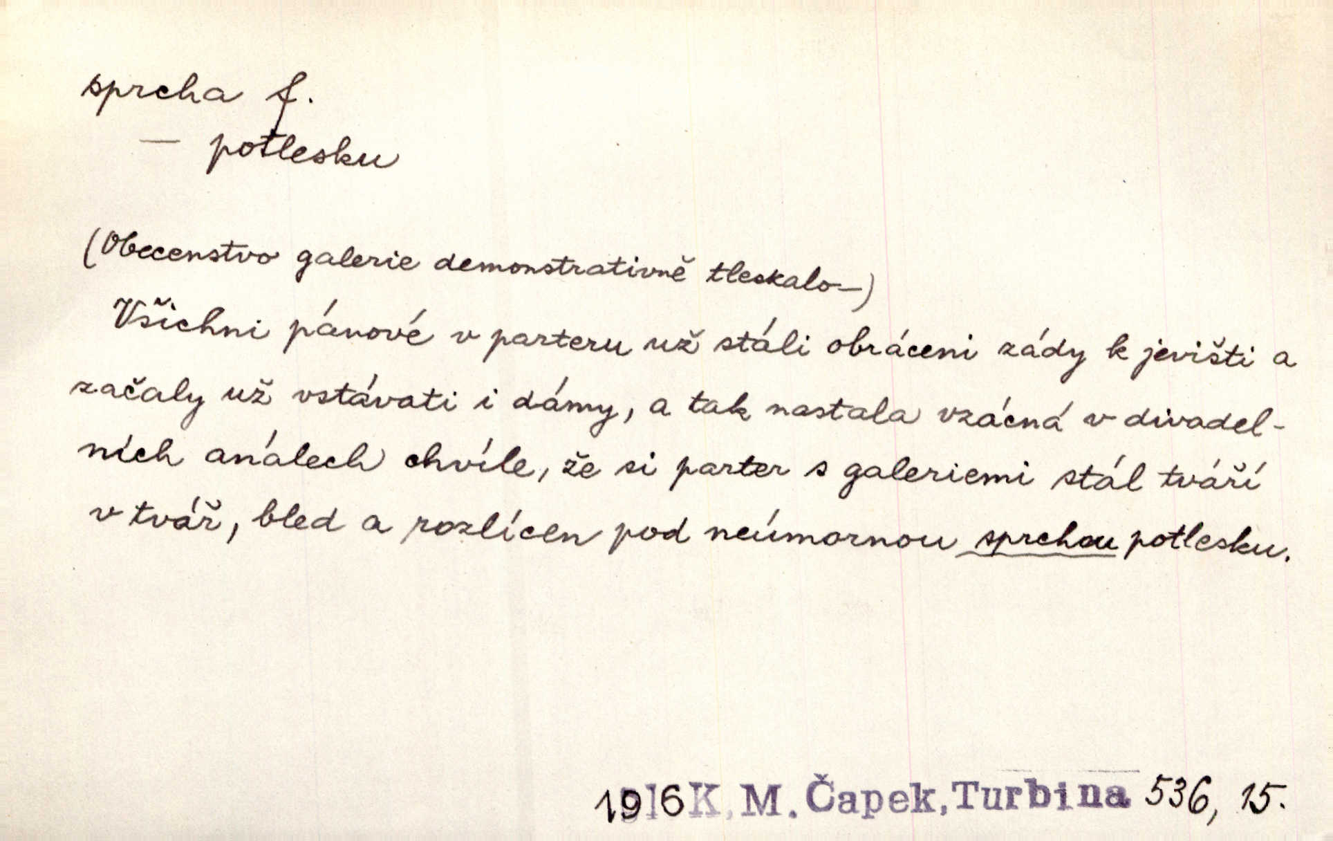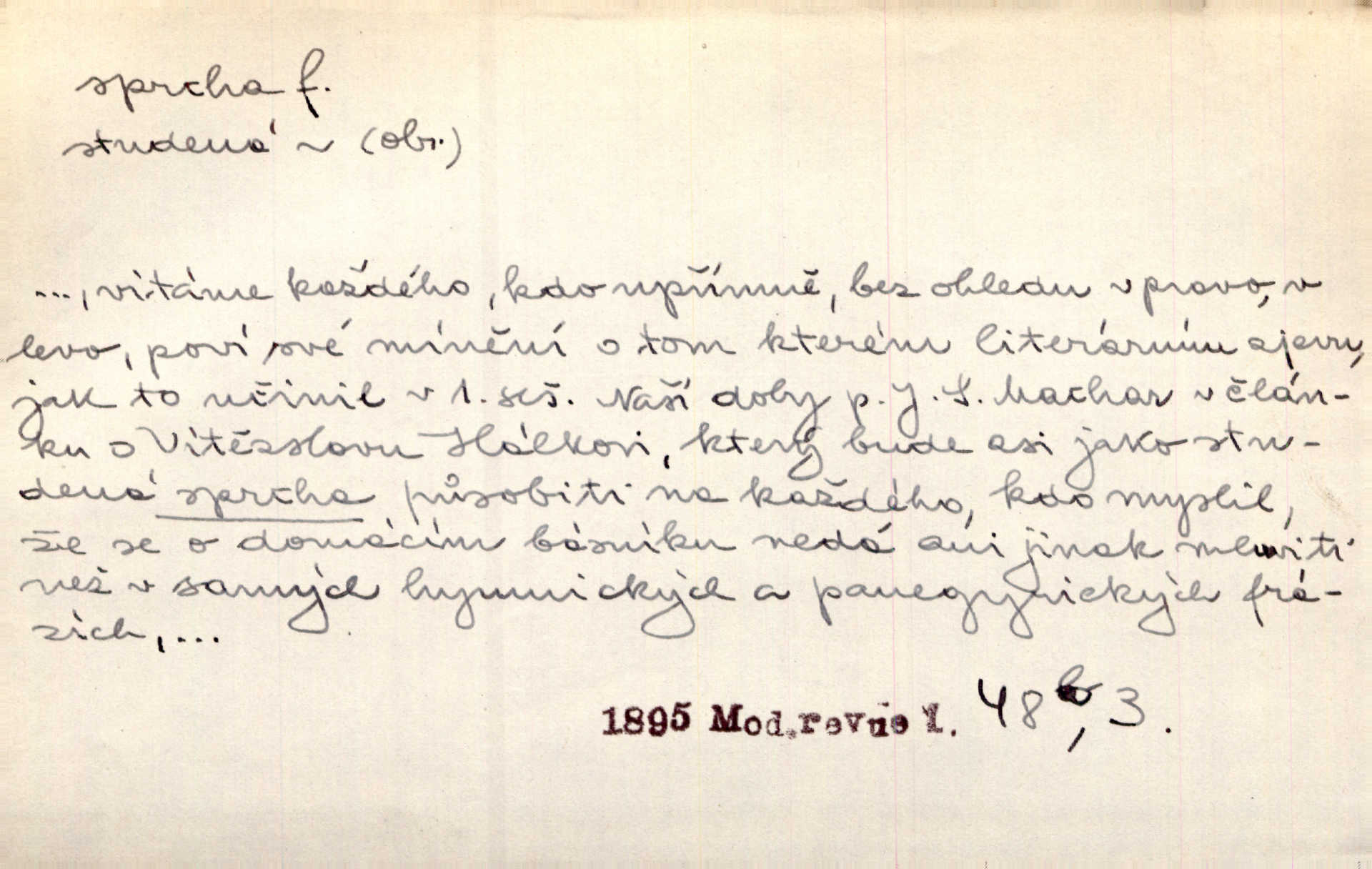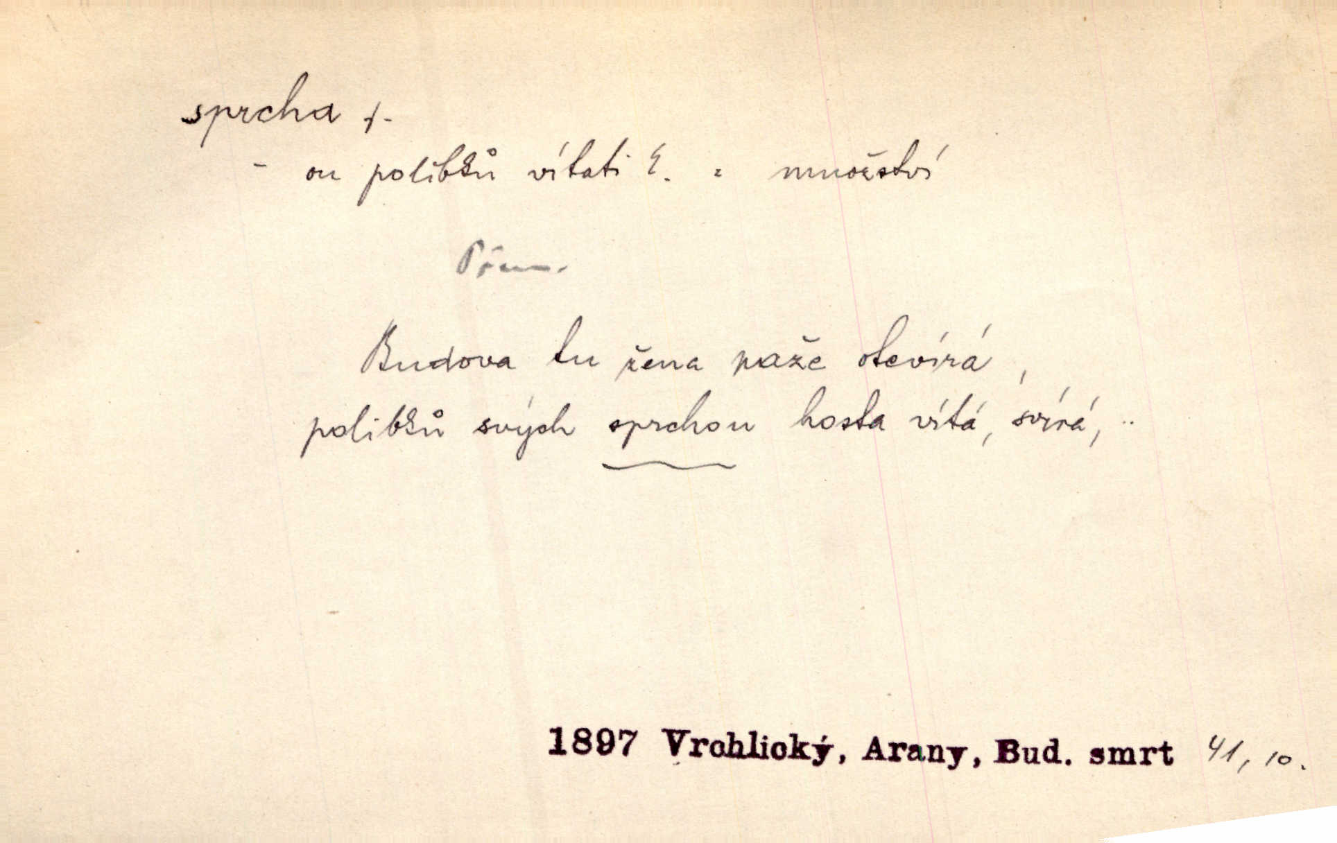 - sprcha, -y f. lid. a kniž. prudký, krátký dešť, sprška. Stromy v školské zahradě stály nehnutě a blaženě snášely bujnou sprchu. Rais. Nany šla mlhou a deštěm, nedbajíc sprchy padající se stromů. Klost. Okna zvučela již také ostrou sprchou lijavce. Jah. Výjev, který se právě odehrál mezi mnou a jím, působil na mne jako ledová sprcha. Kronb. Přen. Paže otevírá, polibků svých sprchou hosta vítá. Vrch. Jak je [knížky] otvírala, vypadla z nich celá sprcha malovaných obrázků. Merh. Jemná sprcha bolestné rozkoše rozlila se po jeho nervech. Kar. Jízlivá narážka polila Viktora studenou sprchou. Vach. Když se jednou rozhovořil o slečně Elince, skropil ho kolega štiplavě mrazivou sprchou. Jah. D umělý postřik na způsob deště; zařízení koupelny n. lázní na takový postřik. Otupován byl lázní potu a sprch, do nichž jej trainer vehnal. Čap. Ch. Nabídnou vám studenou sprchu. Ben. Kdo viděl za Rakouska umývárny a sprchy pro vojáky? Mach. Dejte pozor, aby nezamrzly sprchy. Přít.