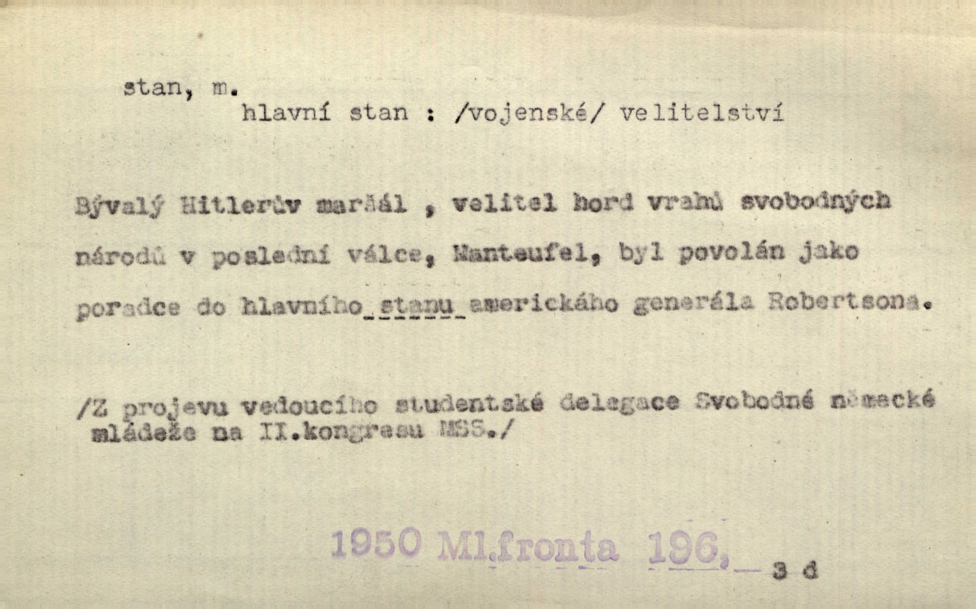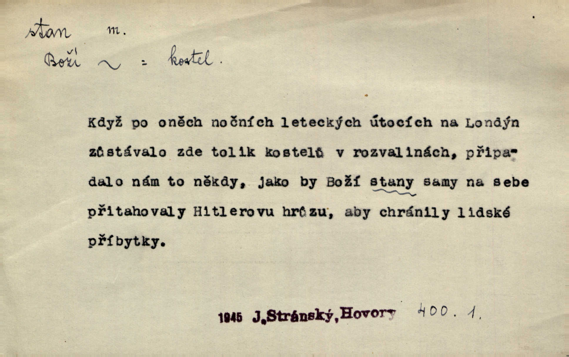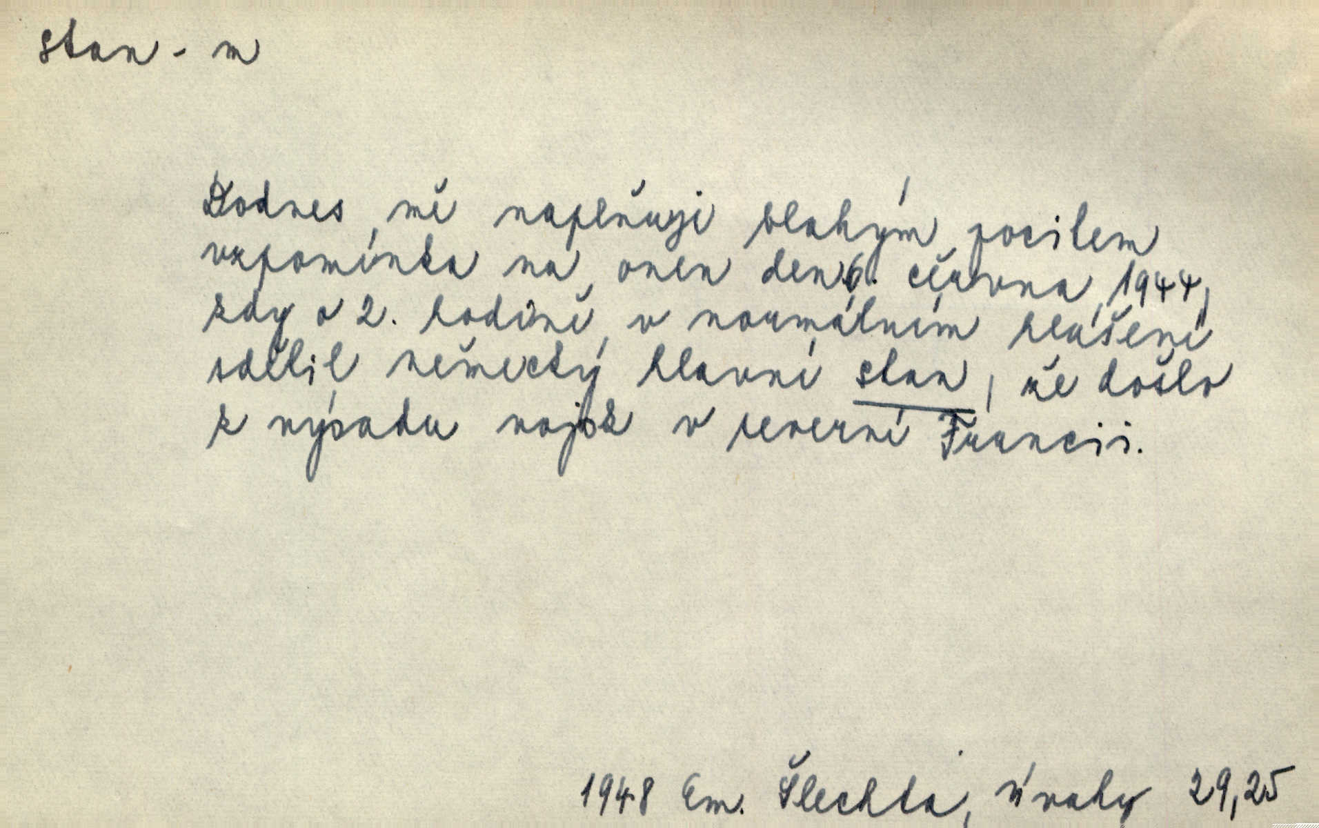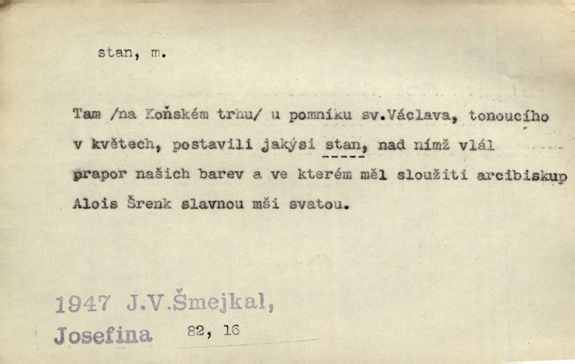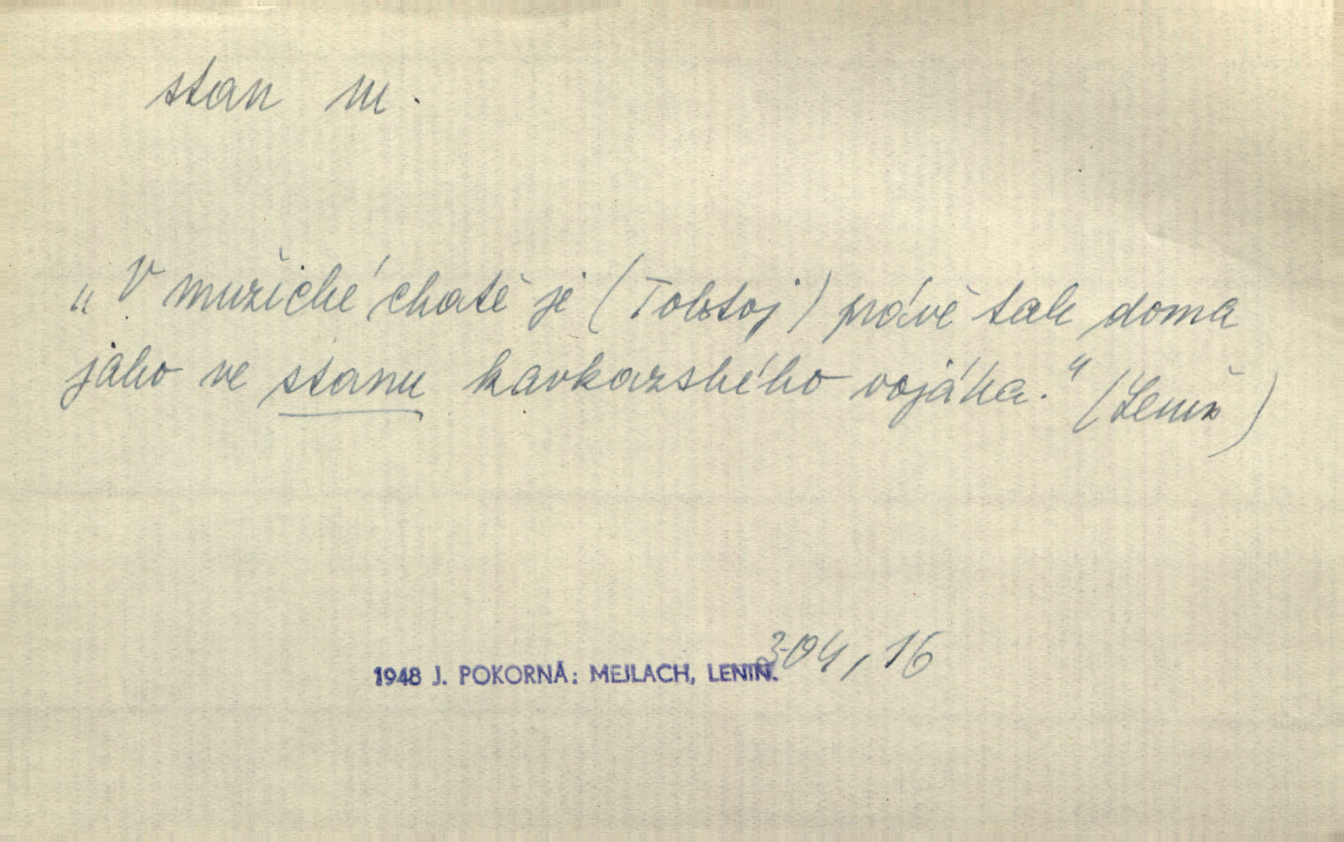 - stan, -u m. skládací přístřeší z nepromokavé látky pro přechodné nocování. Ulehl jsem v polním stanu. Arb. Zřím beduinů stany. Vrch. Přišed v ležení, rovnou cestou kráčel do knížecího stánu. Mácha. Já vychována doma ve stanech a v třesku zbraně, drsnou vedu řeč. Vrch. A bez konce ty voje zdály se, jež kolem města stany rozbily. Zey. Nazejtří v neděli ráno hradby opuštěny, stanové strženi a ležení všecko v požeh dáno. Pal. Schylovalo se k tomu, že strhneme stan svůj a poputujeme dále připravíme se na cestu. Herrm. Ve vsi kaplička čtyřboká, s šindelovým stanem a lucernou střechou v podobě stanu. Kamper-Wirth. Voj. stan na zboží, stan na obvaziště, štábní stan a j. D Zř. pouťový stánek. Plátěných stanů s pernikářským a jiným zbožím veliký tu byl postaven počet. Dou. Šťastným byl jsem teprv před kostelem mezi řadami stanů, kde se prodávaly nejrozmanitější věci. Podl. D Kniž. sídlo, bydliště. Přišel k jedné hoře, na které mocný král země svůj stan měl. Něm. Slabý, křehký, bídný stan jsem ducha jeho [Boha]. Vrch. V duši mé tvůj věčný stán. Heyd. Vyhledal jsem města část, kde bída má svůj stan. Zey. D Zast. stanoviště. Stará naložila jí nůši hrnců, dovedla ji na stan a pověděla jí, jak má s lidmi kupčit. Něm. Lesní muž pod dubem s vysokého stanu škaredě pohlíží v západní stranu. Erb. Ty [ženy] chtěly uskočit, kde bezpečnější stan. Ner. Přen. Strašně dlouhé interregnum [v divadle] neblíží se ještě k svému konci, ba nezasvitá ani odnikud vůdčí hvězdička, jež by nás ze truchlého toho stánu vyvedla. Ner. Loď. zařízení na břehu pro přistání lodí a vorů na kratší čas. D Voj. velitel se štábem u vyšší jednotky v poli. Hlavní stan hlavní velitelství.