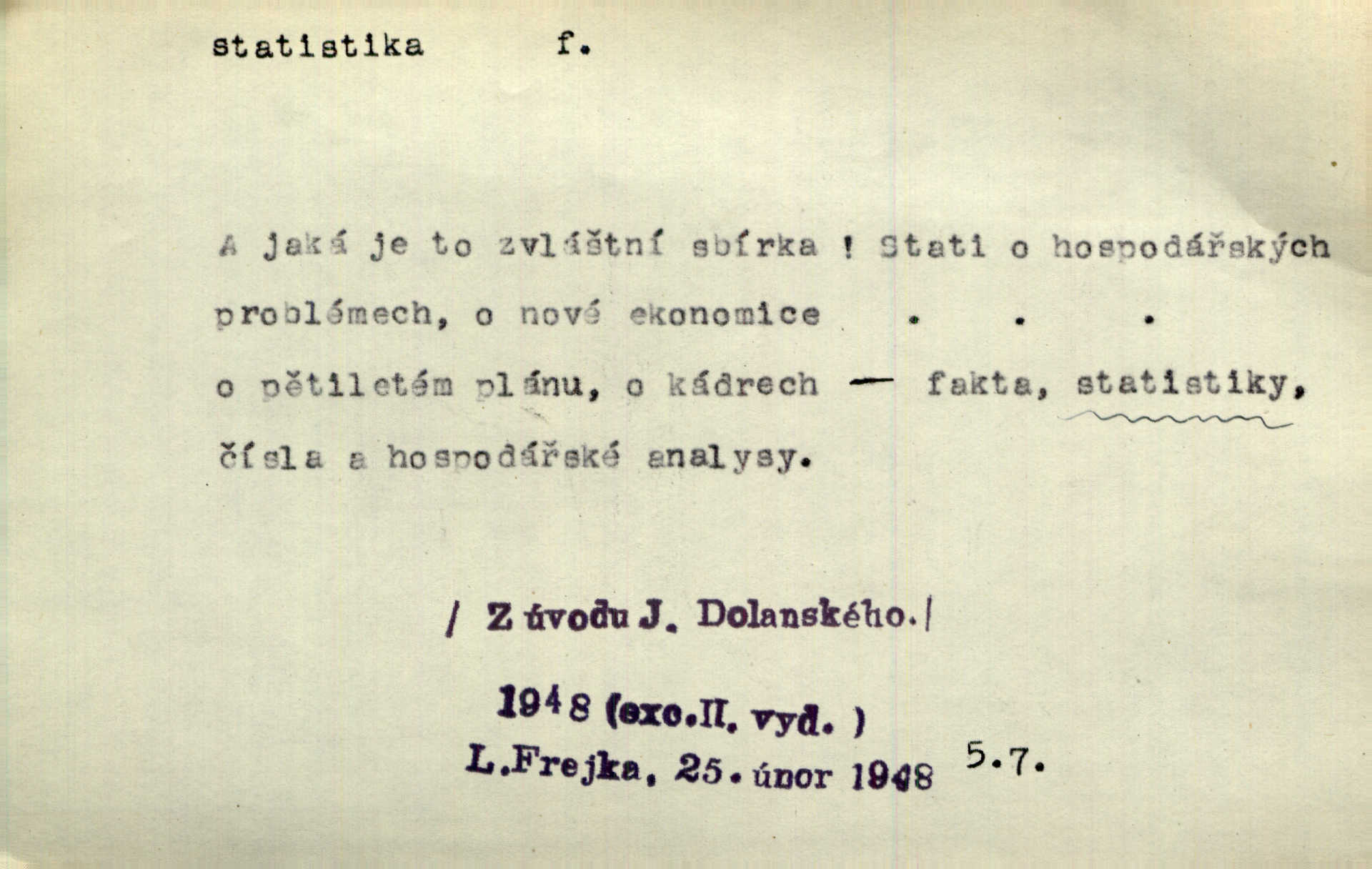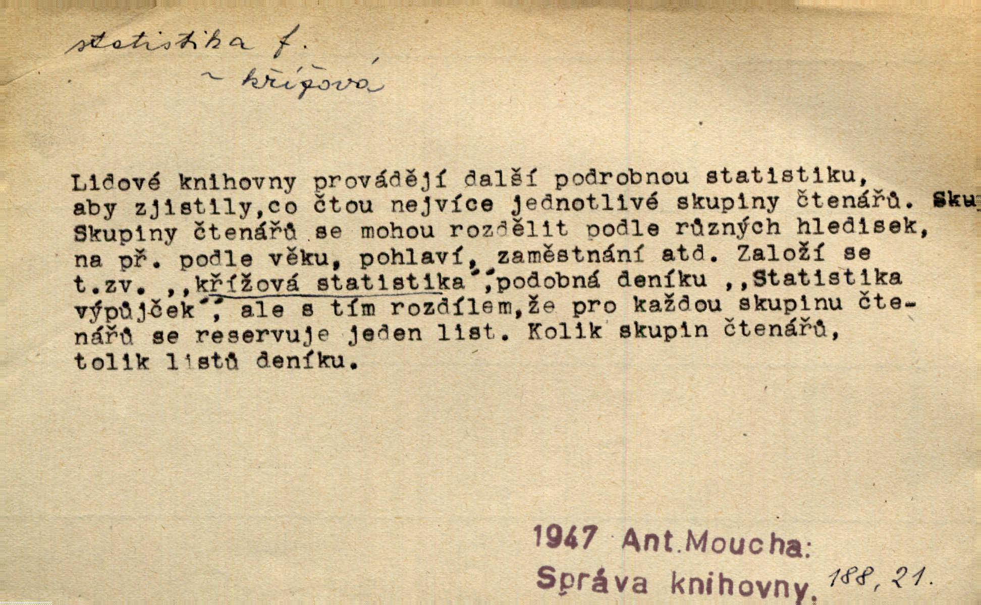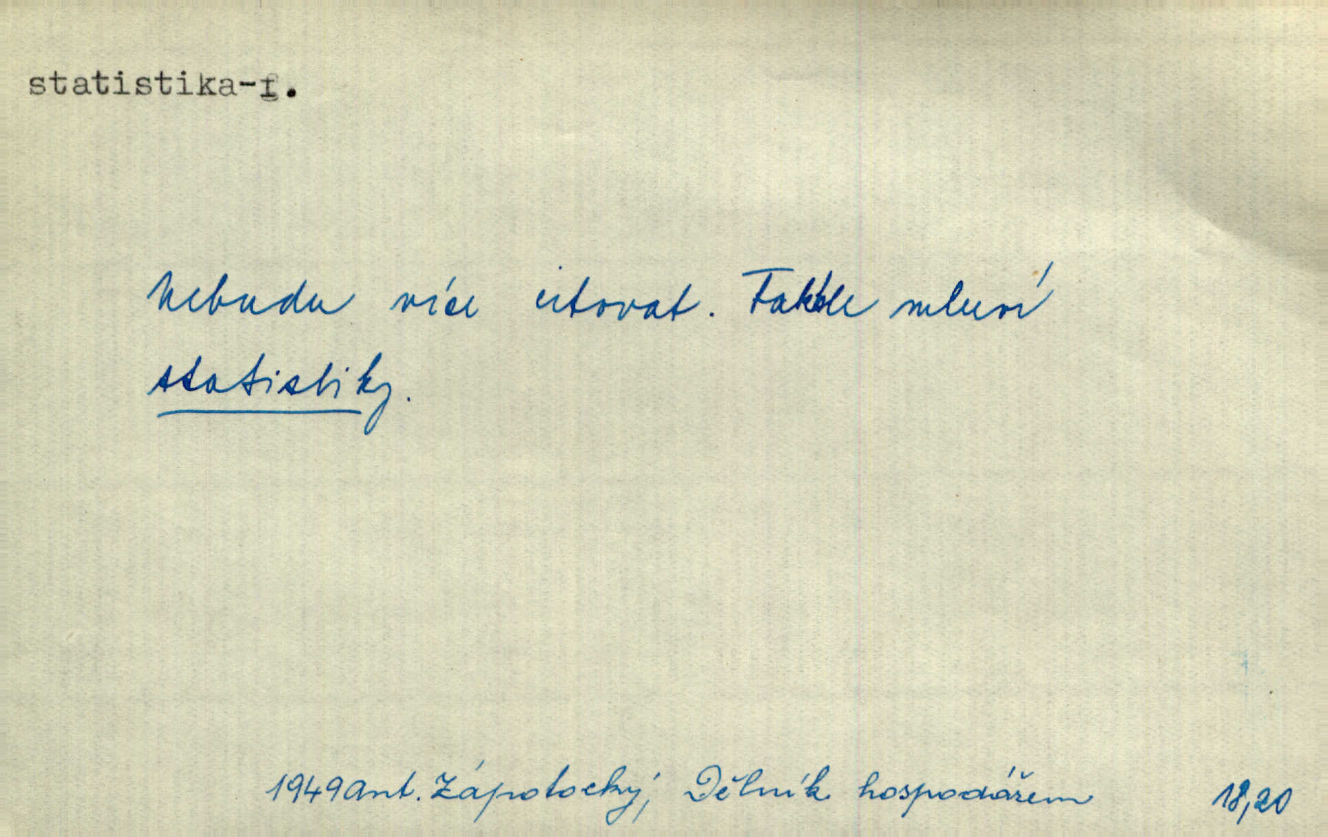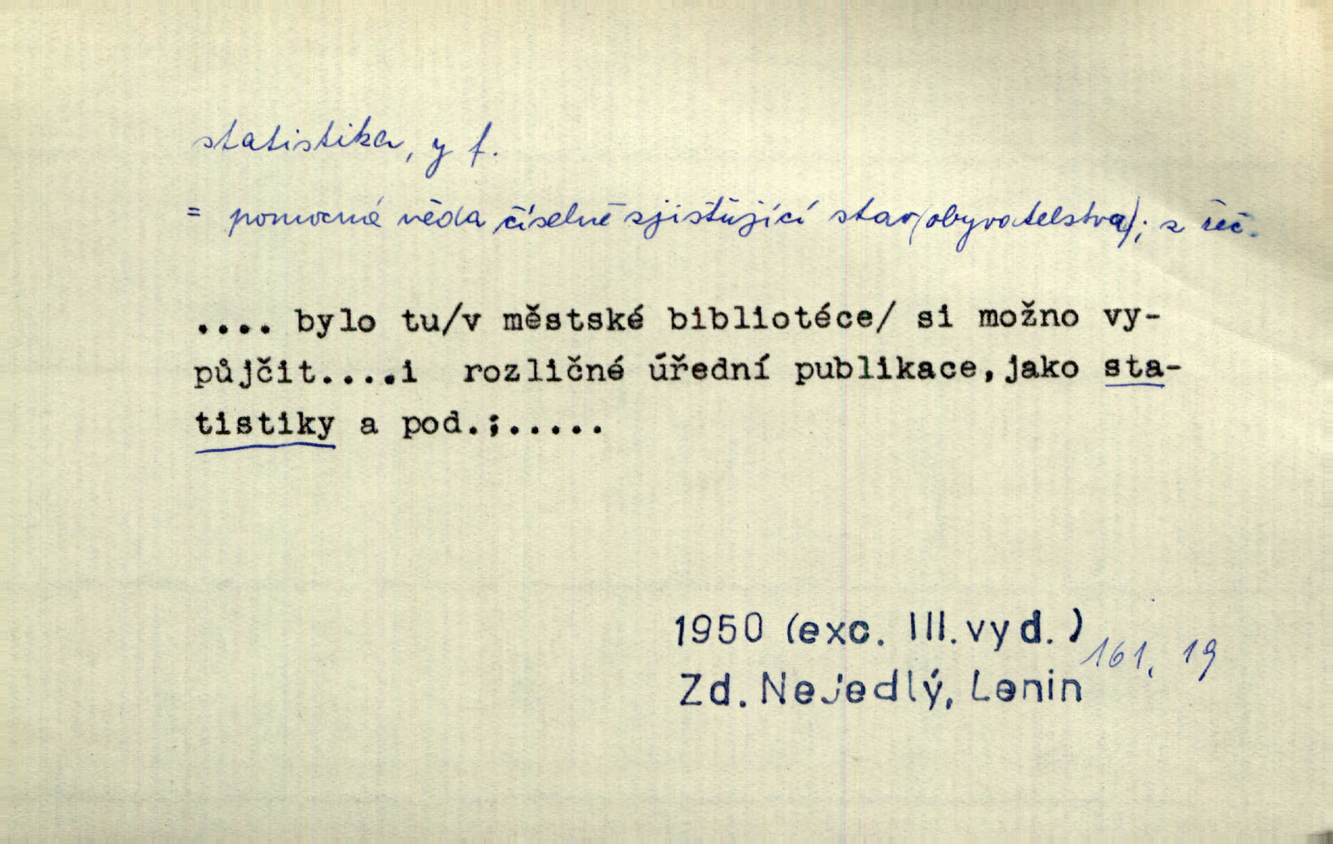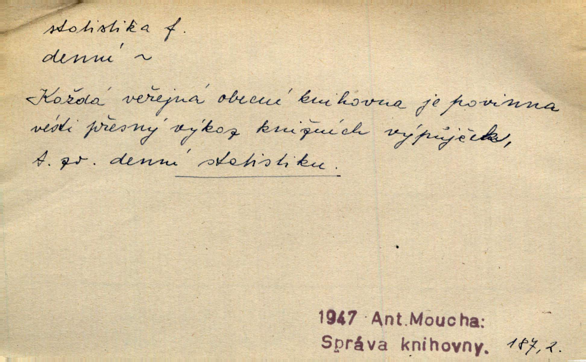 - statistika, -y f. číselné zaznamenání a zkoumání souhrnných, hromadných jevů; věda zjišťující číselně soustavným pozorováním hospodářské, sociální a j. jevy ve státě a společnosti; zkoumající jejich příčiny a stanovící důsledky. Provedl jsem jednou statistiku v řadě úřadů a institucí. Mach. Napadlo mu číslo to ze statistiky, která tvrdí, že na jednoho otce připadají čtyři potomci. Staš. Všecky ty statistiky o čtení u dětí, o oblibách, sklonech jsou hodně ilusorní. Lit. noviny. Statistika slov [ve verši Březinově] podle počtu slabik prozrazuje nadnormální počet slovních celků trojslabičných. Muk. Nákupní a prodejní statistiku má stará paní v malíčku. Sova. Studium úmrtnostní statistiky jest stíženo tím, že věkové rozvrstvení obyvatelstva jest ve městech zcela jiné než na venkově. Boh. Veř. spr. statistika hospodářská, sociální, kulturní, statistika mzdová, zemědělská, lesní, průmyslová a j. D Zast. nauka o státě a státním zřízení. Povzbuzoval ho Jungmann k sepsání statistiky české. Zel.