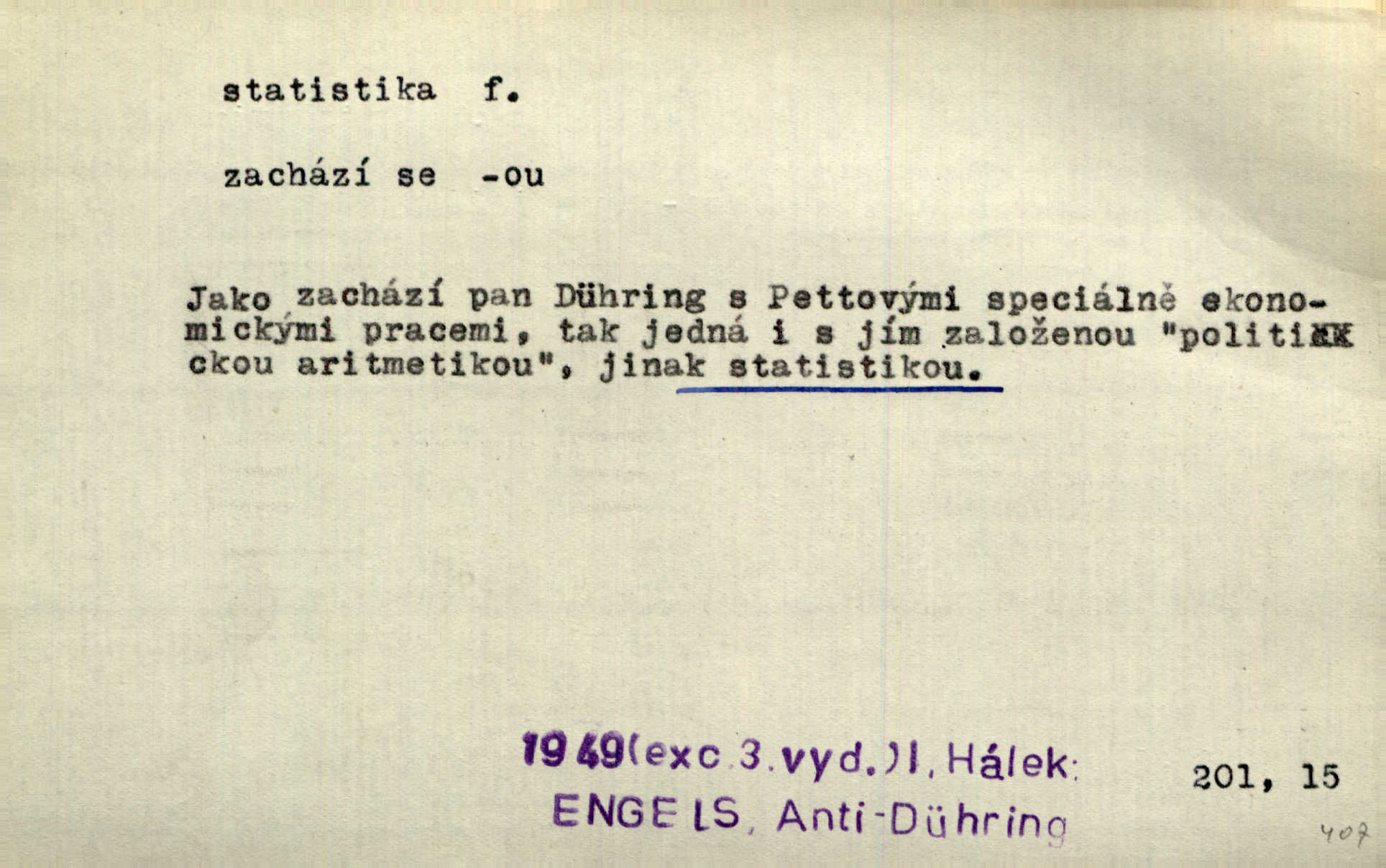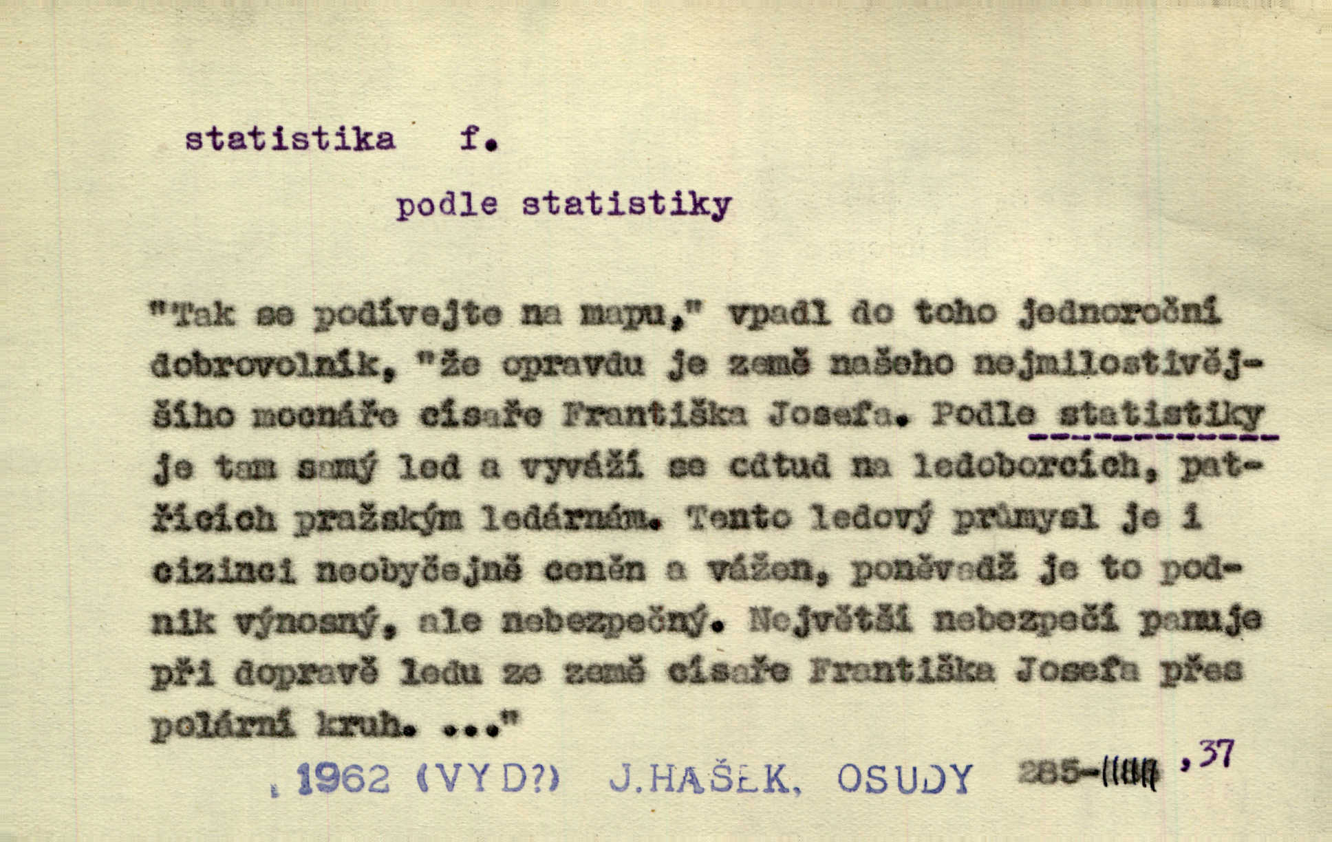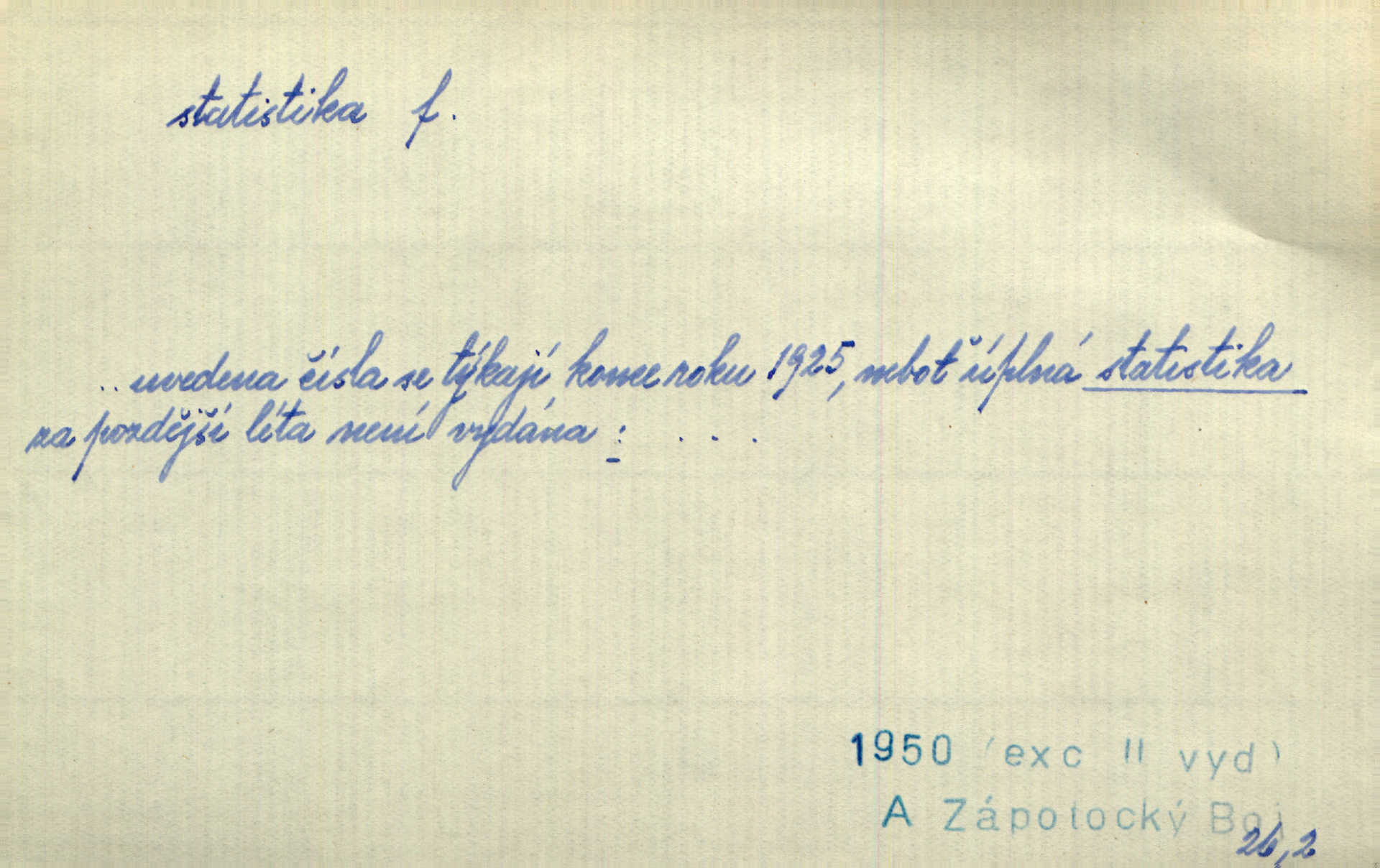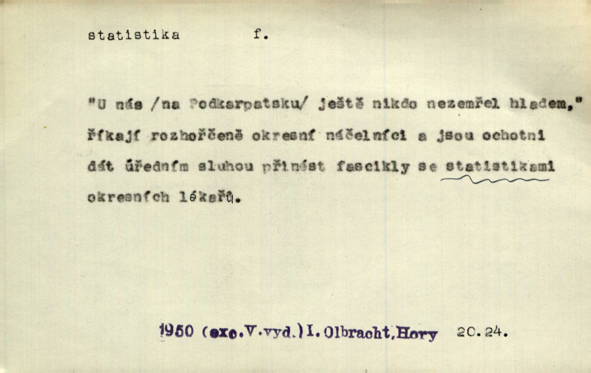 - statistika, -y f. číselné zaznamenání a zkoumání souhrnných, hromadných jevů; věda zjišťující číselně soustavným pozorováním hospodářské, sociální a j. jevy ve státě a společnosti; zkoumající jejich příčiny a stanovící důsledky. Provedl jsem jednou statistiku v řadě úřadů a institucí. Mach. Napadlo mu číslo to ze statistiky, která tvrdí, že na jednoho otce připadají čtyři potomci. Staš. Všecky ty statistiky o čtení u dětí, o oblibách, sklonech jsou hodně ilusorní. Lit. noviny. Statistika slov [ve verši Březinově] podle počtu slabik prozrazuje nadnormální počet slovních celků trojslabičných. Muk. Nákupní a prodejní statistiku má stará paní v malíčku. Sova. Studium úmrtnostní statistiky jest stíženo tím, že věkové rozvrstvení obyvatelstva jest ve městech zcela jiné než na venkově. Boh. Veř. spr. statistika hospodářská, sociální, kulturní, statistika mzdová, zemědělská, lesní, průmyslová a j. D Zast. nauka o státě a státním zřízení. Povzbuzoval ho Jungmann k sepsání statistiky české. Zel.