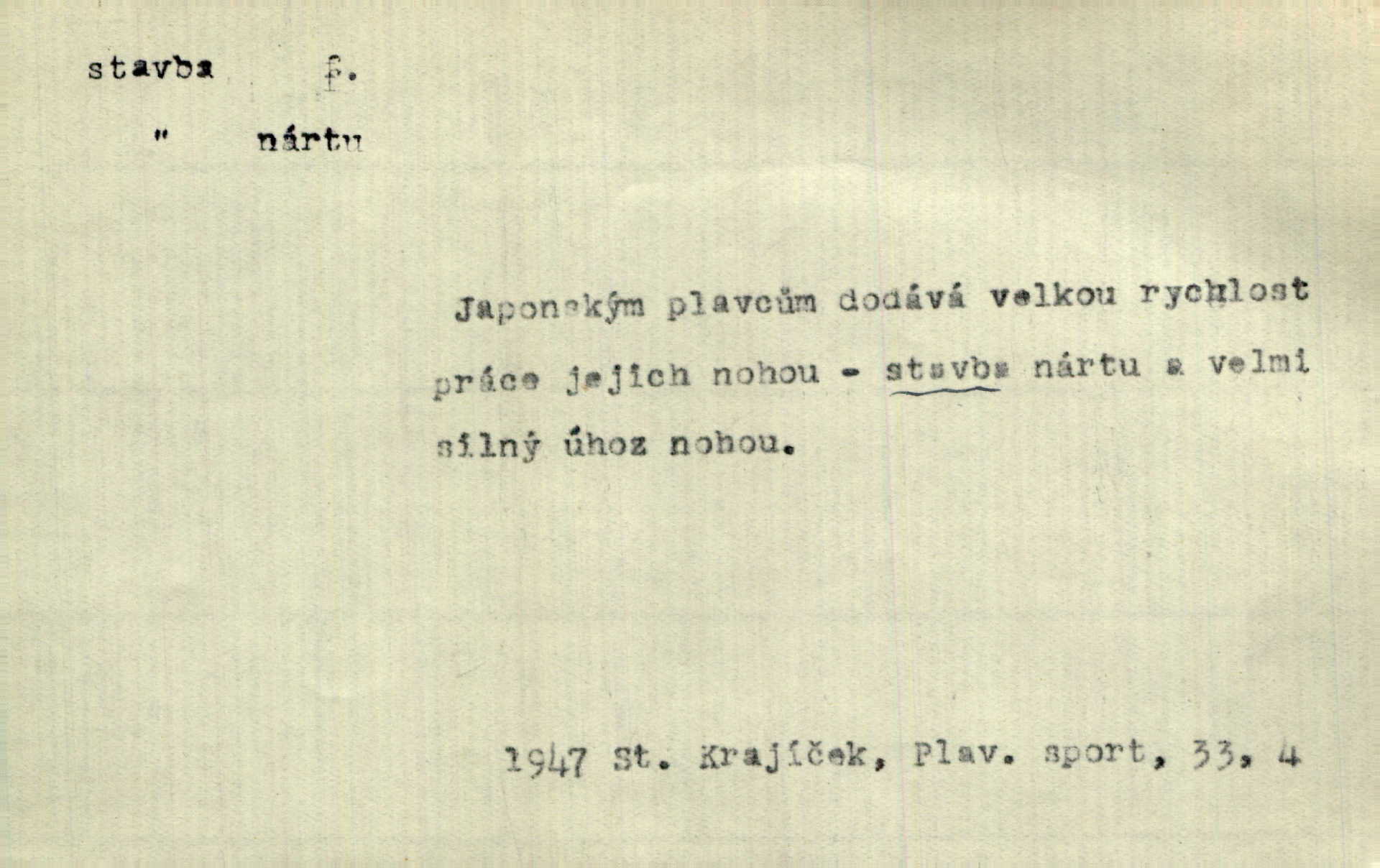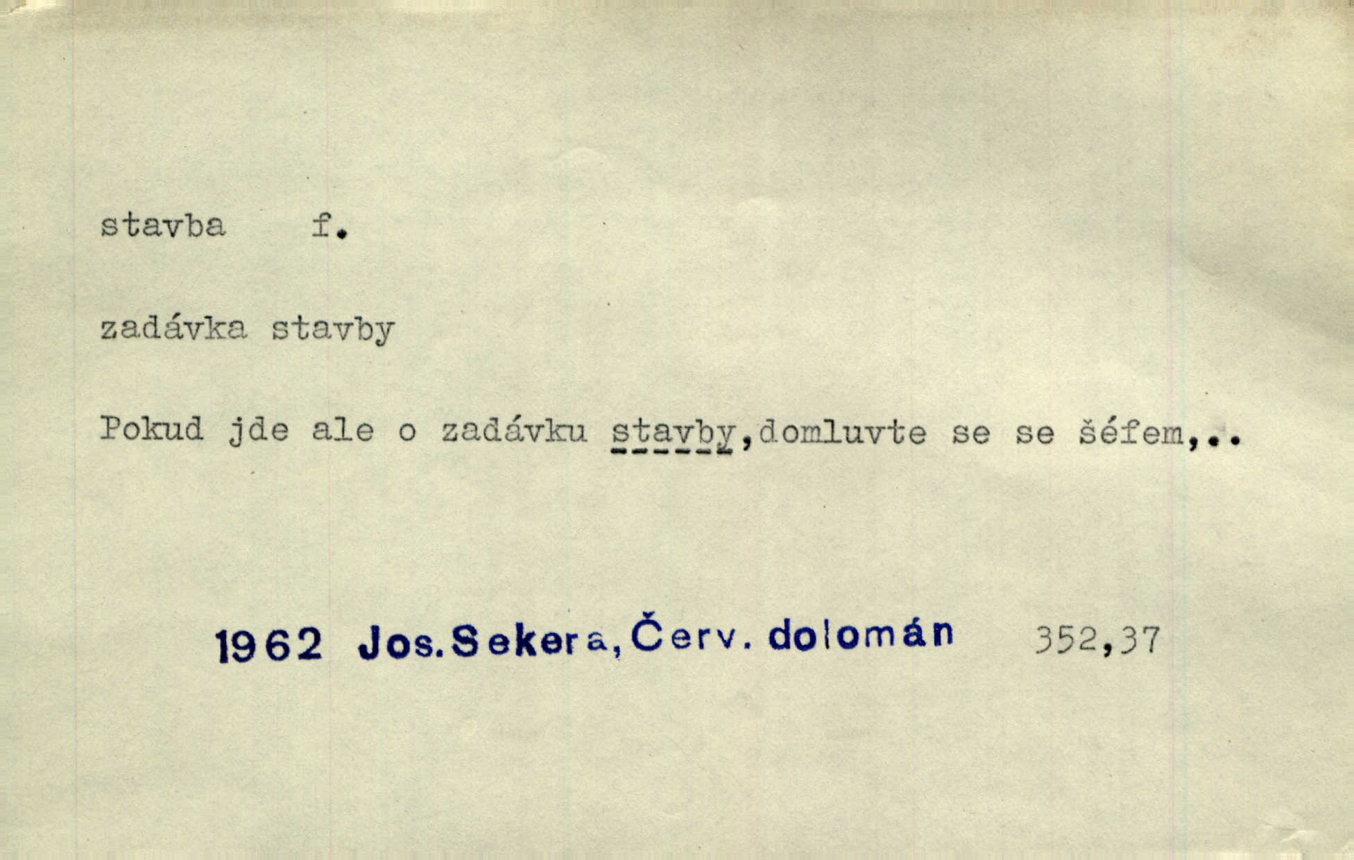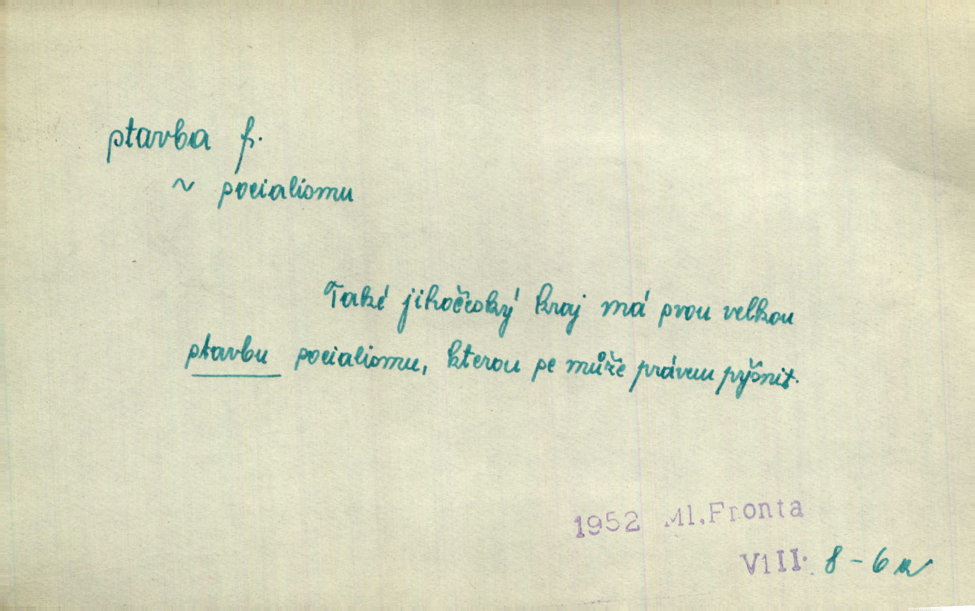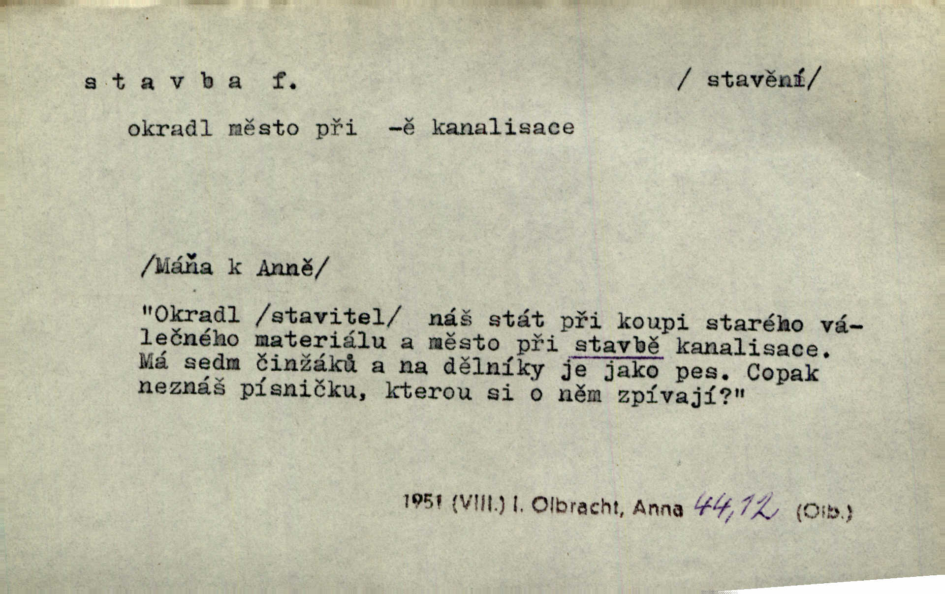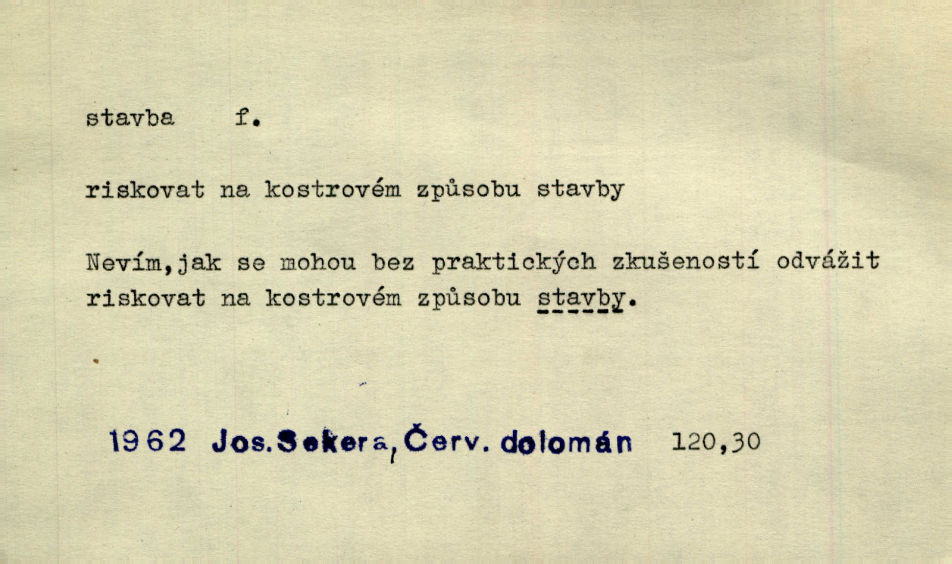 - stavba, -y f. souhrn výkonů určených k zbudování, vytvoření konstruktivního, technického díla, stavění. Mluví o stavbě nějaké továrny na Labi. Staš. Žádali vrchního o povolení ku stavbě. Jir. Opat Athanáš, jenž zvláště ve stavitelství sobě liboval, podnikl některé stavby. Jir. Za inženýry přihrnuli se různí podnikatelé stavby. Baar. On každý den ke stavbě dohlížel. Arb. Dnes pracujeme na stavbě jako ve všední den. Herrm. Za koníčka oblíbeného měl řezbu a stavbu lepenkových chrámů a hradů. Bouš. Z dříví bukového dělají se klády, též potřebuje se k vodním stavbám. Něm. Půjde prý na stavbu na železnici. Pfleg. Vyjednával s mužem zkušeným ve stavbě lodí. Zey. Kráčel v technice do sálu pro stavbu strojů. Svob. Technická věda, která se zabývá úkoly a prostředky výstavby obcí, se jmenuje stavba měst. Enc. č. ml. Přen. Základy ke stavbě mohútného státu byly již položeny. Pal. D výtvor této činnosti, něco vystavěného, zpr. budova Nádhernou stavbu tu zasvětili sv. Františku Xaverskému. Svět. Za vysokou mansardou hlavní budovy čněly ostatky pozdější gothické stavby. Zey. Dále do městečka kamenných staveb ubývalo. Rais. Patřme na veřejné stavby, na silnice, železnice. Havl. Cirkusový vůz je poctivá stavba z tvrdého dřeva. Týd. rozhl. Však oni [mravenci] pevně staví, a když jim to silnější moc nezkazí, tak snadno se jim stavba nesboří. Něm. Přen. Stavba kdysi mocné říše římské se viklá. Vaněček. Sfoukne rozmar chefův celou stavbu plánů zřízencových. Krás. Žel. vrchní stavba. Stav. vodní, břehové stavby; pozemní stavby, vodohospodářské stavby; srubové stavby. D způsob provedení, uspořádání částí tohoto výtvoru, stavební sloh. Prastarý dům divné stavby uličky běh uzavírá. Klášt. V rohu zahrady stál pavillonek lehounké stavby. Jir. Pod hradem stojí malá chaloupka zcela obyčejné chudobné stavby. Mácha. Divně vyjímal se v rozvalinách těch kostelík stavby novověké. Jir. Máchovo dílo je důmyslná stavba. Krit. měs. D záměrné, účelné sestavení, uspořádání, sestavování, pořádání částí celku. Jde [lehká atletika] cestami, které vedou k dokonalé stavbě těla. Rozhlas. Hrabě hladil bratrovy koně jemné stavby. Lang. Stavba jeho [Rekovy] lebky a slechy elegantně zavěšené vzbuzují nadšení všech lovců. Herb. Dokonalá znalost stavby květin a přesné poznatky dendrologické byly mu [malíři] cennou průpravou. Týd. rozhl. Nesčíslné zákony stavby a skladby probíhají hmotou jako tajemné matematické blesky. K. Čap. Nelze si zdravou stavbu a skladbu národa myslit bez zemědělství. Brázda. Umělecké dílo není pouhým napodobením jevové reality, ale záměrnou stavbou. Branž. Co do stavby jest první jednání [hry] nejzajímavější. Zl. Praha. Ve stavbě příběhů dosahuje autorka kouzelné poutavosti. Eva. Zajímaly mě stihající se rýmy, rytmický chod, stavby strof. Mach. Nevysvětlitelným způsobem se mu [autorovi] ztratila celá mluvnická stavba jazyka. V. Math. Jiná složka, která je již docela nepřímo spjata se zvukem, je syntaktická stavba věty. Muk. Fys. stavba hmoty. Geol. uspořádáni součástí v hornině, textura.