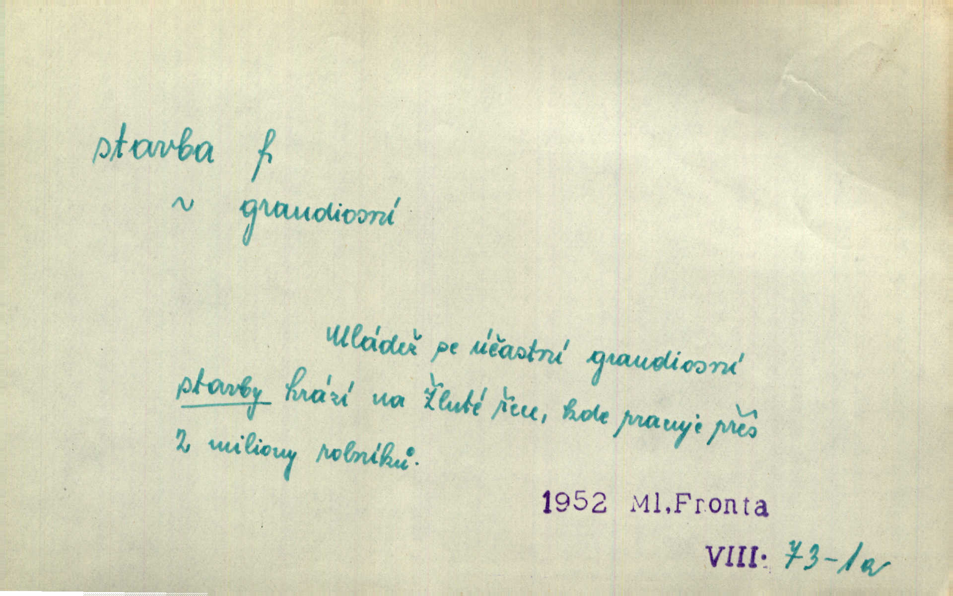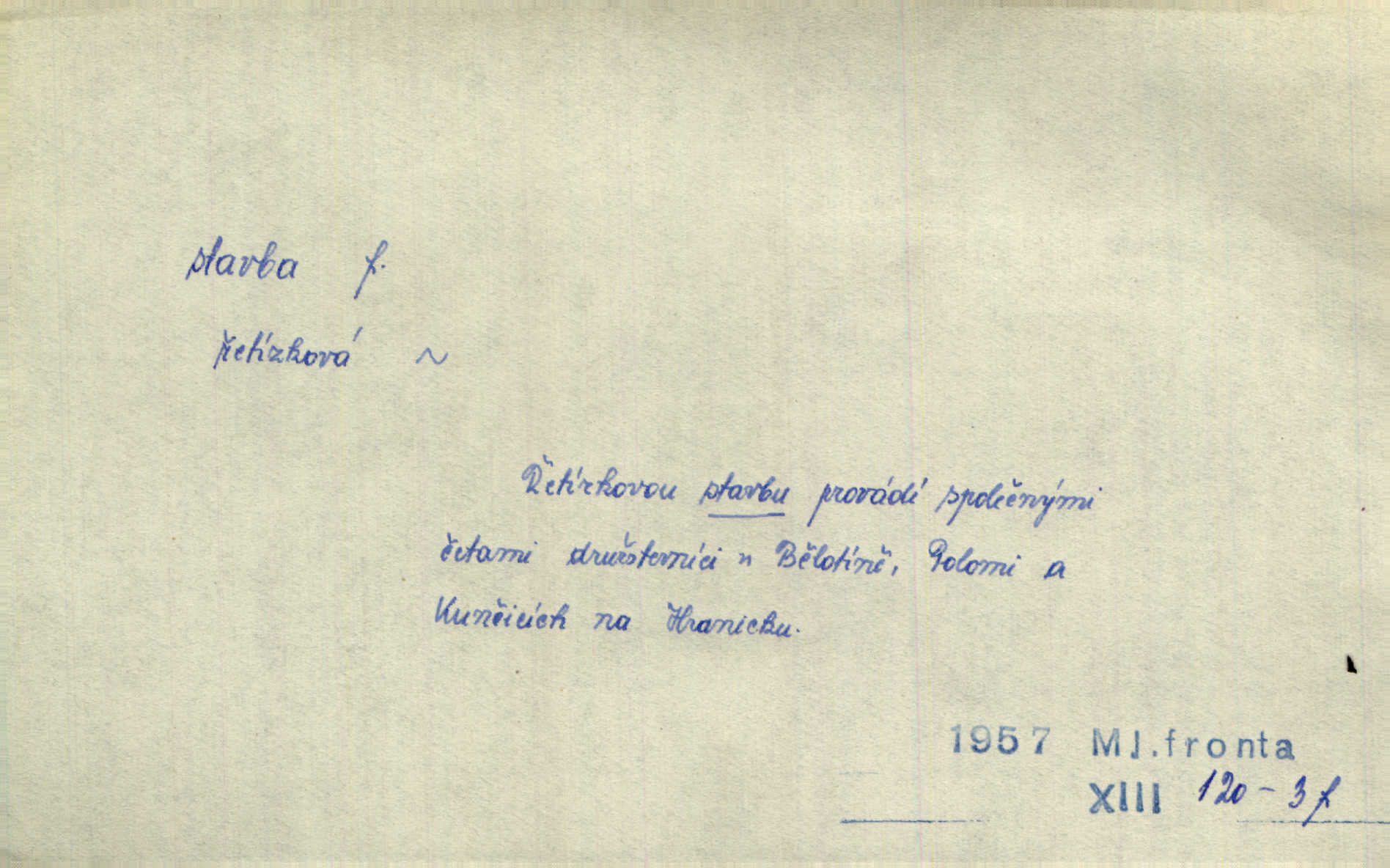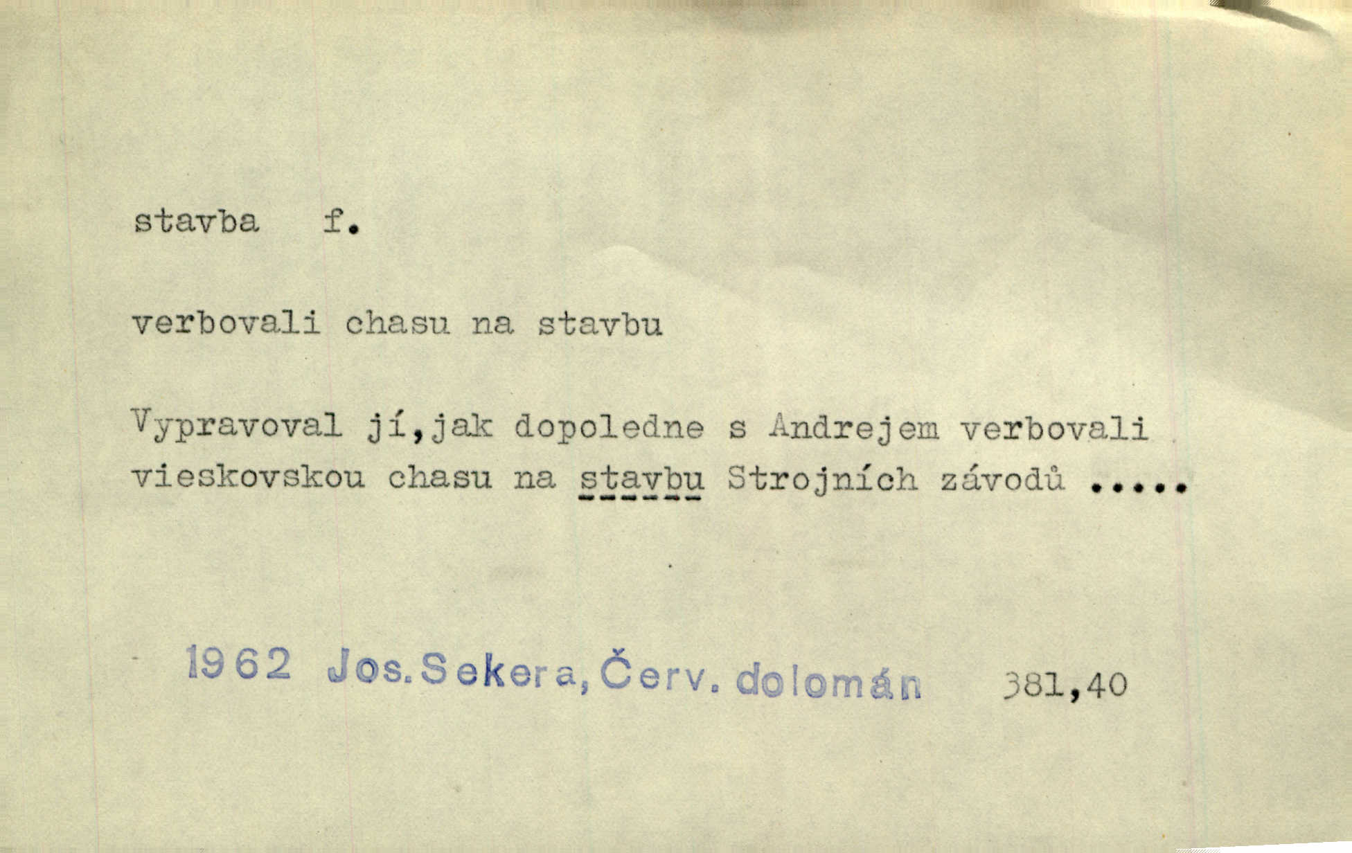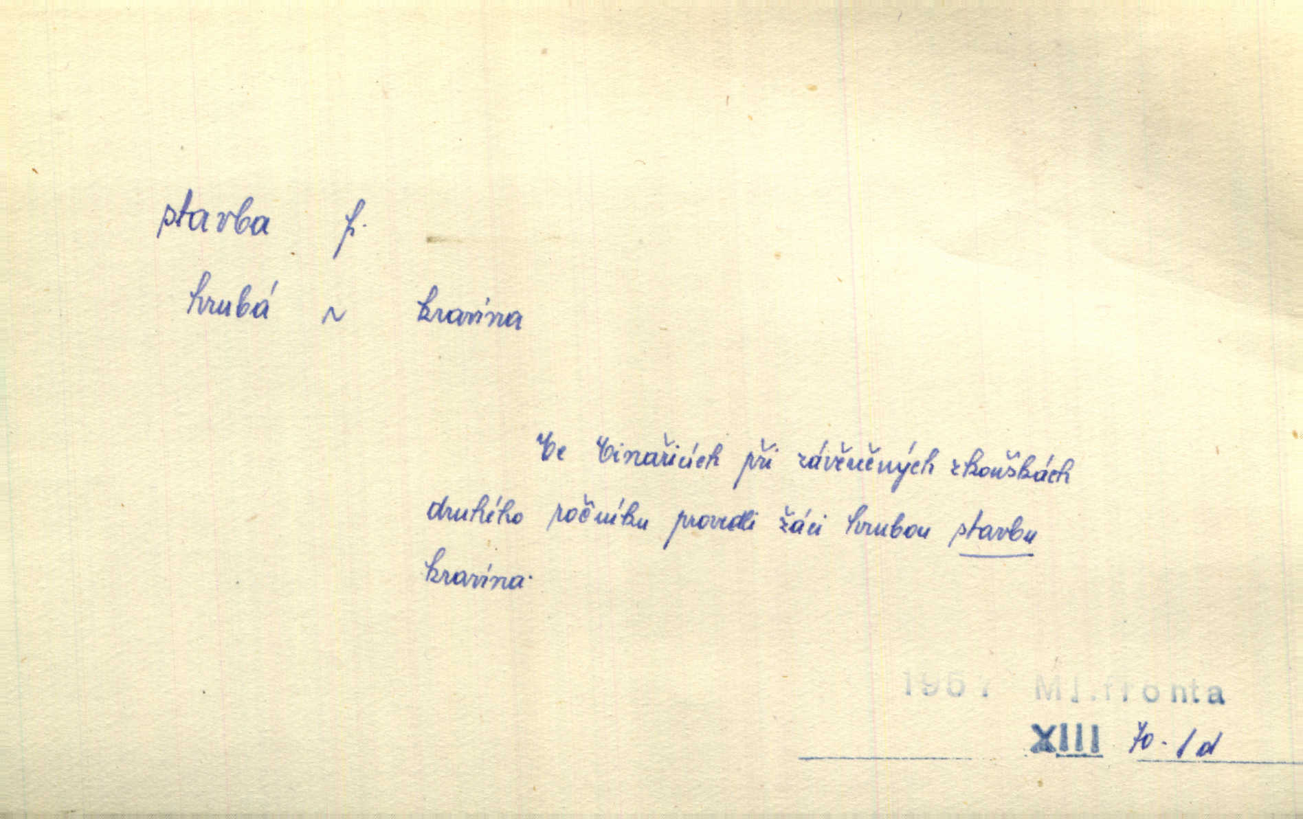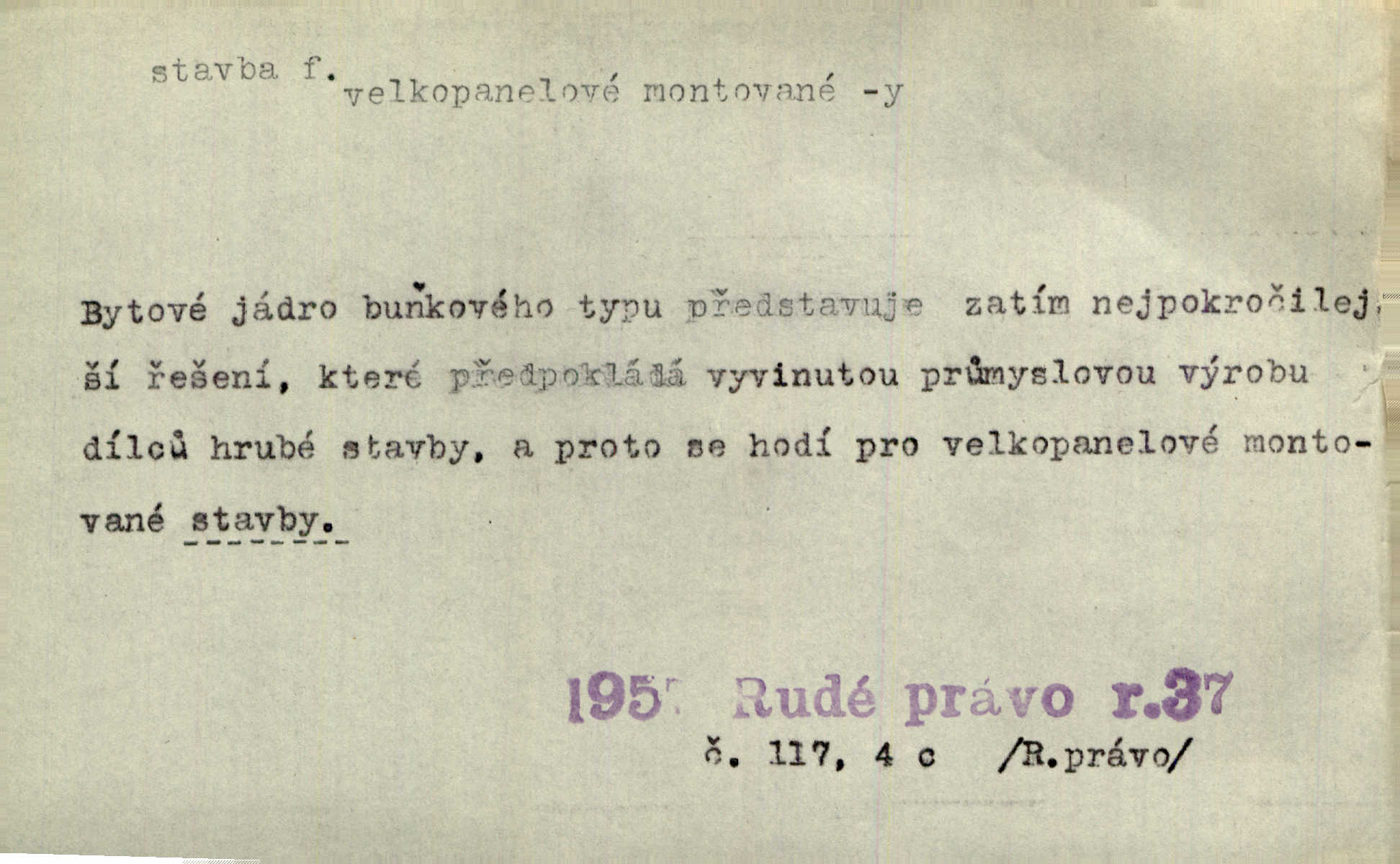 - stavba, -y f. souhrn výkonů určených k zbudování, vytvoření konstruktivního, technického díla, stavění. Mluví o stavbě nějaké továrny na Labi. Staš. Žádali vrchního o povolení ku stavbě. Jir. Opat Athanáš, jenž zvláště ve stavitelství sobě liboval, podnikl některé stavby. Jir. Za inženýry přihrnuli se různí podnikatelé stavby. Baar. On každý den ke stavbě dohlížel. Arb. Dnes pracujeme na stavbě jako ve všední den. Herrm. Za koníčka oblíbeného měl řezbu a stavbu lepenkových chrámů a hradů. Bouš. Z dříví bukového dělají se klády, též potřebuje se k vodním stavbám. Něm. Půjde prý na stavbu na železnici. Pfleg. Vyjednával s mužem zkušeným ve stavbě lodí. Zey. Kráčel v technice do sálu pro stavbu strojů. Svob. Technická věda, která se zabývá úkoly a prostředky výstavby obcí, se jmenuje stavba měst. Enc. č. ml. Přen. Základy ke stavbě mohútného státu byly již položeny. Pal. D výtvor této činnosti, něco vystavěného, zpr. budova Nádhernou stavbu tu zasvětili sv. Františku Xaverskému. Svět. Za vysokou mansardou hlavní budovy čněly ostatky pozdější gothické stavby. Zey. Dále do městečka kamenných staveb ubývalo. Rais. Patřme na veřejné stavby, na silnice, železnice. Havl. Cirkusový vůz je poctivá stavba z tvrdého dřeva. Týd. rozhl. Však oni [mravenci] pevně staví, a když jim to silnější moc nezkazí, tak snadno se jim stavba nesboří. Něm. Přen. Stavba kdysi mocné říše římské se viklá. Vaněček. Sfoukne rozmar chefův celou stavbu plánů zřízencových. Krás. Žel. vrchní stavba. Stav. vodní, břehové stavby; pozemní stavby, vodohospodářské stavby; srubové stavby. D způsob provedení, uspořádání částí tohoto výtvoru, stavební sloh. Prastarý dům divné stavby uličky běh uzavírá. Klášt. V rohu zahrady stál pavillonek lehounké stavby. Jir. Pod hradem stojí malá chaloupka zcela obyčejné chudobné stavby. Mácha. Divně vyjímal se v rozvalinách těch kostelík stavby novověké. Jir. Máchovo dílo je důmyslná stavba. Krit. měs. D záměrné, účelné sestavení, uspořádání, sestavování, pořádání částí celku. Jde [lehká atletika] cestami, které vedou k dokonalé stavbě těla. Rozhlas. Hrabě hladil bratrovy koně jemné stavby. Lang. Stavba jeho [Rekovy] lebky a slechy elegantně zavěšené vzbuzují nadšení všech lovců. Herb. Dokonalá znalost stavby květin a přesné poznatky dendrologické byly mu [malíři] cennou průpravou. Týd. rozhl. Nesčíslné zákony stavby a skladby probíhají hmotou jako tajemné matematické blesky. K. Čap. Nelze si zdravou stavbu a skladbu národa myslit bez zemědělství. Brázda. Umělecké dílo není pouhým napodobením jevové reality, ale záměrnou stavbou. Branž. Co do stavby jest první jednání [hry] nejzajímavější. Zl. Praha. Ve stavbě příběhů dosahuje autorka kouzelné poutavosti. Eva. Zajímaly mě stihající se rýmy, rytmický chod, stavby strof. Mach. Nevysvětlitelným způsobem se mu [autorovi] ztratila celá mluvnická stavba jazyka. V. Math. Jiná složka, která je již docela nepřímo spjata se zvukem, je syntaktická stavba věty. Muk. Fys. stavba hmoty. Geol. uspořádáni součástí v hornině, textura.