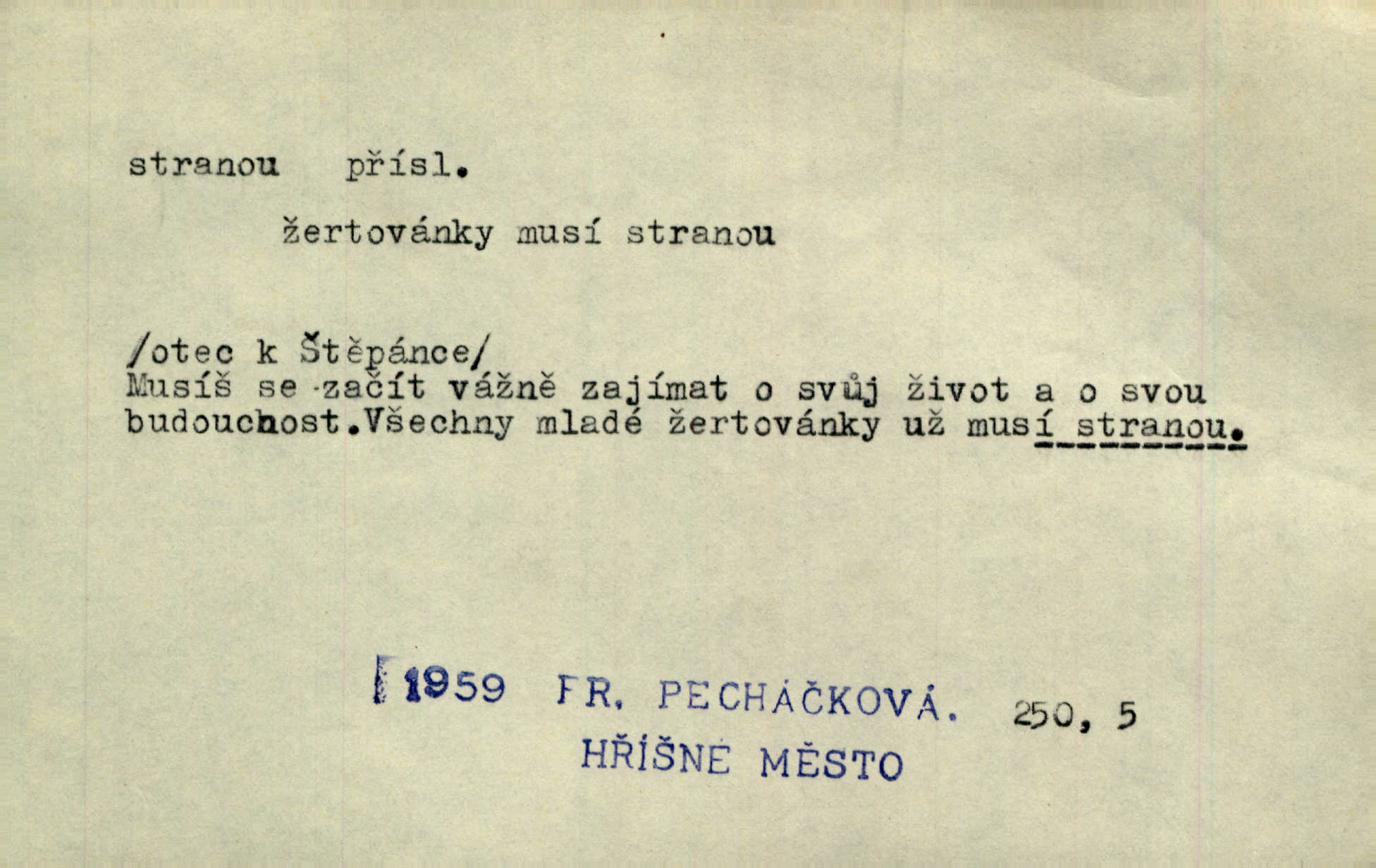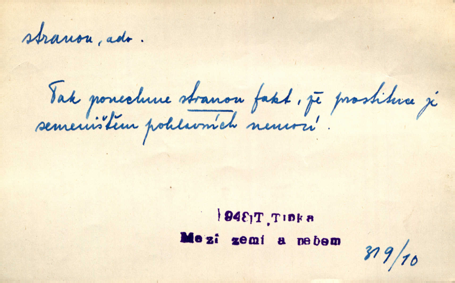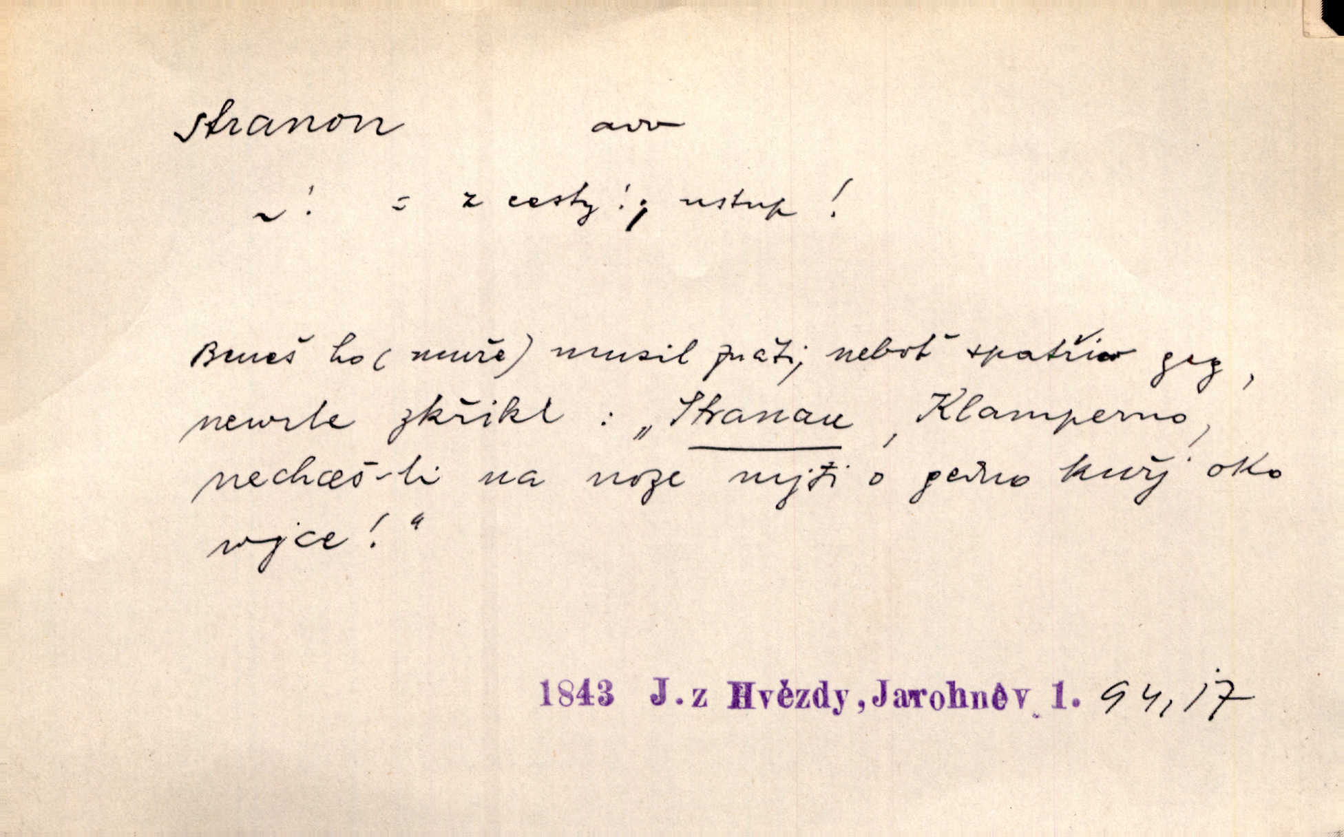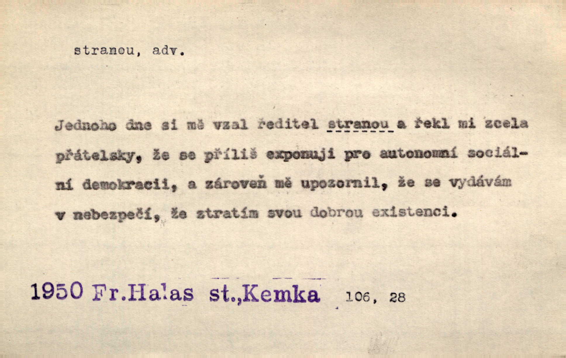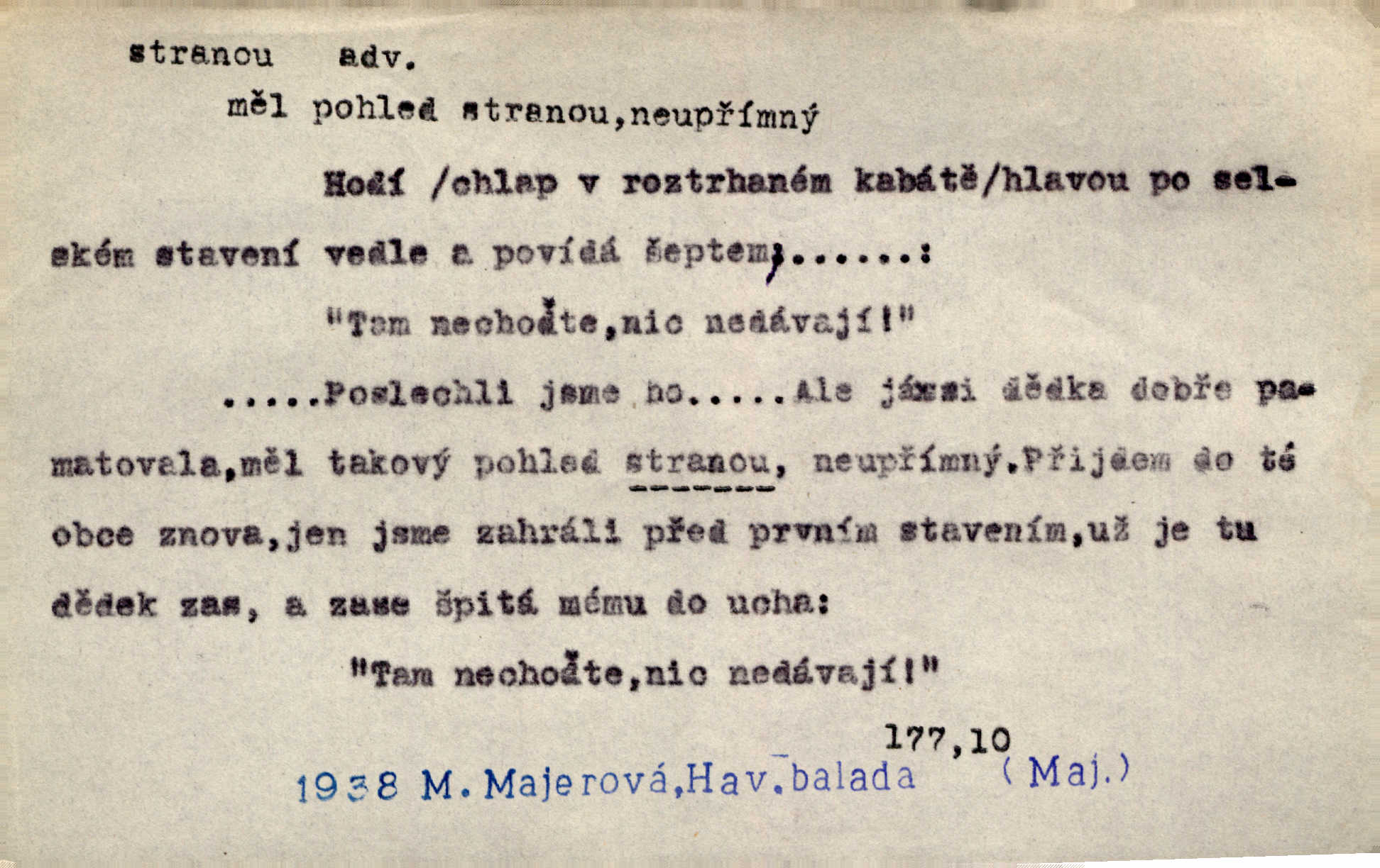 - stranou adv. na jednu stranu, na straně, ke straně. Světlý kulatý klobouk maje stranou na kudrnaté hlavě, široké stuhy, visící se skřipce, hodil za ucho. Rais. Jak tomu mám rozumět? — tázal se Löwenwartl, nakloniv stranou hlavu. J. J. Kol. Každý deštník nakloněný stranou mníš být hlavou houby nadulé. Mach. D pryč s cesty, pryč z prostředí, v ústraní, do ústraní. Vyzdvihla svítilnu a dávala papíry stranou. Ner. [Cumel] ujev dítěti z úst, zapadl stranou, do peřinek. Jir. Odstrčil mě stranou. Šim. Vzal děvče stranou i navedl ji, aby vyslídila, kde má Józa fěrtoch uložený. Svět. Mérimée seděl stranou a kreslil. Vrch. Stranou šel abbé Dobrovský. Čech. Pryč, z cesty, stranou, Ctirad mým je vězněm! Vrch. Musil jsem nechat vše stranou a s tebou promluvit. Svět. Polož ty peníze někam stranou! Budeš je brzy potřebovat ulož. Zey. Může i tak dávati týdně stranou, byť i nevelký obnos. Her. D opodál, poněkud vzdáleně. Ulice Giulia leží stranou od čtvrti. Zey. Skoro uprostřed návrší, od vozové cesty stranou, rozkládal se hřbitov. Hál. Stranou od něho seděl Salem. Hál. Stranou od hlavní brány na náspích na slunci se hřáli. Ehrenb. Stranou se táhl velký les. Svět. D šikmo, kose, úkosem. Pavel díval se stranou. Maj. Přicházelo to stranou od háje. Tyl. Literáci dívali se naň stranou, ale dělal, jako by neviděl. Rais. D v nevýznamnosti, v podřízeném postavení, do podřízeného postavení. Vše ostatní zůstává u nich stranou. Svět. Sousedé se mrzeli, že dědeček je tak stranou. Svět. Vejměnkář je vejměnkář, ten ať jde stranou a nikomu nepřekáží. Rais. Tu přišel mandát a Laudon musil stranou byl odstraněn. Jir. D tajně, potají, skrytě. „Starý kaprál“ přezdíval mu stranou dráb Haťárek. Jir. [Poslanec] jen lysou hlavou rázně kýval, svorně hlasoval a stranou zíval. Čech. Odložíc je [jablko] s povzdechem stranou, rozkrojila druhé pro Barunku. Něm.