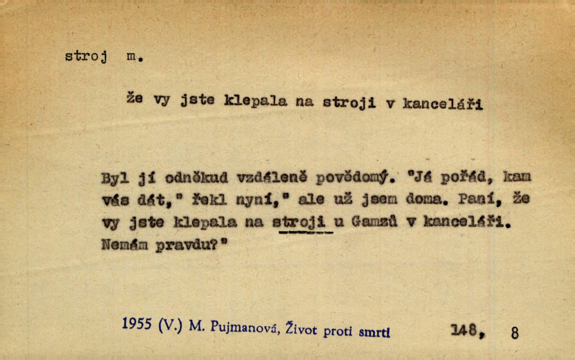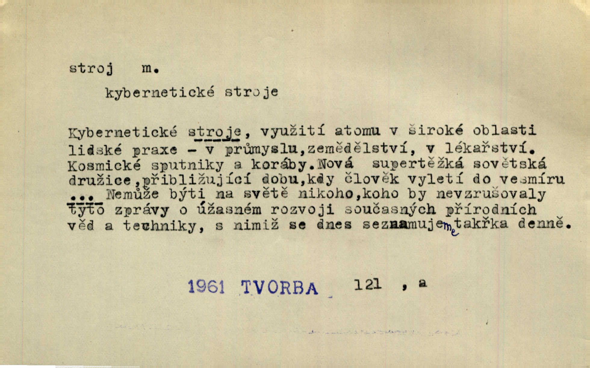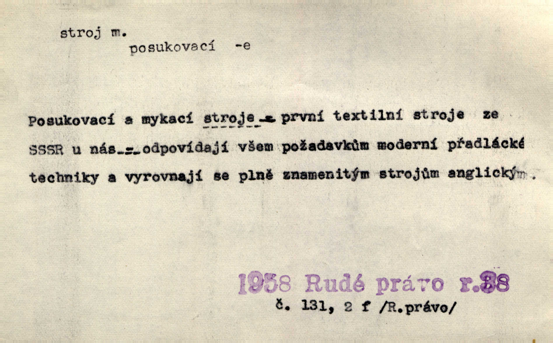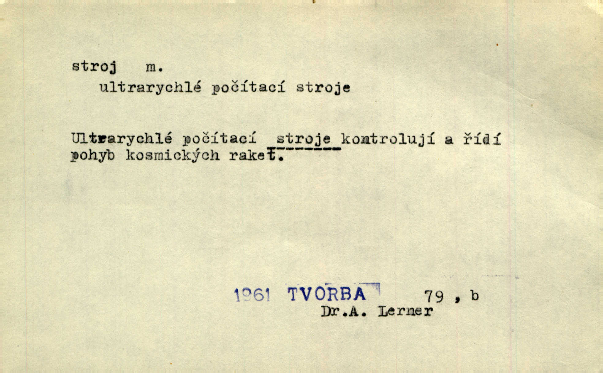 - stroj, -e m. složité zařízení na mechanické vykonávání práce; řidč. přístroj. Třetího [dělníka] zachytil stroj za ruku a rozdrtil mu ji. Herb. Když je secí stroj, je setí hračkou. Směja. Naproti drnčel šicí stroj. Mach. Sotva znatelné P stkvělo se na konci těchto pěti slov, do stroje diktovaných psacího. Čap. Ch. A za houfem jely dva vozy, na nichž jsou jistě naloženy nějaké obléhací stroje. Jir. Dost mám strojů v mučírně. Heyd. Konečně připadli lidé na hodiny se stroji, kolečky, pery, kyvadly atd. Ner. Ztratili v devíti dnech téměř tři sta strojů letadel. Týd. rozhl. Vtáhla celý stroj [jízdní kolo] do kuchyně. Maj. Ve velkých strojích se ukáže její hvězdná krása překvapujícím způsobem dalekohledech. Slouka. Svoje povinnosti vykonával jako stroj. Herb. Abrámek nedá se snížiti za pouhý stroj, na pouhého služebníka. Šmil. Hnal se jako stroj, jenž má uvnitř plno plamenů. Rais. Fys. každé zařízení k přenášení mechanické síly. Stroj parní, hnací a j. Stroj mláticí, šicí a j. Stroje kancelářské technická zařízení usnadňující kancelářské práce. Stroje psací, počítací, adresovací, rozmnožovací a j. Tech. pekelný stroj D Zast. nástroj, zvl. hudební. Kdo dosud byl řemeslníkem a oráčem, nechal všelikých strojův a chápal se zbraně. Jir. V tom rozkázal Šternberk muzikářům, aby začali v stroje své hráti muziky veselé. Win. Chápe poutník stroj; jme se děvě hrát. Kalina. Dovedla všecko zahrát a na jakýkoli stroj. Podl. Otevřel stroj [piano], přišoupl slečně sedadlo. Svět. D stroj, -e m. i f. zast. a kniž. způsob oblékání, ústroj, oděv, šat. Mladá malířka se ovšem nevyrovnala žádné z přítomných nádherou strojů. Jir. I počala se zámožnost jeviti i ve stroji. Nov. Bručel třetí [muž], dle kroje a stroje panský dráb. Šmil. Měnila nevědomky i svou podobu i svůj hlas a stroj. V. Mrš. Oblékne se pokaždé potápěč v celou svou stroj Světozor. V ženský stroj se přetvořují [muži]. Puchm. D Zř. postroj. Ještě jednou zableskl se skvělý stroj koní v jasném paprsku tam proniknuvším. Jir. Slavný kůň byl v zlaté stroji u starého chána. Vym. D stroj, -e m. řidč. organisace, organismus, stavba, struktura. Duše jeho [českého lidu], jeho myšlenkový i citový stroj hrubě se neproměnily. Hol. Ovládala dobře a vypočítavě složitý stroj svých citů. Hlad. O mně jakožto historiku mnozí lidé ani dovtípiti se neuměli, kterak já mohl přimlouvati se za stroj patrně revoluční, jakový bylo roztřídění říše Rakouské dle národností. Pal. S nastávajícím jarem rozjel se Hitlerův válečný stroj a udeřil na Dánsko a Norsko. J. Hron. Vedení boje proti nepřátelskému válečnému stroji. Gottw. D Zř. strojenost. Jsi dítě milé, prosté, beze stroje — snad nedovedeš změřit city moje. Hál. D Zř. chod při jídle. Měli jsme strojů na kolikero, ale od žádného mnoho. Něm. D Zool. bobří stroj zvláštní orgán na zadní části bobřího těla; tekutina jím vylučovaná. — V. t. strůj.