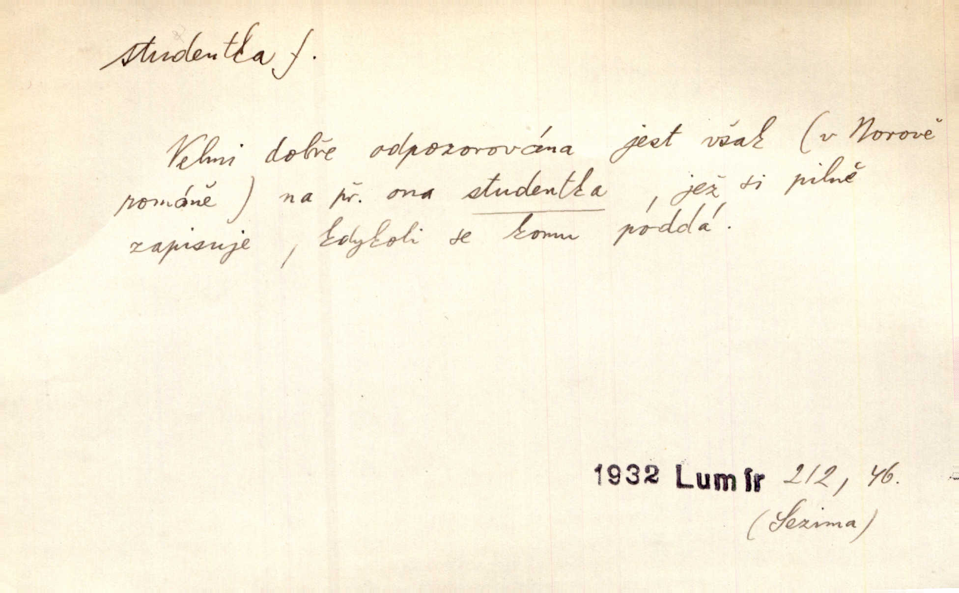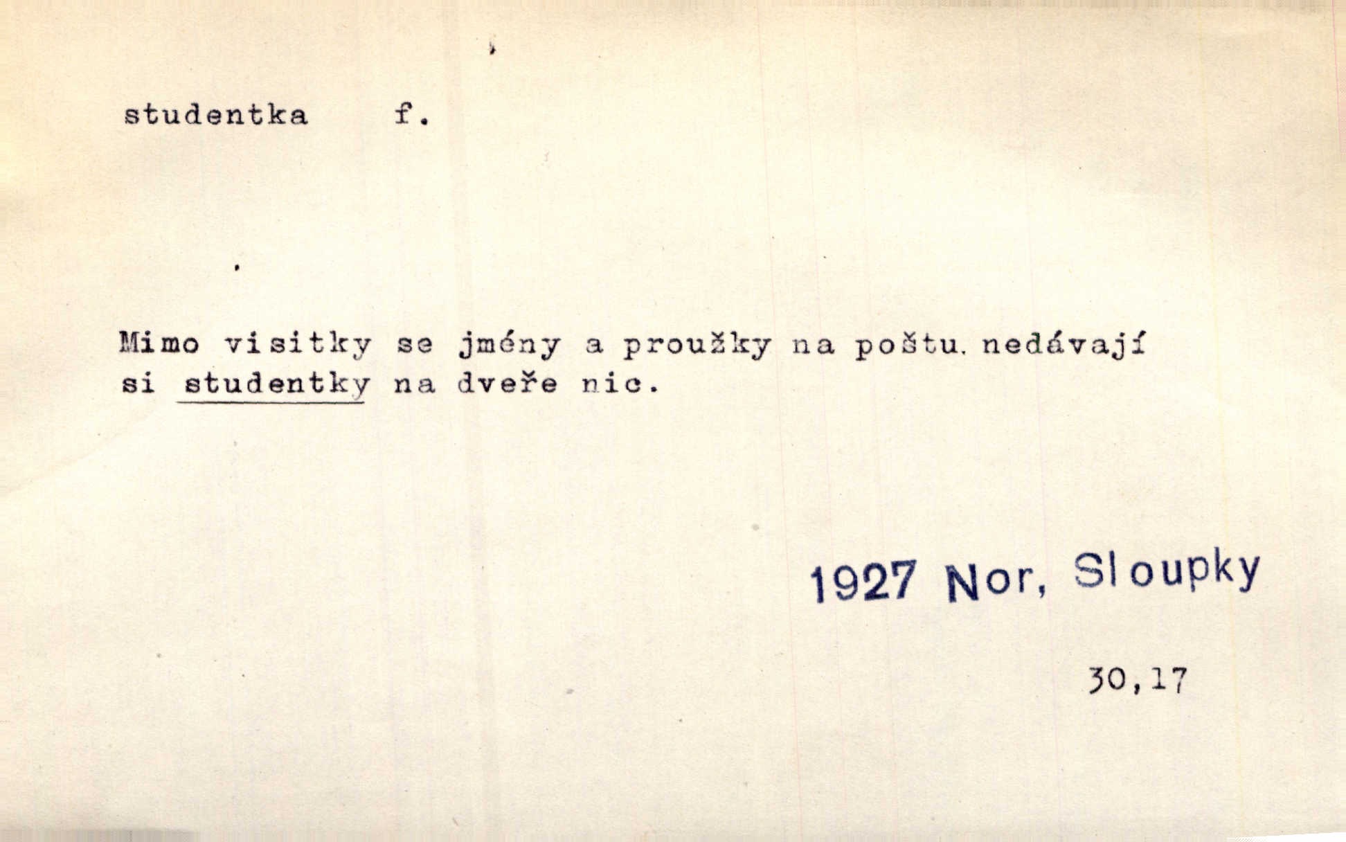 - studentka (ob. študentka), -y f. k student. Tam [v knihovně] u dlouhých stolů seděli studenti a dělníci, studentky a učenci. Maj. Také by bylo pěkné, až páter Dominik by házel ve škole své pyksly po študentkách. Schulz.