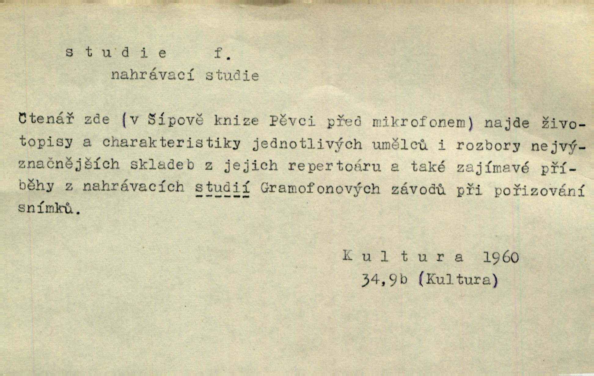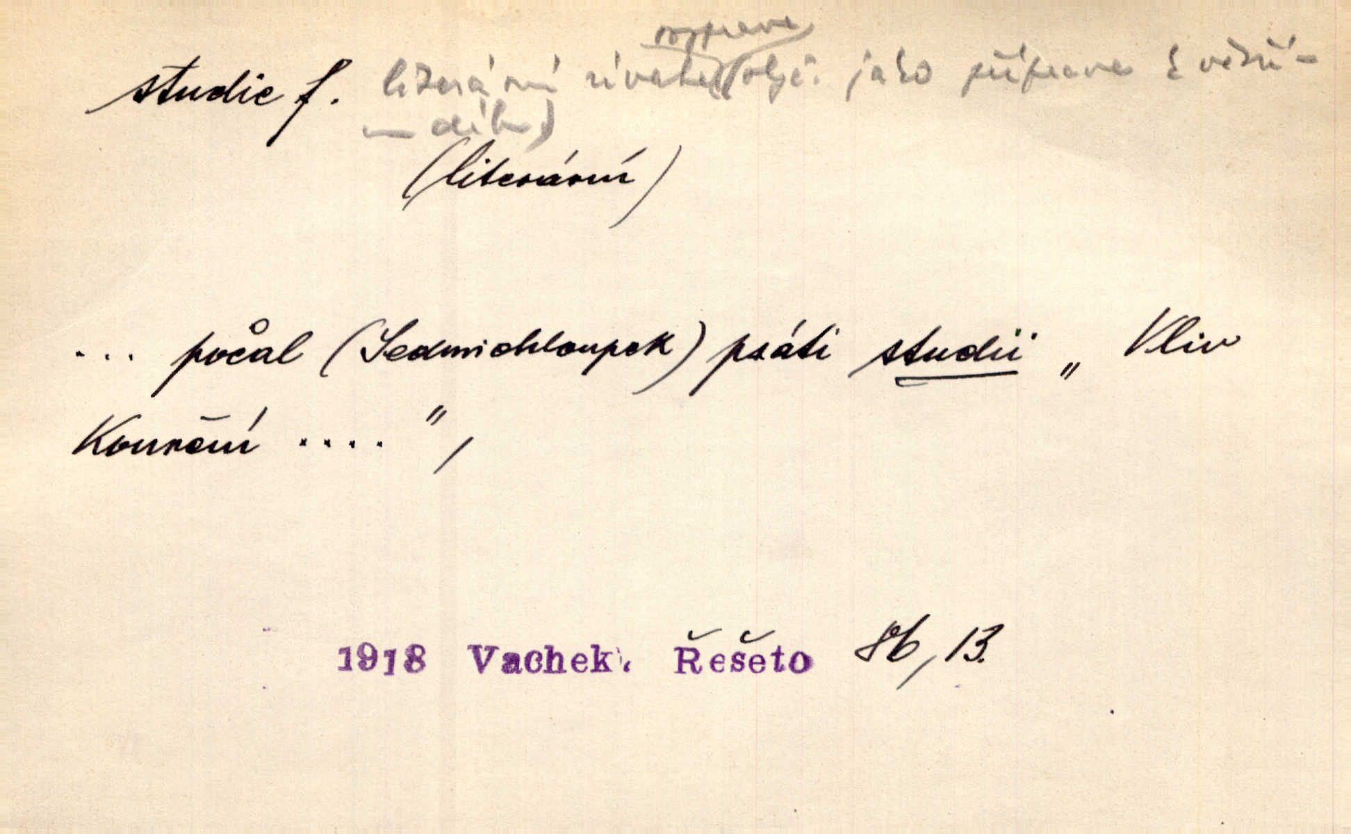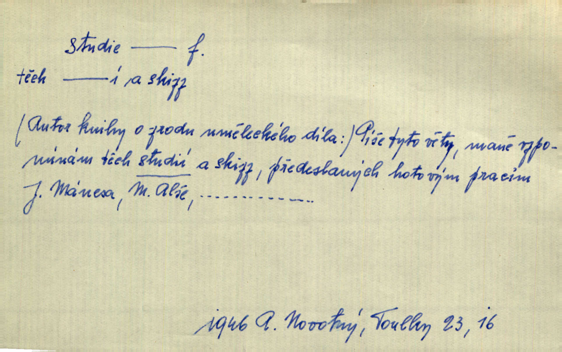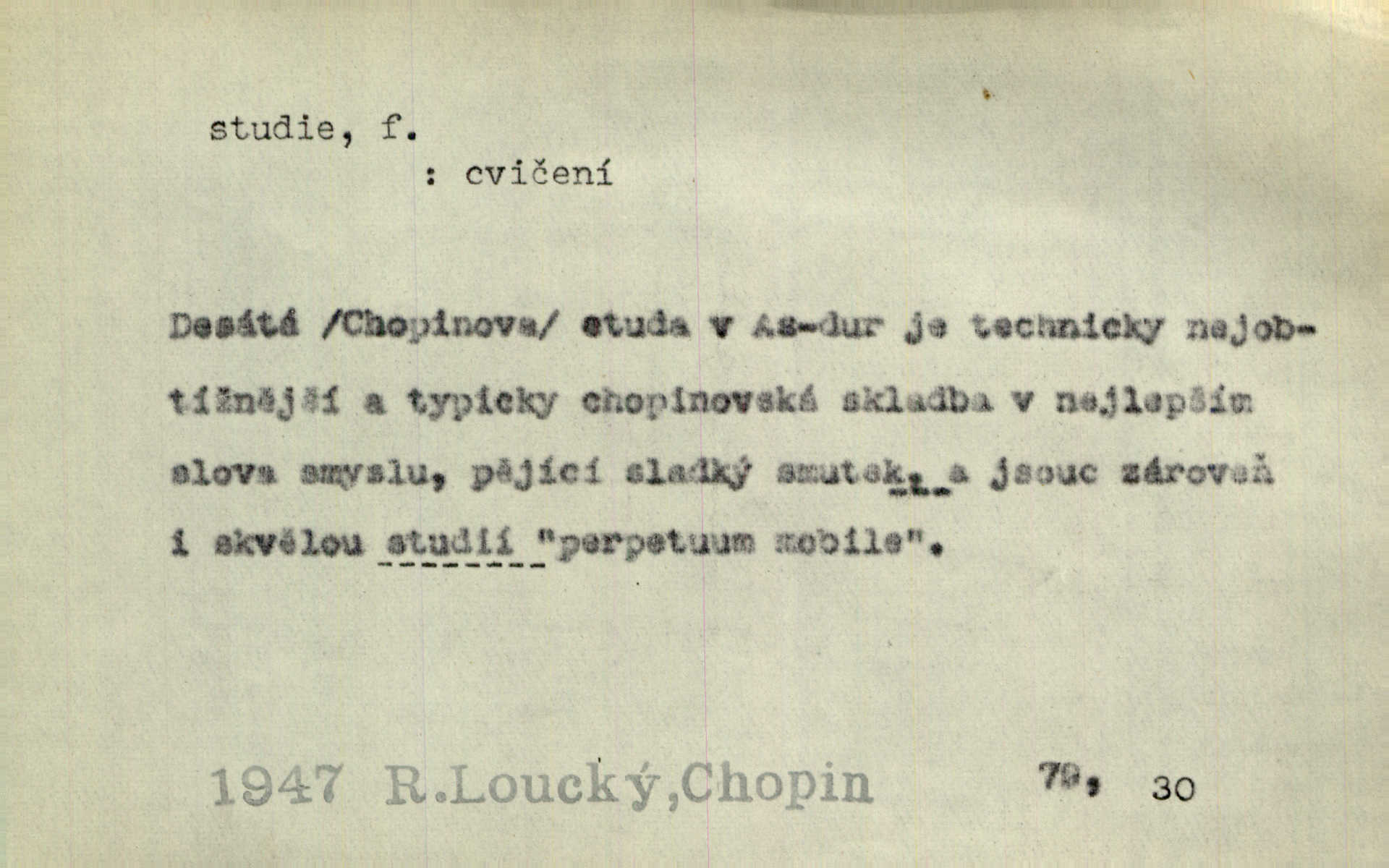 - studie (vysl. stúdyje), -e f. menší literární odborná práce, vědecký článek. Počal psáti studii „Vliv kouření“. Vach. Vyšly od něho spisy o umění a literatuře, z nichž studie o ďáblu v Božské komedii je pozoruhodná. Vrch. [B. Němcová] uveřejnila zajímavé a cenné studie lidopisné. Jir. D výtvarná práce jako příprava k většímu dílu. Těšil se z kresby co jedné z nejšťastnějších studií svých. Schulz. [Holbein, Dürer] udělali si ke každému portrétu několik skvěle a věrně prokreslených studií. Fr. Petr. — Sr. t. studium.