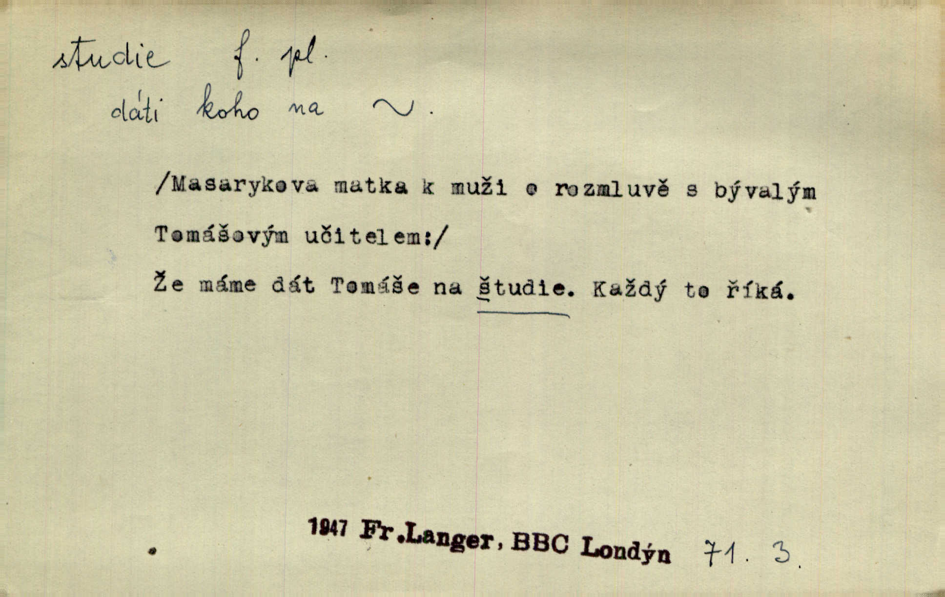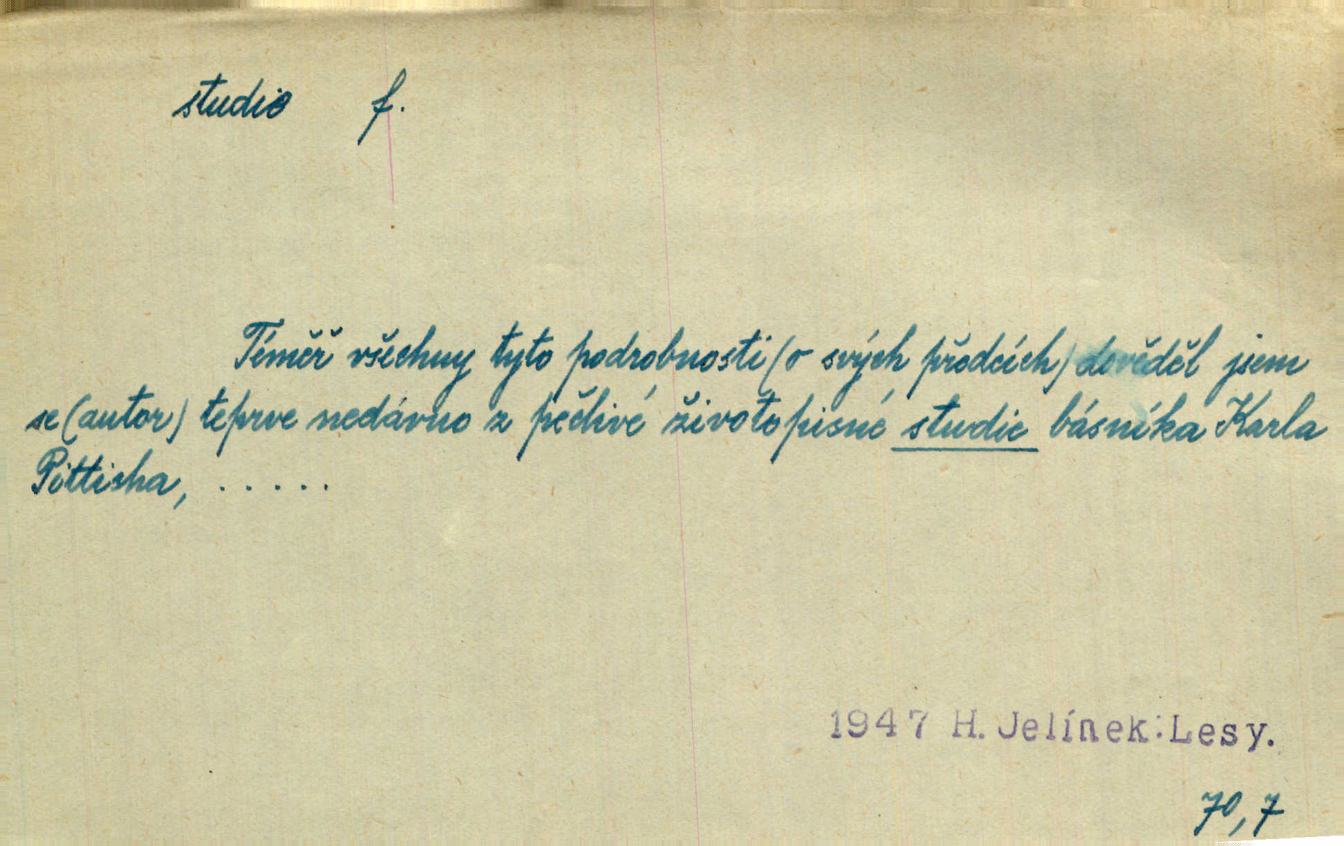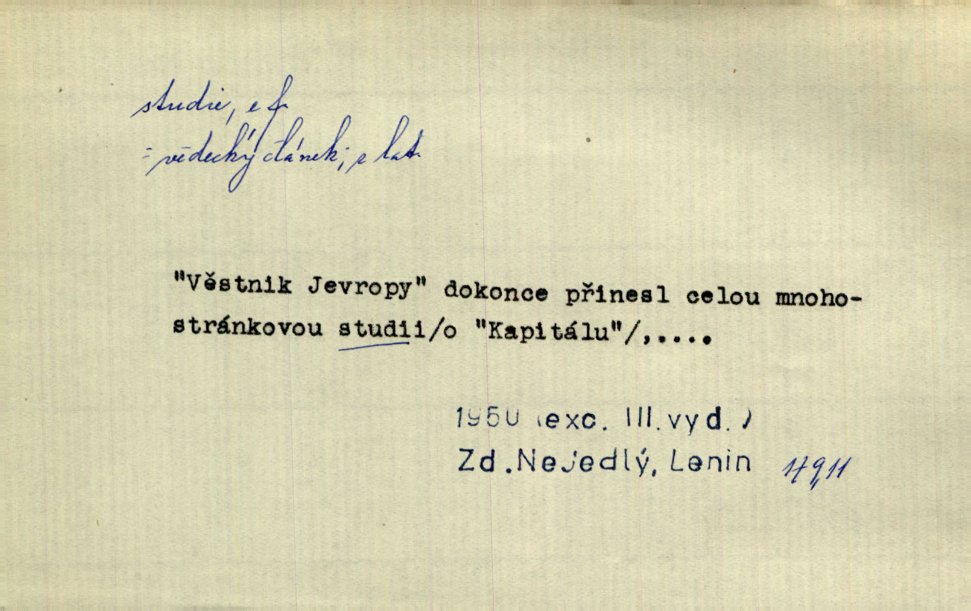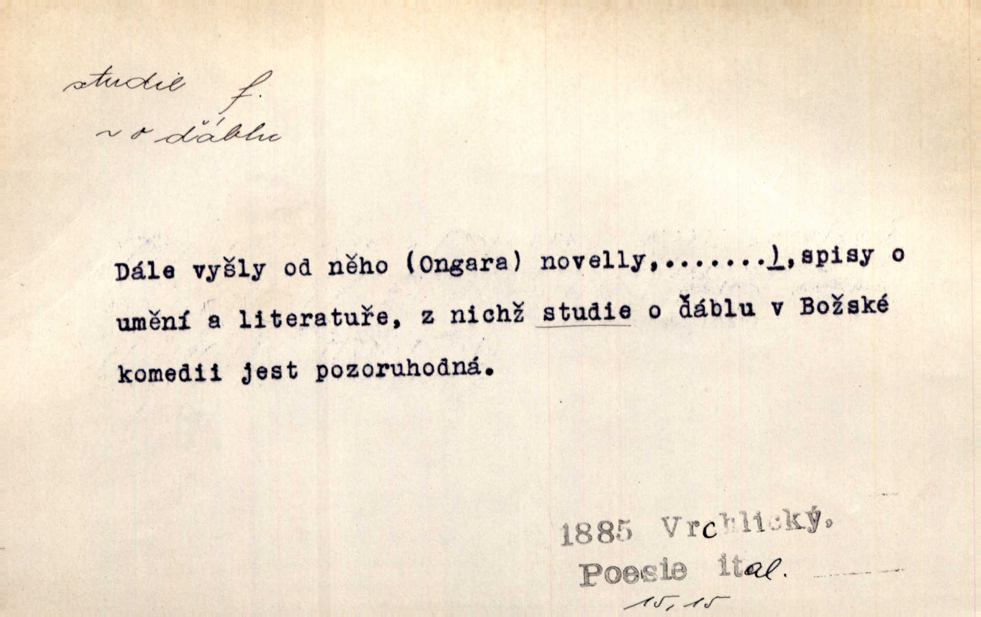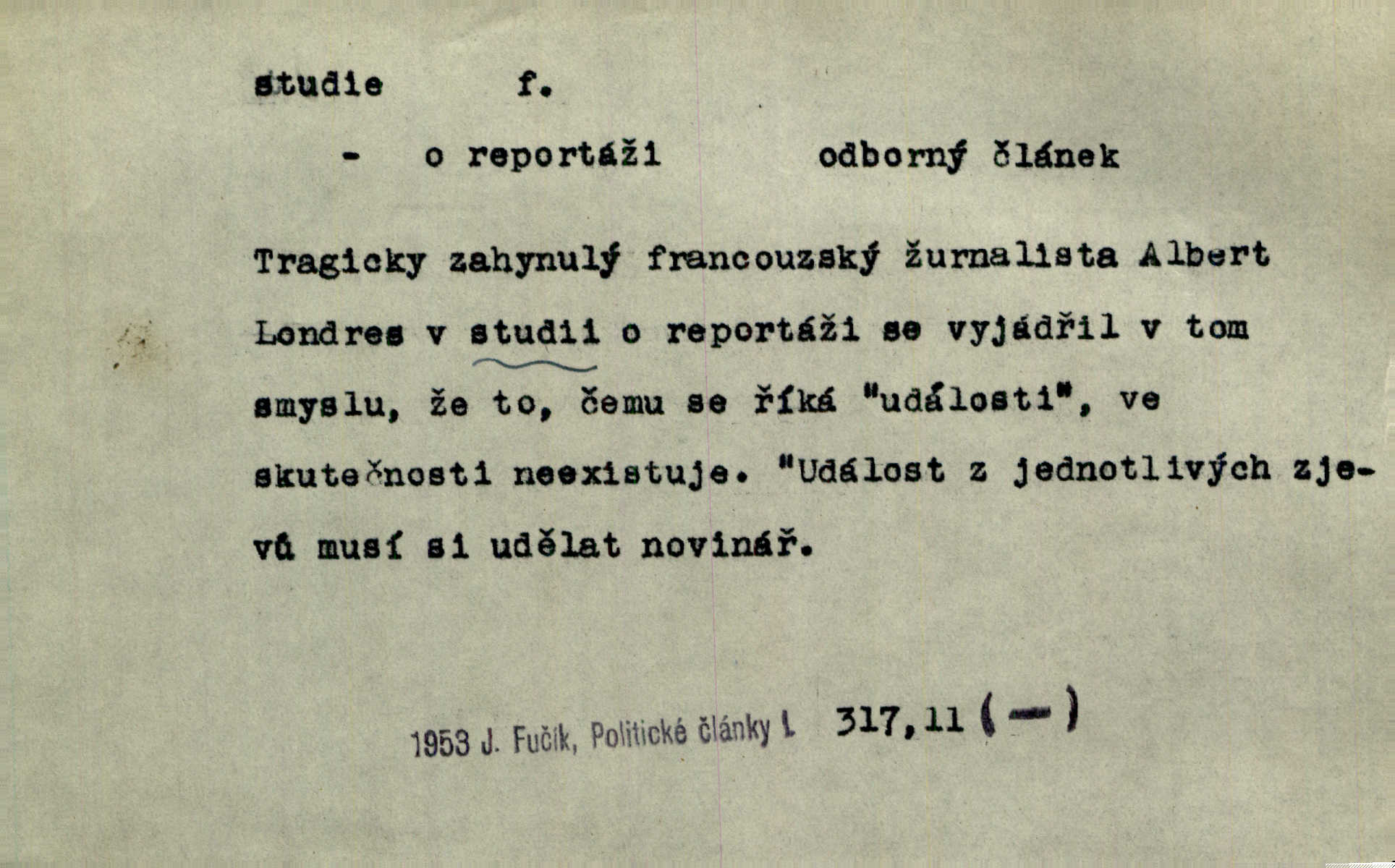 - studie (vysl. stúdyje), -e f. menší literární odborná práce, vědecký článek. Počal psáti studii „Vliv kouření“. Vach. Vyšly od něho spisy o umění a literatuře, z nichž studie o ďáblu v Božské komedii je pozoruhodná. Vrch. [B. Němcová] uveřejnila zajímavé a cenné studie lidopisné. Jir. D výtvarná práce jako příprava k většímu dílu. Těšil se z kresby co jedné z nejšťastnějších studií svých. Schulz. [Holbein, Dürer] udělali si ke každému portrétu několik skvěle a věrně prokreslených studií. Fr. Petr. — Sr. t. studium.