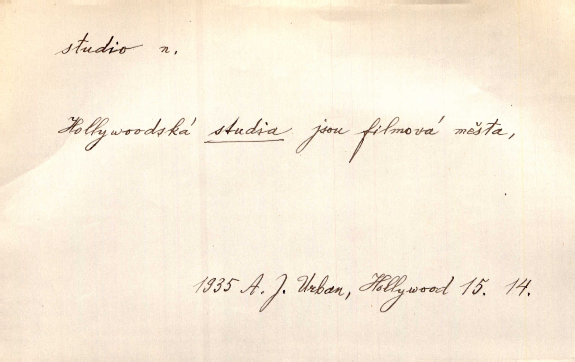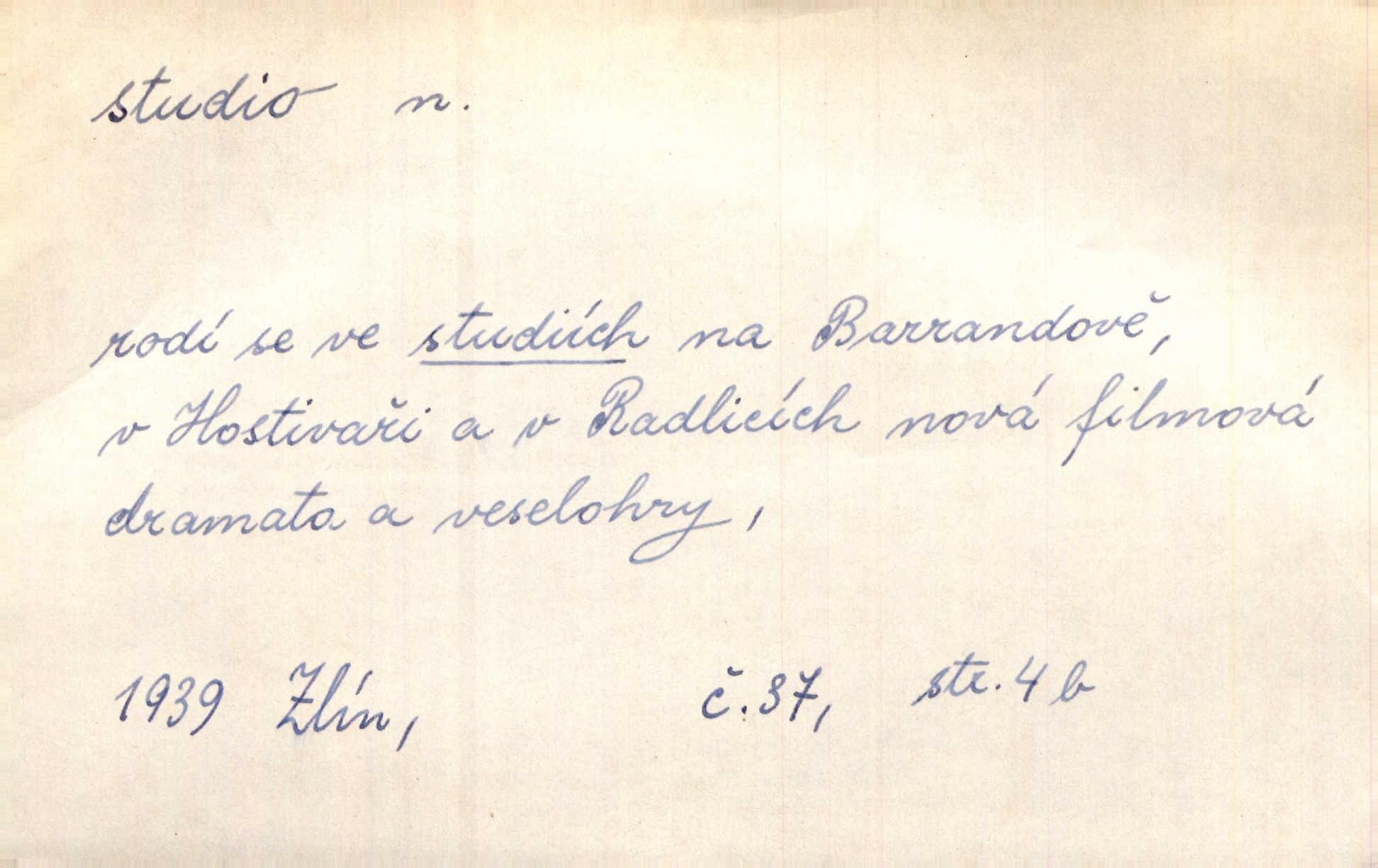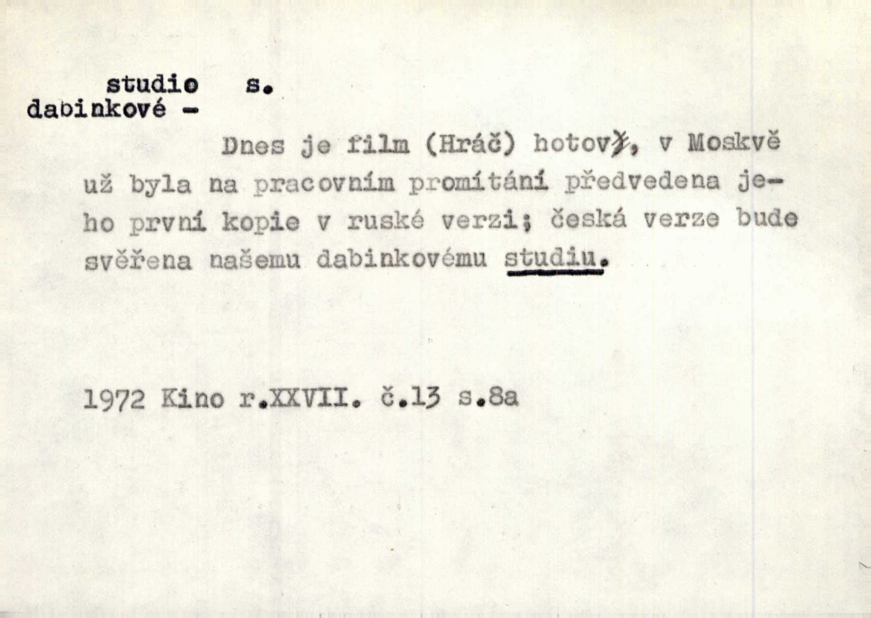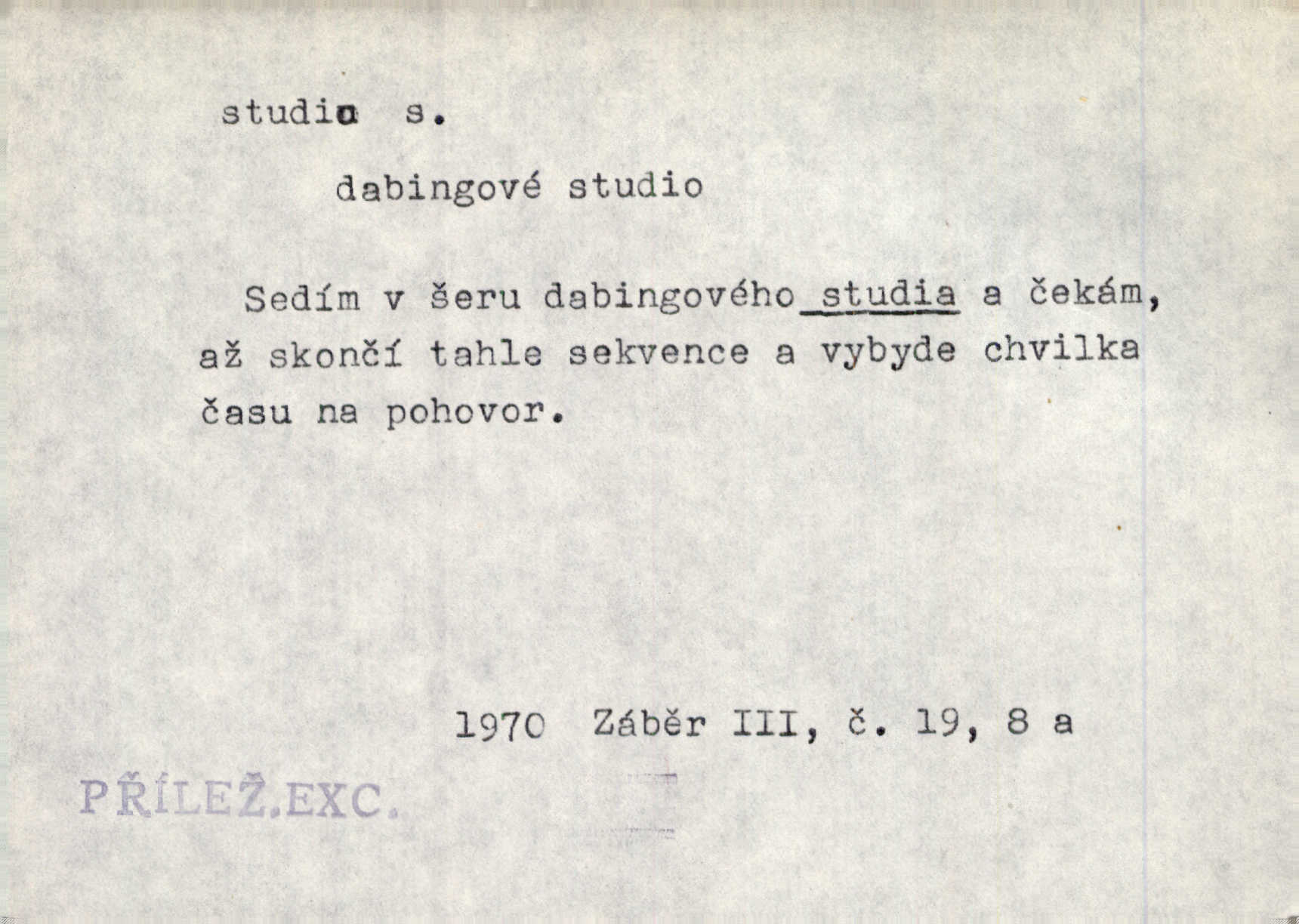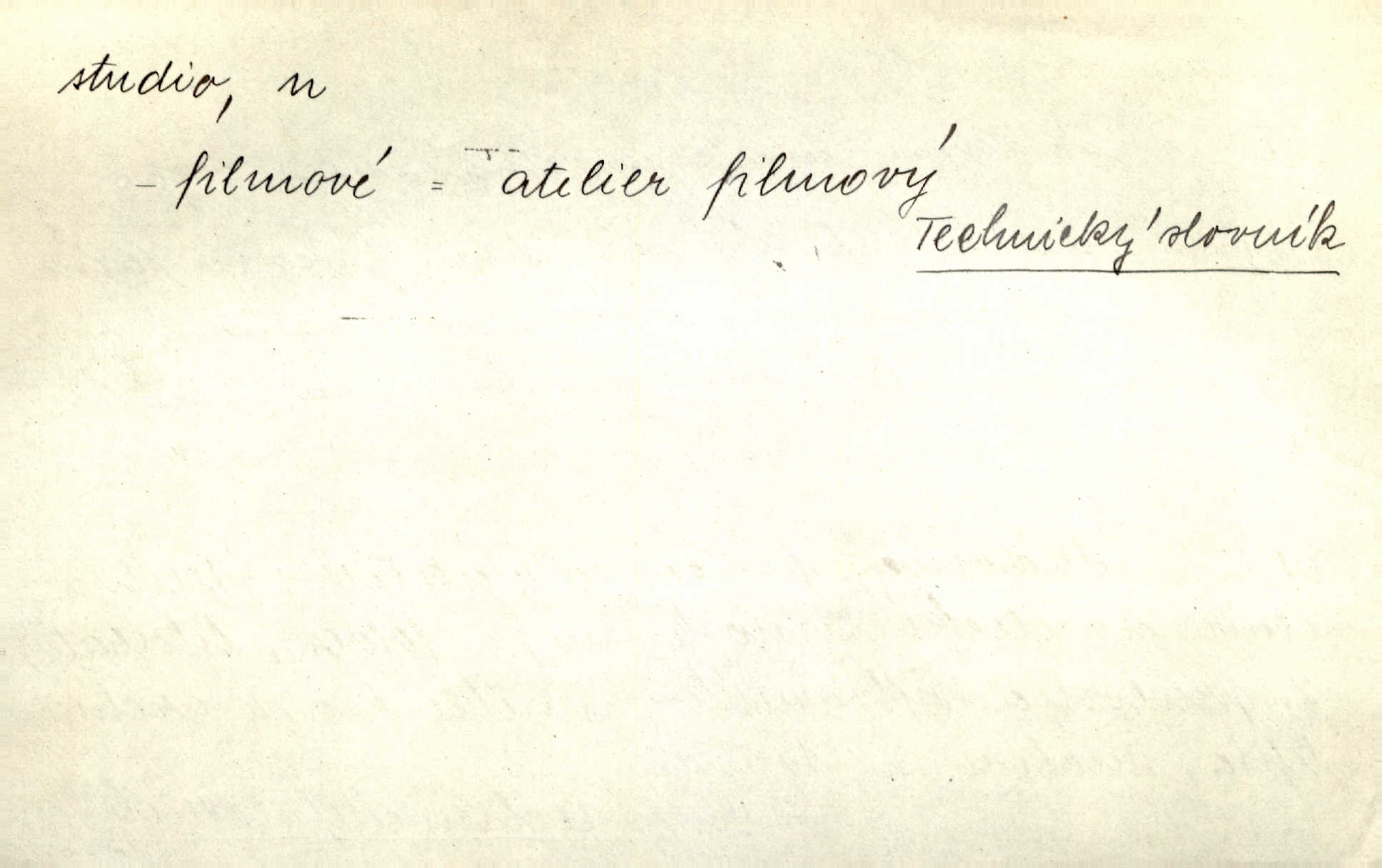 - studio (vysl. stúdyjo), -a n. místnost, kde se provádí dramatické n. hudební dílo, obyč. pro účely filmové, rozhlasové a pod. Rámec, do něhož ji [historii] autor zasadil — továrna na auta, vysílací stanice radiožurnálu a kinematografické studio, činí z této pohádky jedno z nejroztomilejších děl. H. Jel. Dřívější technická primitivnost je překonána dokonalým vybavením rozhlasových studií. Več. Čes. sl.
