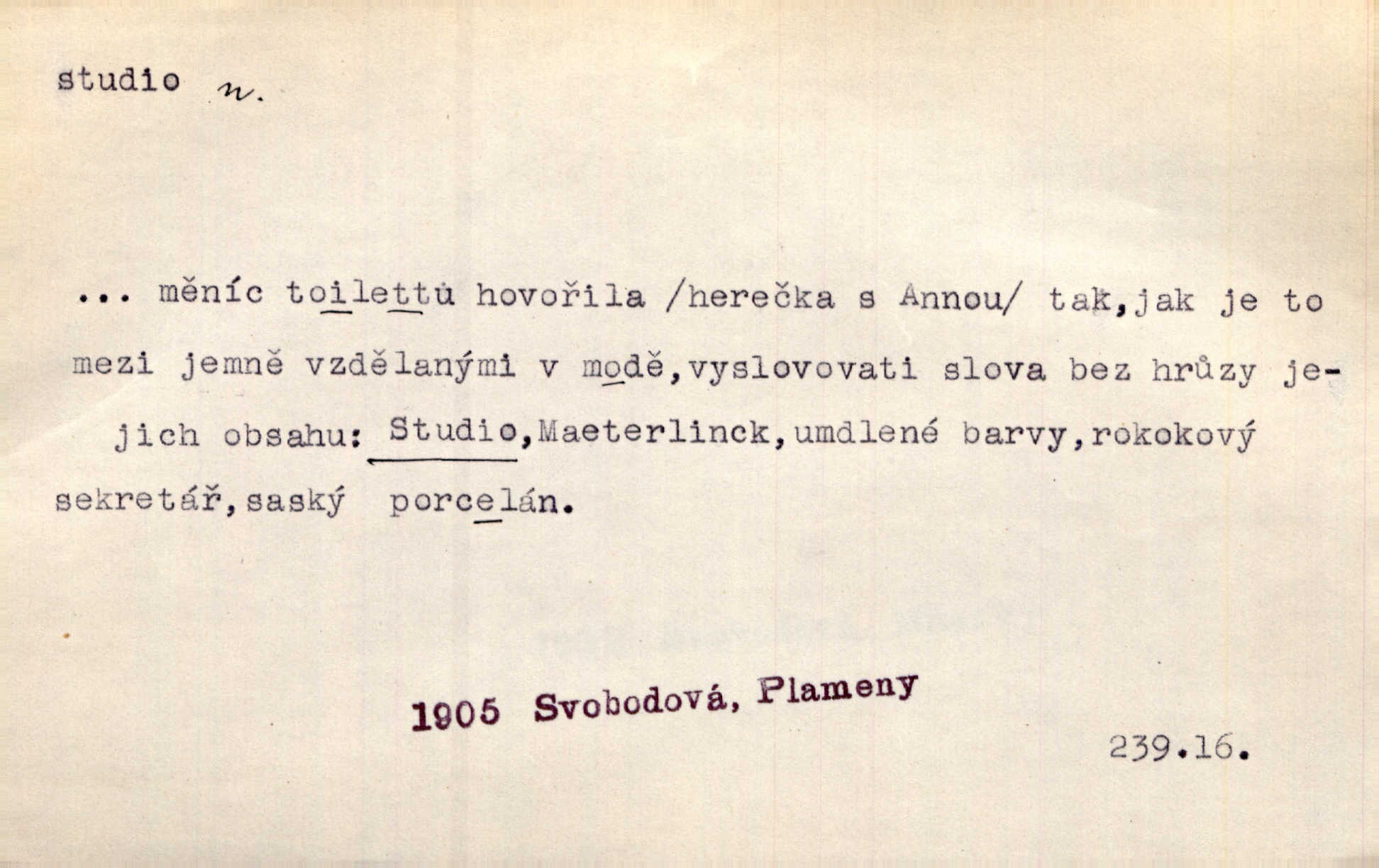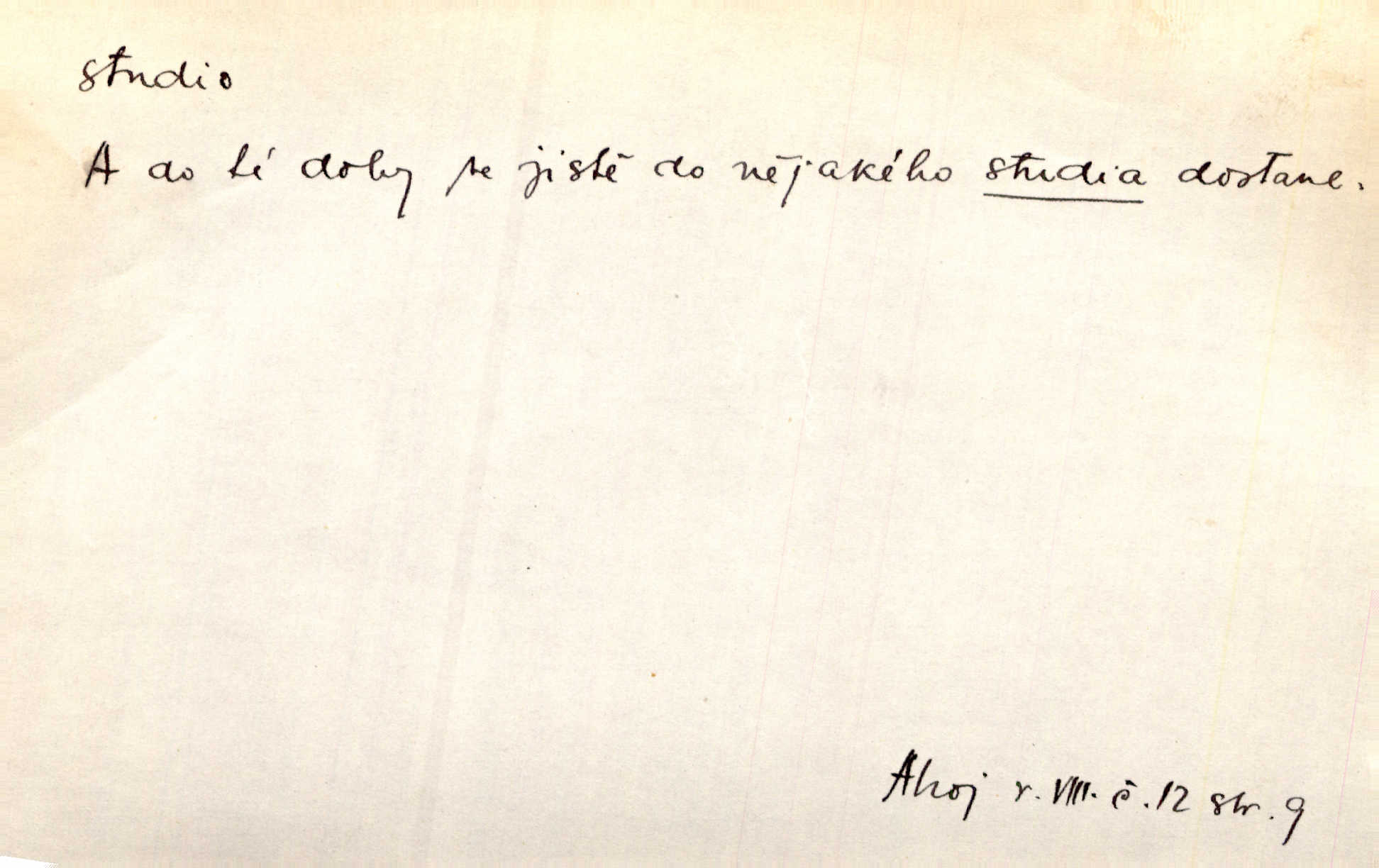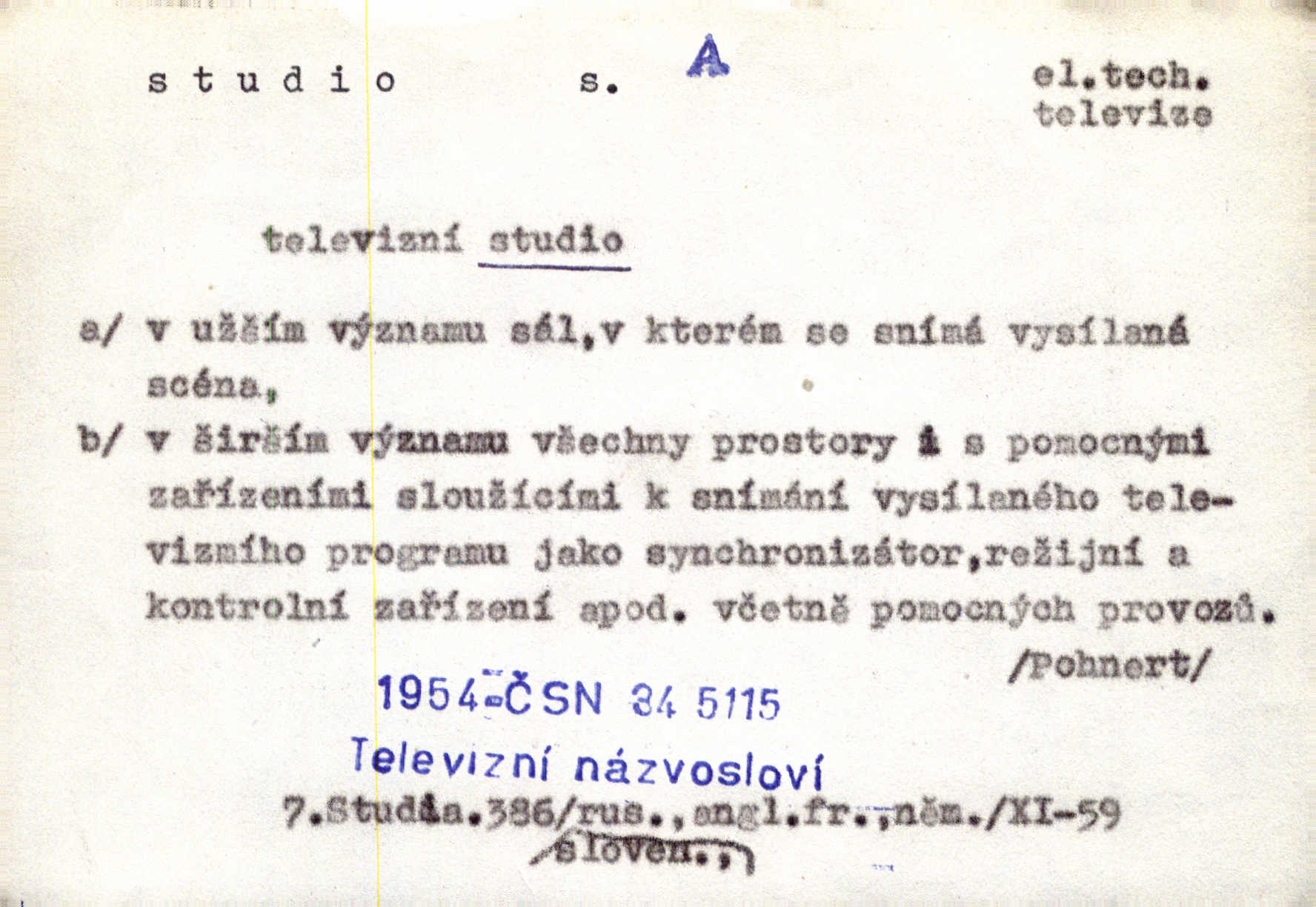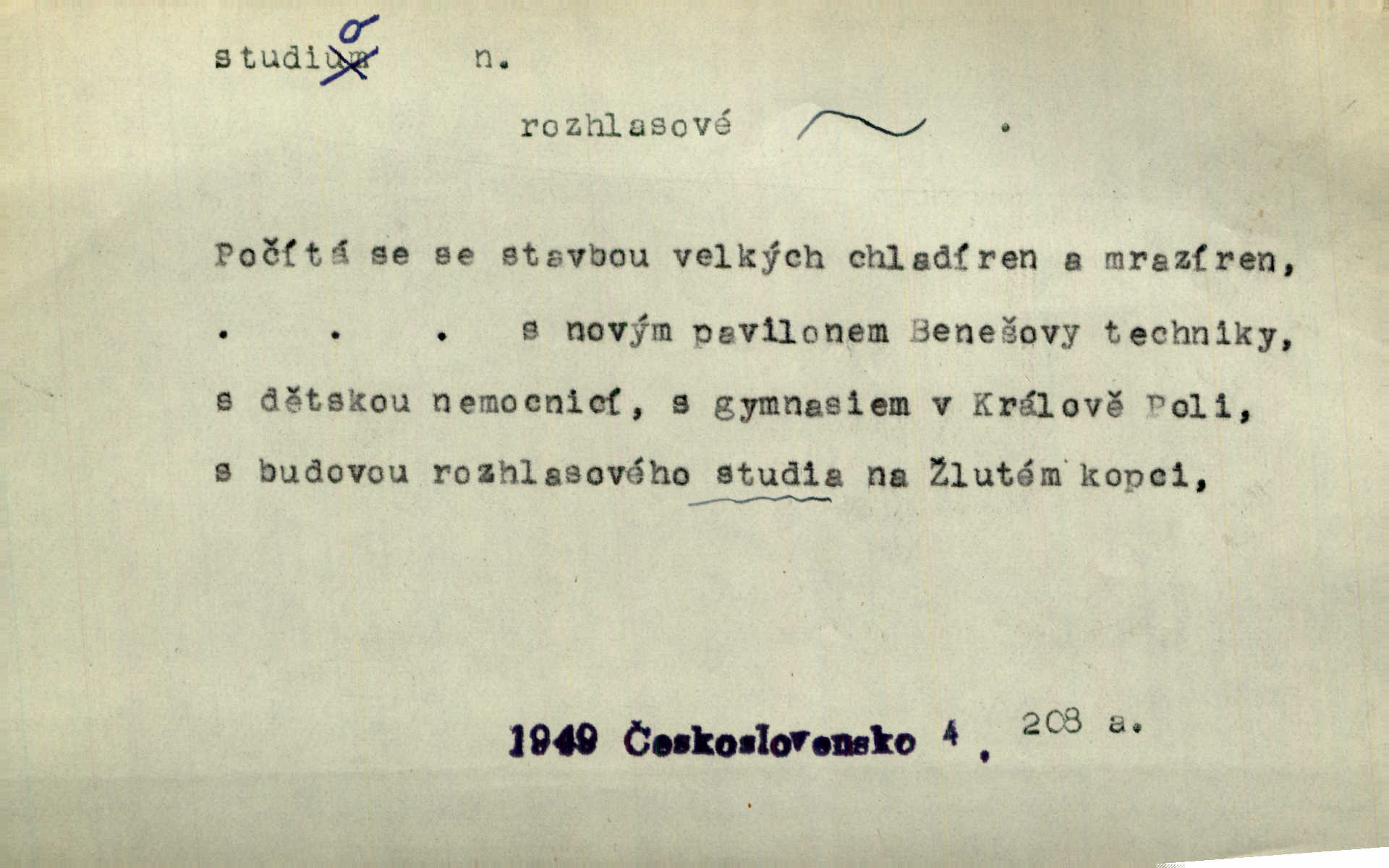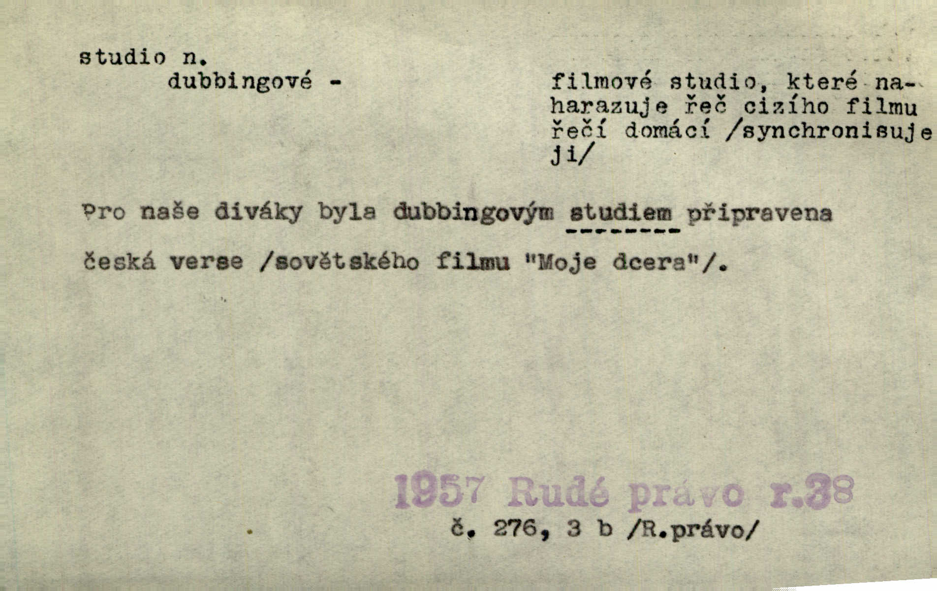 - studio (vysl. stúdyjo), -a n. místnost, kde se provádí dramatické n. hudební dílo, obyč. pro účely filmové, rozhlasové a pod. Rámec, do něhož ji [historii] autor zasadil — továrna na auta, vysílací stanice radiožurnálu a kinematografické studio, činí z této pohádky jedno z nejroztomilejších děl. H. Jel. Dřívější technická primitivnost je překonána dokonalým vybavením rozhlasových studií. Več. Čes. sl.