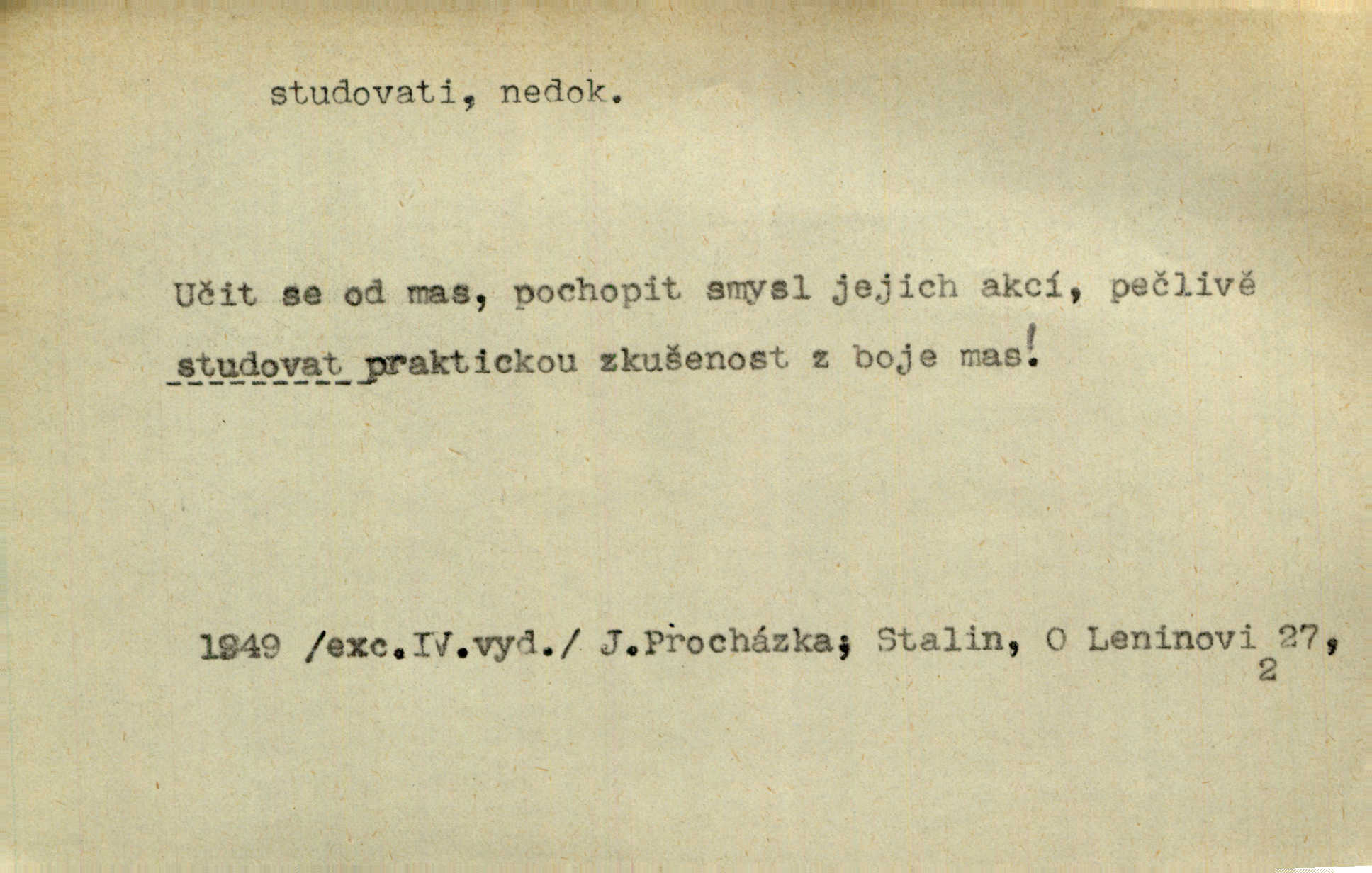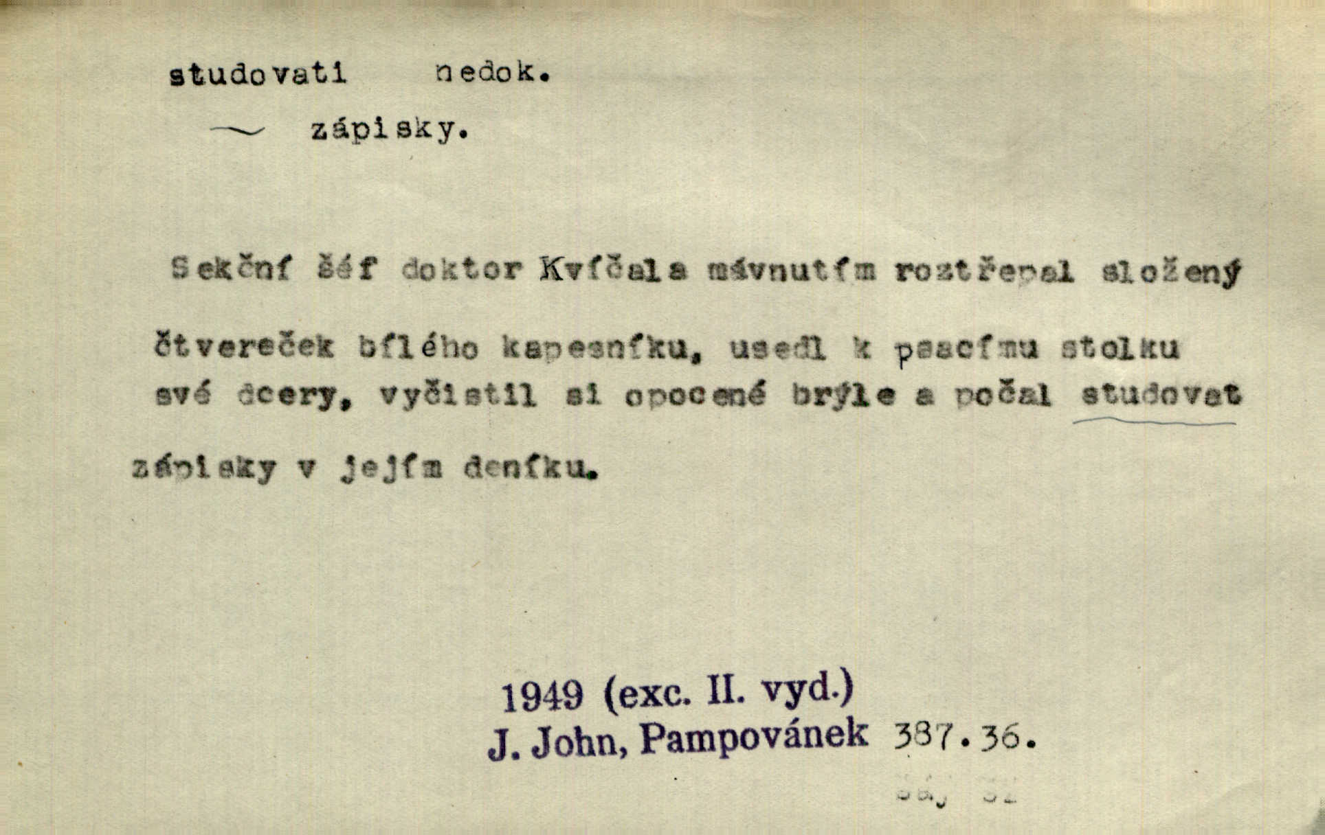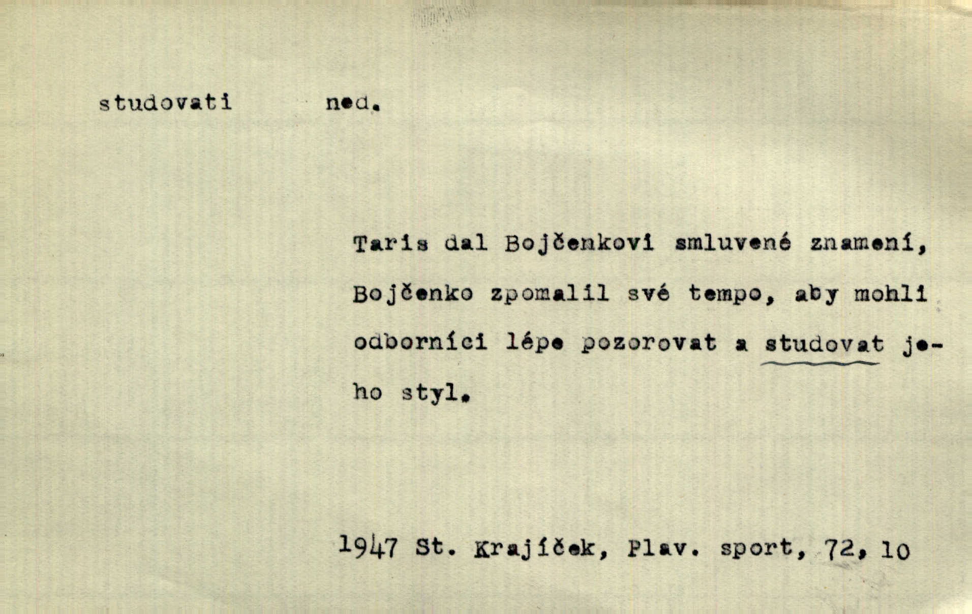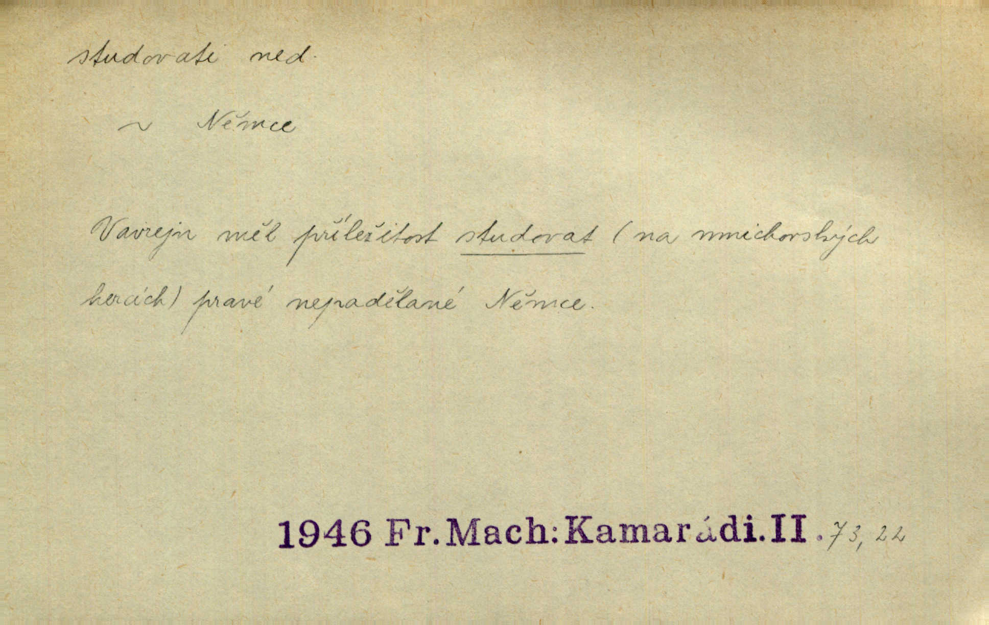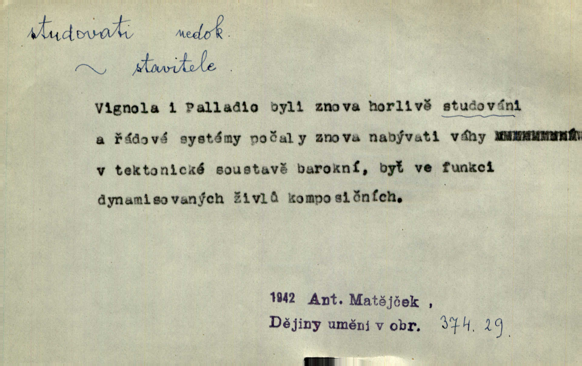 - studovati (ob. a zast. študovati) ned. navštěvovati vyšší, zejm. vysokou školu. Havlena studoval kdysi reálku, ale nedostudoval. Mah. Studoval universitu. Kun. Studoval na evangelickém lyceu. Kal. Tys ovšem nestudoval ve školách. Svět. Borejs študoval na doktora. Jah. D (co) učiti se něčemu na vysoké škole. Studoval na universitě práva. Vach. Snad mne bude přemlouvat, abych také studoval mathematiku. Šim. Zavedla řeč na mne, co míním studovat. Šim. D (o studentu) učiti se vůbec. Studoval [student] celý den, dlouho do noci. Kun. Mladý Bavor vždy na střeše studoval. Ner. Začal se vyhýbati lidem, zvážněl a studoval. Lit. noviny. Študoval raději k maturitě. Paleč. D (co) vědecky zkoumati, snažiti se vědecky, rozumově ovládati něco. [Lékaři] studovali bacilly. Čech. Miloš Hlávka studuje pražské drama v paradoxním poměru k venkovskému. Lit. noviny. V potu tváří sbírat musí [básník] květy slov, studovati steré Brusy. Čech. Banville studoval techniku jeho verše. Lum. Vy všichni, kdož studujete prostonárodní sloh, prchejte od strýce Jordáňka. Herb. D bedlivě pozorovati, prohlížeti. Koncipista pátravě studoval rysy jeho tváře. Vach. Nepozoroval ani, že vstoupila paní Marjánka a že jej v pravém slova smyslu studuje. Šmil. Namáčí si pán do černé kávy housku a studuje ranní kursy. Ner. Studoval tento pozvolný rozklad své bytosti. Čech. Chvilku tak tu mapu študuji. Stroup. Studoval v mysli, jak bude asi mluviti. Svob. D cvičiti, nacvičovati, připravovati. Upravila si pocuchané vlasy a studovala svůj nejněžnější pohled. Šmil. Odpočívala v poloze tak půvabné a elegantní, jakoby ji byla schválně studovala. Kun. Náš kapelník ochuravěl právě, když jsme novou operu študovali. Zey. Začne [běžec] „studovat“ jednotlivé posice. Vojta. — V. t. studovaný, studující.