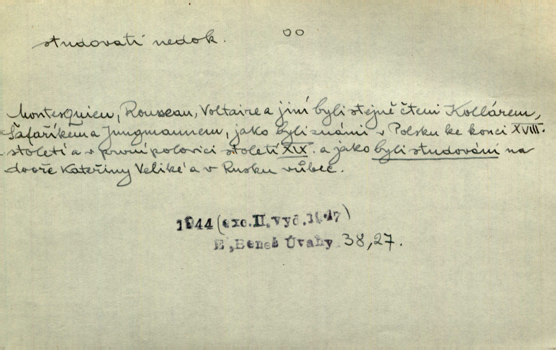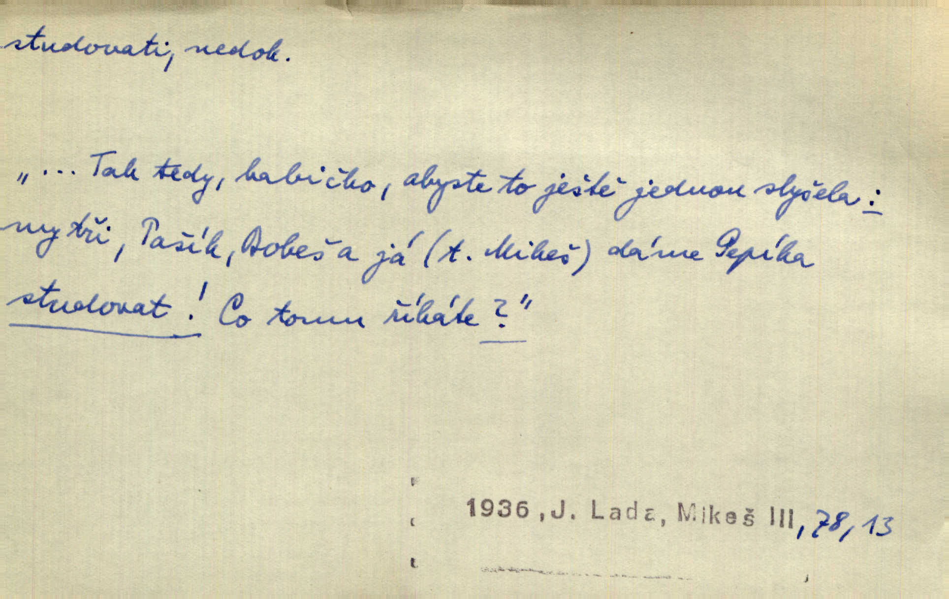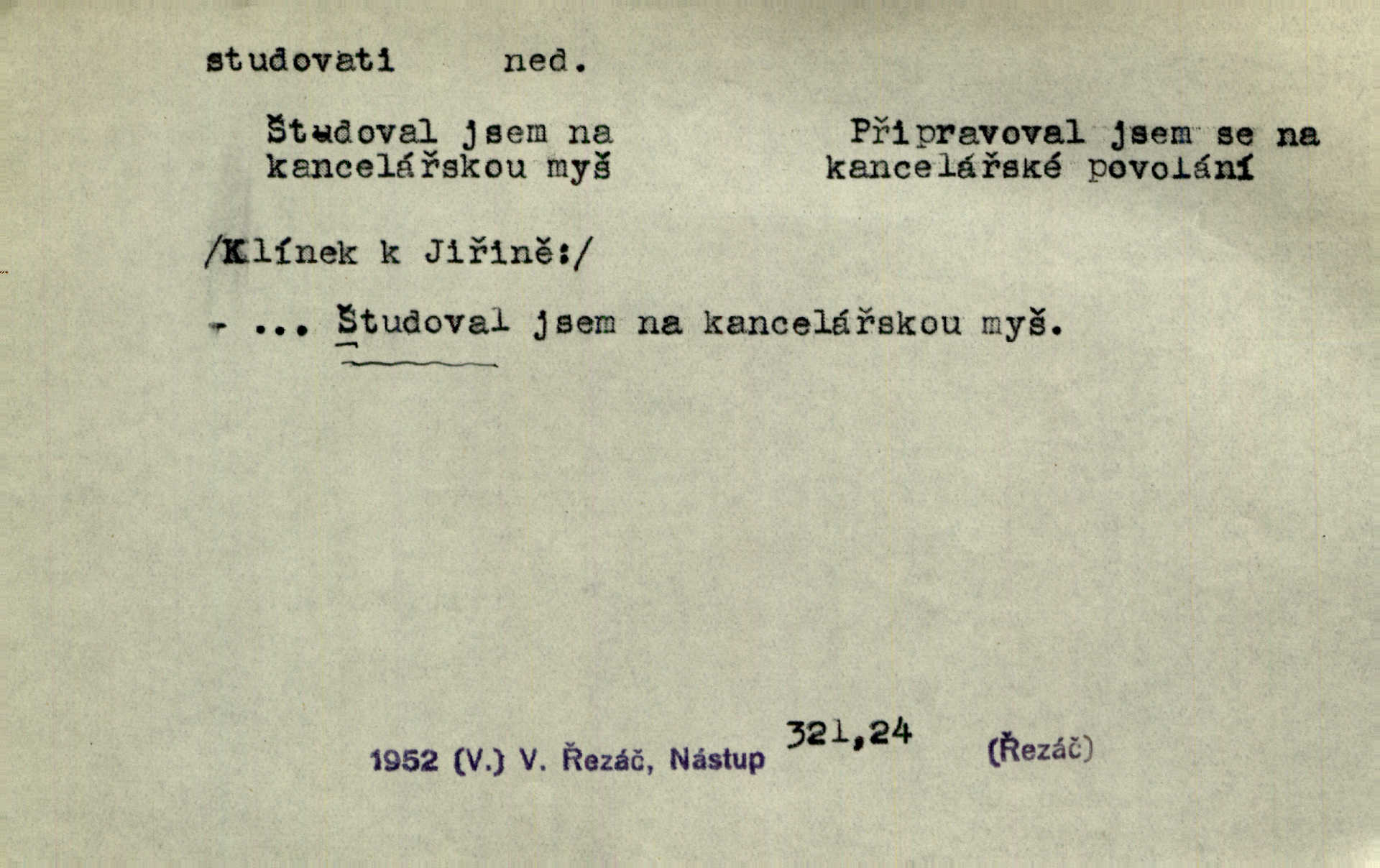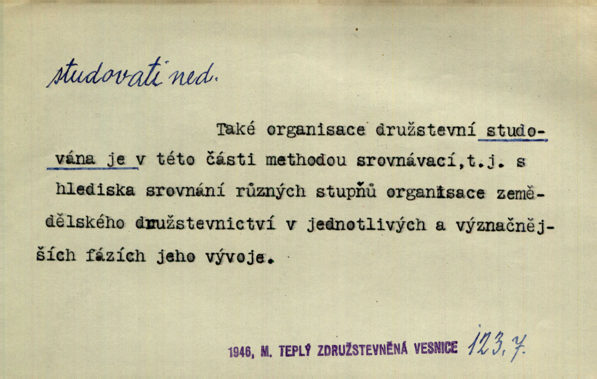 - studovati (ob. a zast. študovati) ned. navštěvovati vyšší, zejm. vysokou školu. Havlena studoval kdysi reálku, ale nedostudoval. Mah. Studoval universitu. Kun. Studoval na evangelickém lyceu. Kal. Tys ovšem nestudoval ve školách. Svět. Borejs študoval na doktora. Jah. D (co) učiti se něčemu na vysoké škole. Studoval na universitě práva. Vach. Snad mne bude přemlouvat, abych také studoval mathematiku. Šim. Zavedla řeč na mne, co míním studovat. Šim. D (o studentu) učiti se vůbec. Studoval [student] celý den, dlouho do noci. Kun. Mladý Bavor vždy na střeše studoval. Ner. Začal se vyhýbati lidem, zvážněl a studoval. Lit. noviny. Študoval raději k maturitě. Paleč. D (co) vědecky zkoumati, snažiti se vědecky, rozumově ovládati něco. [Lékaři] studovali bacilly. Čech. Miloš Hlávka studuje pražské drama v paradoxním poměru k venkovskému. Lit. noviny. V potu tváří sbírat musí [básník] květy slov, studovati steré Brusy. Čech. Banville studoval techniku jeho verše. Lum. Vy všichni, kdož studujete prostonárodní sloh, prchejte od strýce Jordáňka. Herb. D bedlivě pozorovati, prohlížeti. Koncipista pátravě studoval rysy jeho tváře. Vach. Nepozoroval ani, že vstoupila paní Marjánka a že jej v pravém slova smyslu studuje. Šmil. Namáčí si pán do černé kávy housku a studuje ranní kursy. Ner. Studoval tento pozvolný rozklad své bytosti. Čech. Chvilku tak tu mapu študuji. Stroup. Studoval v mysli, jak bude asi mluviti. Svob. D cvičiti, nacvičovati, připravovati. Upravila si pocuchané vlasy a studovala svůj nejněžnější pohled. Šmil. Odpočívala v poloze tak půvabné a elegantní, jakoby ji byla schválně studovala. Kun. Náš kapelník ochuravěl právě, když jsme novou operu študovali. Zey. Začne [běžec] „studovat“ jednotlivé posice. Vojta. — V. t. studovaný, studující.