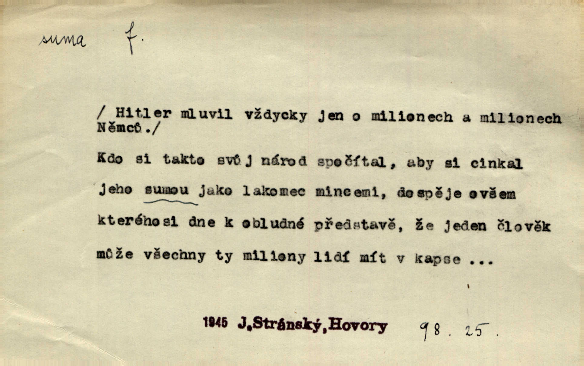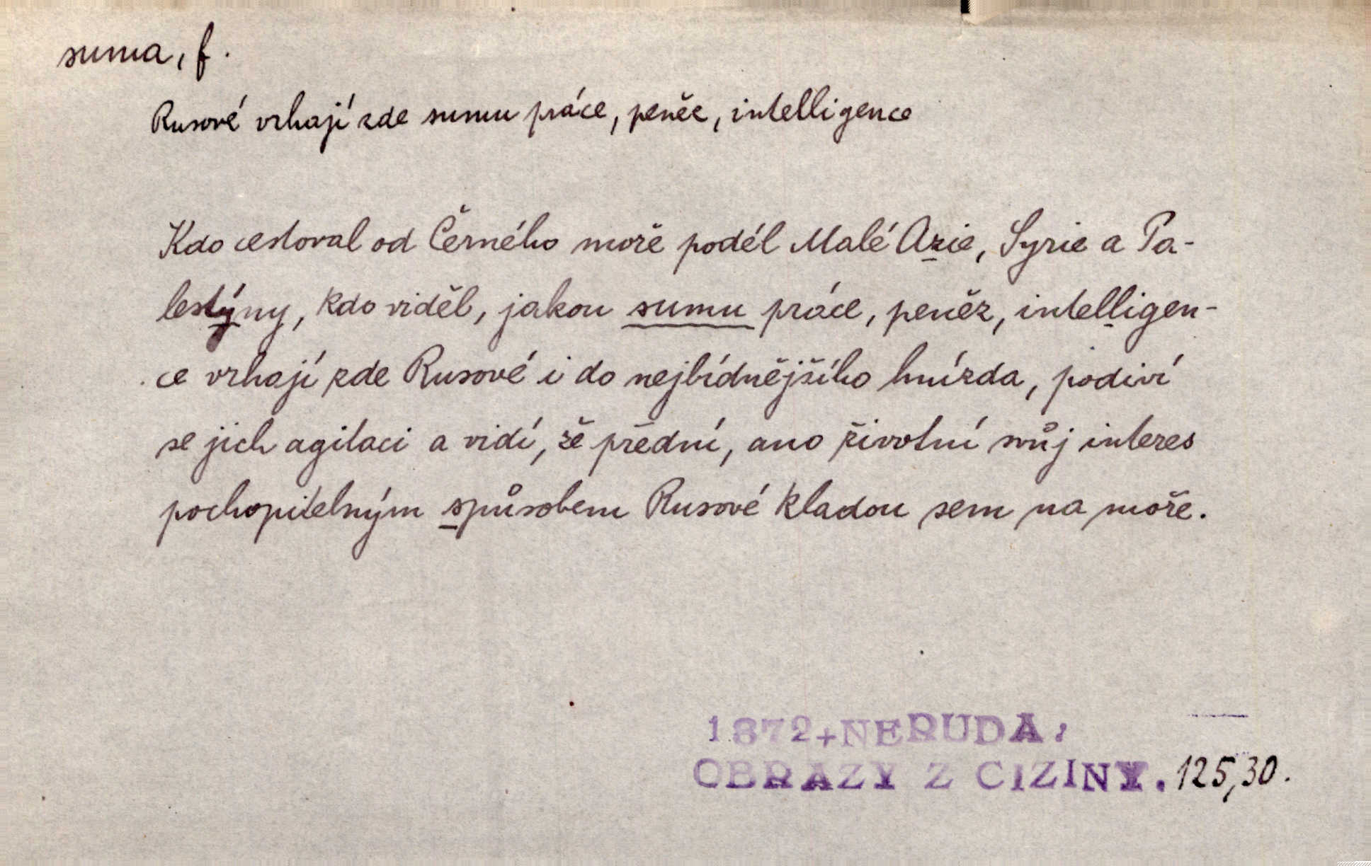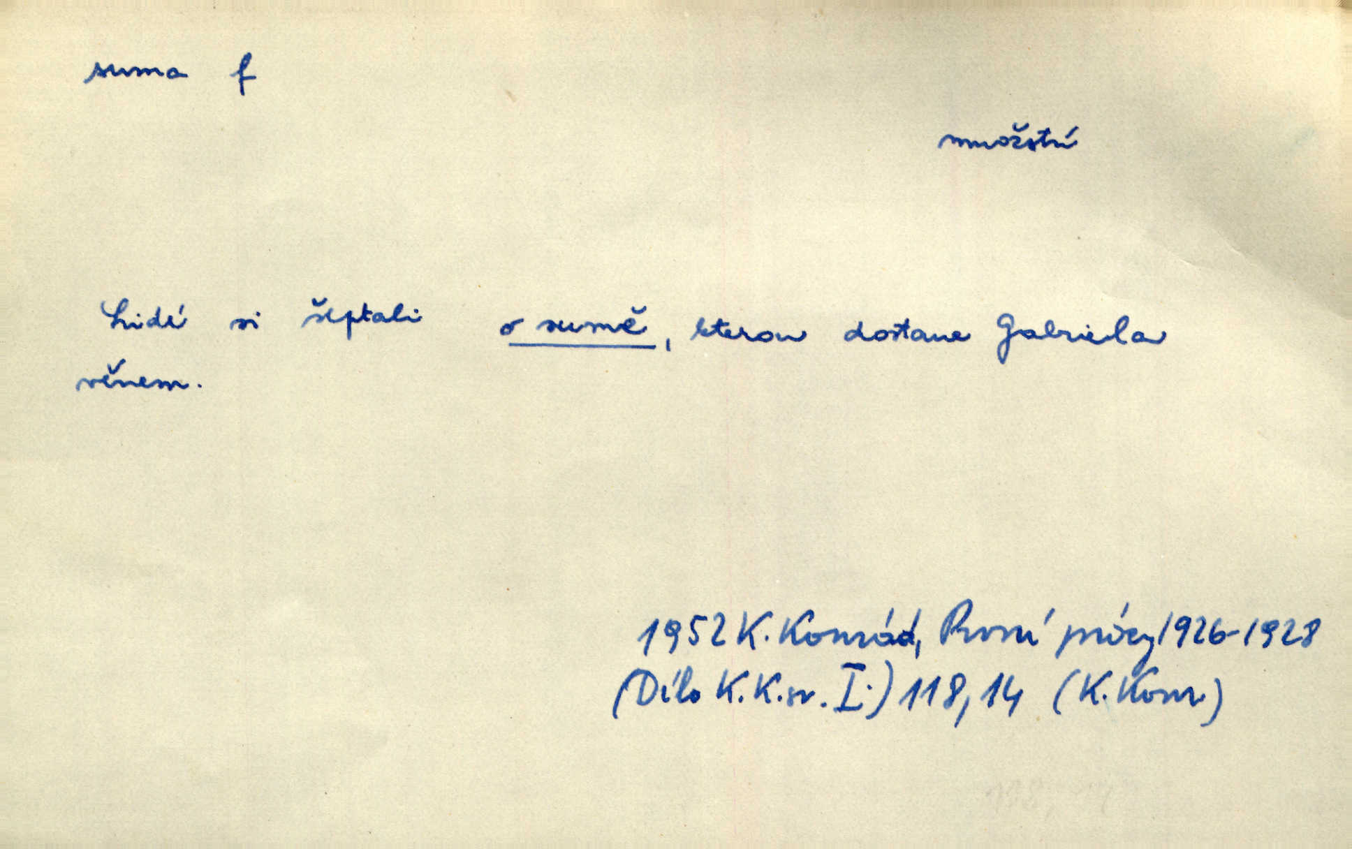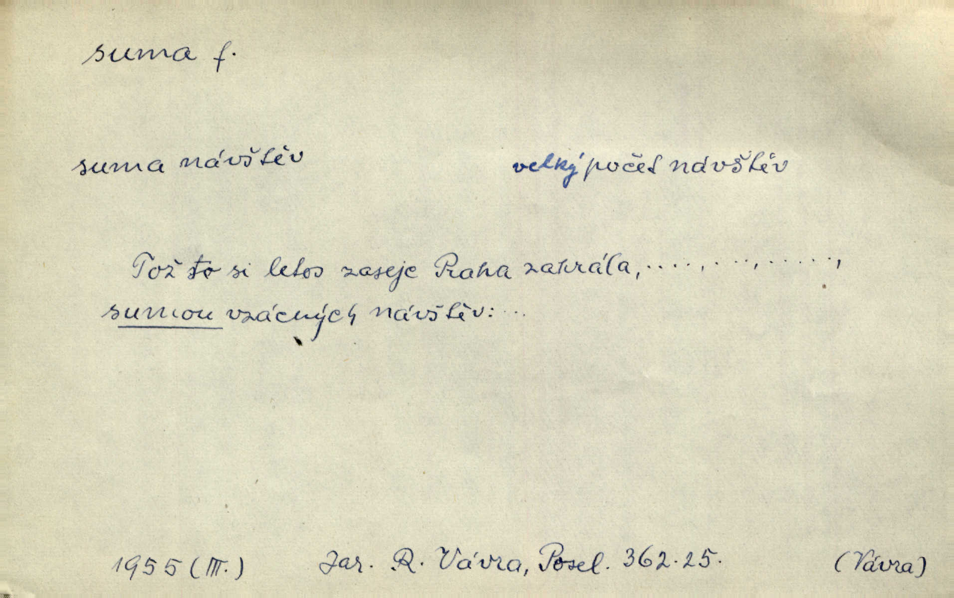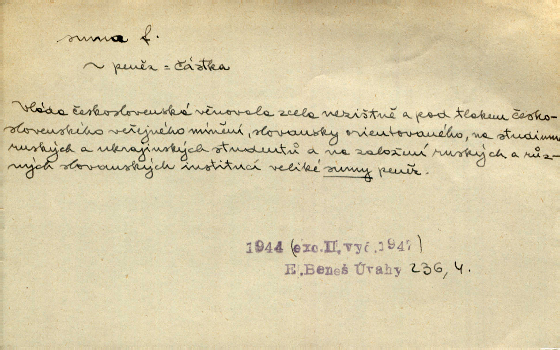 - suma, -y f. (větší) množství peněz, částka. Policie pátrala po členech tajného spolku, vypisovala ohromné sumy na jejich hlavy. Zey. Obec Náchodská měla dluhů 24 000 zl., na ten čas sumu to velikou. Jir. Vyléval v nich [básních] mnoho bolu a shrábnul za ně značnou sumu. Sob. Jaké úžasné sumy peněz vyhazují se za věci, které jen zdánlivě sloužiti mají k ozdobě. V. Mrš. Osmdesát tisíc zde leží po tři měsíce bez úroků. Taková suma! Bozd. D Řidč. (větší) množství něčeho vůbec. Již pouhý výčet vám naznačí tu sumu materiálu, již kniha zpracovává. Čteme. Mdloba a rozčarování splývalo v jedinou ohromnou sumu lásky. Sez. Summa vědomostí nepovznáší lid, aniž ho vzdělává; lid jako národ vzdělává se pouze summou své historie. Staš. D Poněk. zast. celkový počet, souhrn, úhrn. Summa všech domácích obyvatelů království [je]: 3,686.363. Pal. Cesta do Prahy byla nepochybně summou vší vévodovy ochoty. Pek. Suma vášně deseti nejohnivějších Evropanek nevyrovná se její lásce. Lier. D Zast. jádro, souhrn nejpodstatnějších částí nějakého celku. Náboženství podle Bonusa, abych podal nejstručnější summu z něho, jest pro člověka, ne člověk pro náboženství. Šal. Ukojení [vášní] považuji za cíl a summu svého života. Hol. Pryč od lidí, to suma moudrosti. Jir. Suma návrhu Hlasivcova byla, aby obtížná robota [byla] zrušena. Jir. D suma sumárum zast. hovor. celkem, úhrnem. A suma sumárum — starý macek si mě oblíbil. Herrm. — V. t. sumou.