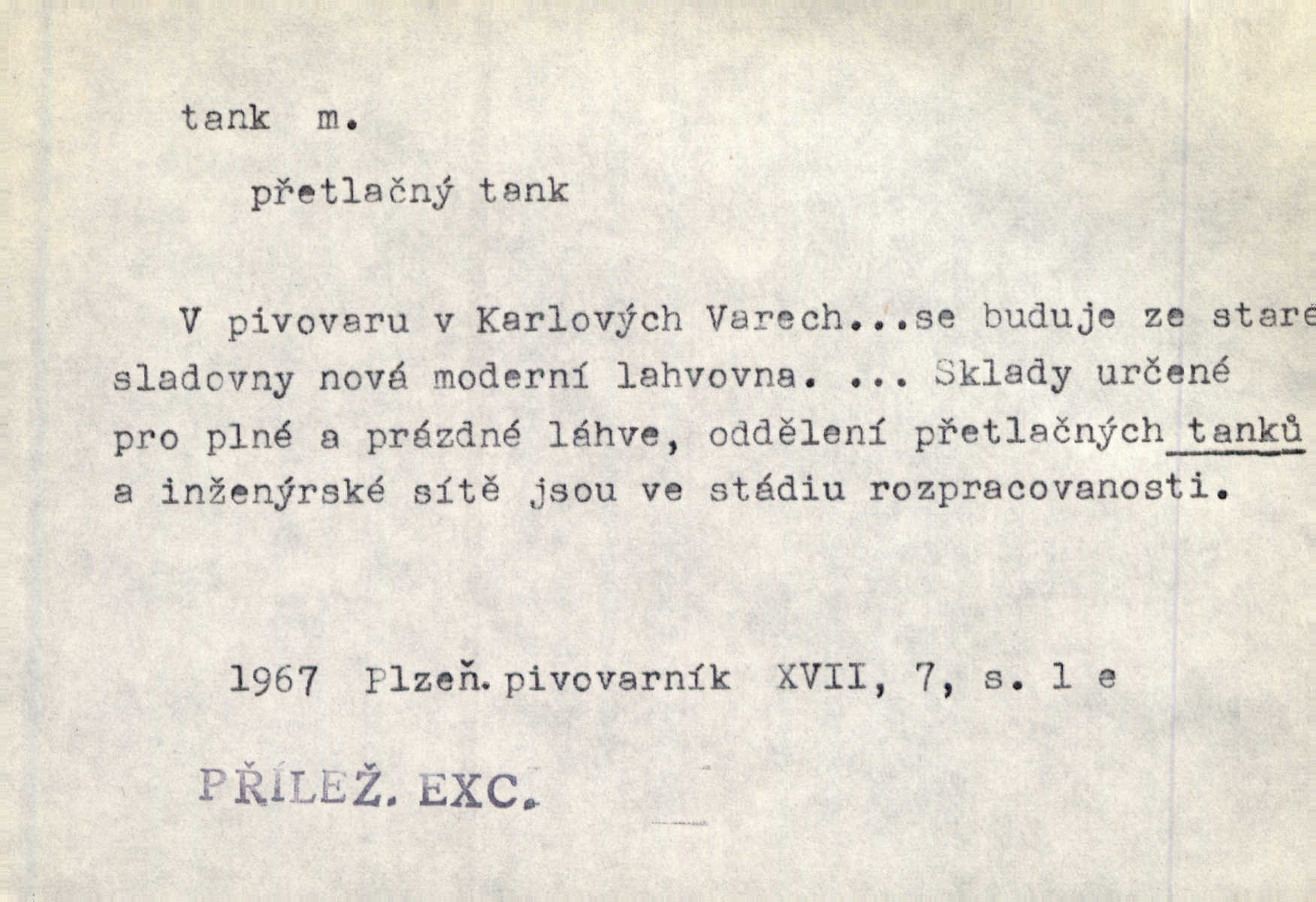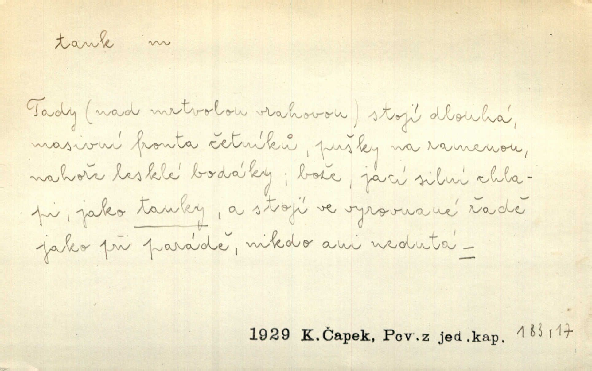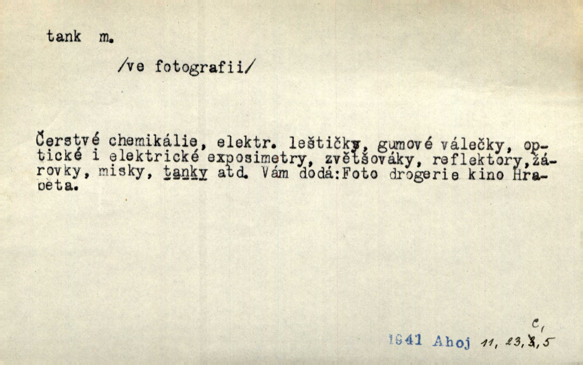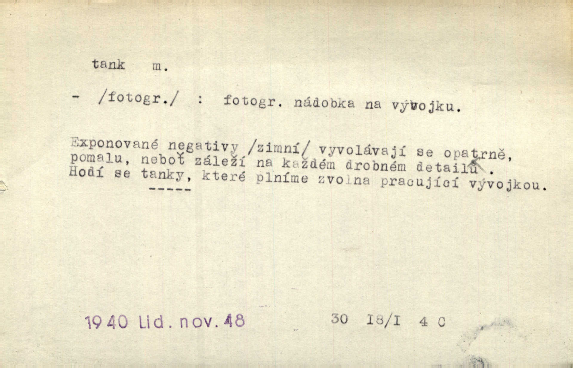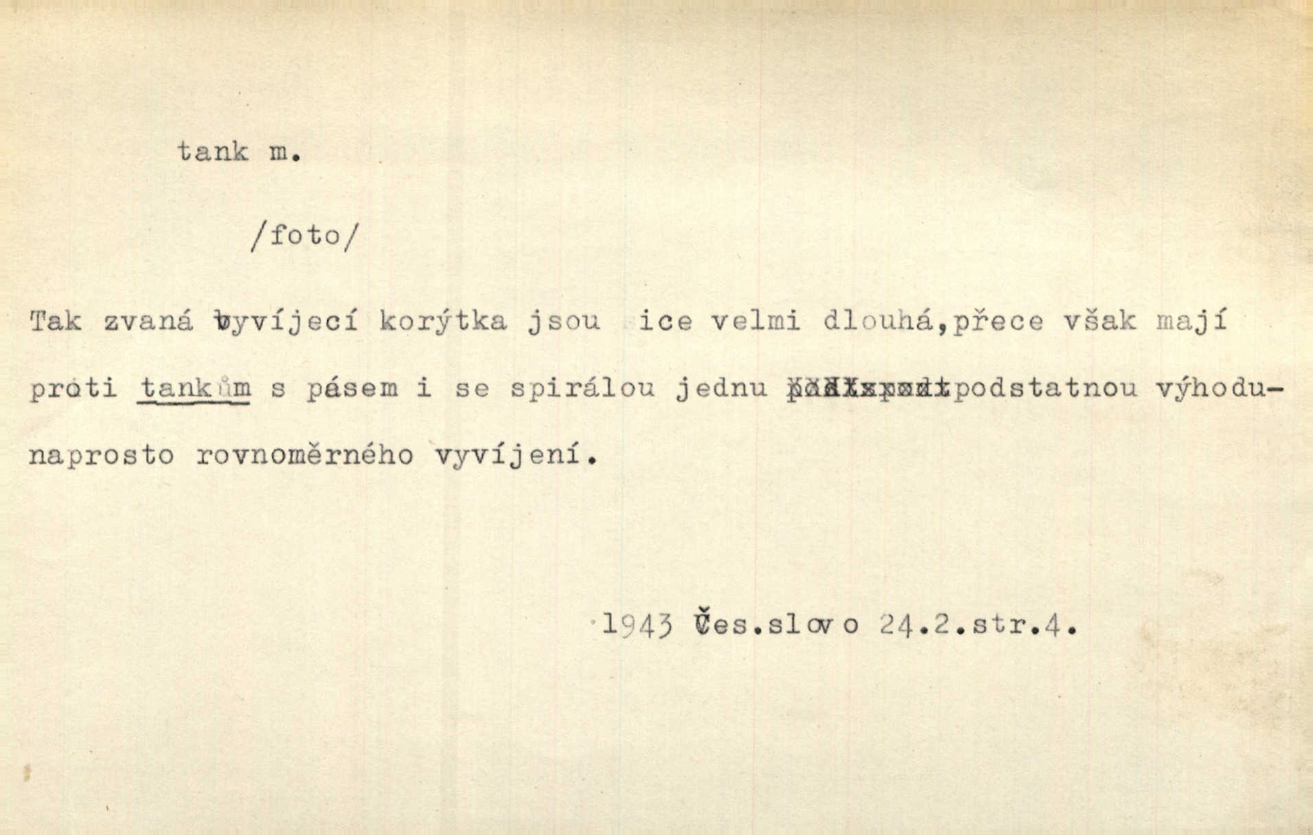 - tank, -u m. obrněné motorové vozidlo na pásech s mohutnou výzbrojí k přímému boji. V září objevily se na západním bojišti anglické tanky. Schein. Dělnické milice v závodech Sovětského svazu měly nejen pušky, ale měly i kulomety, tanky, aeroplány. Zápot. Musíme bezohledně kupředu: bez soucitu, bez soustrasti jako americké tanky. Staš. Přen. Hlavní důvod naší porážky [v kopané] vidí v tom, ze nám v útoku chyběl „tank“ tvrdý hráč, hrající s vervou a přes všechny překážky. Nár. p. D velká nádoba n. nádrž na přechovávaní většího množství tekutin (piva, benzinu a j.). Dalším zlem jest nahrazování dřevěných ležáckých sudů pivními tanky. Právo l. Na křižovatkách ulic se pestřily oranžové a červené tanky, kde automobilisté napájeli vozy. Poláč. Mléko v tancích do Prahy bude dopravováno z Tábora. Ranní nov. D Fot. vyvolávací nádoba; uzavřena nádoba, v níž se vyvolávají desky n. filmy.