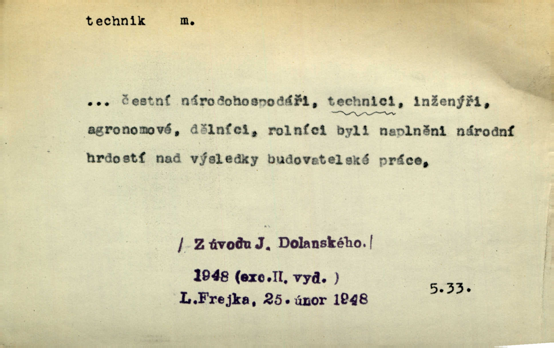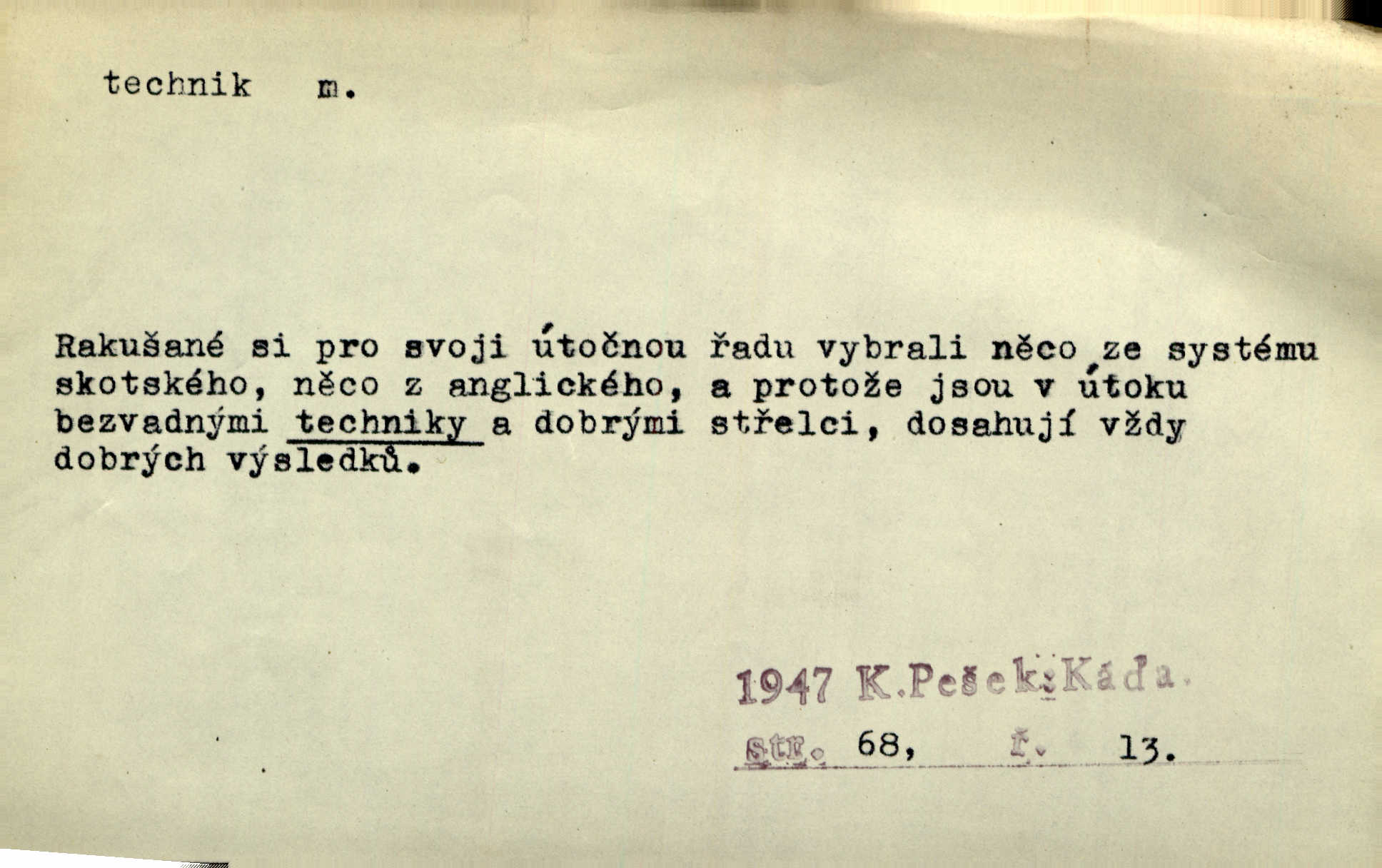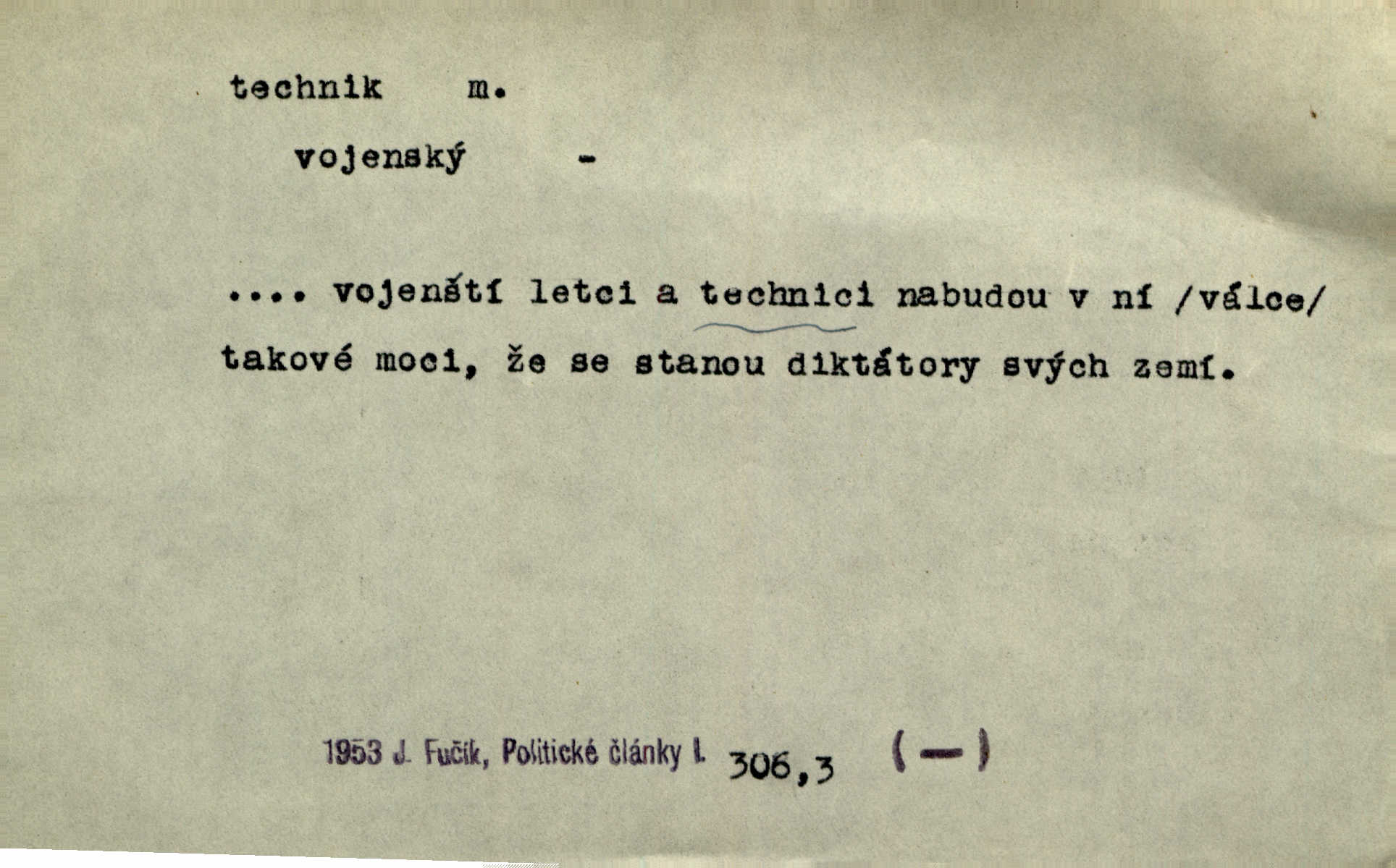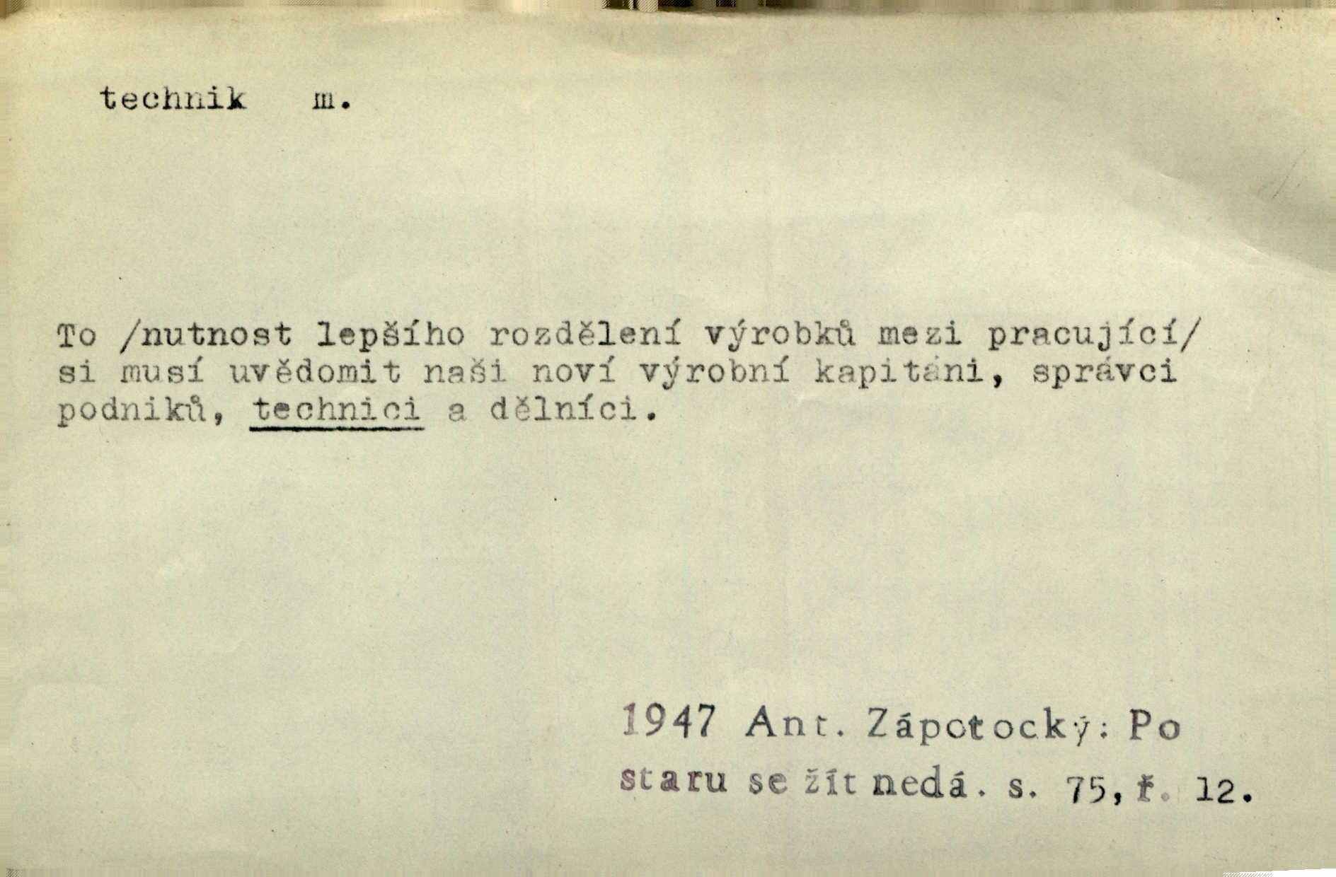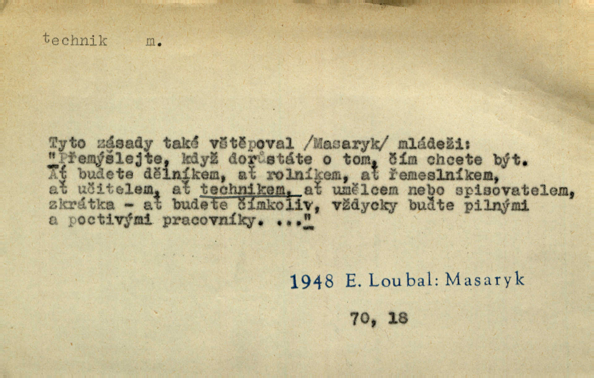 - technik, -a m. osoba s odbornou kvalifikací, vykonávající různé práce směřující k potřebám průmyslovým a pod. Místo králů a hrdinských bitev vystupují na scénu obyčejní lidé — technici. Streit. Morální povinností stavebních techniků [je] zdokonalování pracovních metod ve stavebnictví. Frid. Veř. spr. pojistný technik absolvent oboru pojistných nauk na vysoké škole technické. Živn. zubní technik kdo je oprávněn k výkonu některých prací na zubech a chrupu. D osoba ovládající dobře odbornou, mechanickou stránku nějaké činnosti. Tento autor není jen znamenitý divadelní technik, který zná všechny triky svého povolání. Lum. Oporou zálohy je levý záložník, dobrý technik. R. právo. D posluchač vysoké školy technické. Platil za dva studenty, techniky. Haš. Beneš rád se bavíval s technikem Wurmem. Herb.