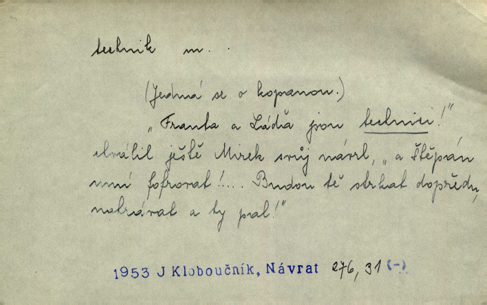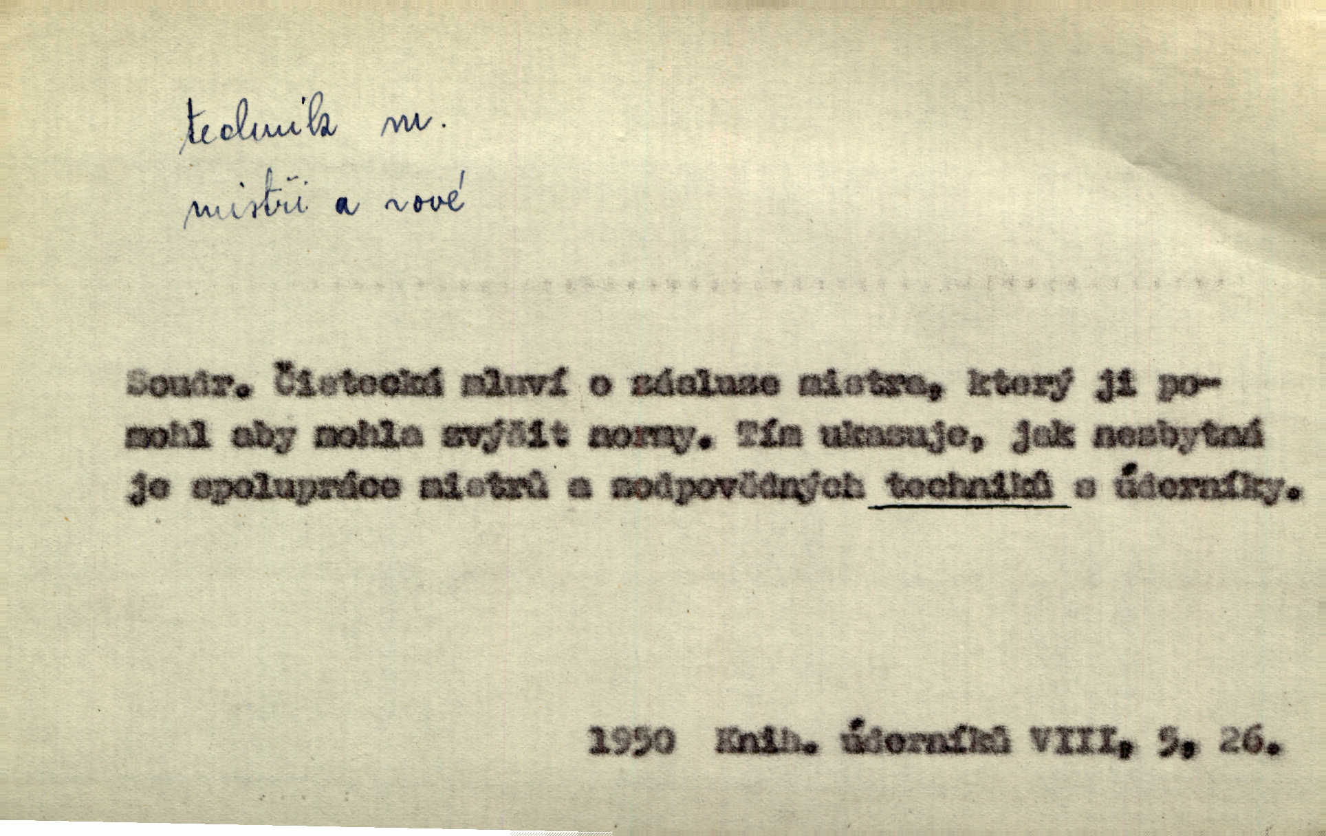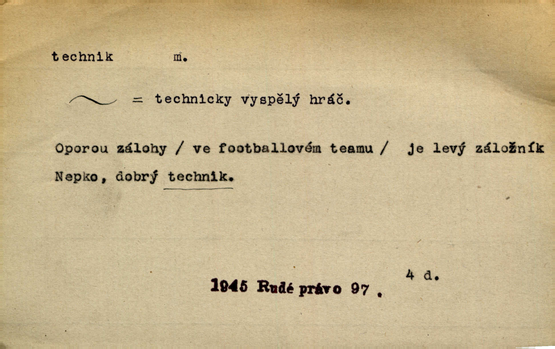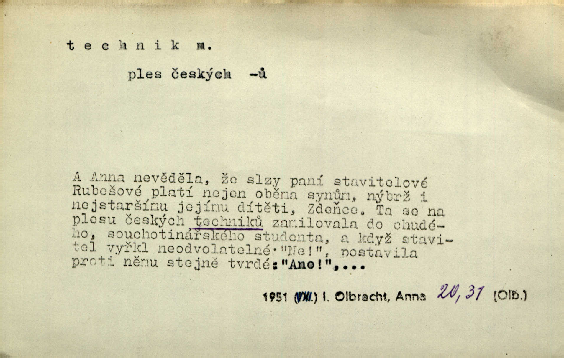 - technik, -a m. osoba s odbornou kvalifikací, vykonávající různé práce směřující k potřebám průmyslovým a pod. Místo králů a hrdinských bitev vystupují na scénu obyčejní lidé — technici. Streit. Morální povinností stavebních techniků [je] zdokonalování pracovních metod ve stavebnictví. Frid. Veř. spr. pojistný technik absolvent oboru pojistných nauk na vysoké škole technické. Živn. zubní technik kdo je oprávněn k výkonu některých prací na zubech a chrupu. D osoba ovládající dobře odbornou, mechanickou stránku nějaké činnosti. Tento autor není jen znamenitý divadelní technik, který zná všechny triky svého povolání. Lum. Oporou zálohy je levý záložník, dobrý technik. R. právo. D posluchač vysoké školy technické. Platil za dva studenty, techniky. Haš. Beneš rád se bavíval s technikem Wurmem. Herb.
