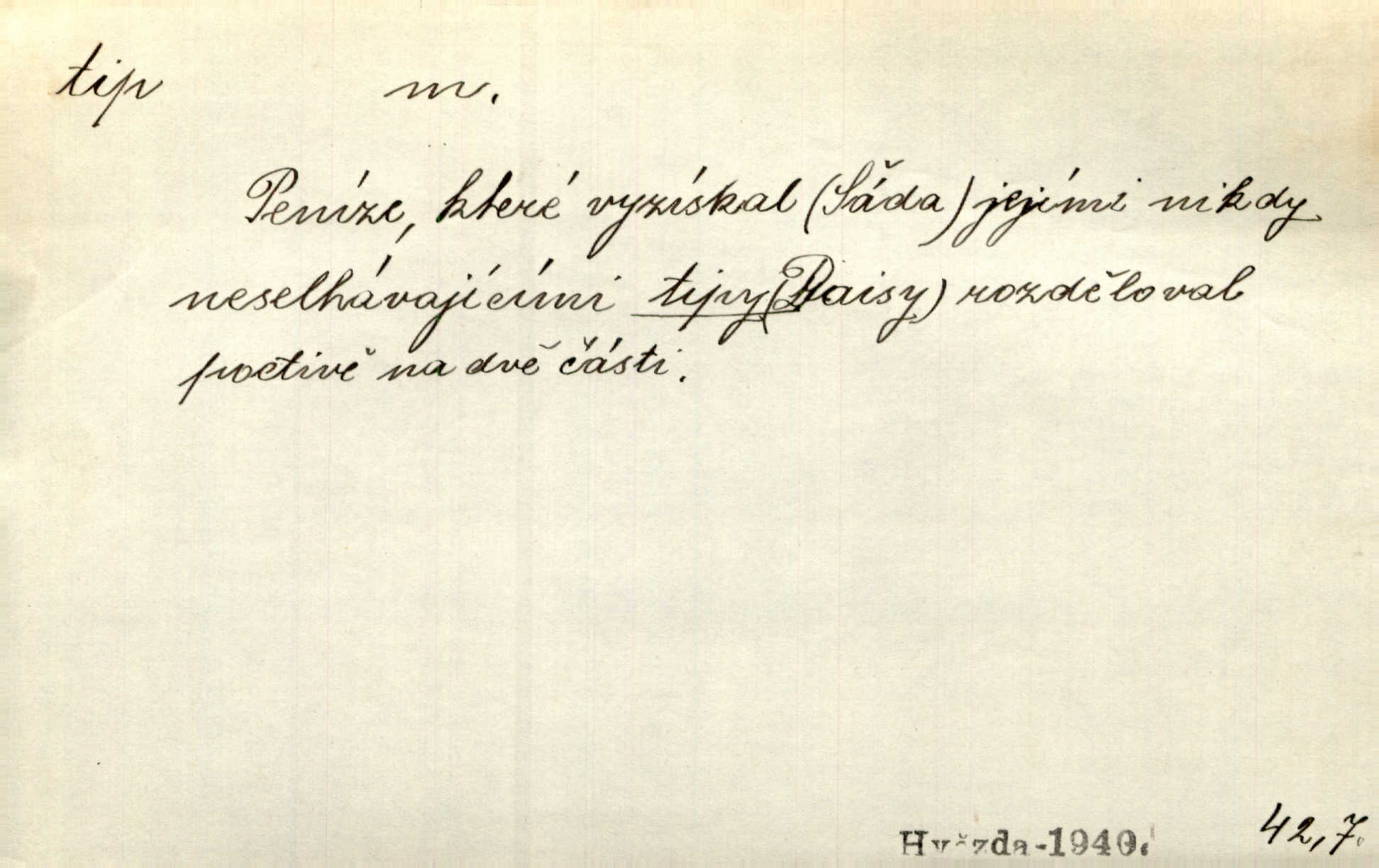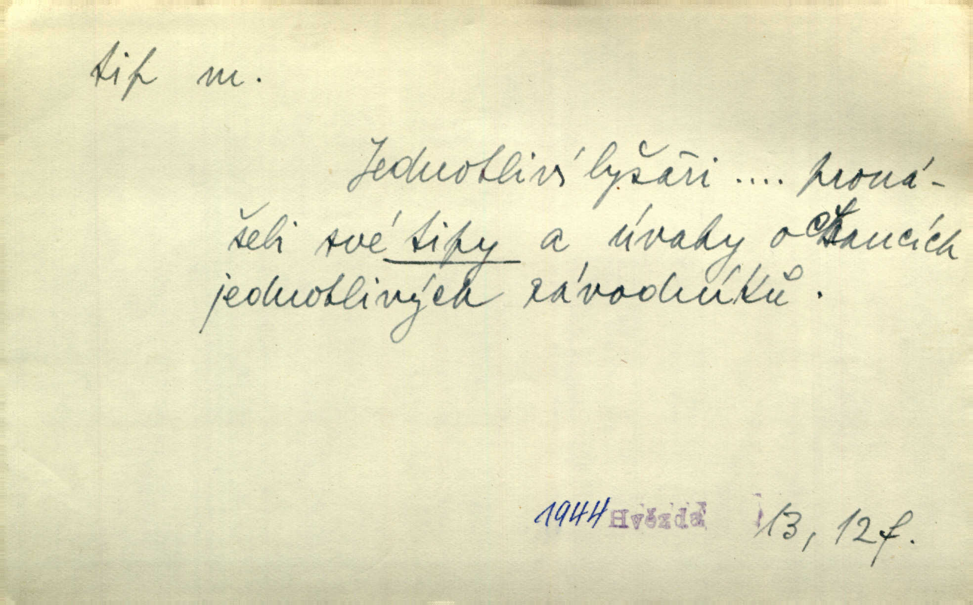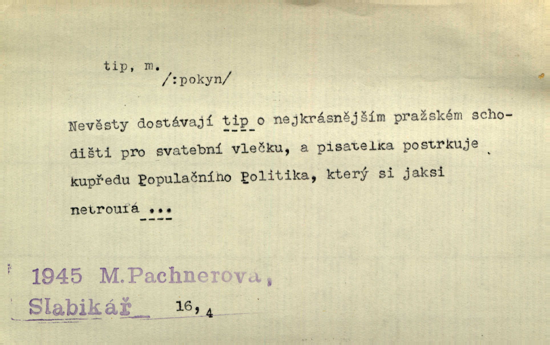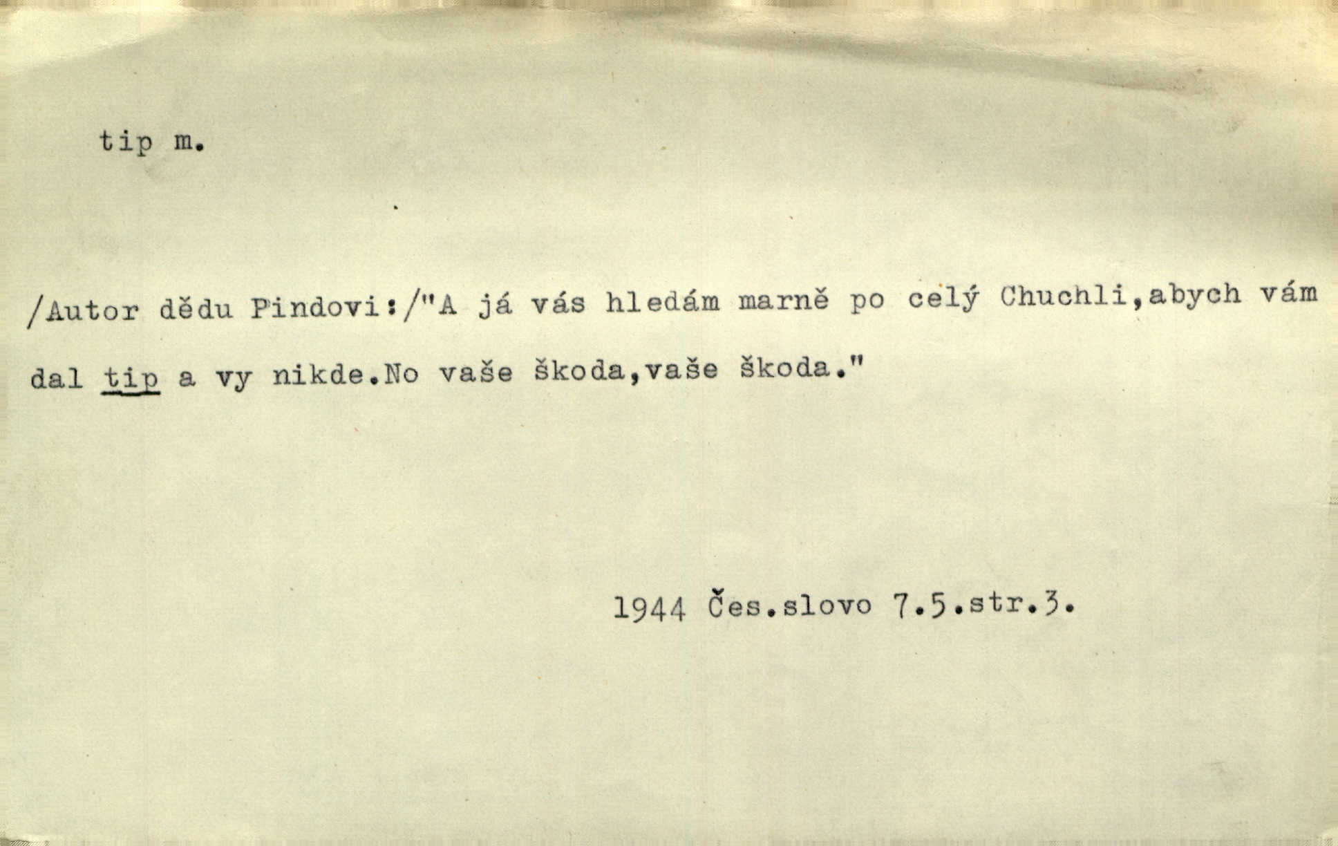 - tip (vysl. typ), -u m. pokyn, upozornění na možnost výhry (ve sportu, sázkách a j.). Váš bratr mi pomoh, já vám za to dal tendle tip. Vl. Proch. Mnoho tipů je letošního roku pro LTC, který je opravdu v dobré formě. Čes. sl. Lyžaři pronášeli své tipy a úvahy o chancích jednotlivých závodníků. Hvězda. Sport. (v sázkařství) předpokládané vítězství v závodech. — V. t. typ.