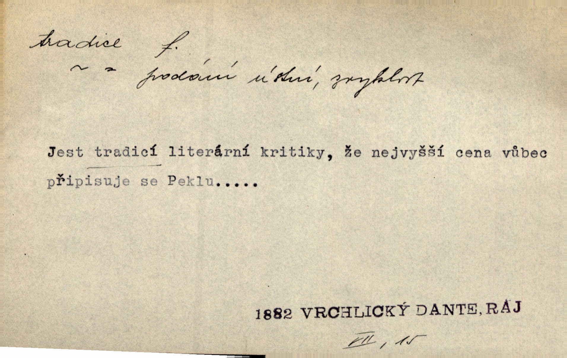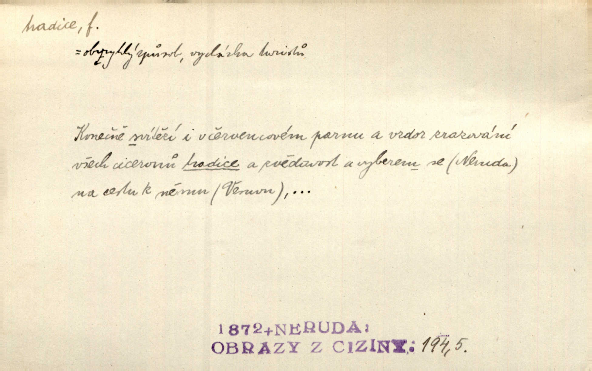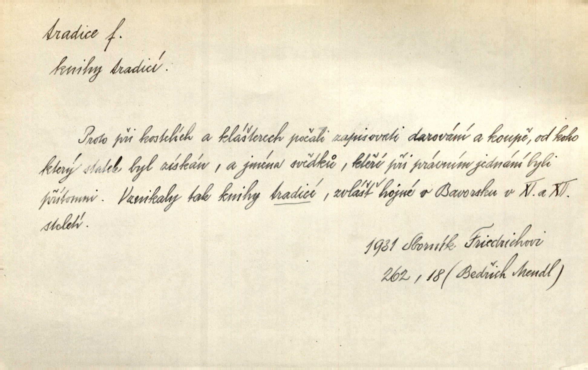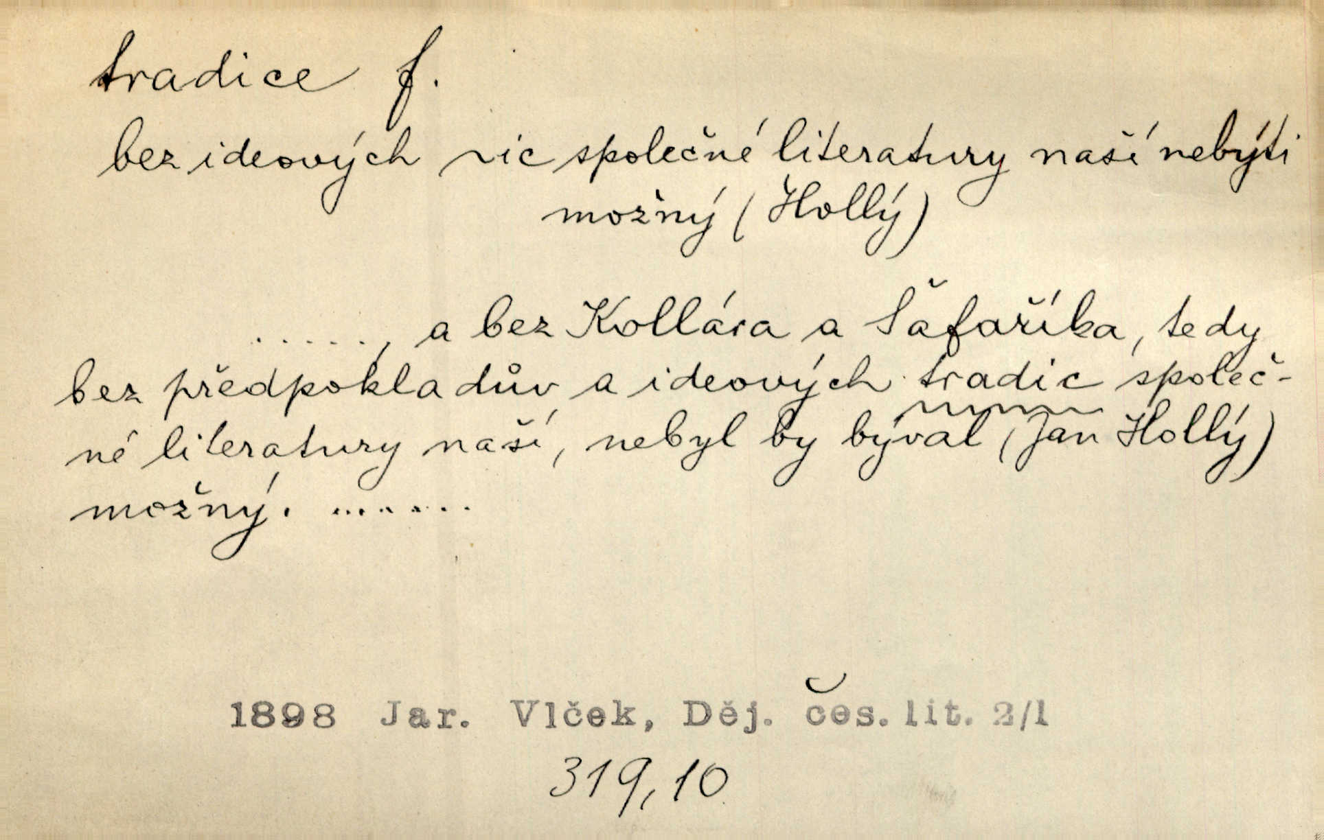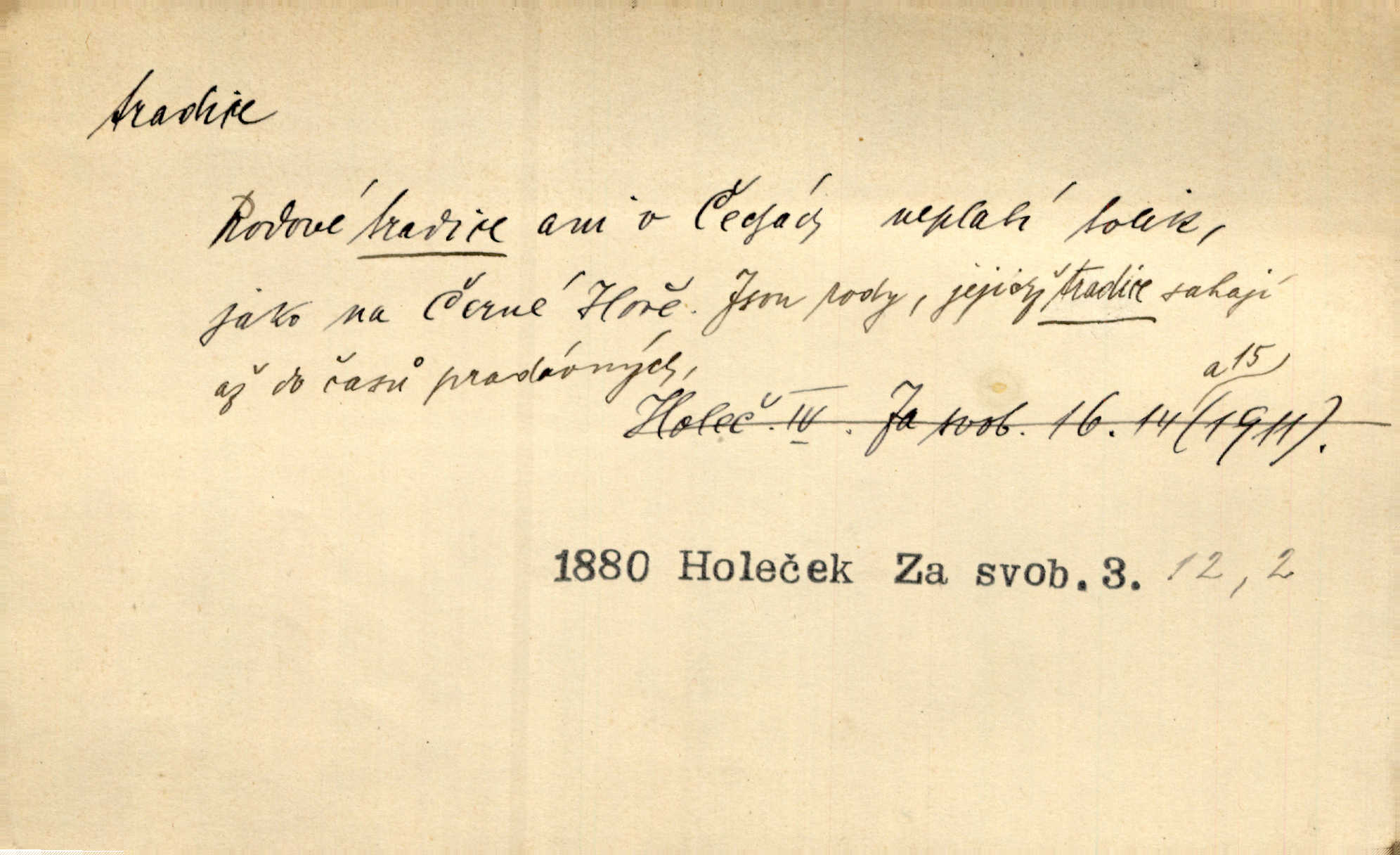 - tradice, -e (zast. tradicie, -ie, tradicí, -í) (vysl. -y-) f. souhrn zvyklostí, obyčejů, názorů, myšlenek a pod. přecházející s jedné generace na druhou a tvořící souvislý vztah k minulosti. Vážila si svých dědů, všechny ty rodinné tradice byly jí posvátny. Herrm. Chtěla, aby se dcera vdala zase do chalupy, do poměrů odpovídajících dávným zdejším tradicím. Šlej. Náš pan Devátý byl narozen již v Čechách, ale tradice a přesvědčení jeho byly po otci i po matce francouzské a republikánské. Staš. [Vlastenci] za žádnou cenu nedali se odtrhnouti od živé tradice svých dob. V. Mrš. [Ariosto byl] příliš svérázný, než aby byl se staral o ducha tradic zašlých věků. Zey. [Matěj z Janova] držev se vždy podstatného základu církevní tradicie, nemohl ovšem důležité váhy míti. Pal. Vzpomeňme, že to byl u nás prvý Jiří Wolker, kdo hlásal návrat k české tradici, zejména k Erbenovi. Čteme. Spor Starých s Moderními rozbil staré tradice. Tille. D Práv. skutečné n. formální odevzdání věci movité, jímž se převádí její vlastnictví s jedné osoby na druhou. D zprávy přenášené obyč. ústně s pokolení na pokolení, ústní podání. Malé obezděné návrší jest dle tradice bývalá vinice sv. Vácslava. Zap. Ti [tři králové] z dálných přišli zemí, ale jiné jich bylo vzezření, než z doby dětství a z běžných si je tradic představujem. Vrch. [Pulkava] také první jal se kontrolovati tradicí českou starými německými zprávami. Pal. Círk. [u katolíků] pramen křesťanského učení, který není obsažen v Písmě svatém, ústní podání.