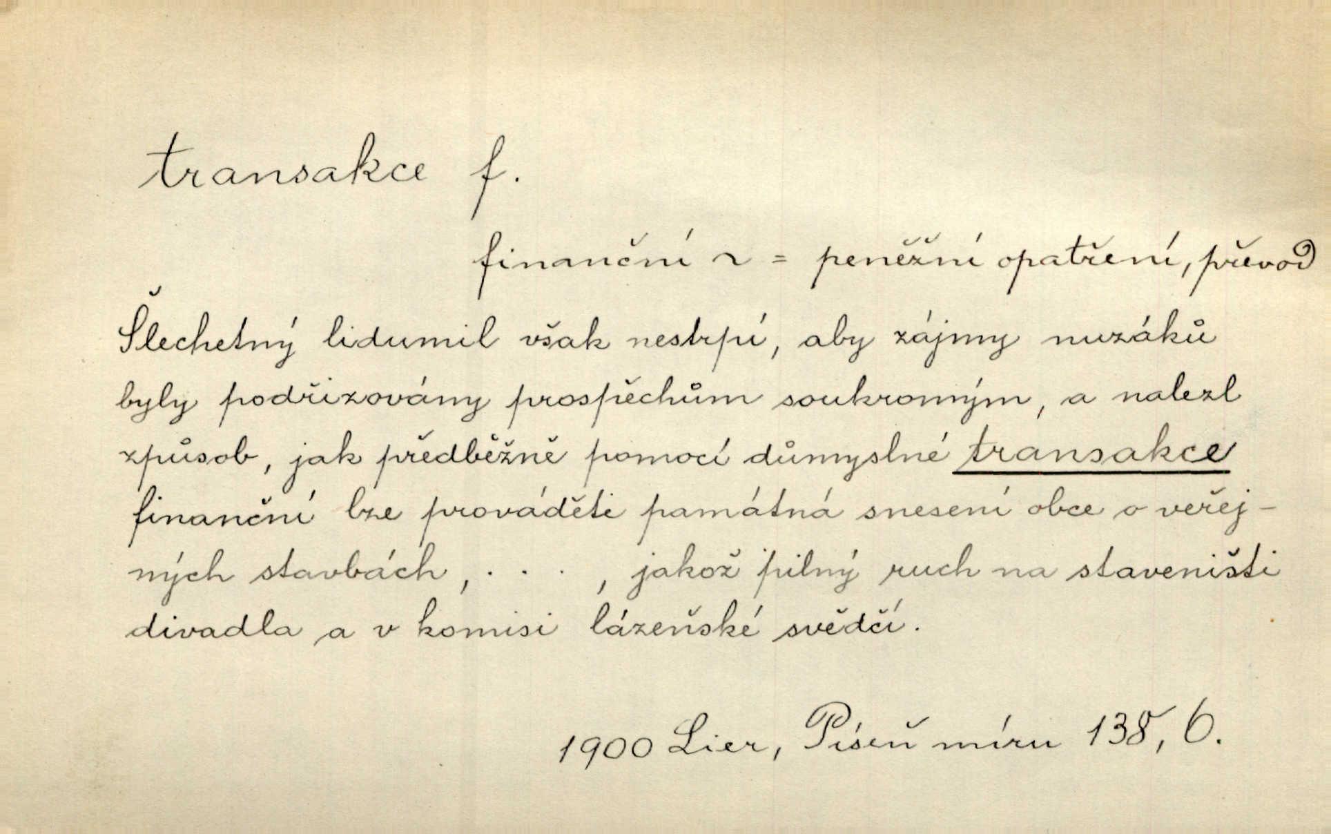 uskutečnění, provedení obchodního n. finančního opatření, jednání.