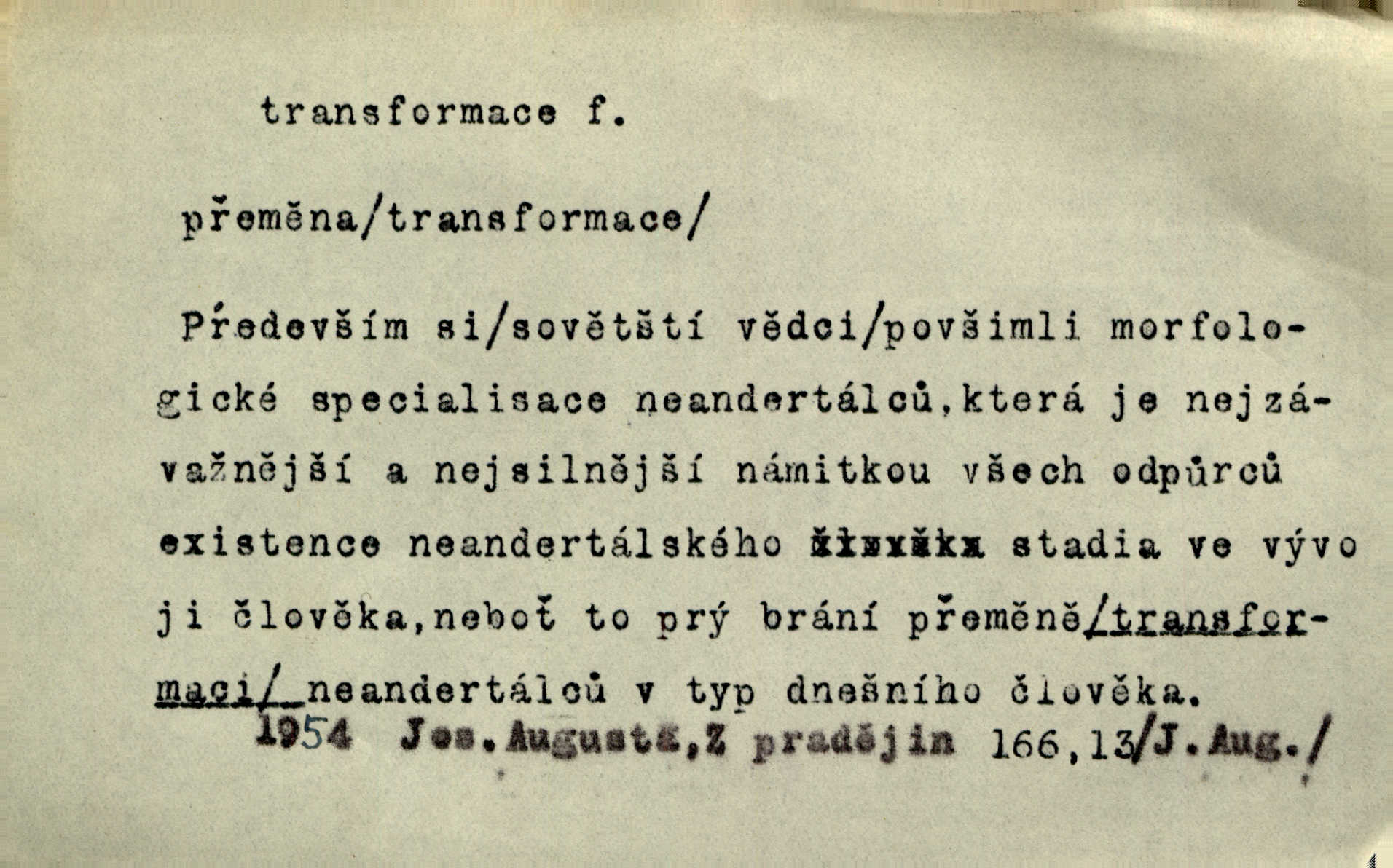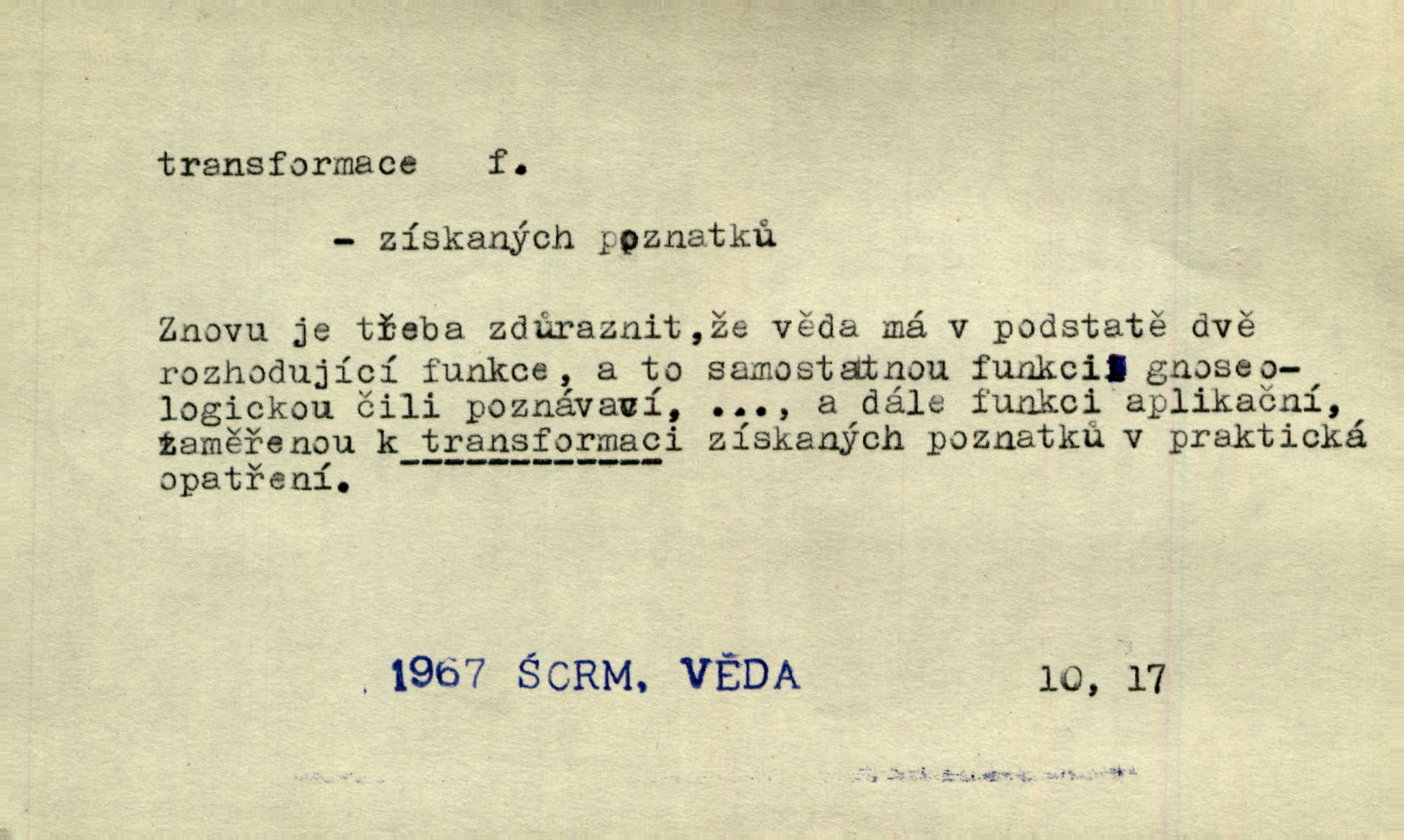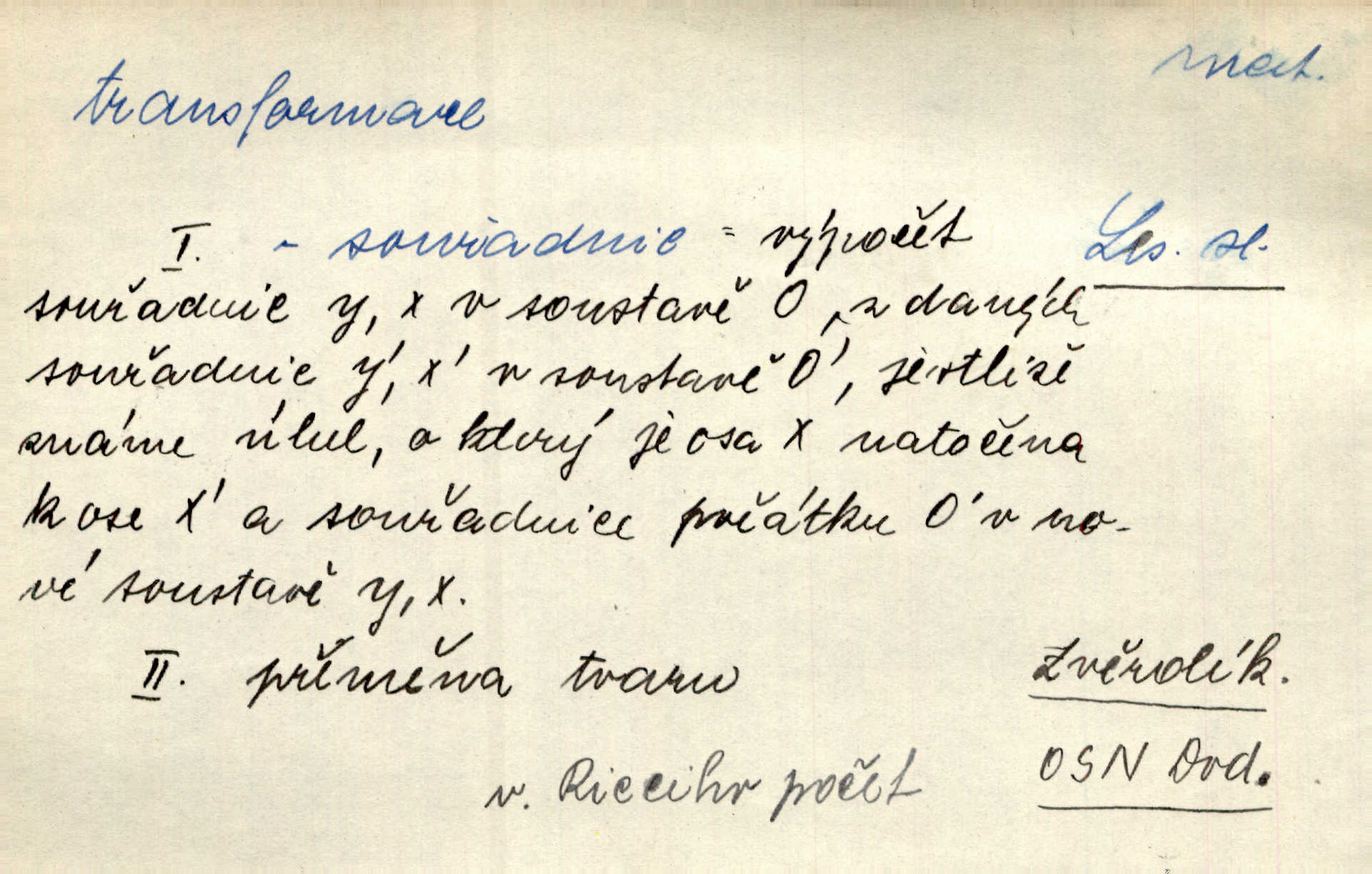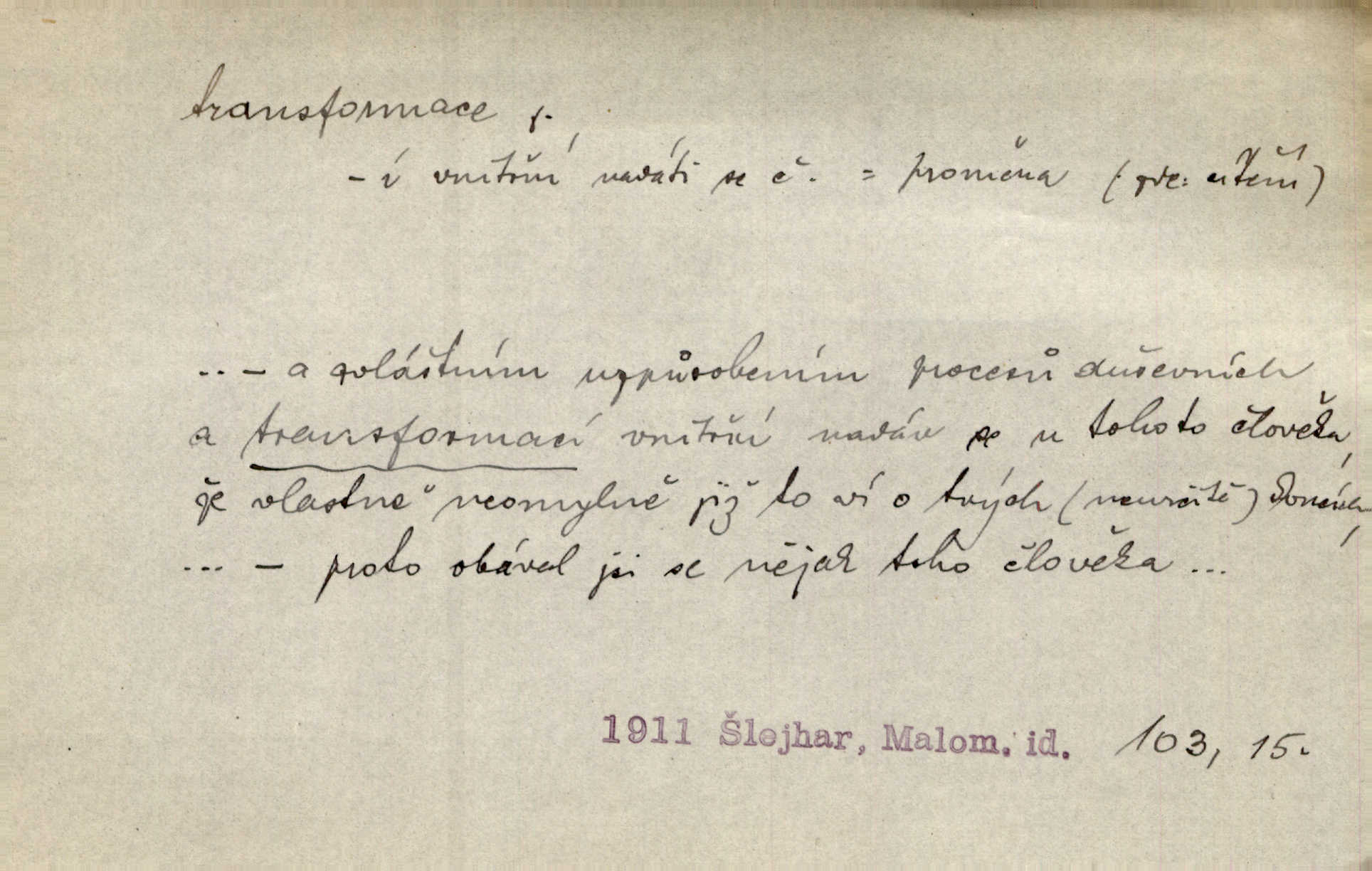 - transformace, -e f. přeměnění, přetvoření. Stvořil je [Diderot drama] transformací starší t. zv. comédie larmoyante. Šal. Rozmnožená rada říšská postupnou transformací v ústavních aktech let šedesátých byla definitivně organisována jako konstituční říšské zastupitelstvo. Čes. pol. Technika je transformace přírody aktivností sociologickou. Pour. El. tech. přeměna daného druhu elektrického proudu v jiný; přeměna střídavého proudu v proud o jiném napětí induktivním způsobem. Fys. transformace souřadnic (v theoretické fysice) převedení daného jevu do jiné souřadnicové soustavy. Mat. transformace rovnic z dané rovnice odvození jiné rovnice, jejíž kořeny jsou v určitém algebraickém vztahu ke kořenům rovnice dané. Geom. transformace útvarů způsob proměny geometrického útvaru v útvar nový, odpovídající původnímu podle určitého zákona. Transformace souřadnic proměna, posunutí soustavy souřadnic. Transformace průmětů nahrazení daných průměten novými průmětnami s přesně vymezeným vztahem k útvaru původnímu.