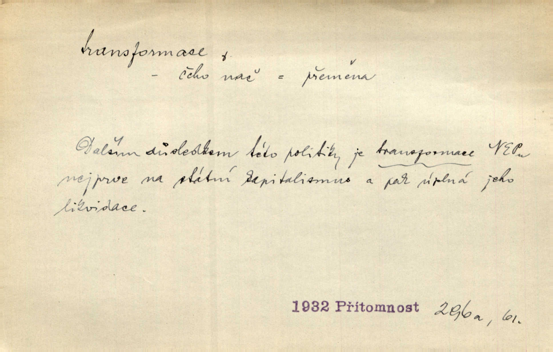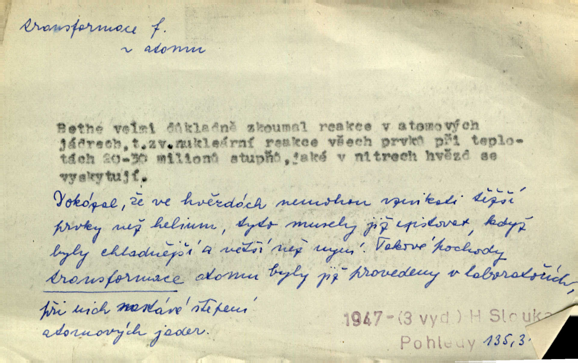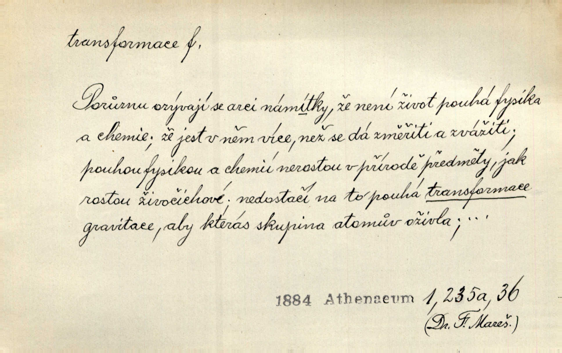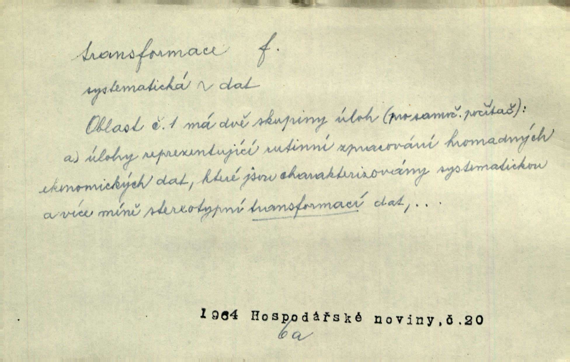 - transformace, -e f. přeměnění, přetvoření. Stvořil je [Diderot drama] transformací starší t. zv. comédie larmoyante. Šal. Rozmnožená rada říšská postupnou transformací v ústavních aktech let šedesátých byla definitivně organisována jako konstituční říšské zastupitelstvo. Čes. pol. Technika je transformace přírody aktivností sociologickou. Pour. El. tech. přeměna daného druhu elektrického proudu v jiný; přeměna střídavého proudu v proud o jiném napětí induktivním způsobem. Fys. transformace souřadnic (v theoretické fysice) převedení daného jevu do jiné souřadnicové soustavy. Mat. transformace rovnic z dané rovnice odvození jiné rovnice, jejíž kořeny jsou v určitém algebraickém vztahu ke kořenům rovnice dané. Geom. transformace útvarů způsob proměny geometrického útvaru v útvar nový, odpovídající původnímu podle určitého zákona. Transformace souřadnic proměna, posunutí soustavy souřadnic. Transformace průmětů nahrazení daných průměten novými průmětnami s přesně vymezeným vztahem k útvaru původnímu.