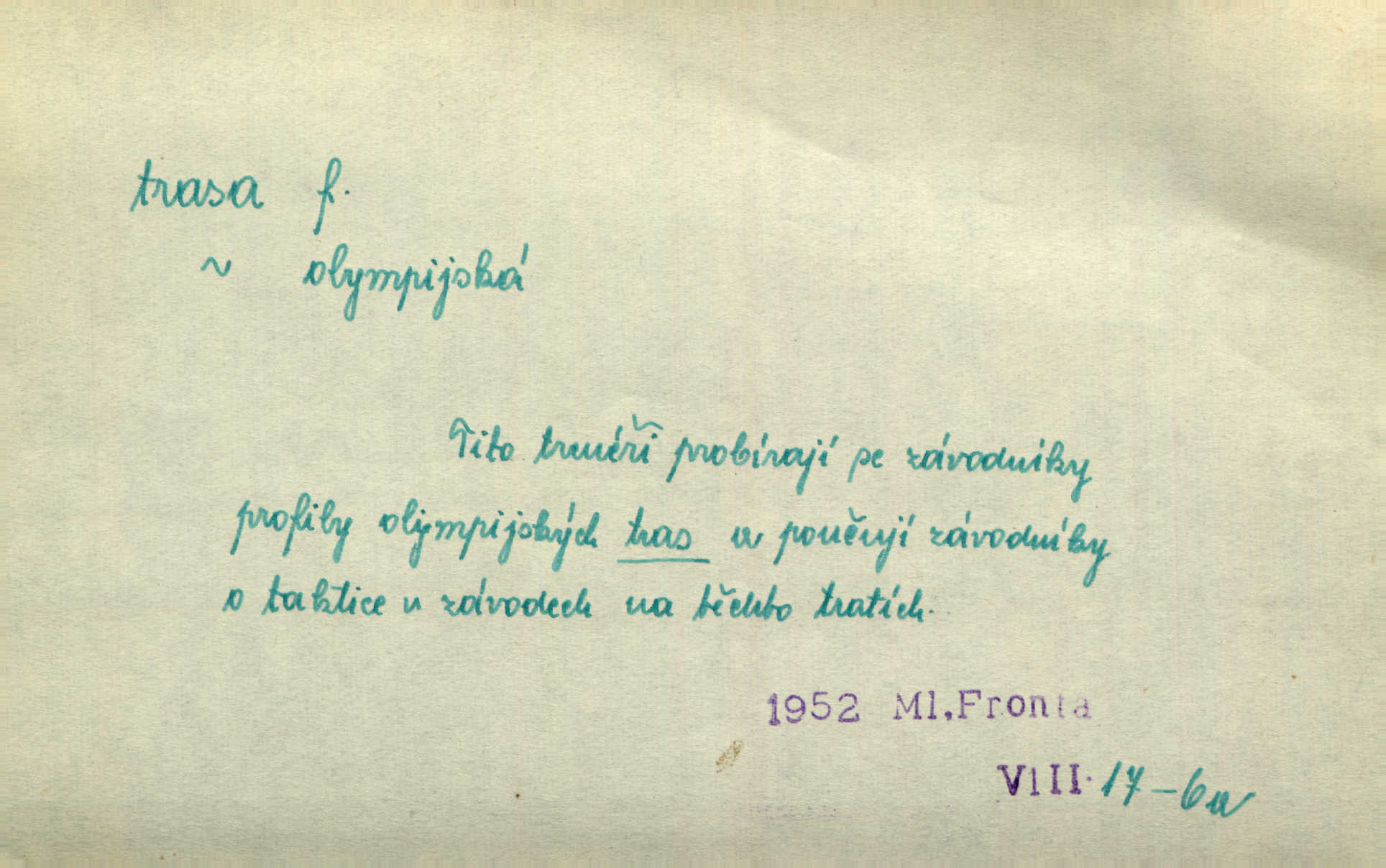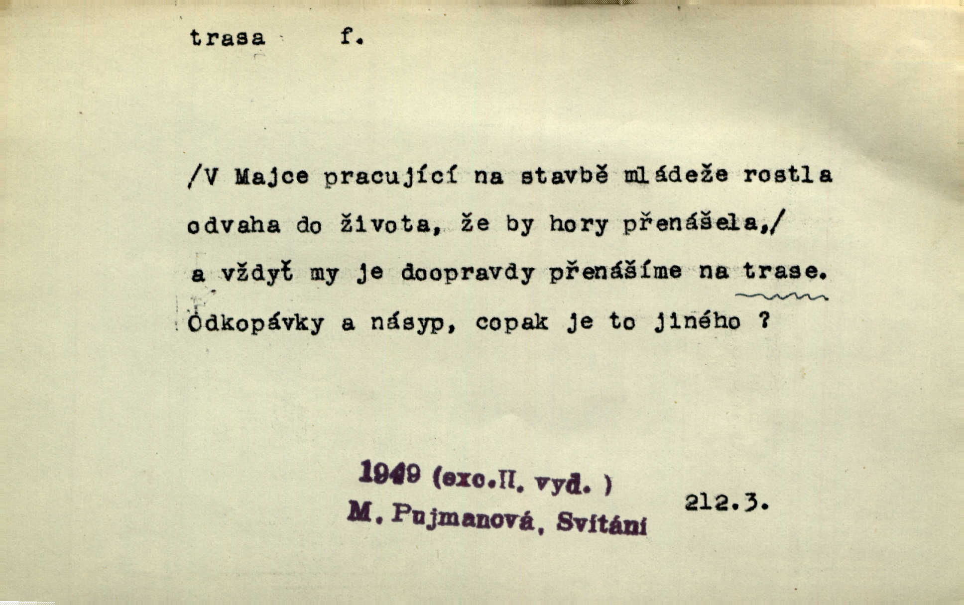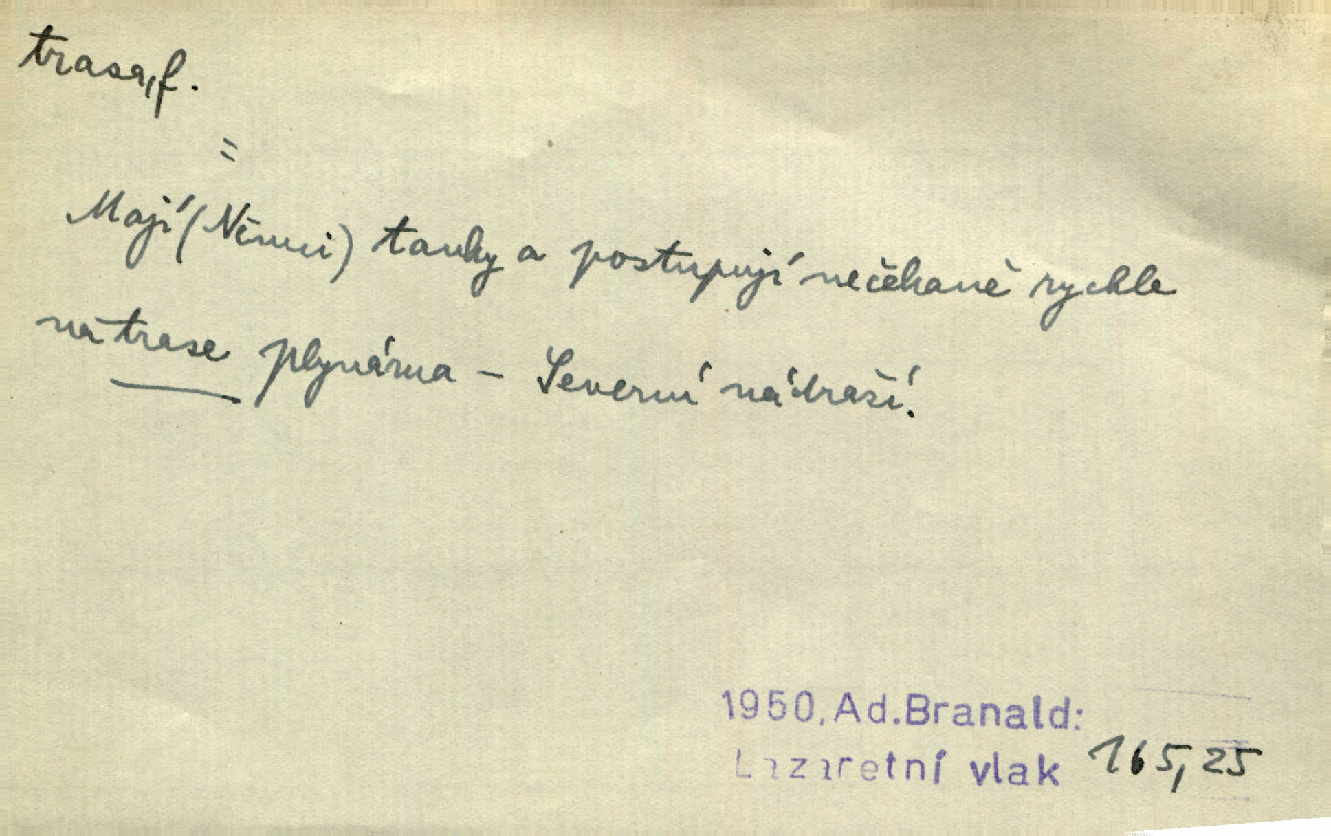 - trasa, -y f. geod. linie na povrchu zemském, mající pevně vyšetřené poměry směrové i sklonové. Stav. vytyčení dopravní cesty (dráhy, silnice, vodní cesty a j.). Voj. vytyčení směru umístění zákopů n. opevňovacího systému.