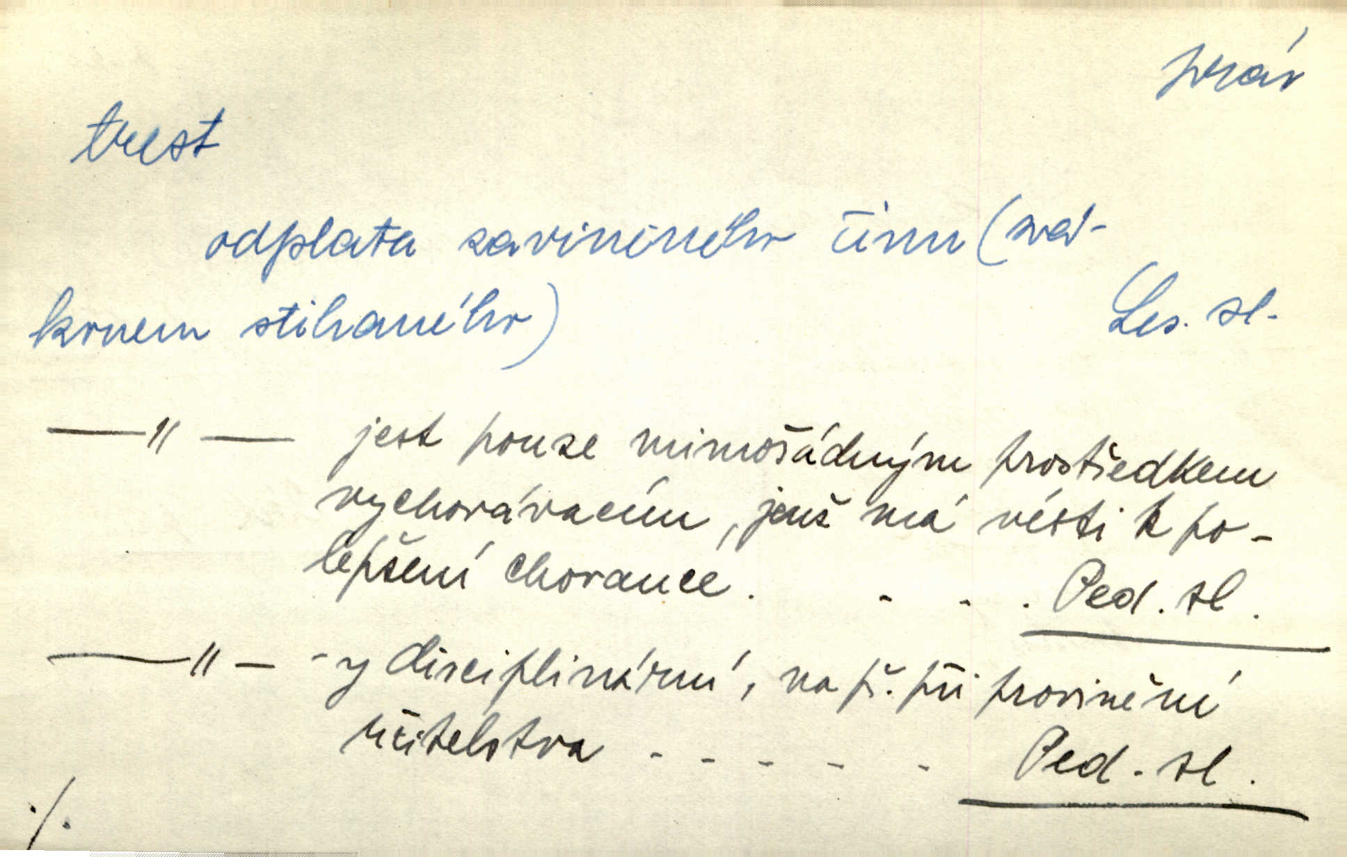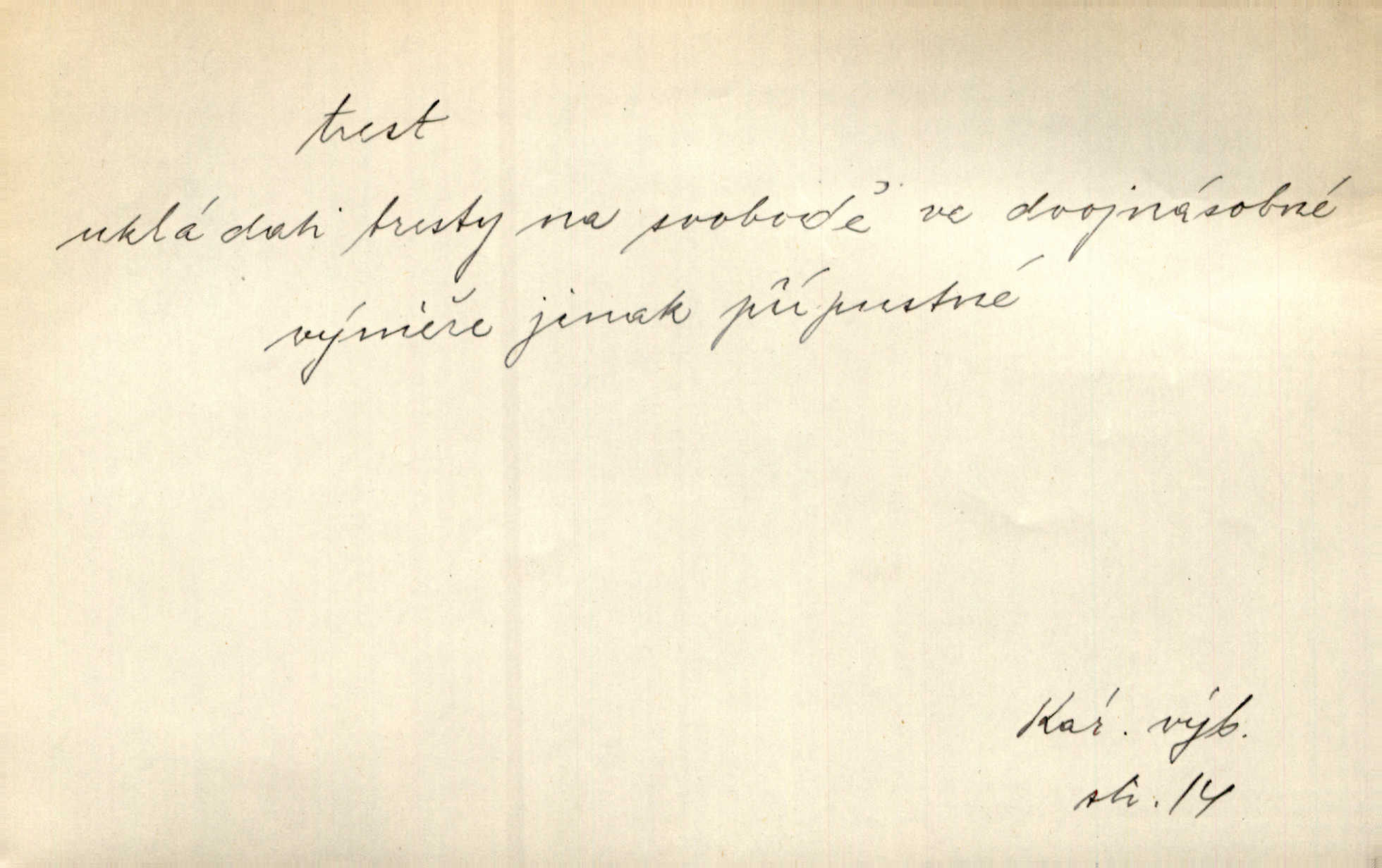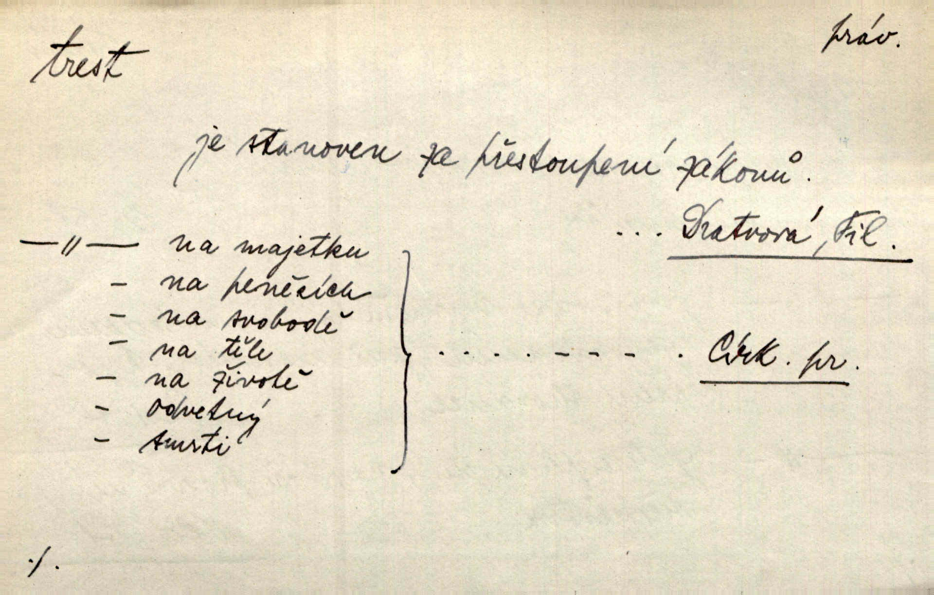 - trest, -u m. újma n. nepříjemnost způsobovaná někomu jako odplata za větší n. menší provinění. Jen na základě zákona možno tresty hrozit a je ukládat. Ústava. Oba misionáři kázali proti kacířským knihám a hrozili časnými i věčnými tresty. Herb. Boží trest padá na tebe za tvoje lehkovážné jednání. Šmil. Nařídili pod trestem smrti, že nesmí nikdo ani z nich [vesnic]‚ ani do nich. Jir. Vojta ohlásil, že hned nastupuje trest. Rais. [Nápadník] sedne si, jakoby přišel odsedět trest. R. Svob. Syna z trestu na vojnu odvedli. Jir. „A pak ty zatracené břečky venku!“ horlíval mistr Kondelík. „Z trestu aby je do sebe lil!“ Herrm. Za trest jsem musel [z letadla] skočit dvakrát. Václavík. Denně si přinášela na podpal do kuchyně stohy latinských trestů úkolů dávaných z trestu. Strettiová. Práv. újma uvalovaná na odsouzeného s výchovným cílem státními n. i jinými orgány k tomu příslušnými po předchozím řízení. Tresty světské, církevní. Tresty disciplinární, policejní, pořádkové, soudní. Trest na cti, na majetku, na svobodě, na těle, na životě. Trest vězení, trest žaláře, trest smrti.