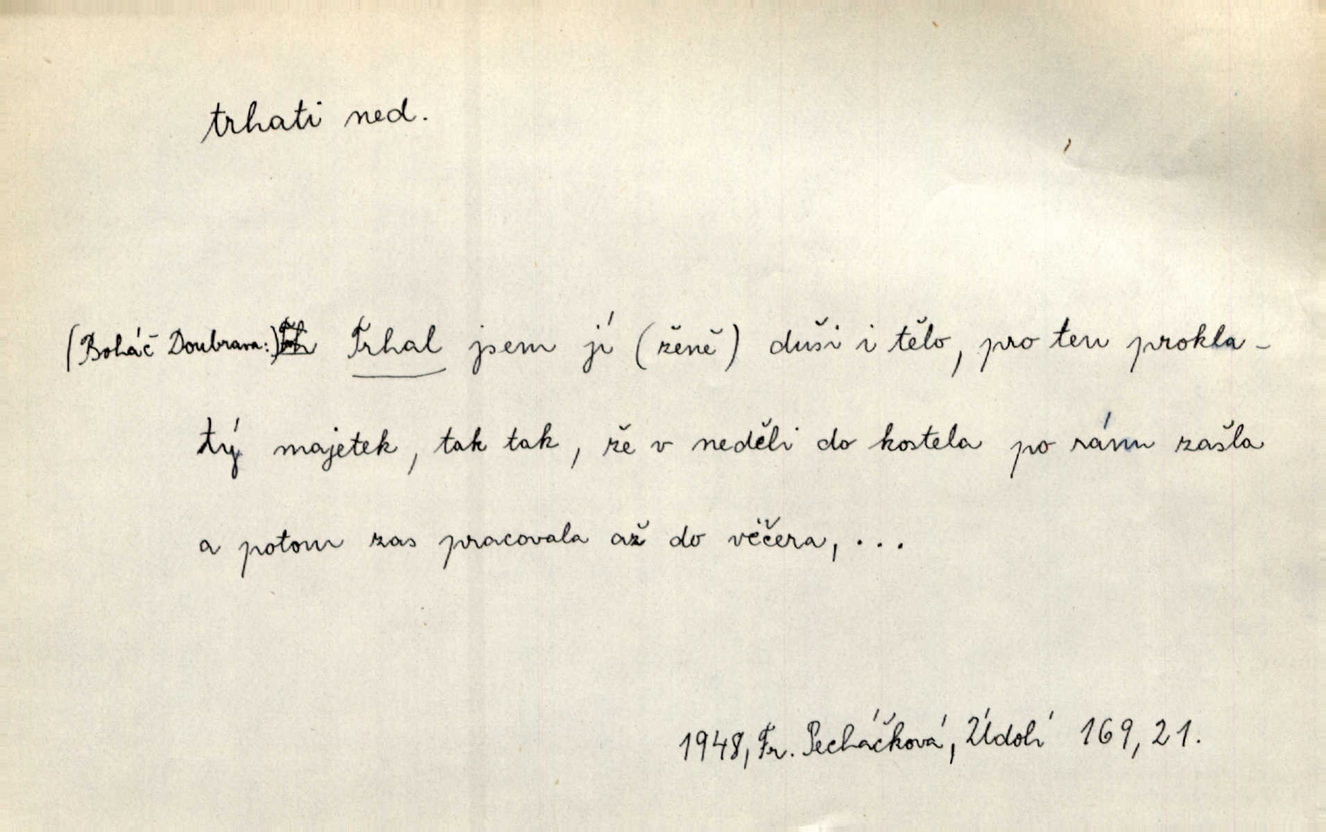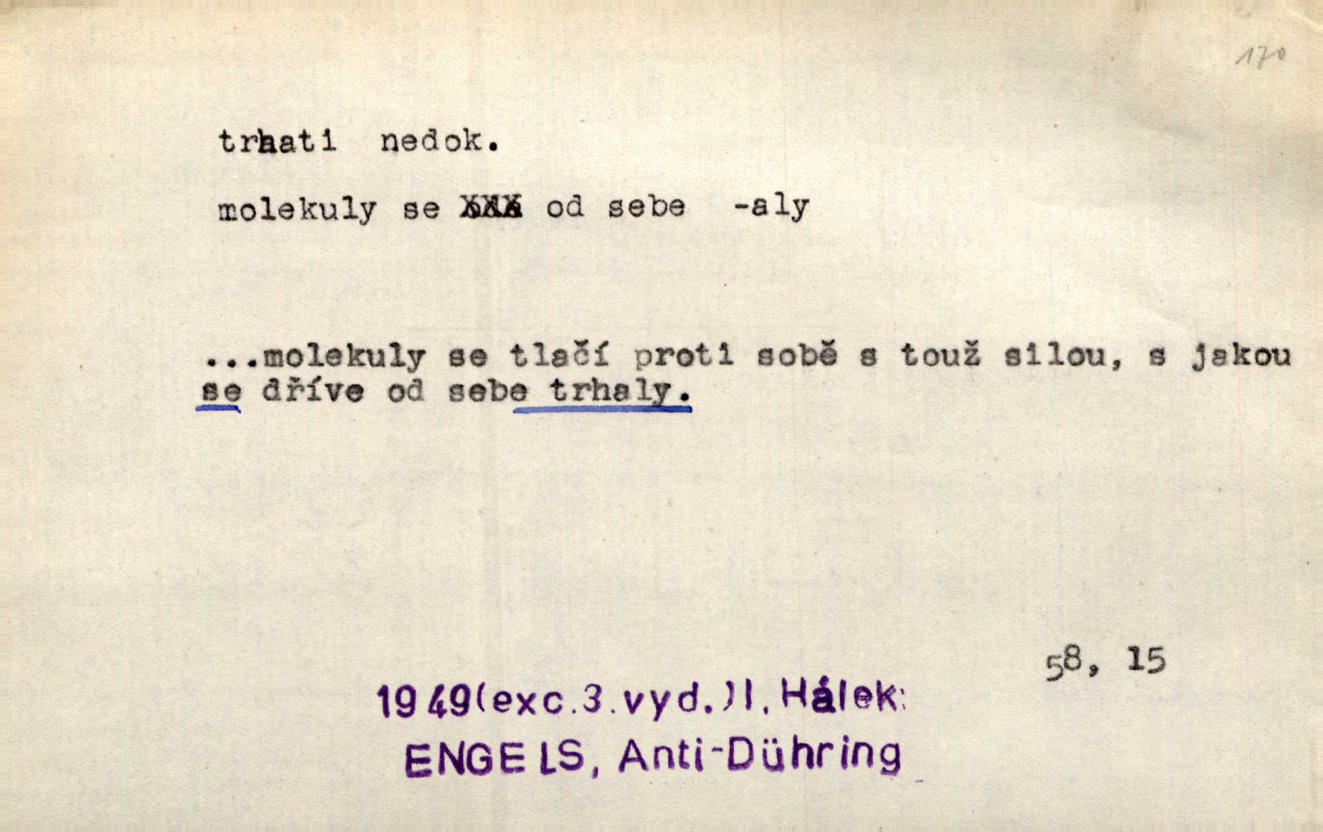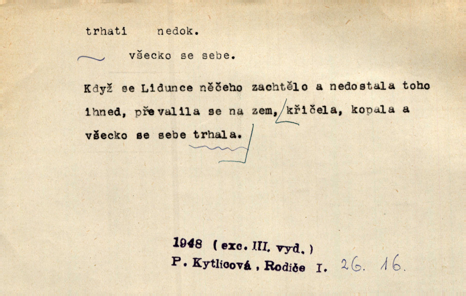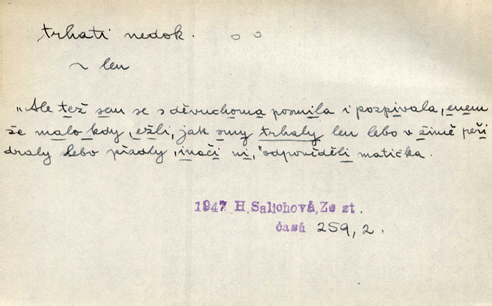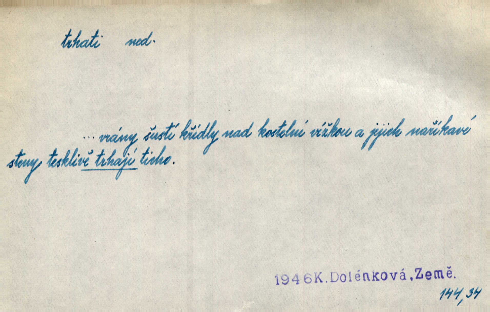 - trhati ned. (čím n. kým) prudce a krátce něčím hýbati n. za něco tahati; něčím n. někým škubati, smýkati, cloumati, lomcovati; trhati se, trhati sebou škubati se, škubati sebou. Ozvaly se pádné rány na dvéře domovní, a někdo prudce trhal zvoncem. Jir. Stojí pod zvonem a zlostně trhá provazem. Baar. Oldra uzdou trhá. Heyd. Koně nepokojně trhají zasněženýma ušima. A. Mrš. Trhala jím zima. Nor. Smělcem trhá vztek. V. Nej. Pes zvyklý svobodě trhal se na řetězu jako zběsilý. Baar. Vozka ve dveřích oznamoval, že koně sebou trhají. V. Mrš. Trhala sebou divoce v divokých snech. Svět. Ruka křečovitě sebou trhala. Vlč. Čím dál, tím více sebou trhaly svaly jejího obličeje. Herrm. Kolikrát to jejími rty trhalo, oči se kalily. Koudelák. Přen. Cosi smutného, lítostného, sklamaného trhalo mu srdcem. Svob. D (koho) rváti, sápati, drásati někoho (zvl. o dravé zvěři); trhati se (s kým) rváti se s někým. Vjede mu do vlasů, začne ho trhat a lomcovat jím. Něm. Máme dva zlé psy, kteří každého cizího trhají. Brodský. Vlk lapá, trhá a dáví ovce. J. z Hv. Trhají v zubech živé kuře. K. Čap. Vystrčil ji z domu, až byla skoro znak upadla, trhal se s ní, až přišel rychtář. Win. D (co odkud) vytrhávati, vyškubávati, strhávati něco odněkud. Nosičů se tu jen hemží a samou ochotností trhají ti všecko z ruky. Obr. živ. Div, že si netrhali [žebráci] almužnu z rukou. Jir. Trhá listonoši z rukou dopisy. Čech. Trhala bych si vlasy s hlavy, když si všecko rozvážím. Kun. Vítr už trhá listí s topolů na humnech. Svatoš. Hvízdání mnoha set úst trhalo uši drásavě bolelo v uších. Dyk. Přen. Darmo by do ní mluvil a trhal ji ze spaní vytrhoval. Rais. Ten den srdce trhalo se všem. A. Mrš. D trhati se (o koho, oč) podnikati prudký zápas o někoho n. něco; velmi usilovně státi o někoho. Vzpomínala, když za ní chodívali hoši a trhali se o ni k tanci. Staš. Budou-li se o tě tam v Praze trhati jako zde, nepovede se ti zle. Kosm. [Obrazy] brzy neobyčejné obliby došly, a lidé se o ně takořka trhali. Lum. Trhají [se] o tvůj povoz, o tvé lidi a koně. Zap. Pak vlky vyrušili, jak se trhali o koňskou zdechlinu u cesty. Jir. D trhati (co) škubnutím oddělovati od lodyhy, větve a p. (obyč. květiny n. plody). Sehnuvši se trhala kvítí. Jir. Když byla žena s trháním [jahod] hotova, vrátily jsme se spolu do města. Něm. Trhelte si [oříšky], ale nelamte lísek. Kosm. To byla má radost, pomáhat v poli — okopávat, trávu trhat. Rais. Docházel k dvorskému lánu, na kterém trhaly trhačky len. Jir. Děti rády trhaly proutky, házely je do vody. Něm. Neměl moci zadržeti ji, kdyby se jí zachtělo trhati zapovězené ovoce býti nevěrnou. Schein. Trhej růže, když kvetou využívej vhodné příležitosti. Tůma. Byl bych blázen, kdybych netrhal slívy, když mi zrají. Šmil. Přen. Byl hotov chytit ji do náruče a trhat sladké rozkoše jejího těla. Schein. D (co) něco souvislého rozrušovati, násilně děliti; poškozovati, ničiti; trhati se dostávati trhliny, poškozovati se trháním. Trhali balvany i skalky na štěrk. Rais. Proud ohromné síly se bouřlivě řítil a valil, trhaje skály. Jir. Caterina trhala a střihala plátno horlivě dále. Zey. Mačkává mezi prsty papírovou kuličku, kterou pak trhá na tisíce kousků. Lum. List mu vyškub’, trhal v kousky drobné. Čech. Je mu milý holendr ve mlýně, když trhá krupky. Hampl. Panny trhají závoje nevěst, stávají se řeholnicemi. K. Schulz. Šimon trhal prkna podlahy, sekaje do nich. Svob. Kocour počal trhati maso zuby i pazoury. Herb. Osedlej si kobylu, co budeš trhat boty. Jir. Dělníci pracovali po celou noc, odvážejíce celou horu země, trhanou prachem i dynamitem. B. Beneš. Dělové náboje trhaly se i zde vybuchovaly. R. právo. Když pustila kolovrat, trhala se jí niť. Herb. Stěžeň praská — plachta v dvé se trhá. Čech. Staré látky se trhají, je zapotřebí ustavičné správy. Prav. Záclony oken pod tíží prachu se až trhají. Ner. Vysoké břehy jsou podemlety, lehce se trhají a padají. Mach. Led prostředkem taje a se trhá, puká. Něm. Chmury se ještě přeháněly oblohou, ale již se trhaly. Jir. K tomu ke všemu se s řízků [masa] zase obaly trhaly a spadávaly. Maj. Bavoři se trhali smíchy div se nepotrhali. Hol. U každého sedláka se ho tak ptávali a všady se trhali smíchem. Herb. Tu práci zrovna trhá úporně pracuje. Rais. Uvidí, a první ten Reisek, co si nejvíc trhal hubu zbytečně mnoho mluvil. Klost. Slang. Rád „trhá kulisy“, jak se říká v divadelním žargonu usiluje o drastický efekt. Smet. Přen. Chladně trhal jednu illusi jeho za druhou. Kun. Příjemně zní sem flašinet, jehož jednotlivé zvuky vítr trhá a zanáší. Wojk. Proč trháte zbylé posud svazky [rodinné]? Heyd. Slova se jí lítostí trhala. Šmil. Dnešní její spánek trhal se. Herrm. Tech. trhání dobývání skalin pomocí trhavin, střílení. D trhati (se) vůbec rozdélovati (se), oddělovati (se), děliti (se). A to by bylo pěkné, trhat společnost, že byste se nestyděl! Tůma. Druh neslyší — zaniká v prachu s houfem, jenž počíná se trhati. Jir. [Závodník] přidává, už se trhá předstihuje ostatní. Lid. nov. [Usedlosti] se tenkráte ještě jako teď libovolně trhati nesměly. Svět. Od tebe se trhám a k ženě tě posílám. Svět. Od srdce se jí trhá nejen muž, ale i všechno, co náleželo posud k ní. V. Mrš. D míti trhání ob. pociťovati nutkání, touhu něco podniknout. Měl silné trhání, byl by se nejraději rozjel ven ke Zbraslavi. Jir. Uslyševše o nastávající znamenité svatbě, měli hrozitánské trhání a byli by dali nevím co, kdyby se mohli na tu parádu hezky z blízka podívat. Herrm. [Pes] míval nějaký čas trhání [napadnout drůbež]‚ ale