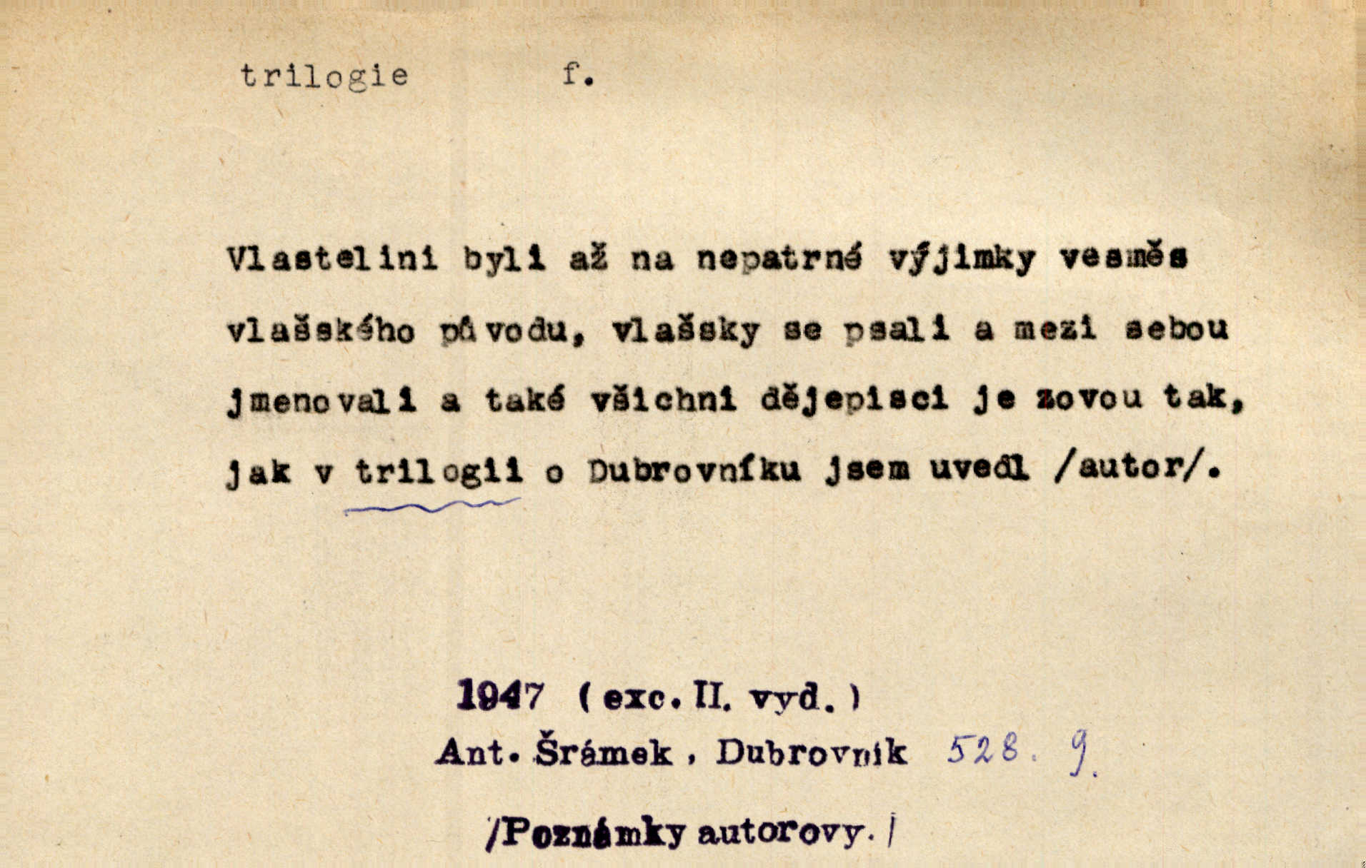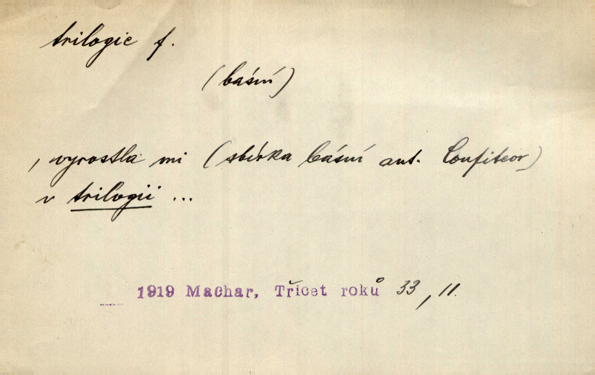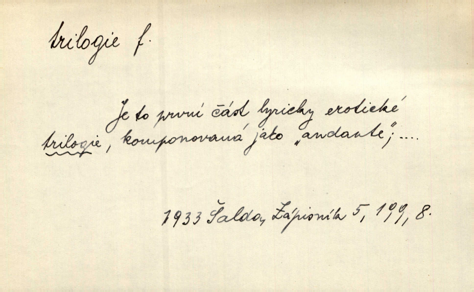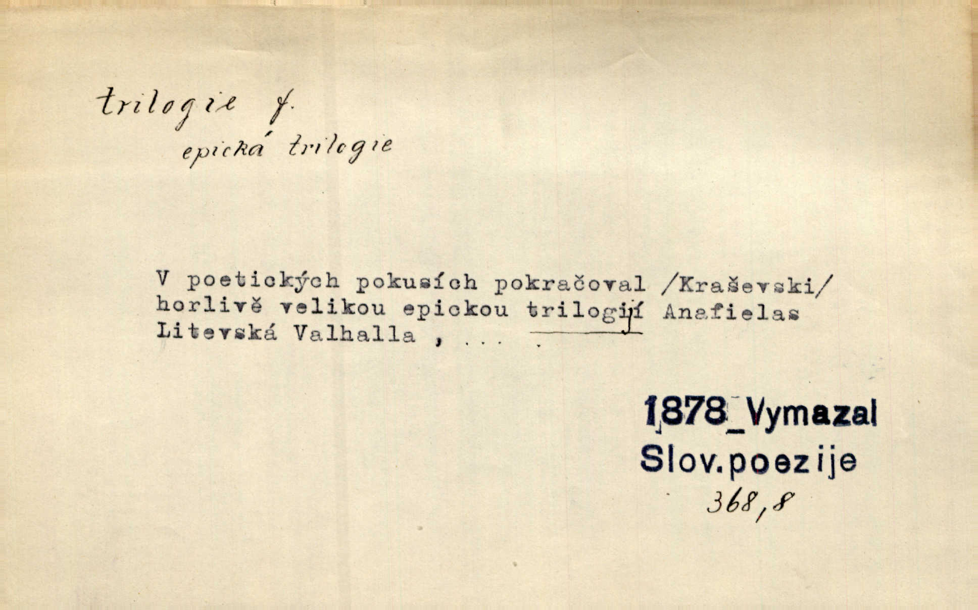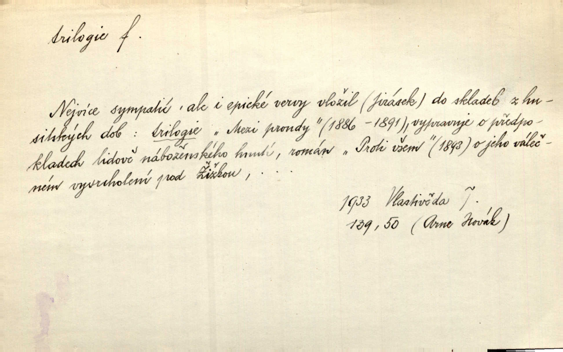 - trilogie, -e f. slovesné, zpr. dramatické n. románové dílo skládající se ze tří částí navzájem souvisících. Nejslavnější jeho trilogii Oresteii nedali cenu. V. Neb. V Schillerově Waldštýnské trilogii zračí se prvky tragedie osudové. Lit. č. „Bratrstvo“ zove se trilogie, jejíž první díl „Bitva u Lučence“ je hotov. Mach. Revoluční trilogie vznikla po „Poslu“. Dyk. První část lyricky erotické trilogie. Šal.