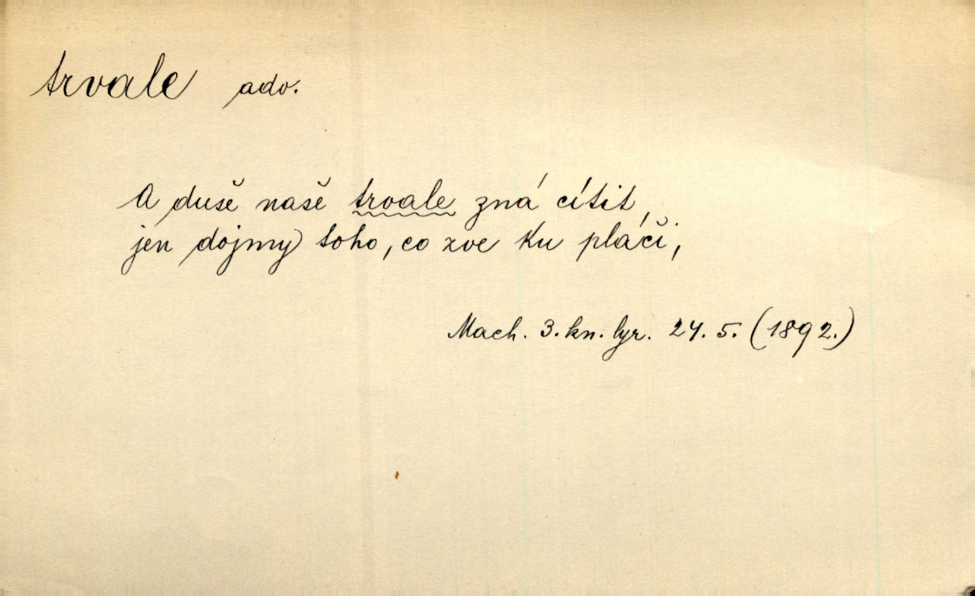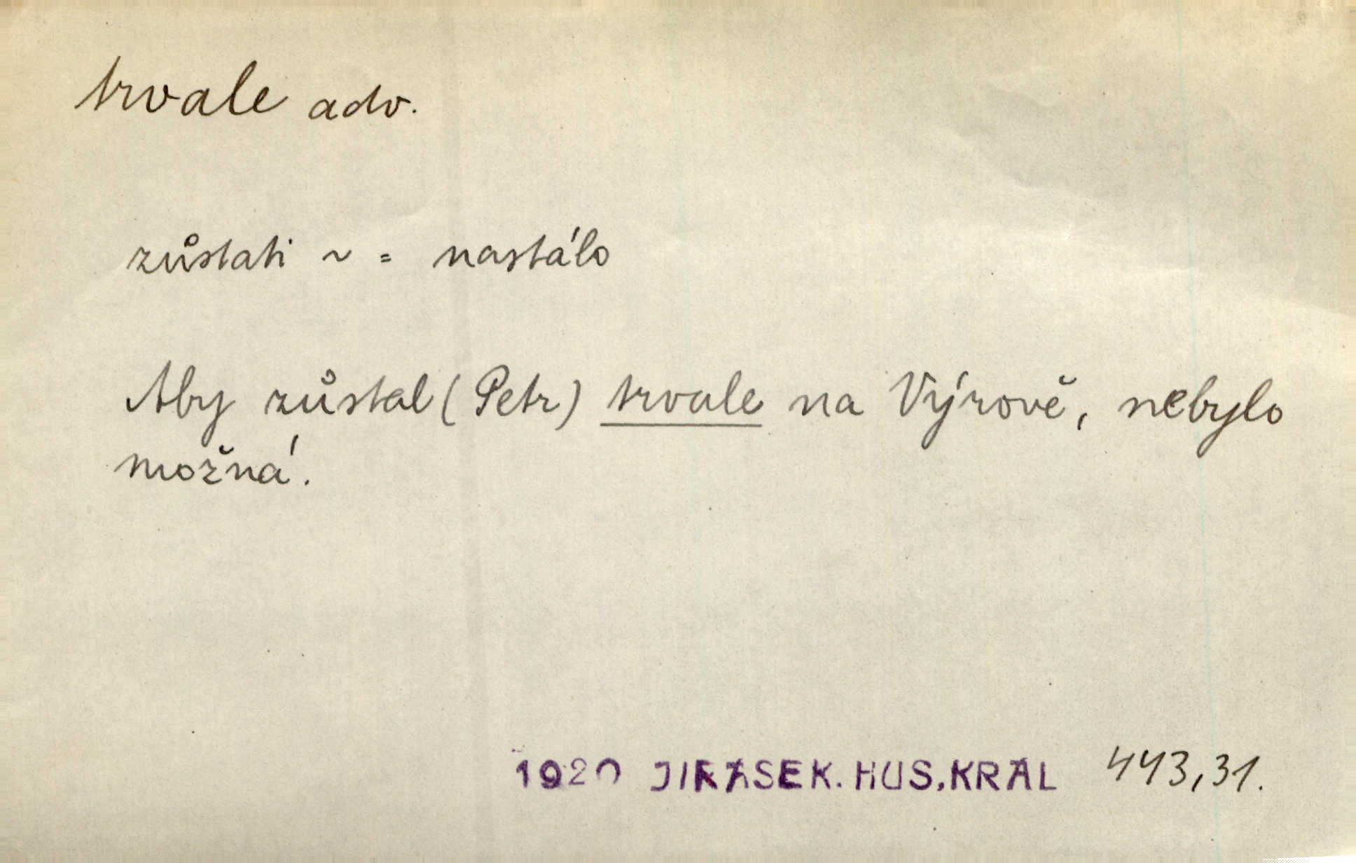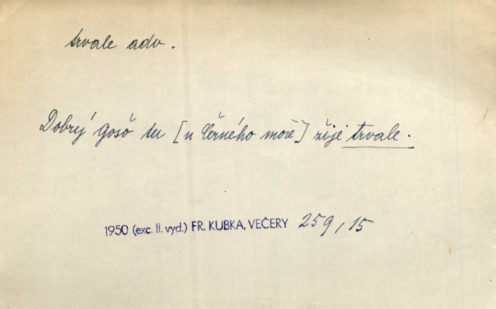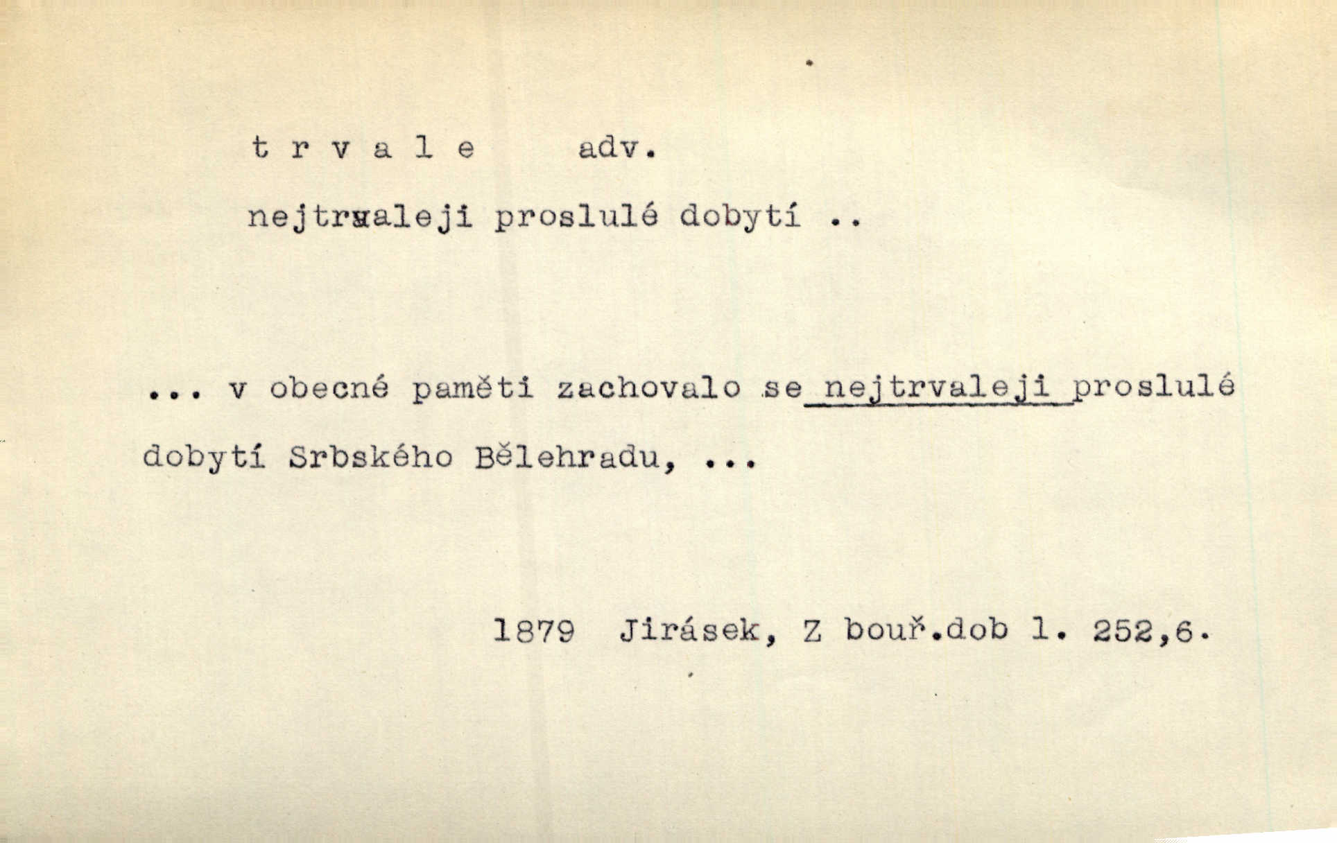 - trvale adv. k trvalý. Jen člověk klidný, nevášnivý může býti trvale šťastným ustavičně. Arb. [Leconte de Lisle] trvale usadil se v Paříži natrvalo. Vrch. Soudcové z povolání jsou na svá místa ustanovováni vždy trvale. Ústava.