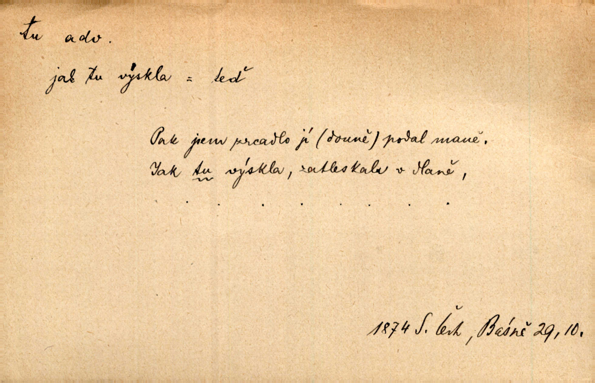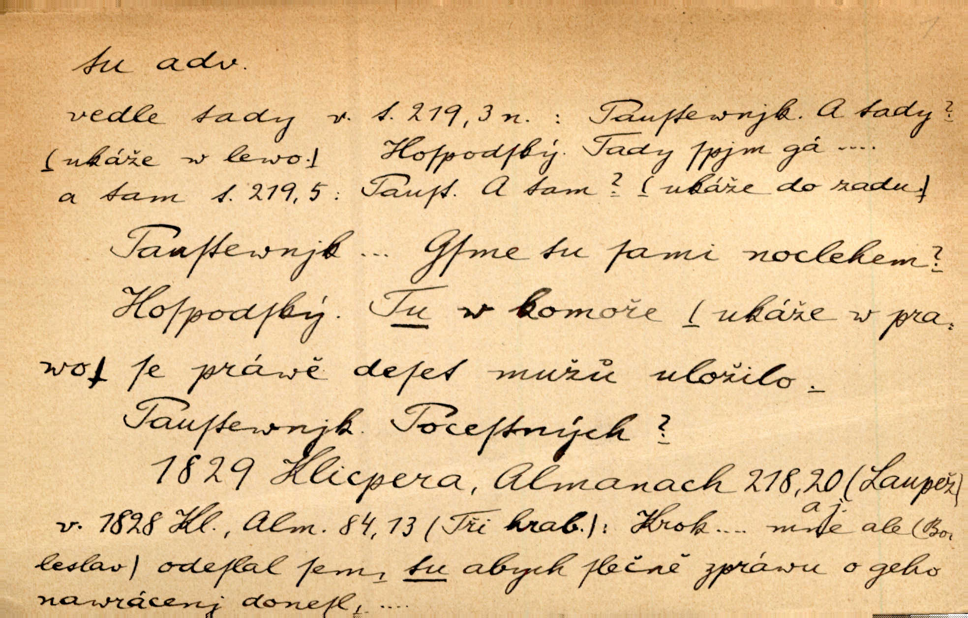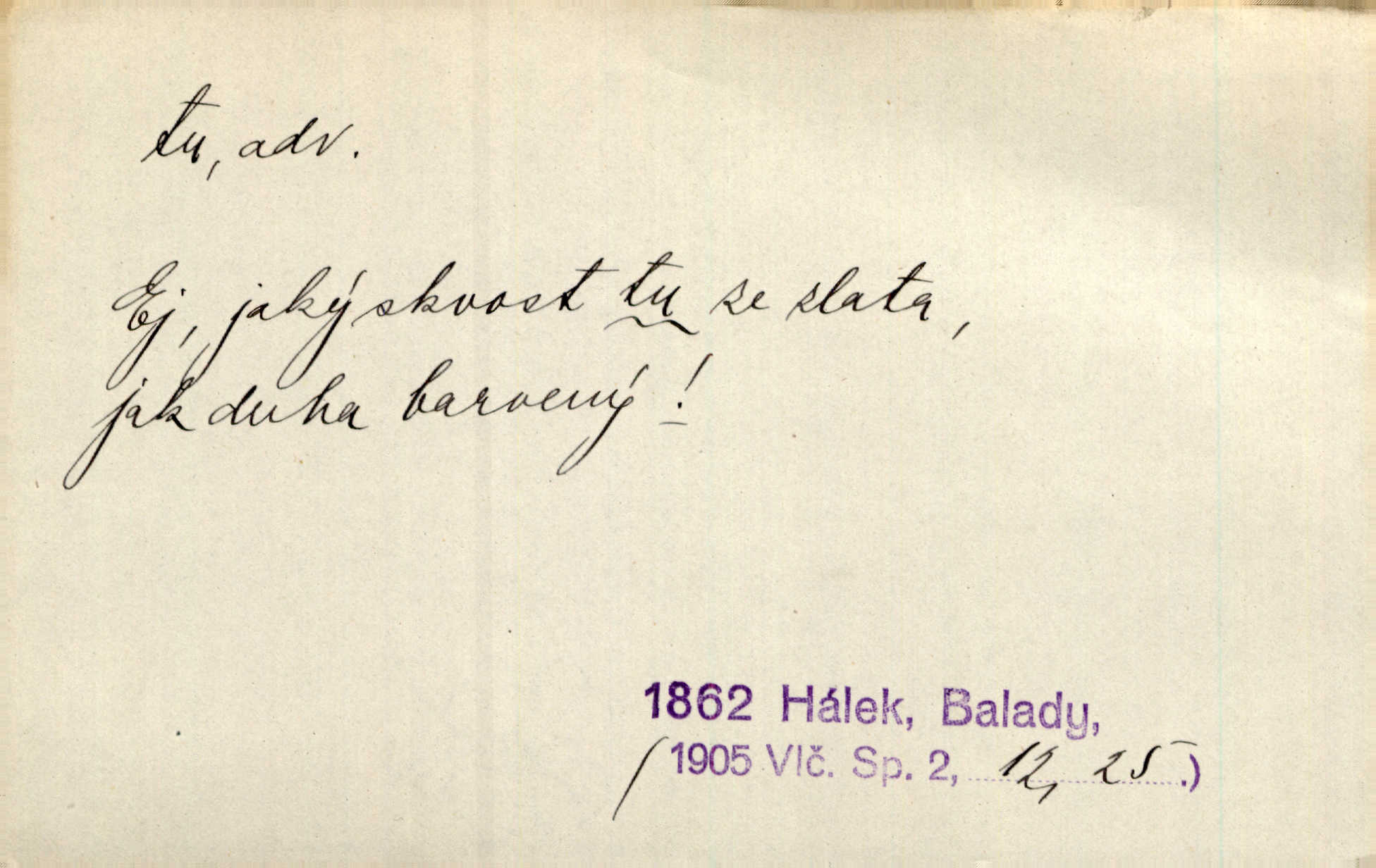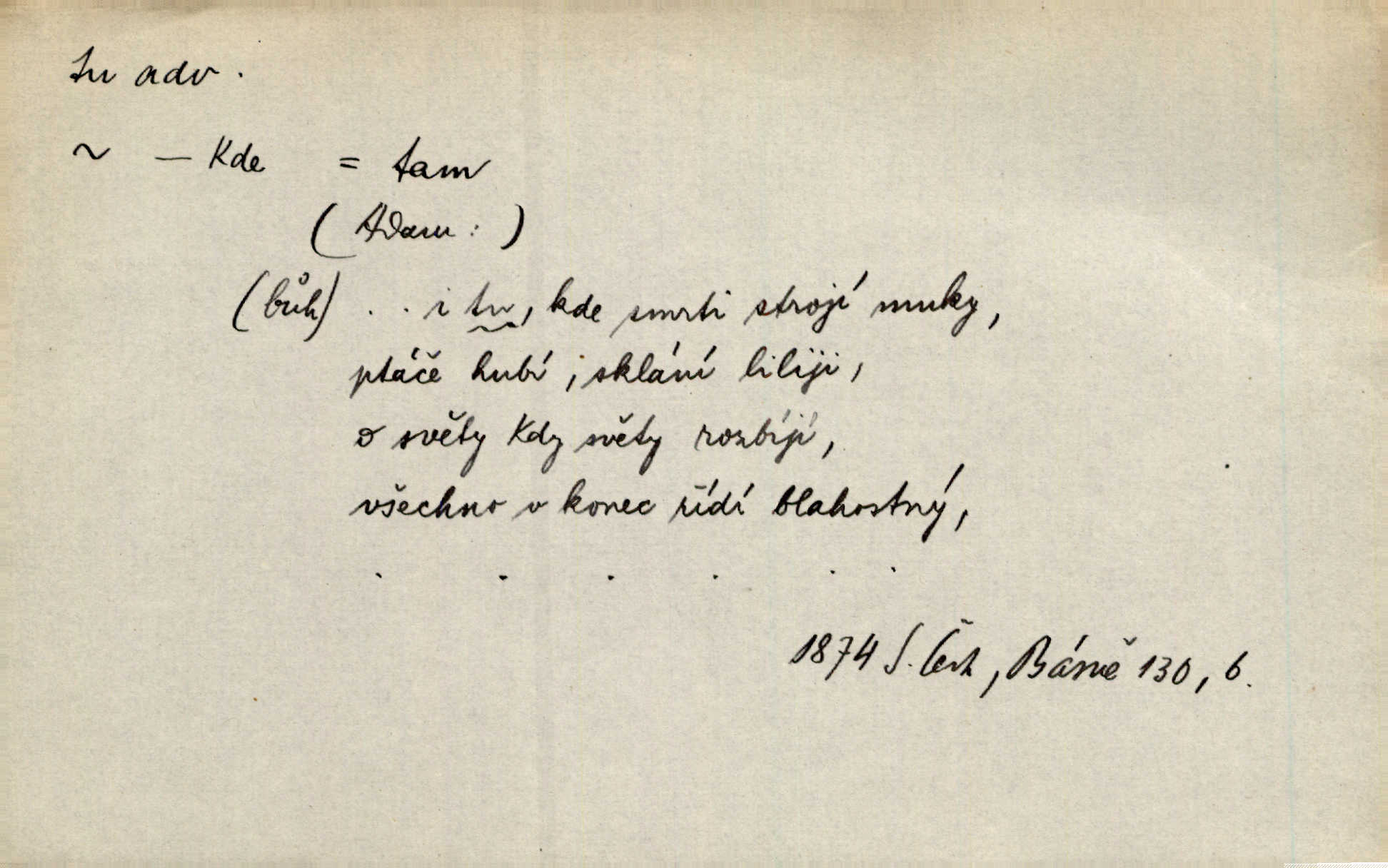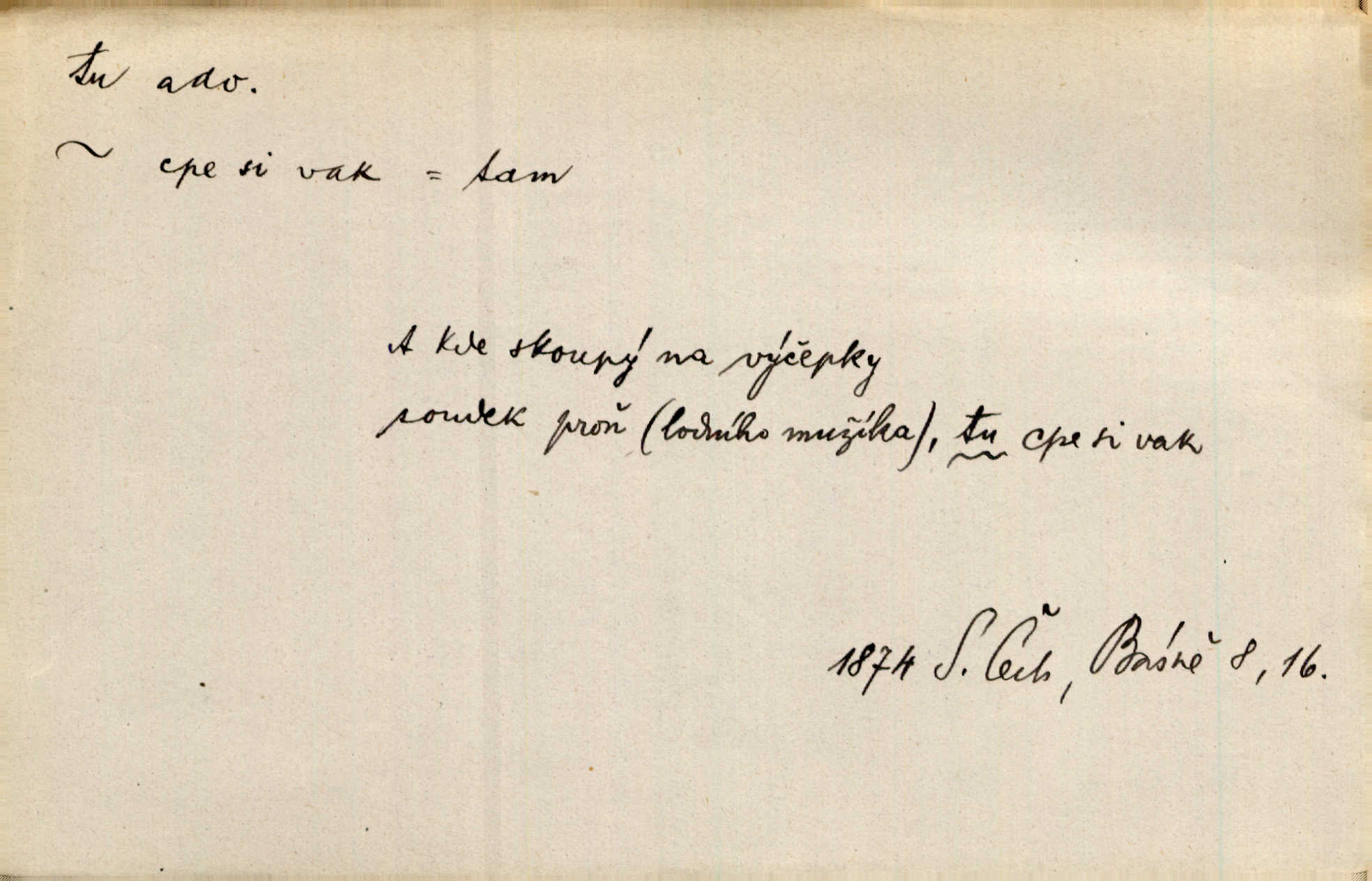- tu adv. vyjadřující určité místo, na něž se zprav. ukazuje n. odkazuje; zde, na tomto místě. Stará šla a za chvíli tu byla s večeří. Herrm. Tu dole stojí kmotr Nuccio. Zey. Čejč také tím bohatl, že tu vedla silnice z Uher k Brnu. Herb. Je bez místa, a je tu rodina má rodinu. Jir. „Tu je má ruka, Zázvore.“ odvětil Brok, tiskna mu pravici. Štol. „Tu máte, poslíčku — za cestu —“ a podávala mu celý desetník. Baar. „Už je dávno na věčnosti a já jsem ještě tu,“ vzdychla stařenka na tomto světě, na zemi. Něm. Sáhl do torby, aby vytáhl Palečka i peníze, ale nastojte, — torba jako sklo — kde nic, tu nic! Něm. Proč pak si bral takovou ženskou kde nic tu nic? úplně chudou, bez prostředků. Rais. Kde se vzal, tu se vzal, stojí náhle před Cimburou voják. Baar. Tu a tam bylo vidět u silnice osyku. Jir. Pracoval tu i tam za chasníka. Šmil. Nikde nebylo viděti človíčka, jen tu tam poskakoval vrabec. Herrm. Leda že se ohlédl po stádu krav a koz, nebo po ovcích v houfu, tu větším, tam menším. Jir. Pole ta bez stromů, většinou rovná a jen tu onde stoupající mírnou vlnou, tratila se na obzoru. Jir. D Expr. v některých spojeních (tu máš! a j.) vyjadřuje podiv, překvapení. Myslel jsem, že budeš jako plnoletý moudřejší, ale tu máš čerte kropáč, bylo to čím dál tím horší. Čap. Ch. Přiběhlo na roh ulice a — tu máš! Stál tam pan strážník. Mateříd. Myslil si, že bude mít děvče radost, zatím tu máš! Zastihne nevěstu v objetí vlastního bratra. Svět. D Dial. na toto místo, v tato místa, sem. Oni prajeli — že stě hevaj. — Ja sem tu šel. Nor. D vyjadřuje čas: v té chvíli, v tom okamžiku, tehdy, „Bratr je ženat, a víte také, že švakrová —“ tu ustala a pohlédla na mne tázavě. Šim. Okamžik nechtělo se jaksi nikomu dovnitř. Tu se sebral Vácslav a vkročil mužně. Ner. Leda když viděl přicházeti vrchního, tu ovšem skočil na nohy. Herb. Tu se na Josefa i všelijaká nectnost ukázala. Mistr doslýchal, že se tu a tam opil někdy. Prav. Domácnost i polní hospodářství spravovala Evička s čeládkou, on jen tu a tam svou vůli projevil občas. Svět. Musí děvče kolikrát za den běžet tu na pole, tu na trávu. Něm. Tu zpozoruje, že mi schází knoflík na zimníku, tu že mám odtržené poutko. Šim. Šla pal po mně, obracel mne tu tváří k zemi, tu na znak, klekal mi tu prsa, tu na záda. Čech. Expr. Než to po těch harantech všecko uklidím a srovnám, máte tu konec července. Šim. Když blížila se volba do obecního výboru, jakého tu bylo běhání. Šmil.