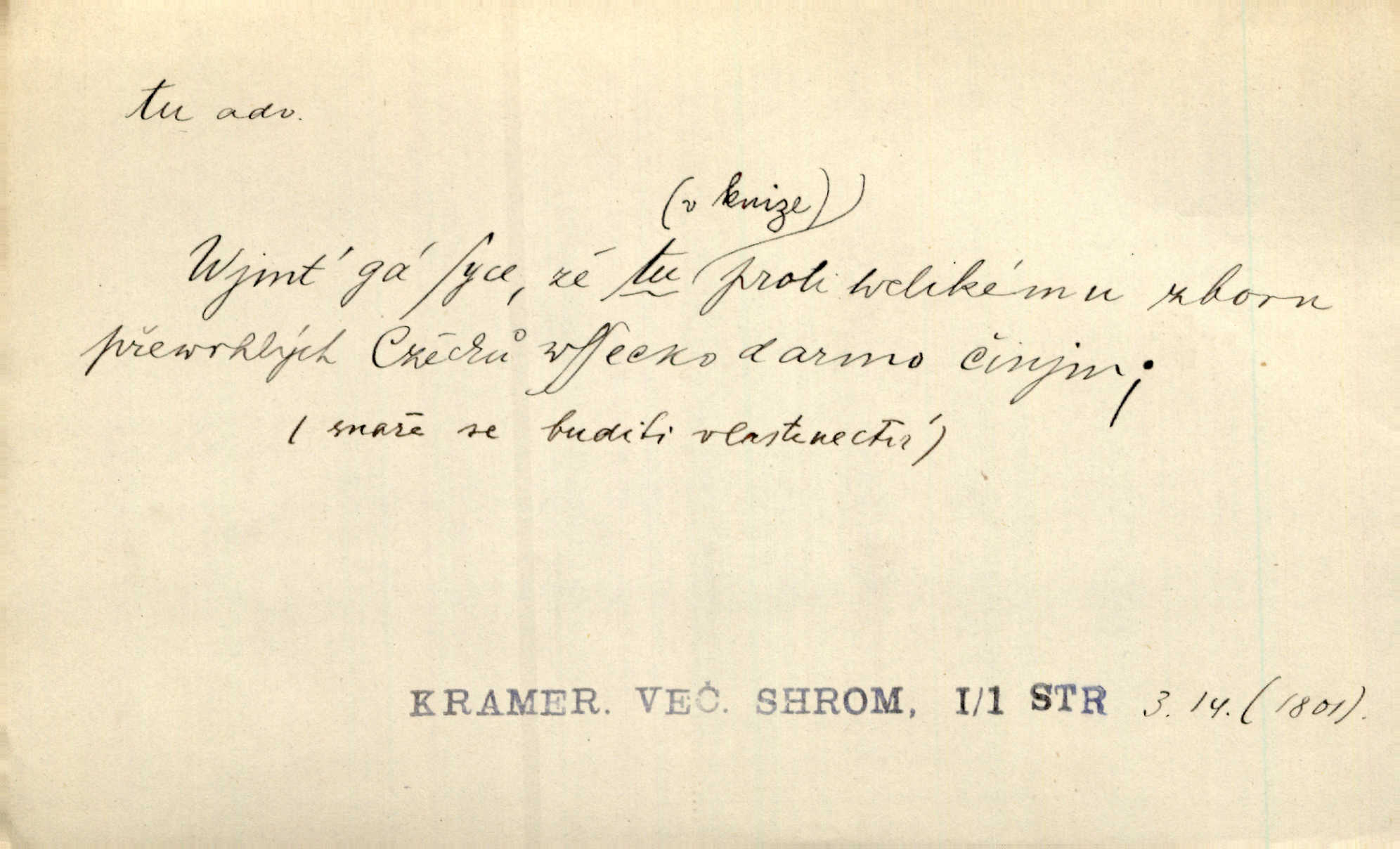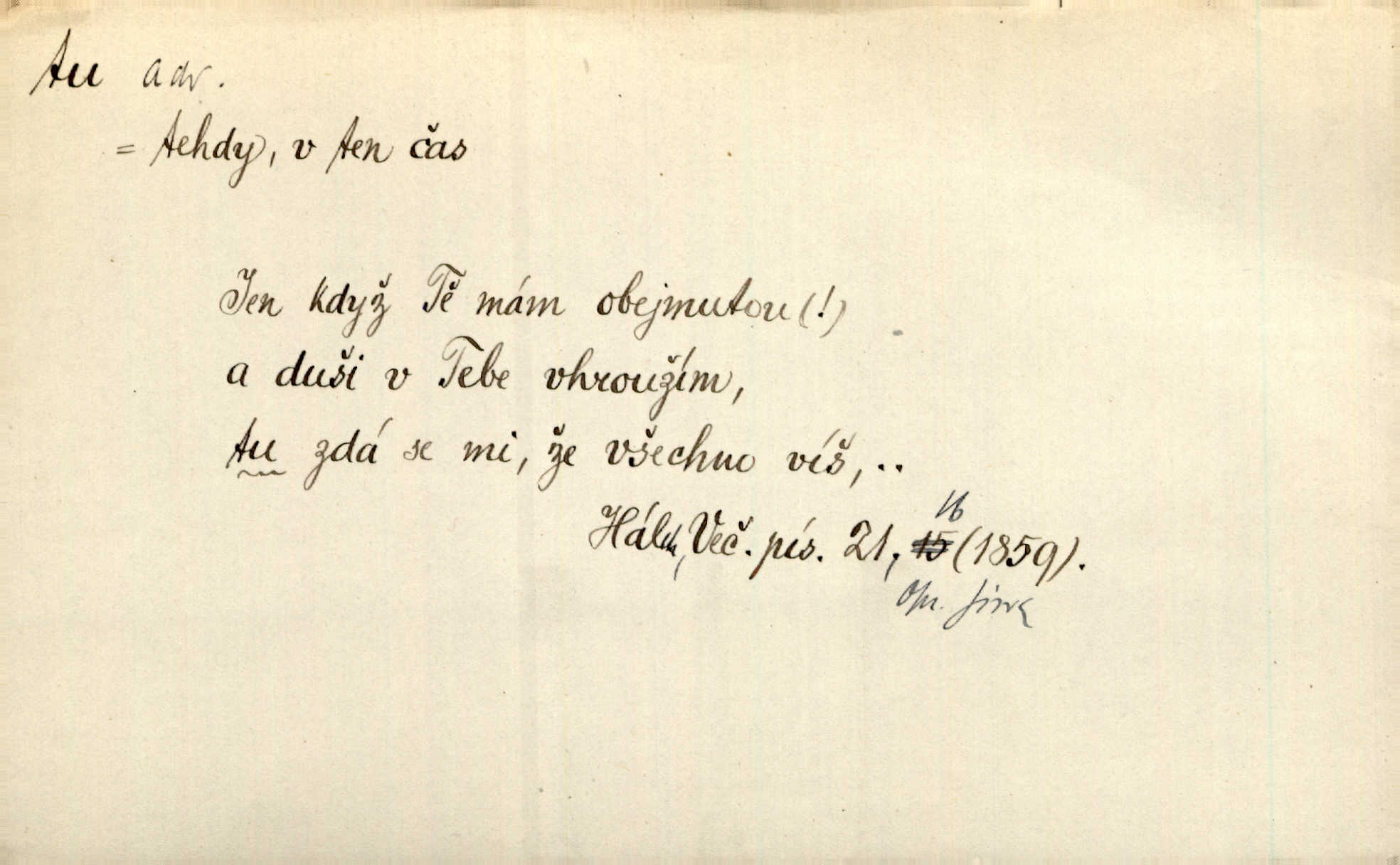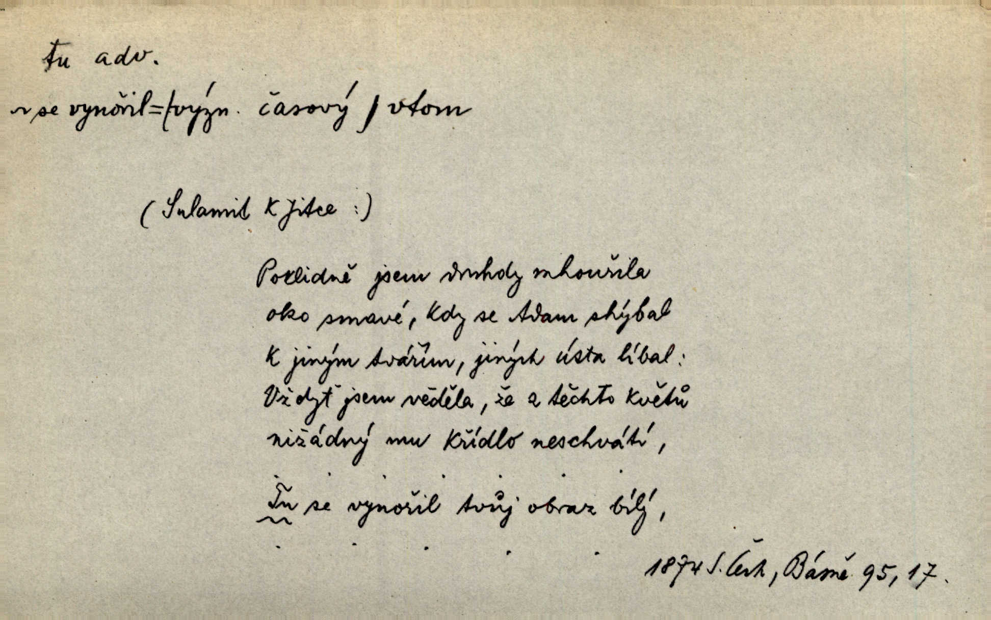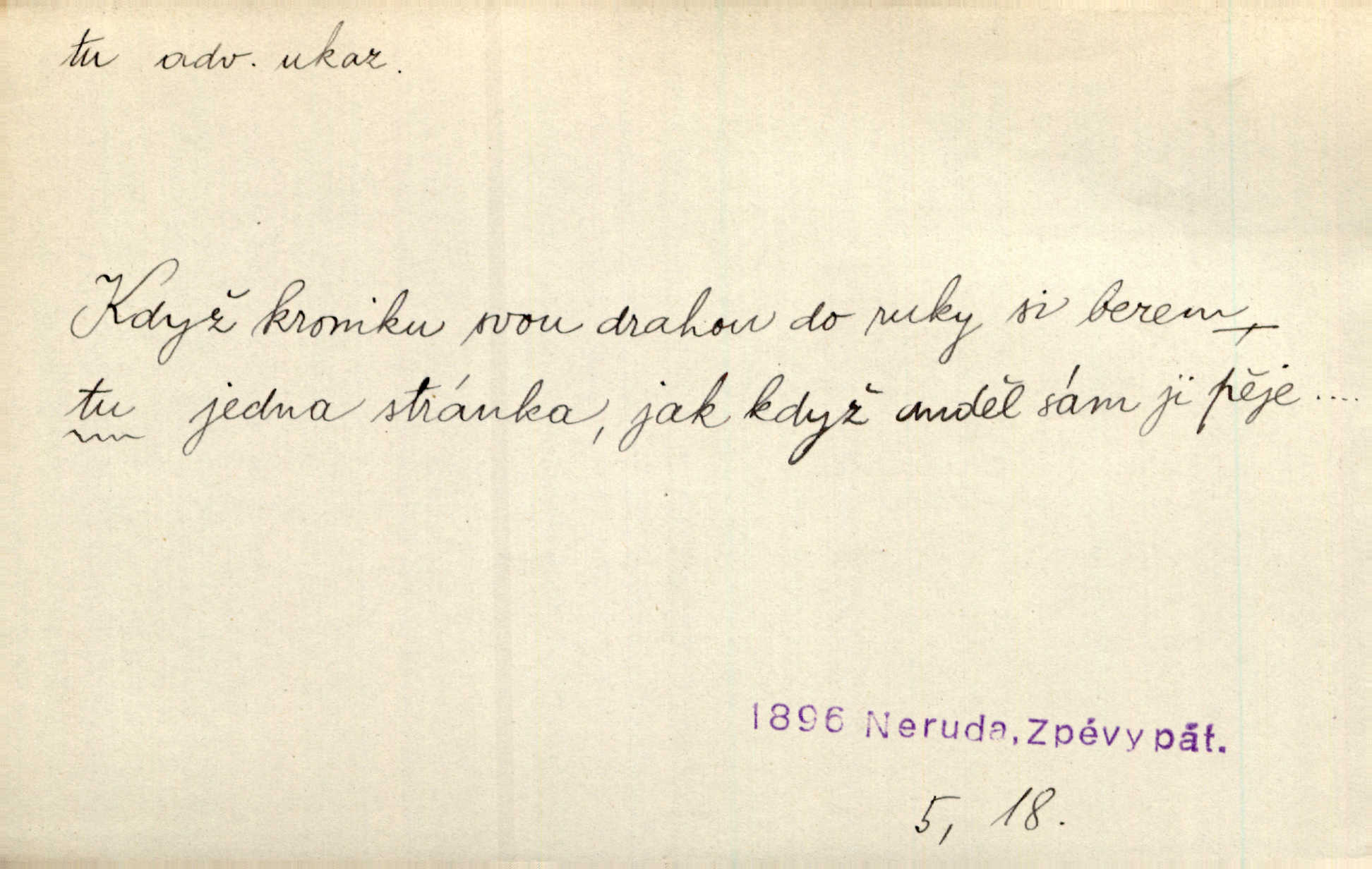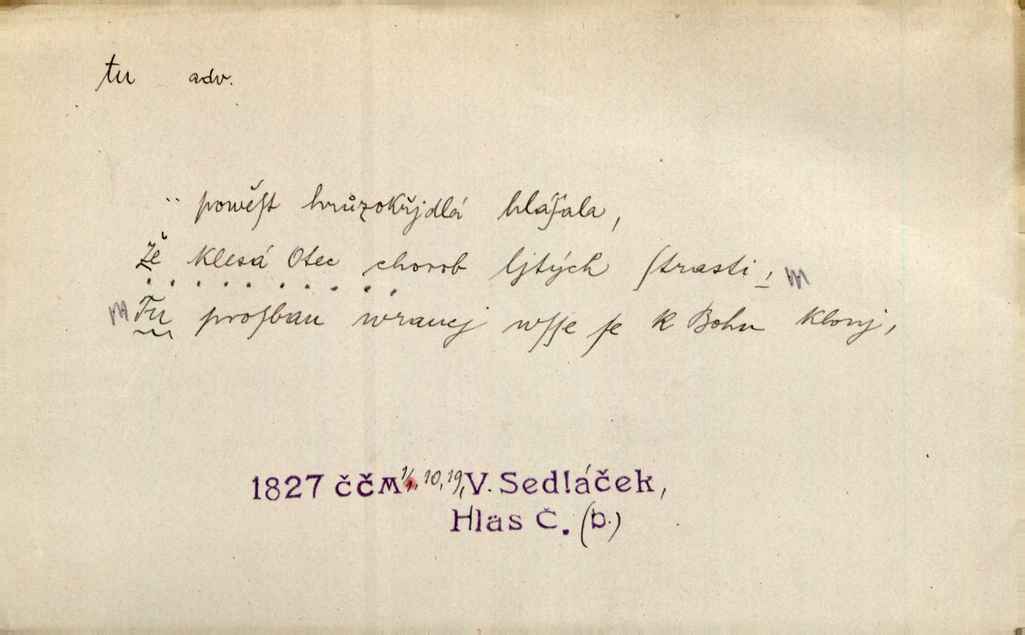 - tu adv. vyjadřující určité místo, na něž se zprav. ukazuje n. odkazuje; zde, na tomto místě. Stará šla a za chvíli tu byla s večeří. Herrm. Tu dole stojí kmotr Nuccio. Zey. Čejč také tím bohatl, že tu vedla silnice z Uher k Brnu. Herb. Je bez místa, a je tu rodina má rodinu. Jir. „Tu je má ruka, Zázvore.“ odvětil Brok, tiskna mu pravici. Štol. „Tu máte, poslíčku — za cestu —“ a podávala mu celý desetník. Baar. „Už je dávno na věčnosti a já jsem ještě tu,“ vzdychla stařenka na tomto světě, na zemi. Něm. Sáhl do torby, aby vytáhl Palečka i peníze, ale nastojte, — torba jako sklo — kde nic, tu nic! Něm. Proč pak si bral takovou ženskou kde nic tu nic? úplně chudou, bez prostředků. Rais. Kde se vzal, tu se vzal, stojí náhle před Cimburou voják. Baar. Tu a tam bylo vidět u silnice osyku. Jir. Pracoval tu i tam za chasníka. Šmil. Nikde nebylo viděti človíčka, jen tu tam poskakoval vrabec. Herrm. Leda že se ohlédl po stádu krav a koz, nebo po ovcích v houfu, tu větším, tam menším. Jir. Pole ta bez stromů, většinou rovná a jen tu onde stoupající mírnou vlnou, tratila se na obzoru. Jir. D Expr. v některých spojeních (tu máš! a j.) vyjadřuje podiv, překvapení. Myslel jsem, že budeš jako plnoletý moudřejší, ale tu máš čerte kropáč, bylo to čím dál tím horší. Čap. Ch. Přiběhlo na roh ulice a — tu máš! Stál tam pan strážník. Mateříd. Myslil si, že bude mít děvče radost, zatím tu máš! Zastihne nevěstu v objetí vlastního bratra. Svět. D Dial. na toto místo, v tato místa, sem. Oni prajeli — že stě hevaj. — Ja sem tu šel. Nor. D vyjadřuje čas: v té chvíli, v tom okamžiku, tehdy, „Bratr je ženat, a víte také, že švakrová —“ tu ustala a pohlédla na mne tázavě. Šim. Okamžik nechtělo se jaksi nikomu dovnitř. Tu se sebral Vácslav a vkročil mužně. Ner. Leda když viděl přicházeti vrchního, tu ovšem skočil na nohy. Herb. Tu se na Josefa i všelijaká nectnost ukázala. Mistr doslýchal, že se tu a tam opil někdy. Prav. Domácnost i polní hospodářství spravovala Evička s čeládkou, on jen tu a tam svou vůli projevil občas. Svět. Musí děvče kolikrát za den běžet tu na pole, tu na trávu. Něm. Tu zpozoruje, že mi schází knoflík na zimníku, tu že mám odtržené poutko. Šim. Šla pal po mně, obracel mne tu tváří k zemi, tu na znak, klekal mi tu prsa, tu na záda. Čech. Expr. Než to po těch harantech všecko uklidím a srovnám, máte tu konec července. Šim. Když blížila se volba do obecního výboru, jakého tu bylo běhání. Šmil.