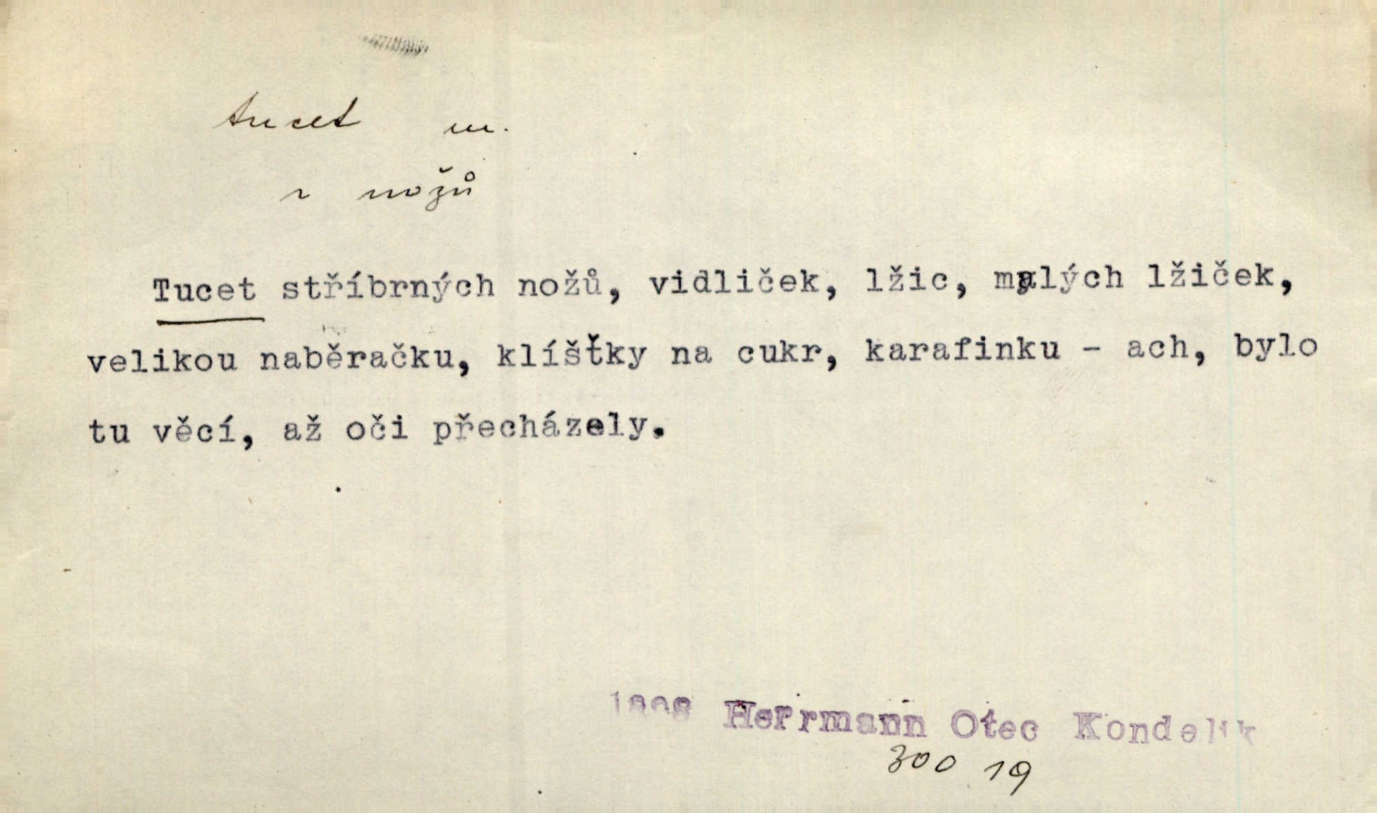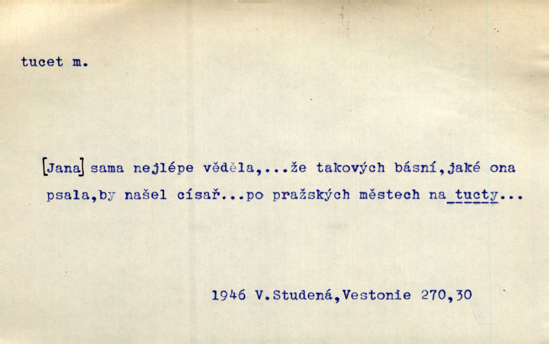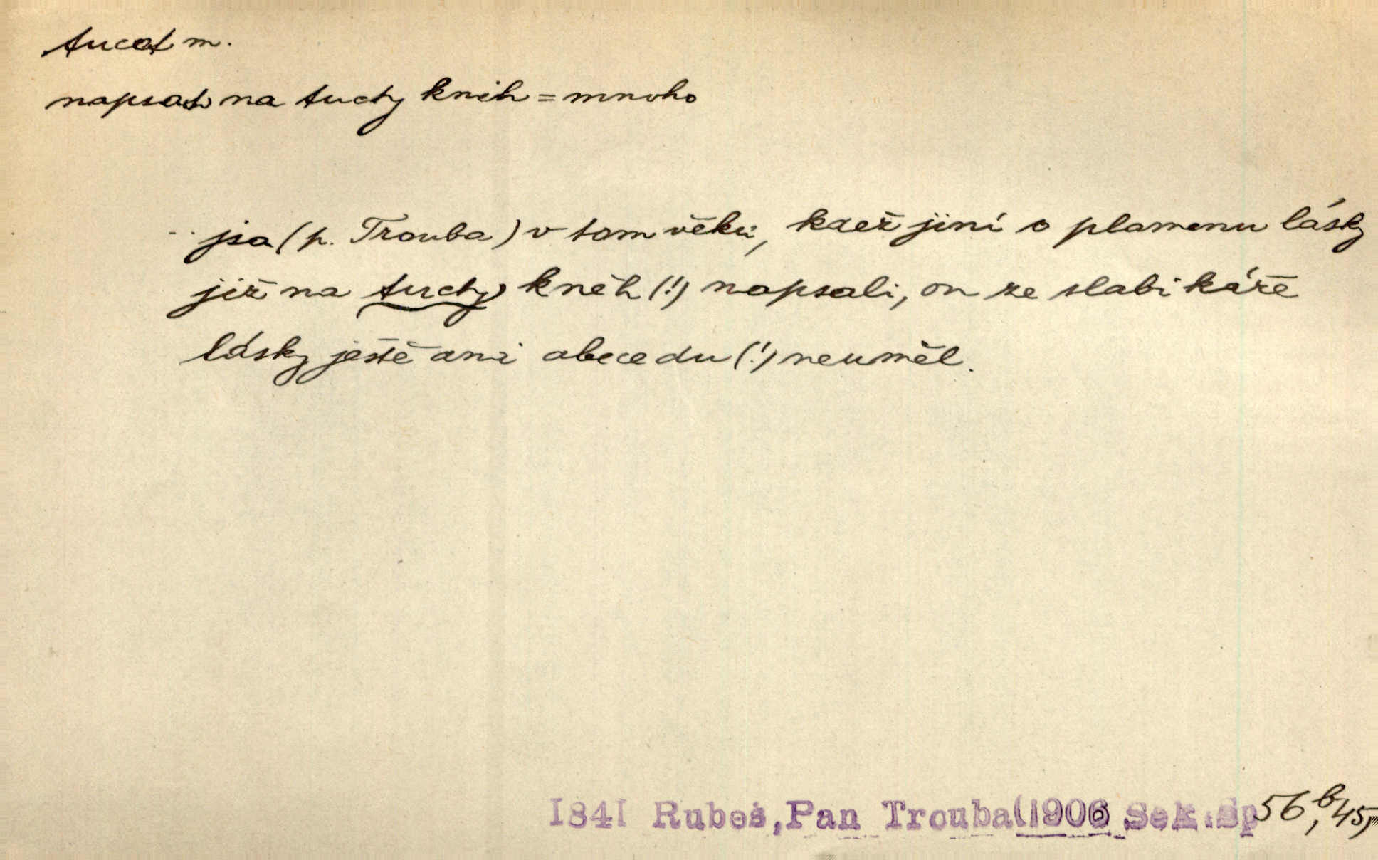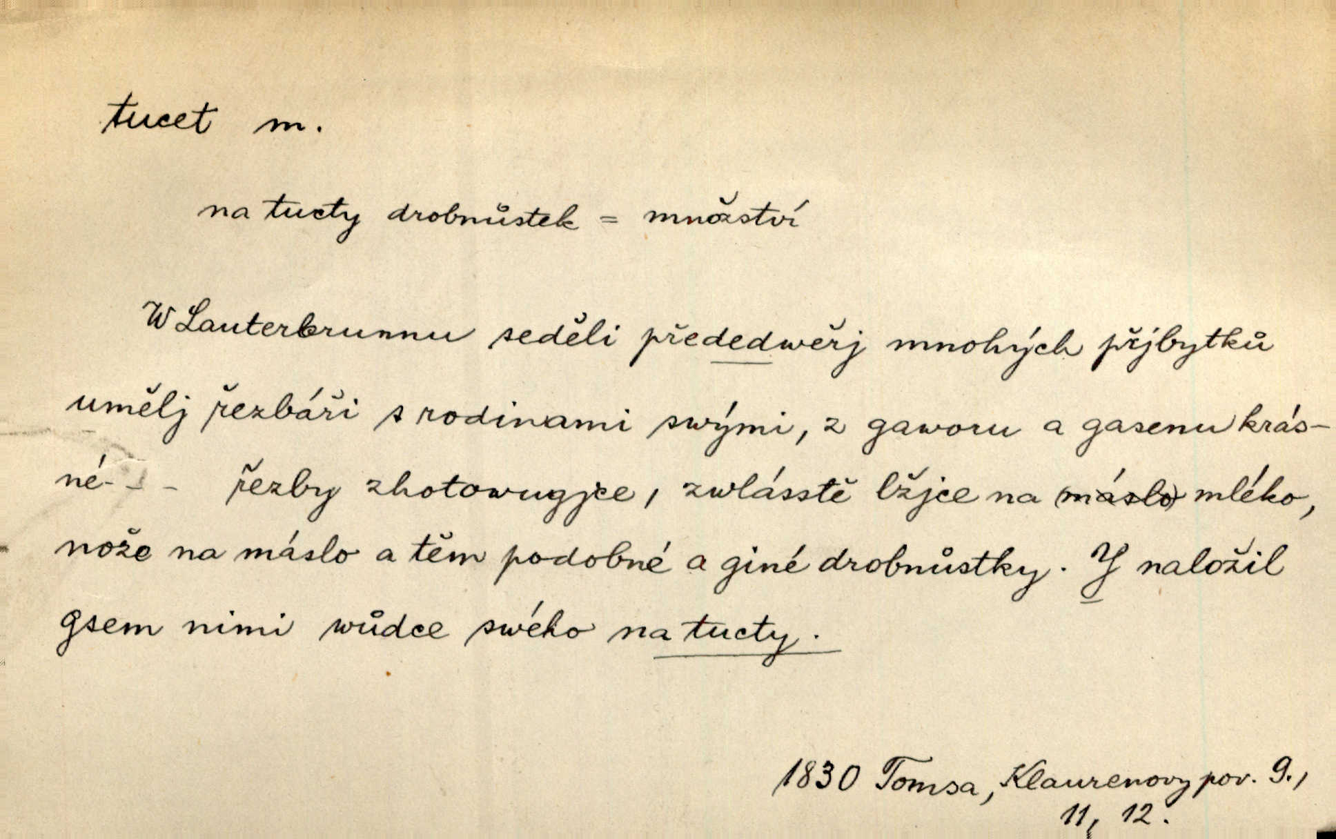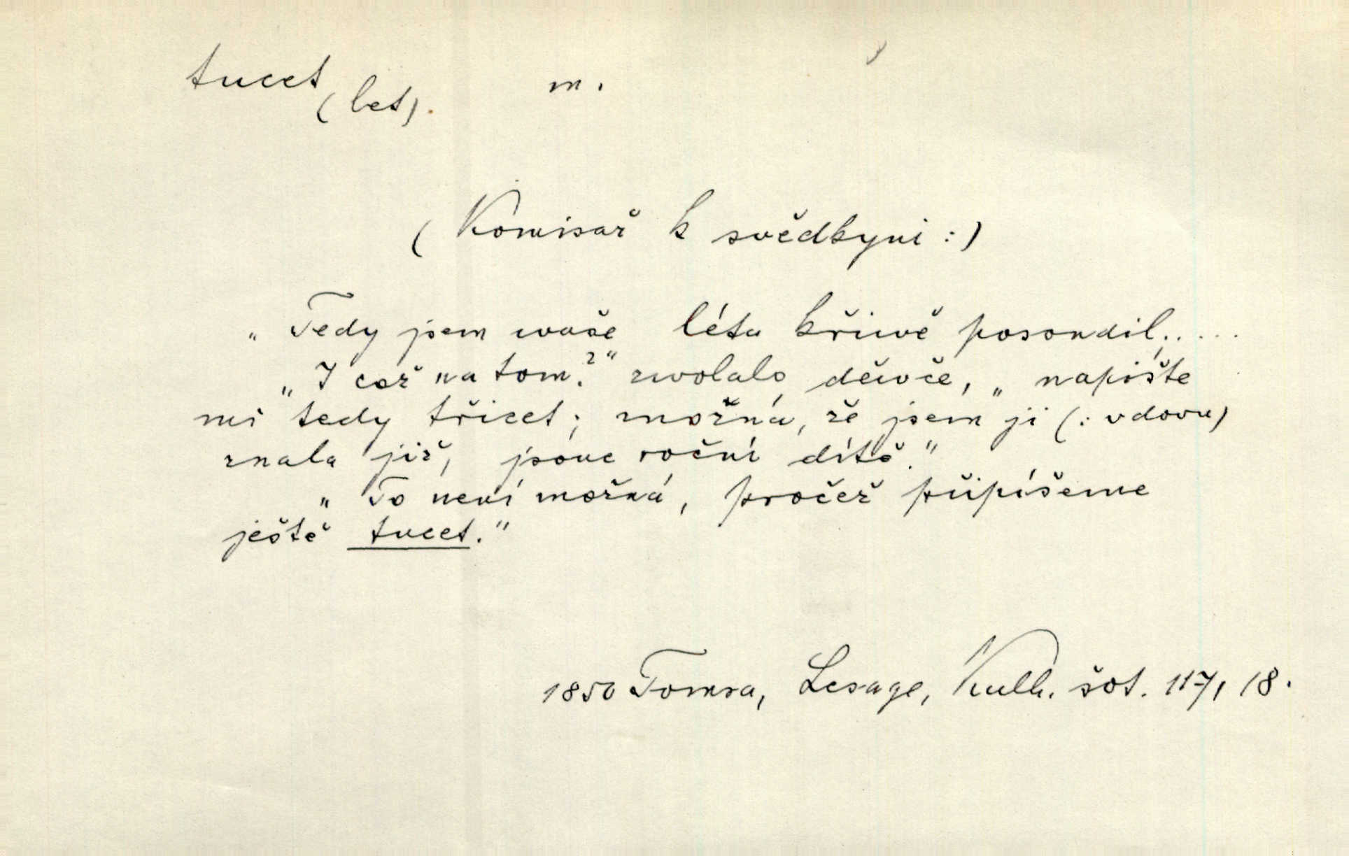 - tucet, -ctu m. dvanáct předmětů téhož druhu. Tucet stříbrných nožů, vidliček, lžic, klíšťky na cukr. Herrm. Přidáno bylo tucet dětských kšandiček a šest párů střevíců. A. Mrš. Babička dostala půl tuctu šňůr na kolovrat „jarmarku“. Něm. Umějí-li dohromady tucet cizích slov, dívají se na nás jako páv z kalenice. Třeb. Lípa byl člověk, jakých dvanáct vejde na tucet tuctový, všední. Šmil. D Expr. mnoho, množství. Stanislav prostál u okna celý den a tiskl němě celé tucty soucítících ruk. R. Svob. Zde seznal tucet umělkyň na vlas jako ona krásných. Podl. Kníže Egon zná tucet kavalírů, kteří by na jeho místě Petruškou byli u vytržení. Hol.