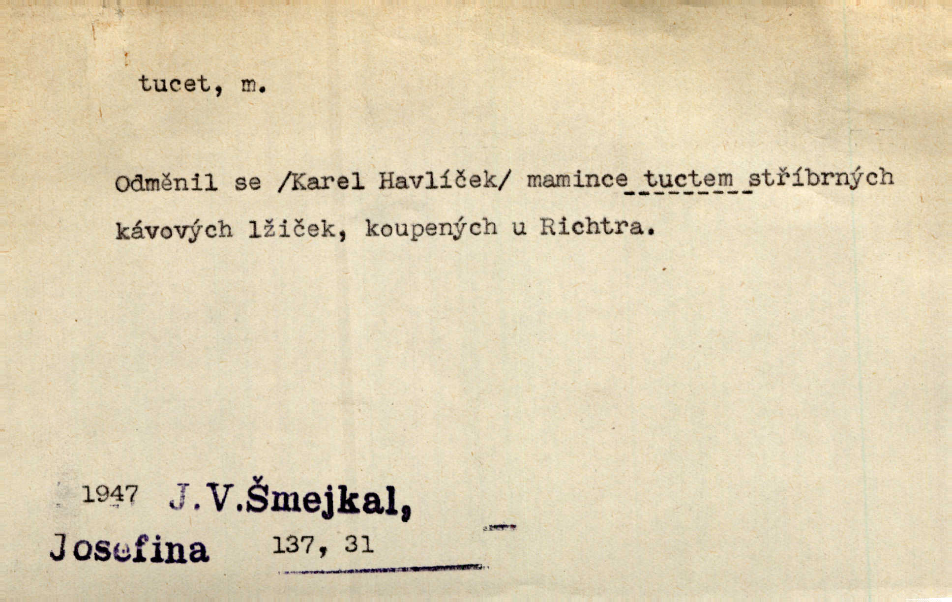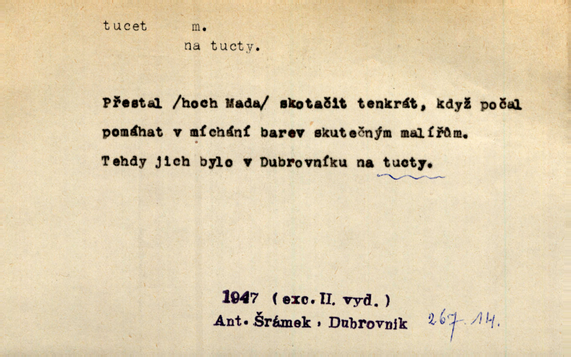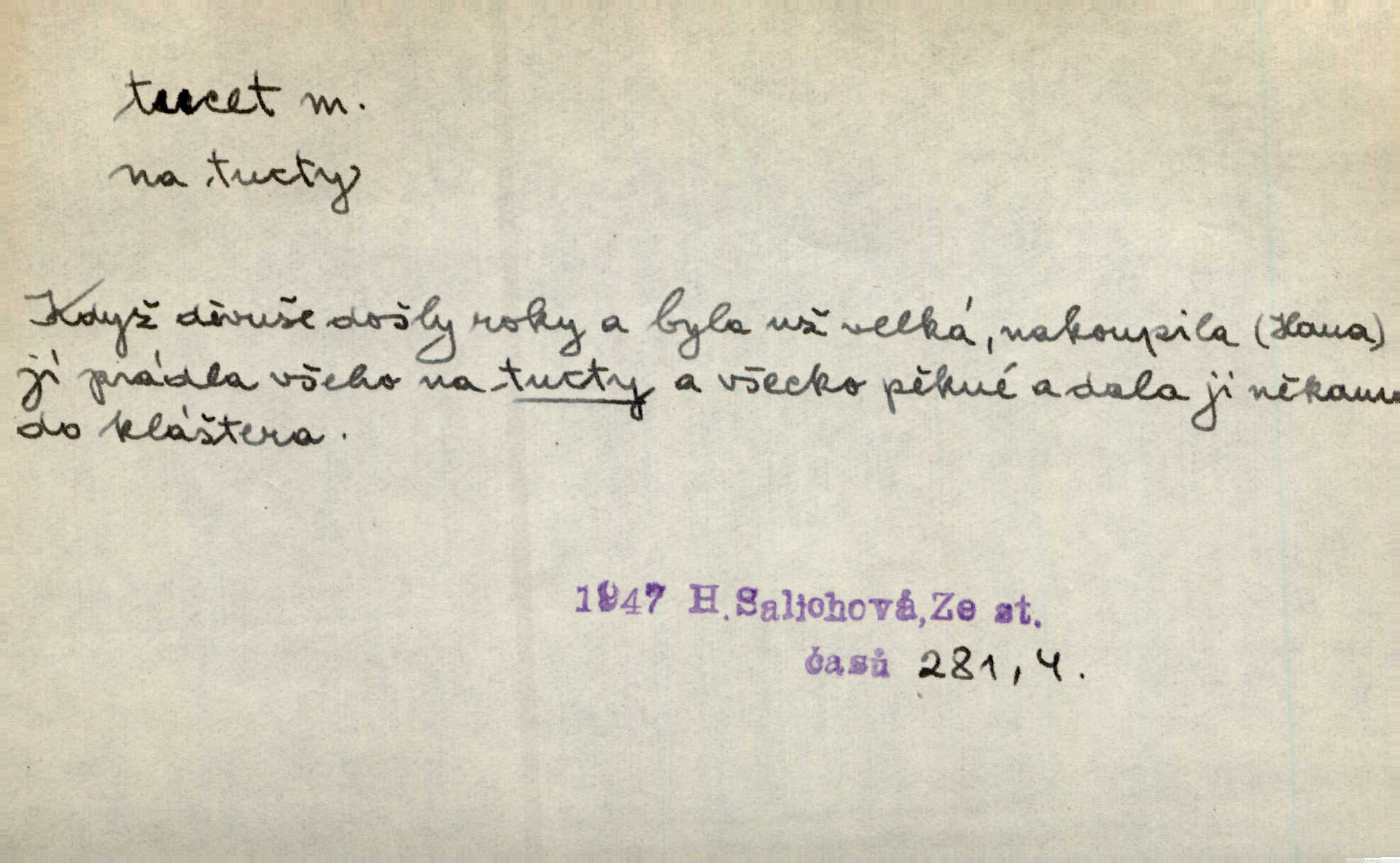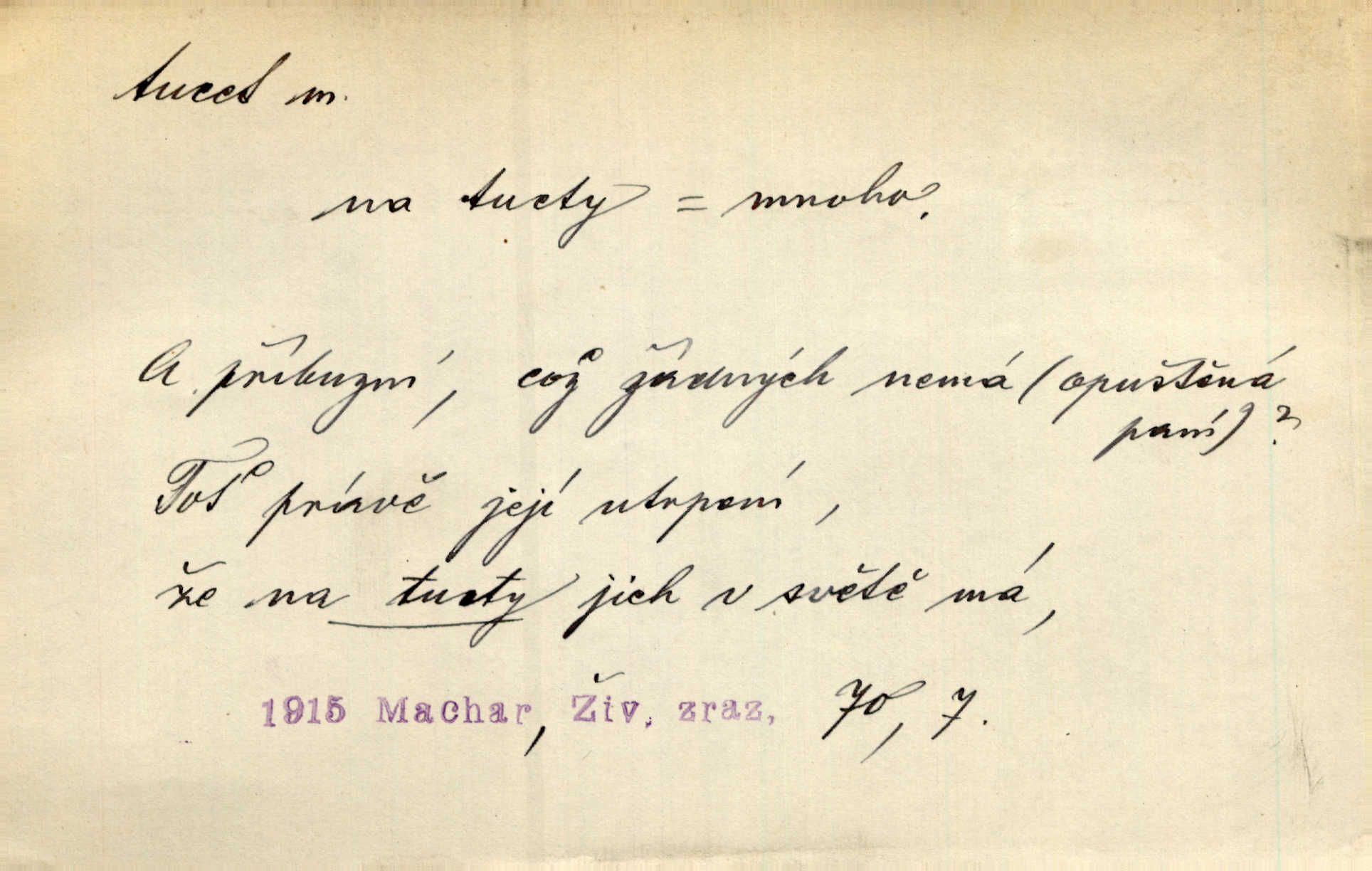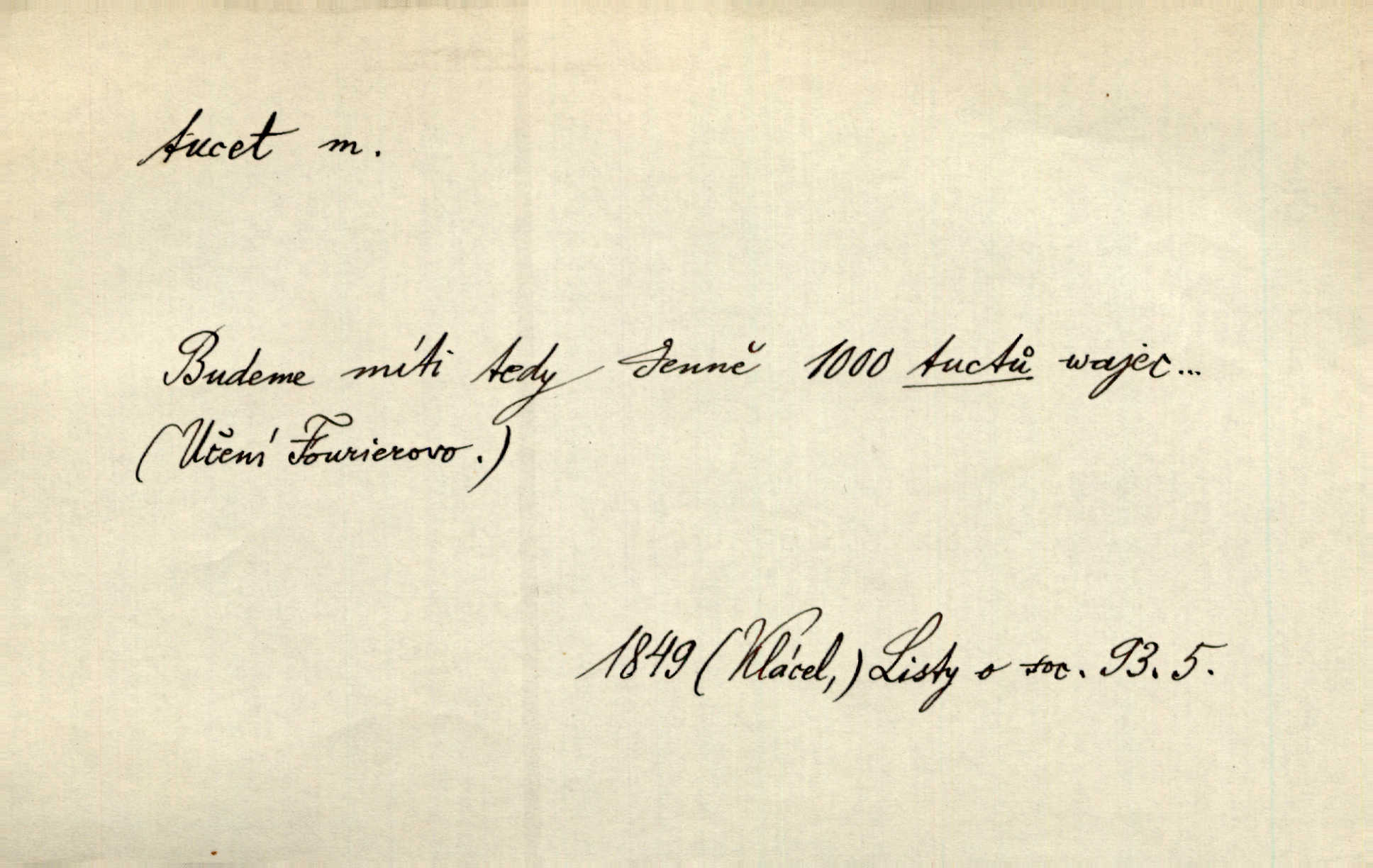 - tucet, -ctu m. dvanáct předmětů téhož druhu. Tucet stříbrných nožů, vidliček, lžic, klíšťky na cukr. Herrm. Přidáno bylo tucet dětských kšandiček a šest párů střevíců. A. Mrš. Babička dostala půl tuctu šňůr na kolovrat „jarmarku“. Něm. Umějí-li dohromady tucet cizích slov, dívají se na nás jako páv z kalenice. Třeb. Lípa byl člověk, jakých dvanáct vejde na tucet tuctový, všední. Šmil. D Expr. mnoho, množství. Stanislav prostál u okna celý den a tiskl němě celé tucty soucítících ruk. R. Svob. Zde seznal tucet umělkyň na vlas jako ona krásných. Podl. Kníže Egon zná tucet kavalírů, kteří by na jeho místě Petruškou byli u vytržení. Hol.