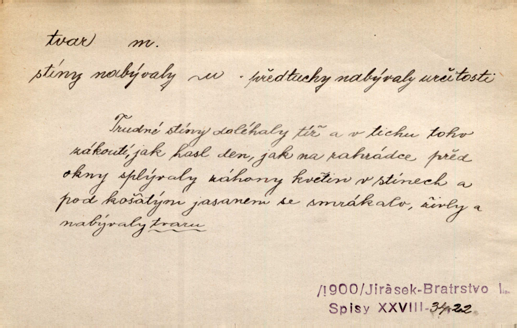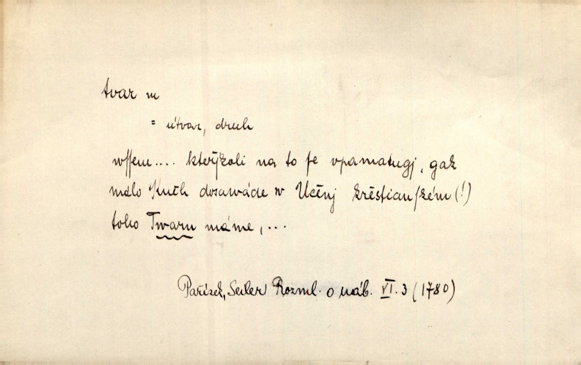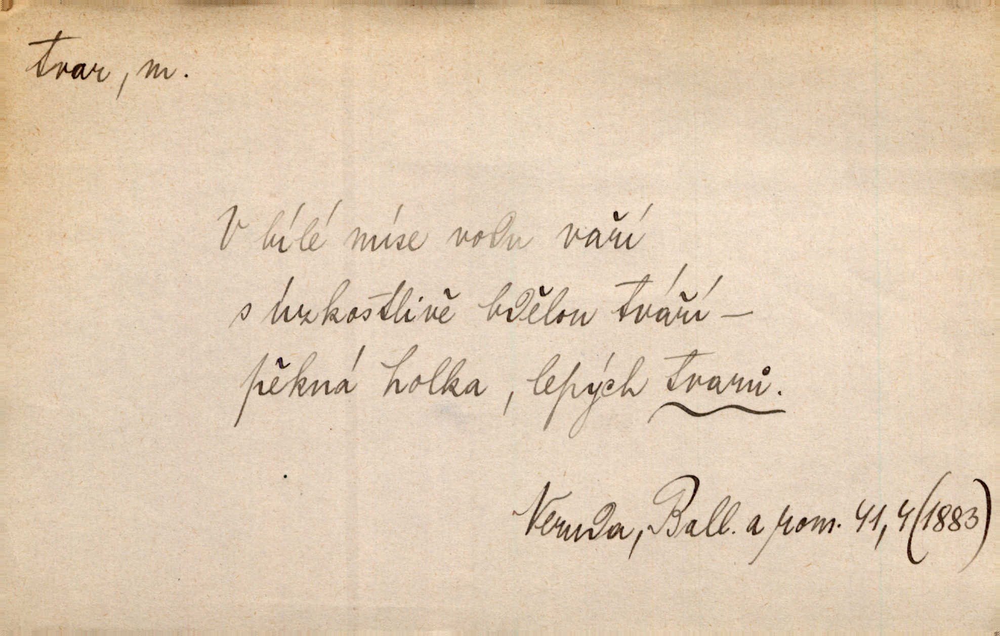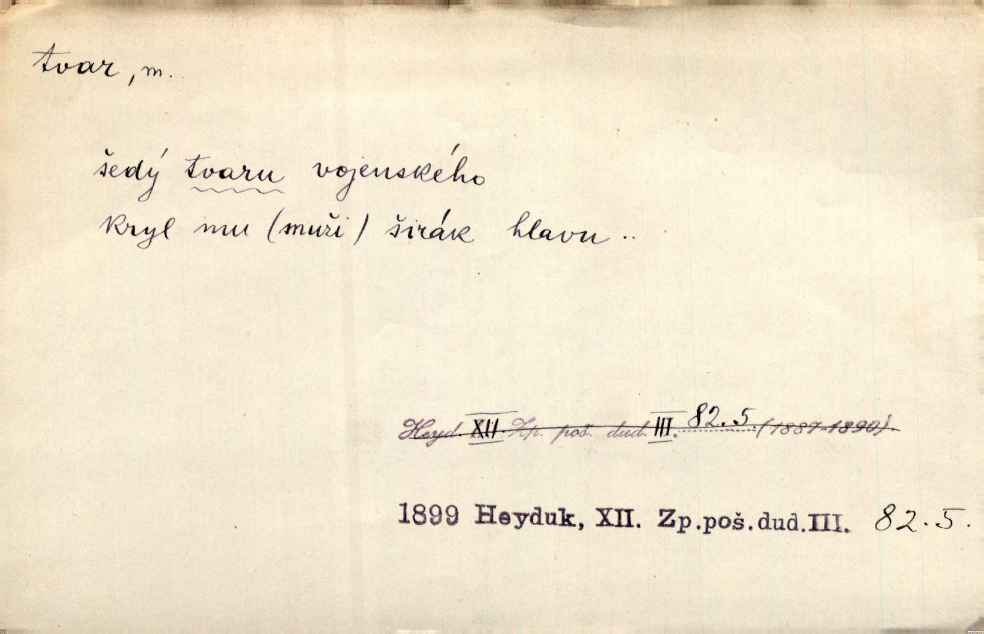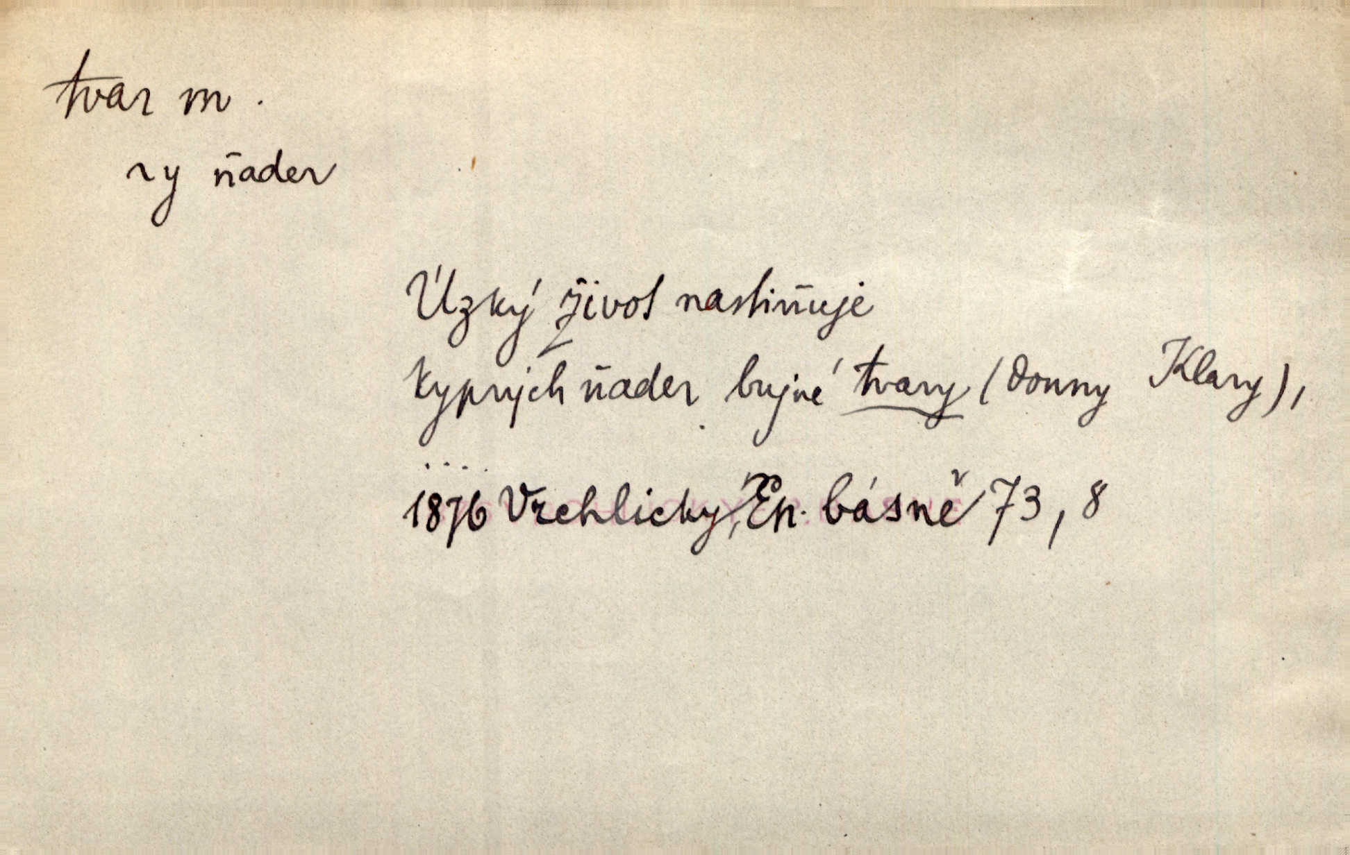 - tvar, -u m. způsob, jakým je plošný obraz n. těleso vymezeno. Původní česká vesnice byla formy okrouhlé a již tvarem svým byla symbolem a výrazem jednoty rodové. Jir. Seděl v lenošce tvaru poněkud starodávného. Herrm. Lámu větévku s nejbližšího keře a ohýbám ji ve tvar věnce. Lit. noviny. Zvláště tvar nosu a malých úst dojímal pozorovatele. Ner. Nad vlnamí páry se vznášely a kolem dědin rozkládaly běloučký svůj tvar. V. Mrš. Geom. forma. Kryst. tvar jednoduchý, štěpený a j. Zem. tvar (povrchu zemského) destrukční, strukturní, tektonický a j. Zahr. zákrsek (stromek) uměle tvarovaný. Voj. seskupování vojínů n. vojenských jednotek podle určitého pořádku. Tvar bojový, nástupový, bočný, čelní, pochodový a p. Tech. aerodynamický tvar (vozidla, letadla). D tvary (tělesné) proporce, rozměry, vnější vzhled. Na prahu sýpky stálo děvče postavy vysoké, plných tvarů. Jan. Prsa jejich [tanečnic] byla pokryta penězi tvořícími jakýs pohyblivý, vděkuplně k tvarům přiléhající pancíř. Zey. Na oblačných štítech, vozech, koních obrovské se mužů kreslí tvary. Čech. Mě takým činí [Athéna]‚ jak přeje si, jednak žebráka tvar mi dávajíc, jednak i muže mladého zas. Vaň. Vidím ten rozum vzácný, vznešený — všechen ten tvar a vzlhled mladistvé krásy. J. J. Kol. [Máť mrtvých] stvořila jí [duši pěvcově] příbytek ve tvaru slavíka. Zey. Biol. tvar normální, abnormální, chorobný. D ráz, způsob. Používá [tělesná výchova] pro všechny cvičence celé řady různých druhů a tvarů vrhů a hodů. Vojta. Známost Jaroslavova se slečnou Rosou nabývala nyní barvitého tvaru. Hál. Byl si předsevzal, že bude „sloužiti člověčenstvu“ a mlhavý ten pojem vzal náhle na se tvar určitý. Zey. Rodiče jsou povinni objevit svému dítěti tvar životní, který pokládají za vrcholný. R. Svob. Mat. vnější podoba nějakého algebraického výrazu, forma. D gramatická podoba slova. Básníka překvapilo slovo „říci“ jako z úst baletky neočekávaný tvar. Čap. Ch. Gram. obměněná podoba slova mající mluvnický význam; slovesné tvary určité a neurčité; tvary jednoduché a složité, opsané; tvary jmenné a složené (přídavného jména). D uspořádání všech složek i částí uměleckého díla. Tvar uměleckého díla, jeho důsledné dopracování a domýšlení, je předním příznakem díla opravdu uměleckého. Muk. Symbolisté kladli důraz na tvar jako na cosi absolutního. Muk. Je to zajímavý doklad uměleckého tvaru, v němž dominantní složkou je obraz a slovo jen složkou průvodní. Havr. D Psych. v idealistické psychologii tvarové nesoučtový celek, jehož celostní charakter není podmíněn komponenty.