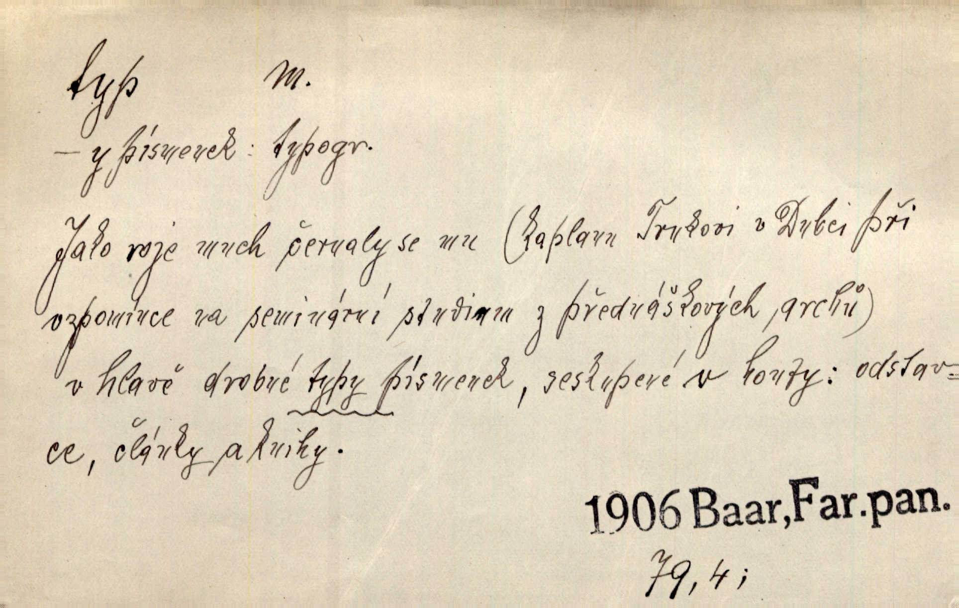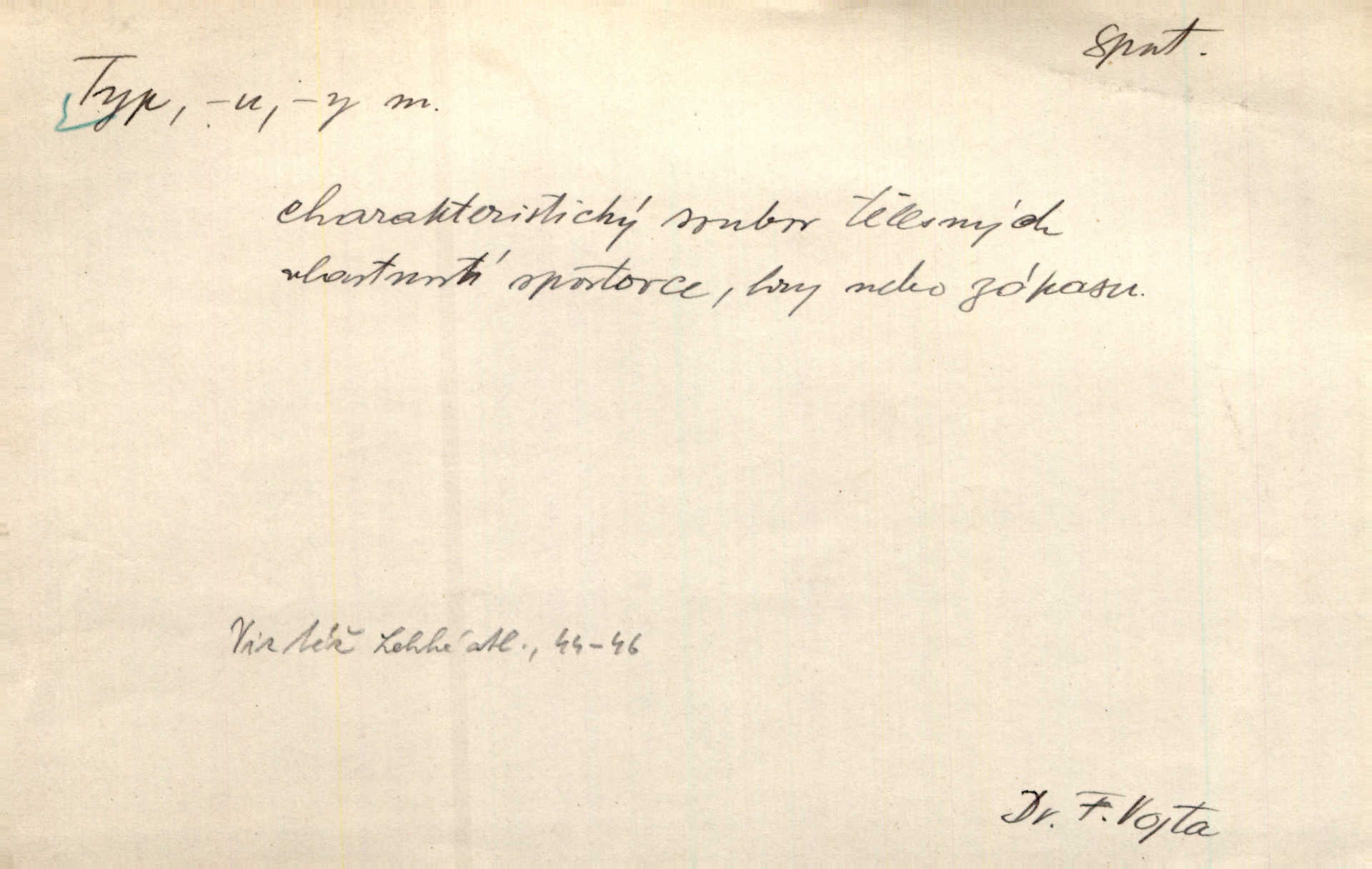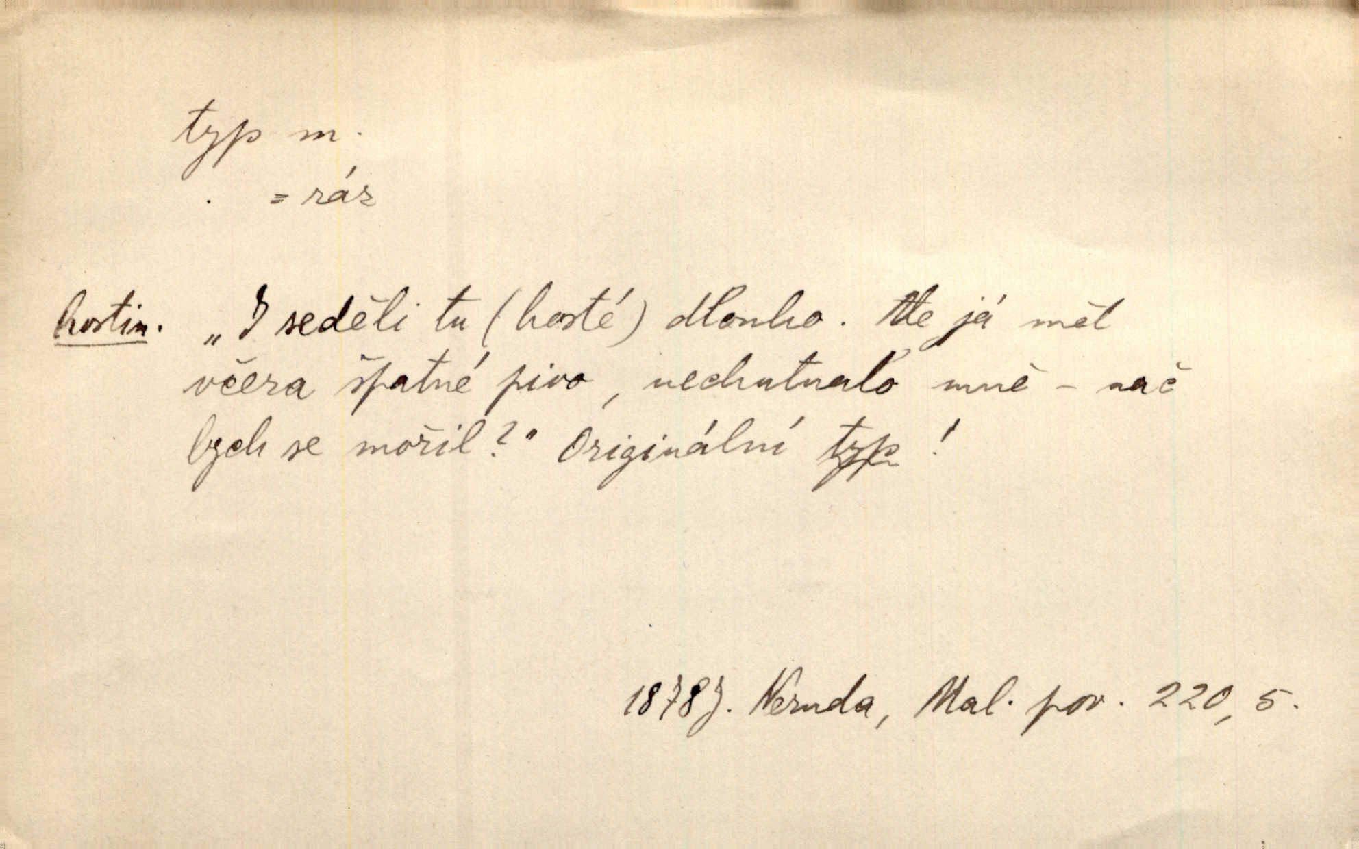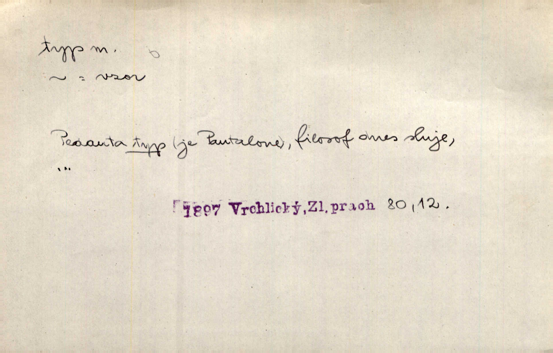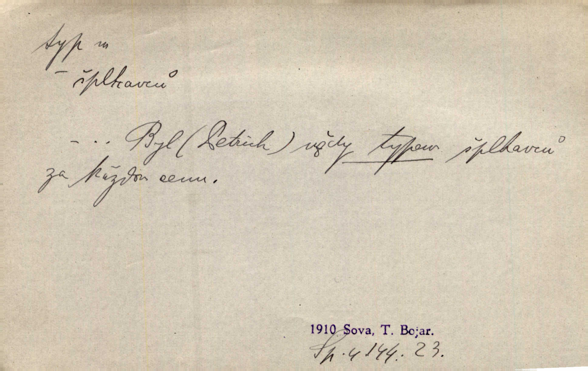 - typ, -u (zř. a zast. typus, -pu) m. vzor, příklad, zvl. postava soustreďující na sobě charakteristické vlastnosti celé skupiny lidí; ustálená představa o někom n. o něčem, obraz, ideál. Dělnická třída zřizuje nový typ státu — socialistický sovětský stát. Dějiny VKS(b)-J. Proch. Ricardovo učení nám ukazuje nemilosrdně celou anglickou buržoasii, která sama je zase typem moderní buržoasie. Marx-Blochová. Kdo by neviděl český typ v dobrém člověku B. Němcové, tak překrásně vylíčeném? Z. Nej. To [Brumovčák] je typ zatvrzelého, nedůvěřivého sedláka. Herb. Nebyl to [drátař] romanticky zidealisovaný typ, ale dobrý, nezkažený člověk. Šlej. Hledajíc mezi lidem tamějším typy, v nichž by se mravný, náboženský a socialní ráz doby jejich nejjasněji zobrazil, zpomněla jsem si ovšem na onu vdovu. Svět. Z houslistů nejvíce slynul dřevičský učitel Morávek, typ starého kantora. Jir. Ve vlastenectví rostl v nás čistě náš národně čestný typ a není vinou ideje, že se v polou vývoje zvrhl v typ odporný. V. Mrš. On [Michelangelo] zavrhl i všechny běžné typy náboženské. Ner. Elis, statný padesátník. V masce ustálený typ malířský. Šim. Byla zkrátka jeho typ. Schein. Přenesla svoji lásku a vášeň na svůj „typ“‚ který dostala na fotografii. Mah. Kramerius stvořil typ populární dobré češtiny knihové. J. Vlč. Za těchto mých hradeckých let ustálil se typ hladké čamary s ležatým límcem model. Jir. Filos. základní tvar, který má jisté podstatné znaky, společné všem členům nějaké skupiny, typus. Člen takové skupiny (jedinec n. věc), u kterého se všechny tyto znaky zřetelně projevují, pravzor, vzor, příklad. Biol. jedinec, který je nejvýstižnějším vzorem své skupiny (druhu, rodu, čeledi a p.) a podle něhož byla popsána, typus. Lit. představitel celého druhu skutečných osob ze života, nositel rysů pro celou onu skupinu společných. Burs. kapit. stálý vzorek zastupitelského zboží, uložený na burse. Cenný papír, který si spekulanti vyhlédli za předmět své spekulace a pro který dělají náladu. Sport. tip. D skupina jedinců n. věcí vyznačujících se stejnými základními, charakteristickými znaky, druh. Jakož si pisatel už dříve dovolil o některých typech našich národních promluviti, tak chystá se i dnes mluviti o českých kramářích. Thom. Trochu připomíná šoféra při bláznivé jízdě, a já takový typ nemám ráda. Ben. Estétové typu Anatola France psali o antice jako o zmizelém světu krásy. Lit. noviny. Bylo to ohromné zvíře [pes] typu foundlandského. Čap. Ch. Takové skupině [jevů shodujících se ve vlastnostech podstatných] říkáme druh (species) nebo typ. Chalup. Kdo ručí za to, že zítra se neobjeví epochální vynález, nový „typ“ flinty, děla, náboje? model, tvar. Herrm. Černaly se mu v hlavě drobné typy písmenek, seskupene v houfy: odstavce, články a knihy litery. Baar. Tak bývá zpravidla nominativ doplňkem v ustáleném typu neslovesných vět „mladost — radost“. Ertl. Zavádění nových typů středoškolských děje se jen nařízením. Čes. pol. Přijali jsme [v JZD] provozní řád třetího typu, který podepsali a schválili všichni zemědělci u nás. R. právo. Filol. typ jazyka aglutinační, flexivní a j. Zool. a bot. kmen, typus. Meteor. typ klimatický, podnební vyznačující se jistými společnými znaky bez zřetele k rozdílům způsobeným zeměpisnou šířkou. Typ přímořský, pevninský, horský a j. Pedol. půdní typ půda s vývojově zákonitě uspořádaným průrezem. Tech., výr. výrobek obyč. nějak označený (názvem, číslem, písmenem), který má s jinými výrobky stejně označenými jisté význačné znaky a vlastnosti společné, typa. Typ. čtyřboký pravoúhlý hranol nesoucí na svrchní straně vyvýšený a převrácený obraz písmena, litera; druh písma tištěného, ale i psaného, kresleného. D způsob, ráz, sloh. Vyhnáním menševiků byla vytvořena strana nového typu — strana bolševická. Ml. fronta. Takovýmto předvojem, bojovým štábem dělnické třídy je strana, revoluční strana leninského typu — komunistická strana. R. právo. Přídavná jména na -itý jsou příkladem nového typu tvoření. Havr. Podle celého typu jeviště byl to spolek kočovnický. Řezn. Madonna [strakonického chrámu] náleží dle typu svého do poslední čtvrti 14. století. Světozor. Charaktery [ve „Dvou umělcích“] podrobí se rozdílným změnám přirozeným i neodporujícím předce jejich základnímu typu. Ner. Jako Verdi, Brahms představují hudební typ svého národa, tak zase náš Smetana zní ryze česky. Lit. noviny. D rysy, podoba tváře, zjev, postava člověka vyjádřená tělesnými znaky. Od těch dob, co přišly francouzské gardy až do Moskvy a kozáci do Paříže, spletly se poněkud typy v tvářích evropských národů. Ner. Nosila na odiv přespříliš vyslovený rodový typ, monumentální šeredu zdravím kypící tváře. Čap. Ch. [Někteří slovanští kmenové] ještě slovanský typus čistý zachovali. Havl. Chlapec [Michal] patří k svalovému typu. John. Pro svůj hezký jižní typ se teta Lola líbila důstojníkům. John. Namaloval asi 1000 podobizen, z nichž asi pětina představuje typy maorské. Koř. Svou pečlivě oholenou tváří bez knírů připomínal starodávné typy hrabat. V. Mrš. Obraznost Mikuláškova malovala si postavy vojáků, které se později vytvářily v karakteristické typy vojenské, čistě Alšovské. Herrm. Anthrop. převládající disposice fysická, psychická n. psychofysická, kterou se vyznačuje druh lidí, od ostatních sice přesně ohraničený, ale v svém způsobu stálý. Typ atletický, pyknický, pozornostní, optický a j. typus. Sport. sportovní typ soubor tělesných z