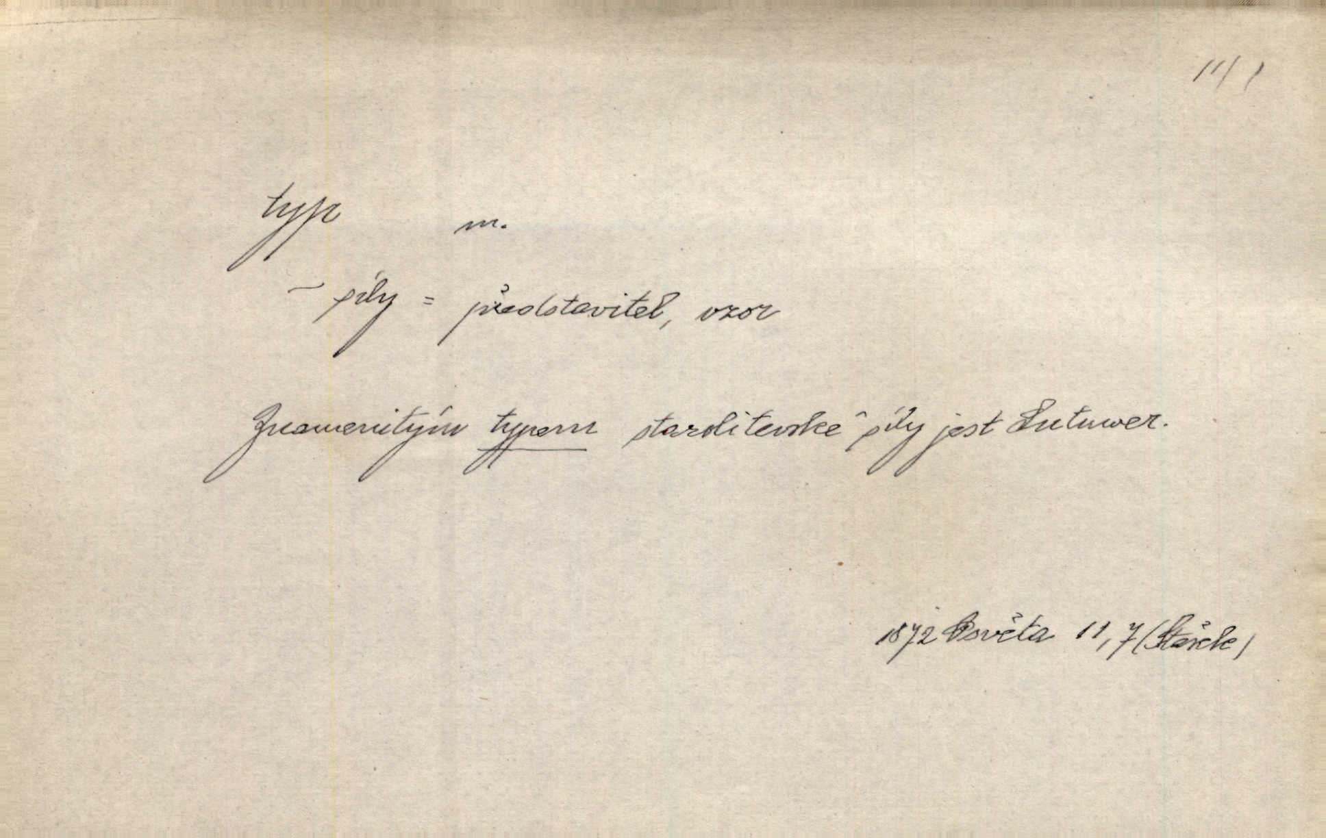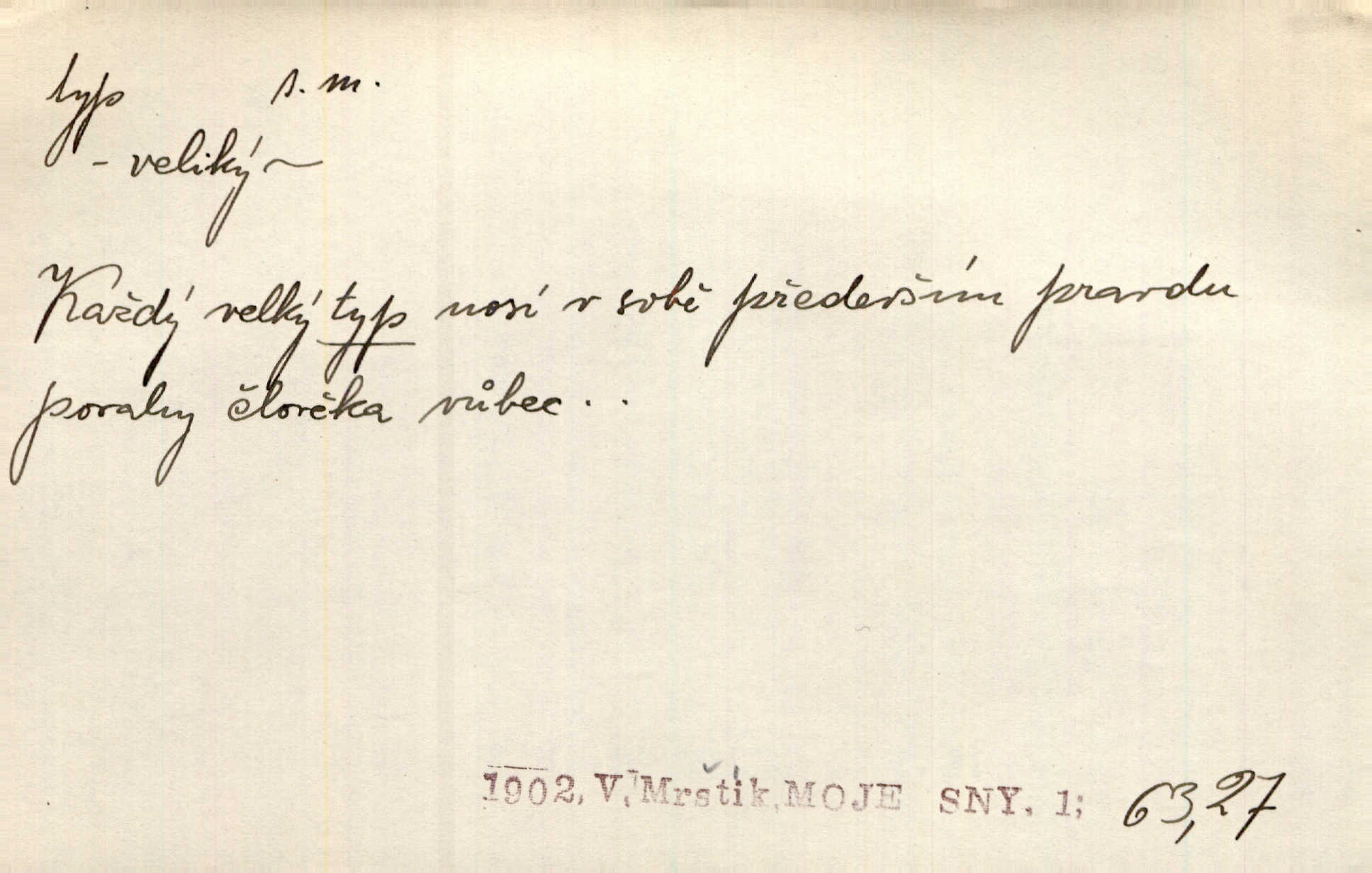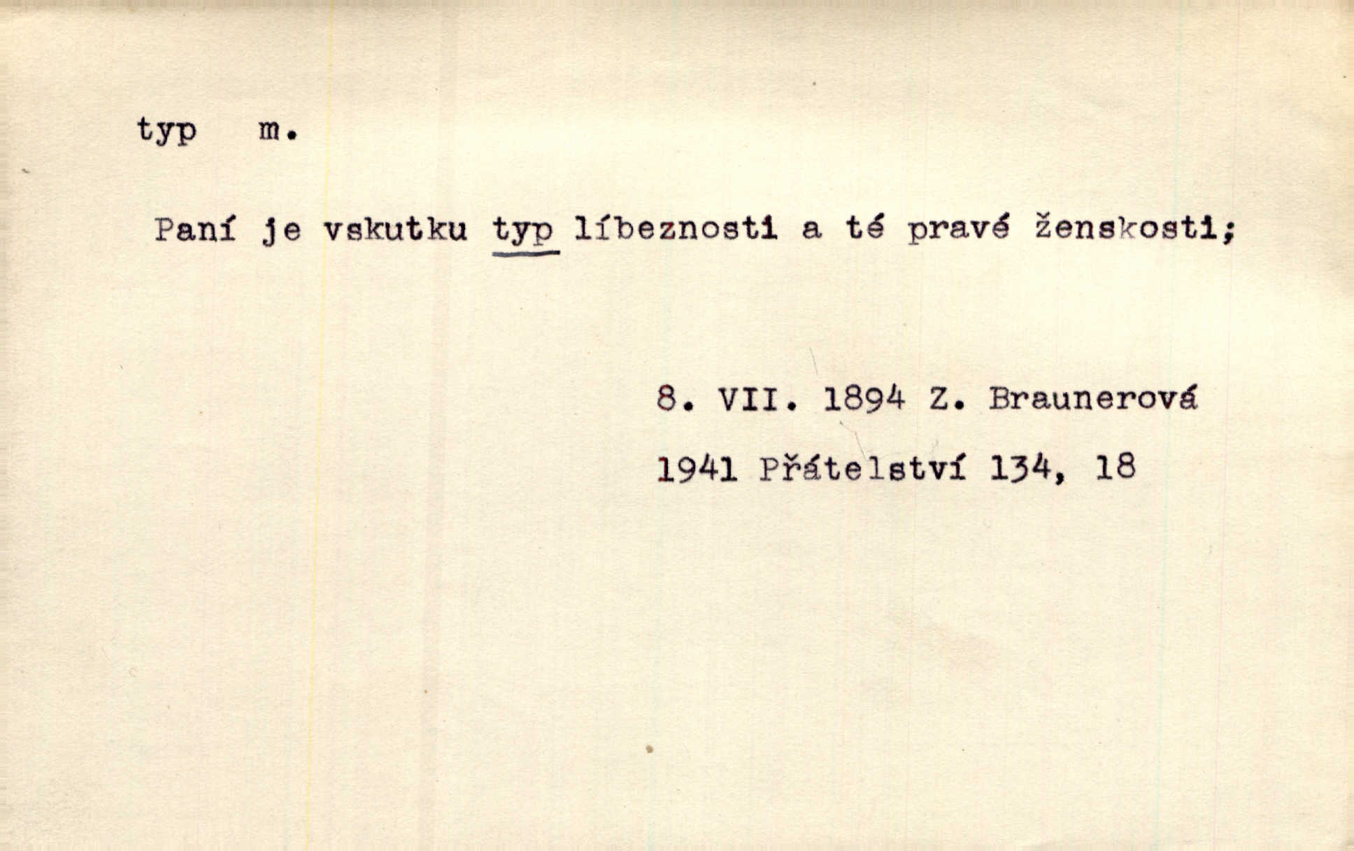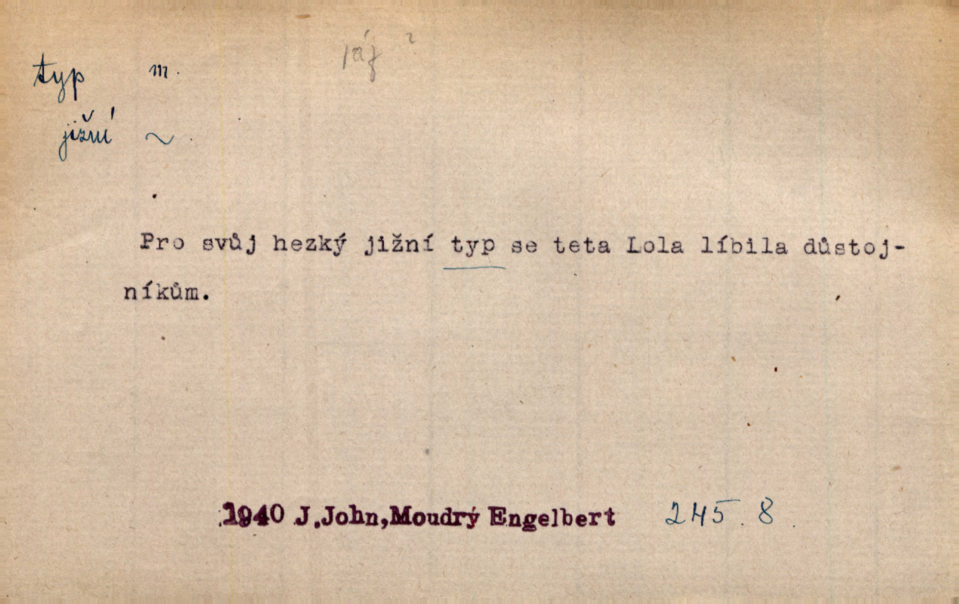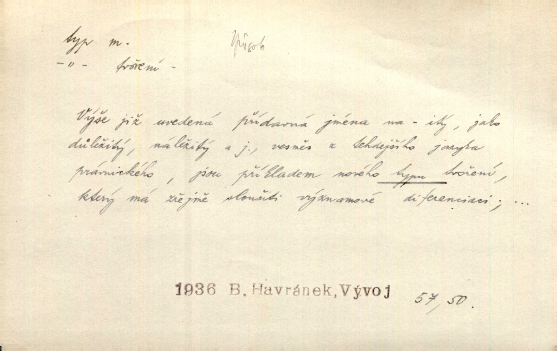 - typ, -u (zř. a zast. typus, -pu) m. vzor, příklad, zvl. postava soustreďující na sobě charakteristické vlastnosti celé skupiny lidí; ustálená představa o někom n. o něčem, obraz, ideál. Dělnická třída zřizuje nový typ státu — socialistický sovětský stát. Dějiny VKS(b)-J. Proch. Ricardovo učení nám ukazuje nemilosrdně celou anglickou buržoasii, která sama je zase typem moderní buržoasie. Marx-Blochová. Kdo by neviděl český typ v dobrém člověku B. Němcové, tak překrásně vylíčeném? Z. Nej. To [Brumovčák] je typ zatvrzelého, nedůvěřivého sedláka. Herb. Nebyl to [drátař] romanticky zidealisovaný typ, ale dobrý, nezkažený člověk. Šlej. Hledajíc mezi lidem tamějším typy, v nichž by se mravný, náboženský a socialní ráz doby jejich nejjasněji zobrazil, zpomněla jsem si ovšem na onu vdovu. Svět. Z houslistů nejvíce slynul dřevičský učitel Morávek, typ starého kantora. Jir. Ve vlastenectví rostl v nás čistě náš národně čestný typ a není vinou ideje, že se v polou vývoje zvrhl v typ odporný. V. Mrš. On [Michelangelo] zavrhl i všechny běžné typy náboženské. Ner. Elis, statný padesátník. V masce ustálený typ malířský. Šim. Byla zkrátka jeho typ. Schein. Přenesla svoji lásku a vášeň na svůj „typ“‚ který dostala na fotografii. Mah. Kramerius stvořil typ populární dobré češtiny knihové. J. Vlč. Za těchto mých hradeckých let ustálil se typ hladké čamary s ležatým límcem model. Jir. Filos. základní tvar, který má jisté podstatné znaky, společné všem členům nějaké skupiny, typus. Člen takové skupiny (jedinec n. věc), u kterého se všechny tyto znaky zřetelně projevují, pravzor, vzor, příklad. Biol. jedinec, který je nejvýstižnějším vzorem své skupiny (druhu, rodu, čeledi a p.) a podle něhož byla popsána, typus. Lit. představitel celého druhu skutečných osob ze života, nositel rysů pro celou onu skupinu společných. Burs. kapit. stálý vzorek zastupitelského zboží, uložený na burse. Cenný papír, který si spekulanti vyhlédli za předmět své spekulace a pro který dělají náladu. Sport. tip. D skupina jedinců n. věcí vyznačujících se stejnými základními, charakteristickými znaky, druh. Jakož si pisatel už dříve dovolil o některých typech našich národních promluviti, tak chystá se i dnes mluviti o českých kramářích. Thom. Trochu připomíná šoféra při bláznivé jízdě, a já takový typ nemám ráda. Ben. Estétové typu Anatola France psali o antice jako o zmizelém světu krásy. Lit. noviny. Bylo to ohromné zvíře [pes] typu foundlandského. Čap. Ch. Takové skupině [jevů shodujících se ve vlastnostech podstatných] říkáme druh (species) nebo typ. Chalup. Kdo ručí za to, že zítra se neobjeví epochální vynález, nový „typ“ flinty, děla, náboje? model, tvar. Herrm. Černaly se mu v hlavě drobné typy písmenek, seskupene v houfy: odstavce, články a knihy litery. Baar. Tak bývá zpravidla nominativ doplňkem v ustáleném typu neslovesných vět „mladost — radost“. Ertl. Zavádění nových typů středoškolských děje se jen nařízením. Čes. pol. Přijali jsme [v JZD] provozní řád třetího typu, který podepsali a schválili všichni zemědělci u nás. R. právo. Filol. typ jazyka aglutinační, flexivní a j. Zool. a bot. kmen, typus. Meteor. typ klimatický, podnební vyznačující se jistými společnými znaky bez zřetele k rozdílům způsobeným zeměpisnou šířkou. Typ přímořský, pevninský, horský a j. Pedol. půdní typ půda s vývojově zákonitě uspořádaným průrezem. Tech., výr. výrobek obyč. nějak označený (názvem, číslem, písmenem), který má s jinými výrobky stejně označenými jisté význačné znaky a vlastnosti společné, typa. Typ. čtyřboký pravoúhlý hranol nesoucí na svrchní straně vyvýšený a převrácený obraz písmena, litera; druh písma tištěného, ale i psaného, kresleného. D způsob, ráz, sloh. Vyhnáním menševiků byla vytvořena strana nového typu — strana bolševická. Ml. fronta. Takovýmto předvojem, bojovým štábem dělnické třídy je strana, revoluční strana leninského typu — komunistická strana. R. právo. Přídavná jména na -itý jsou příkladem nového typu tvoření. Havr. Podle celého typu jeviště byl to spolek kočovnický. Řezn. Madonna [strakonického chrámu] náleží dle typu svého do poslední čtvrti 14. století. Světozor. Charaktery [ve „Dvou umělcích“] podrobí se rozdílným změnám přirozeným i neodporujícím předce jejich základnímu typu. Ner. Jako Verdi, Brahms představují hudební typ svého národa, tak zase náš Smetana zní ryze česky. Lit. noviny. D rysy, podoba tváře, zjev, postava člověka vyjádřená tělesnými znaky. Od těch dob, co přišly francouzské gardy až do Moskvy a kozáci do Paříže, spletly se poněkud typy v tvářích evropských národů. Ner. Nosila na odiv přespříliš vyslovený rodový typ, monumentální šeredu zdravím kypící tváře. Čap. Ch. [Někteří slovanští kmenové] ještě slovanský typus čistý zachovali. Havl. Chlapec [Michal] patří k svalovému typu. John. Pro svůj hezký jižní typ se teta Lola líbila důstojníkům. John. Namaloval asi 1000 podobizen, z nichž asi pětina představuje typy maorské. Koř. Svou pečlivě oholenou tváří bez knírů připomínal starodávné typy hrabat. V. Mrš. Obraznost Mikuláškova malovala si postavy vojáků, které se později vytvářily v karakteristické typy vojenské, čistě Alšovské. Herrm. Anthrop. převládající disposice fysická, psychická n. psychofysická, kterou se vyznačuje druh lidí, od ostatních sice přesně ohraničený, ale v svém způsobu stálý. Typ atletický, pyknický, pozornostní, optický a j. typus. Sport. sportovní typ soubor tělesných z