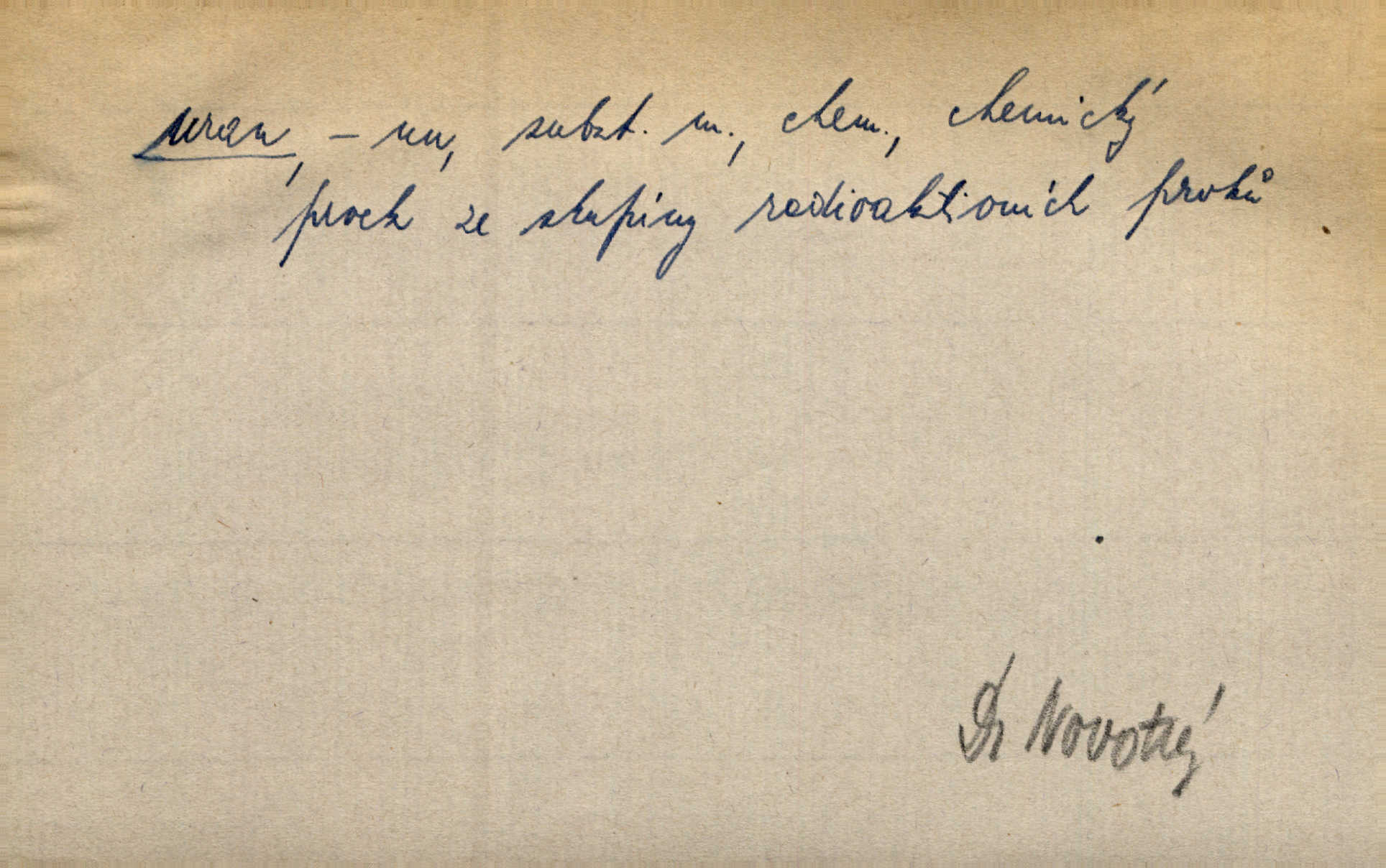 prvek ze skupiny radioaktivních prvků.