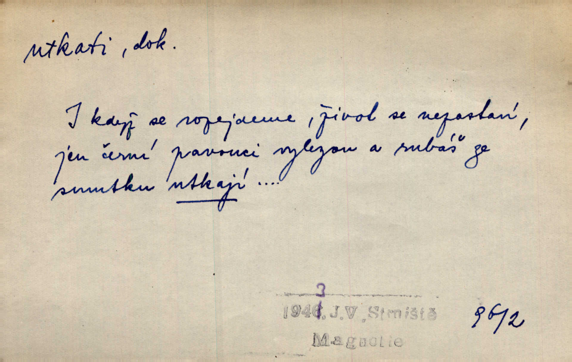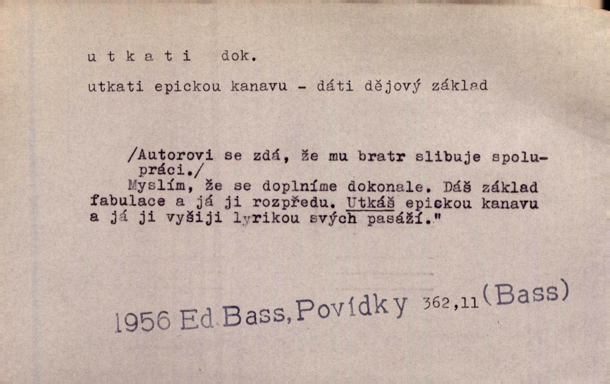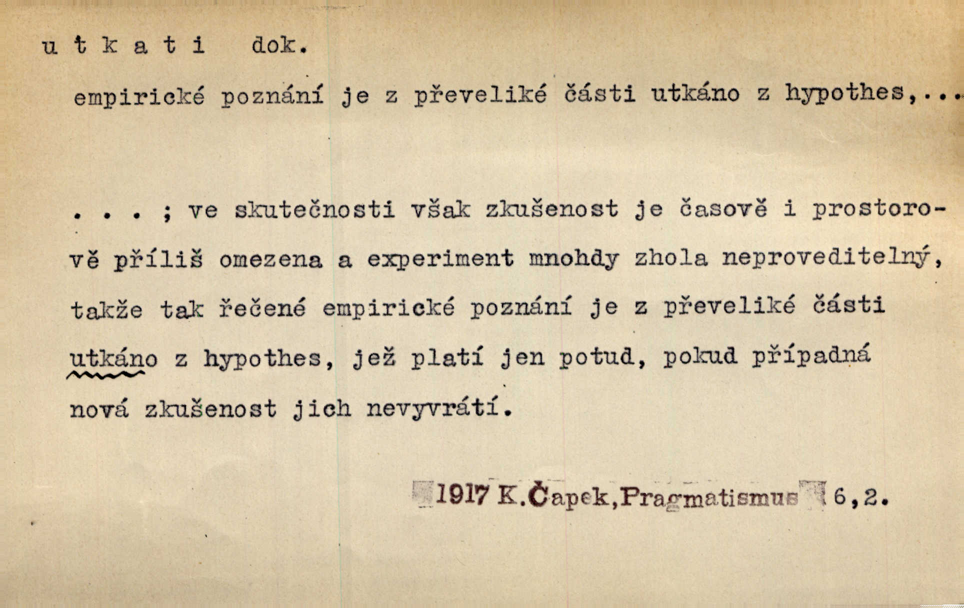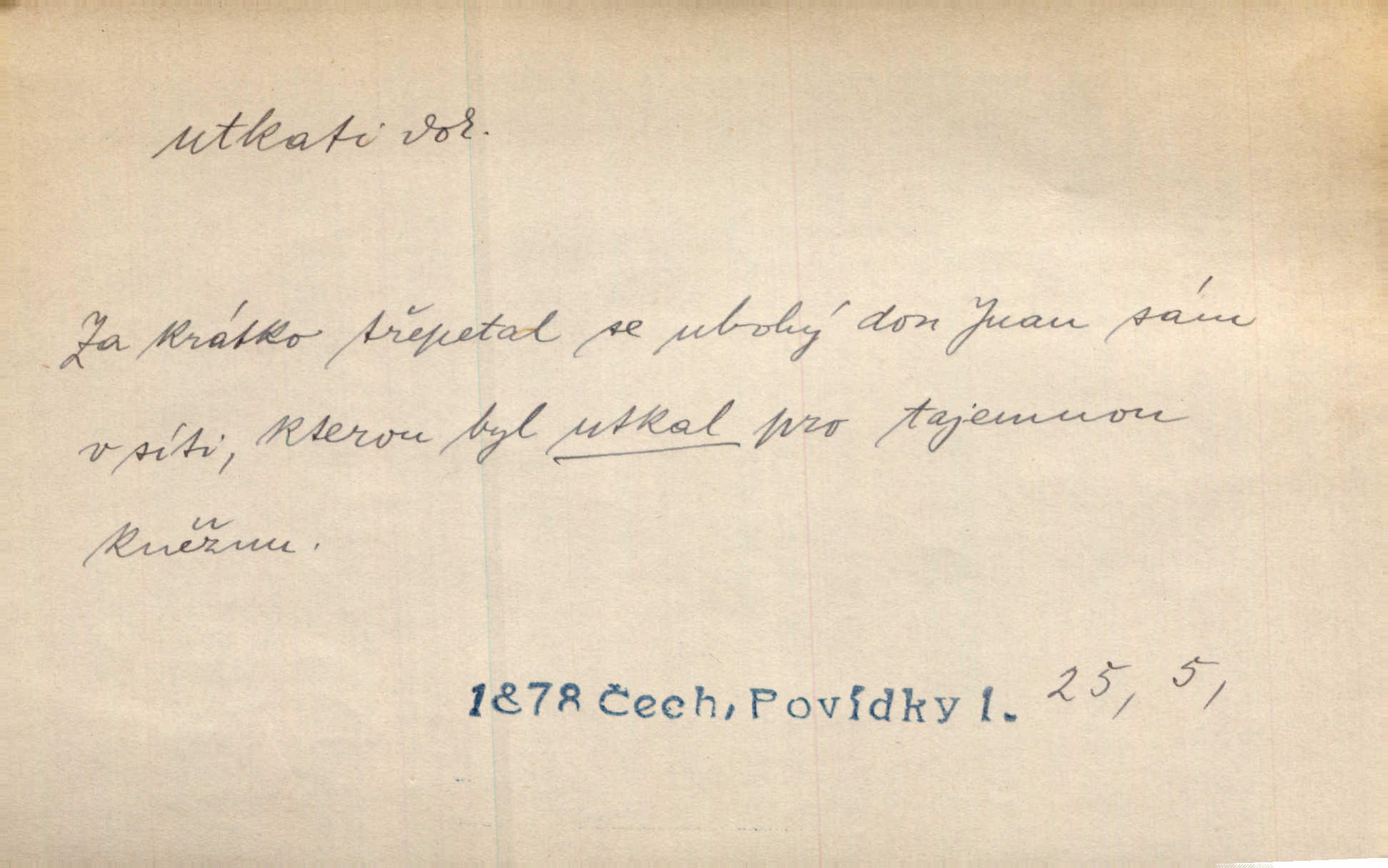 - utkati dok. 1. (co) tkaním vyrobiti něco. Tenkráte lidé sami na šat předli, sami si ho také utkali a ušili. Něm. Žena primitivním a zdlouhavým spůsobem utká z toho [bavlny] hrubé plátno. Štol. Za utkání velkého koberce placeno jedenáct krejcarů. Sum. Za krátko třepetal se ubohý don Juan sám v síti, kterou byl utkal pro tajemnou kněžnu. Čech. Černí pavouci vylezou a rubáš ze smutku utkají. Strn. D Kniž. vůbec vytvořiti, udělati, obyč. z různých částí, jednotlivostí. Utkána je tato sbírka [básní] z dvojího thematického živlu. Sez. Snad bz dovedl básník dobře popsat tuto rázovitou postavu, snad by z ní dovedl utkat povídku. Týd. rozhl. Plyne [bzukot včel] v jednotvárném vypravování o věcech zapomenutých a věcech utkaných ze snů. Vanč. Vnitřní život byl všecek utkán z ideálních vznětů. Čech. Utkal sobě již plán, jak dítě vychová. Hál. Utkali tu svatbu, mně ničehož neřekli. Nov. Třeba je [osudy Rimbaudovy] pozorovati se stanoviska legendy, která se utkala kol jména a plodů jeho. Vrch.